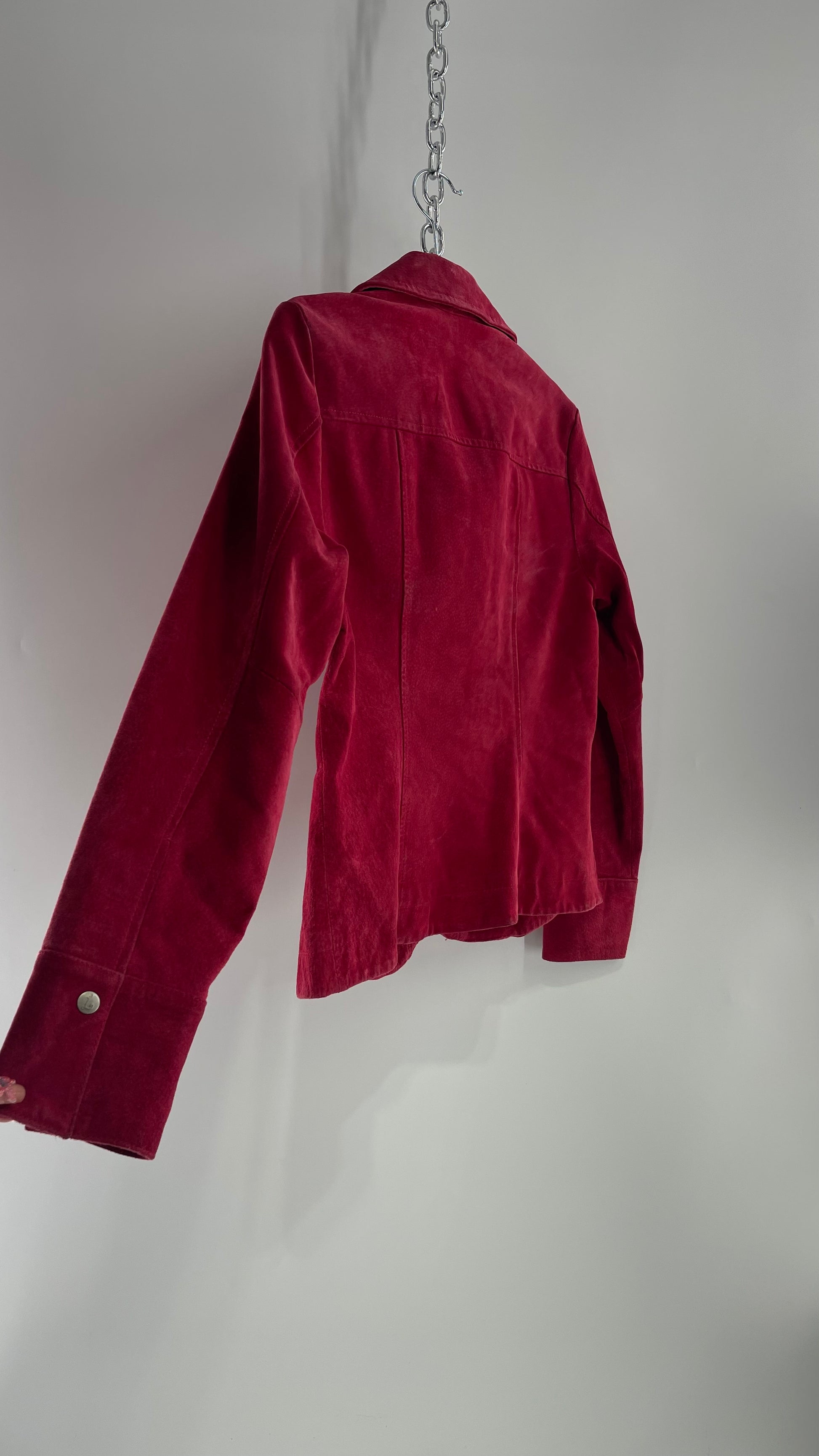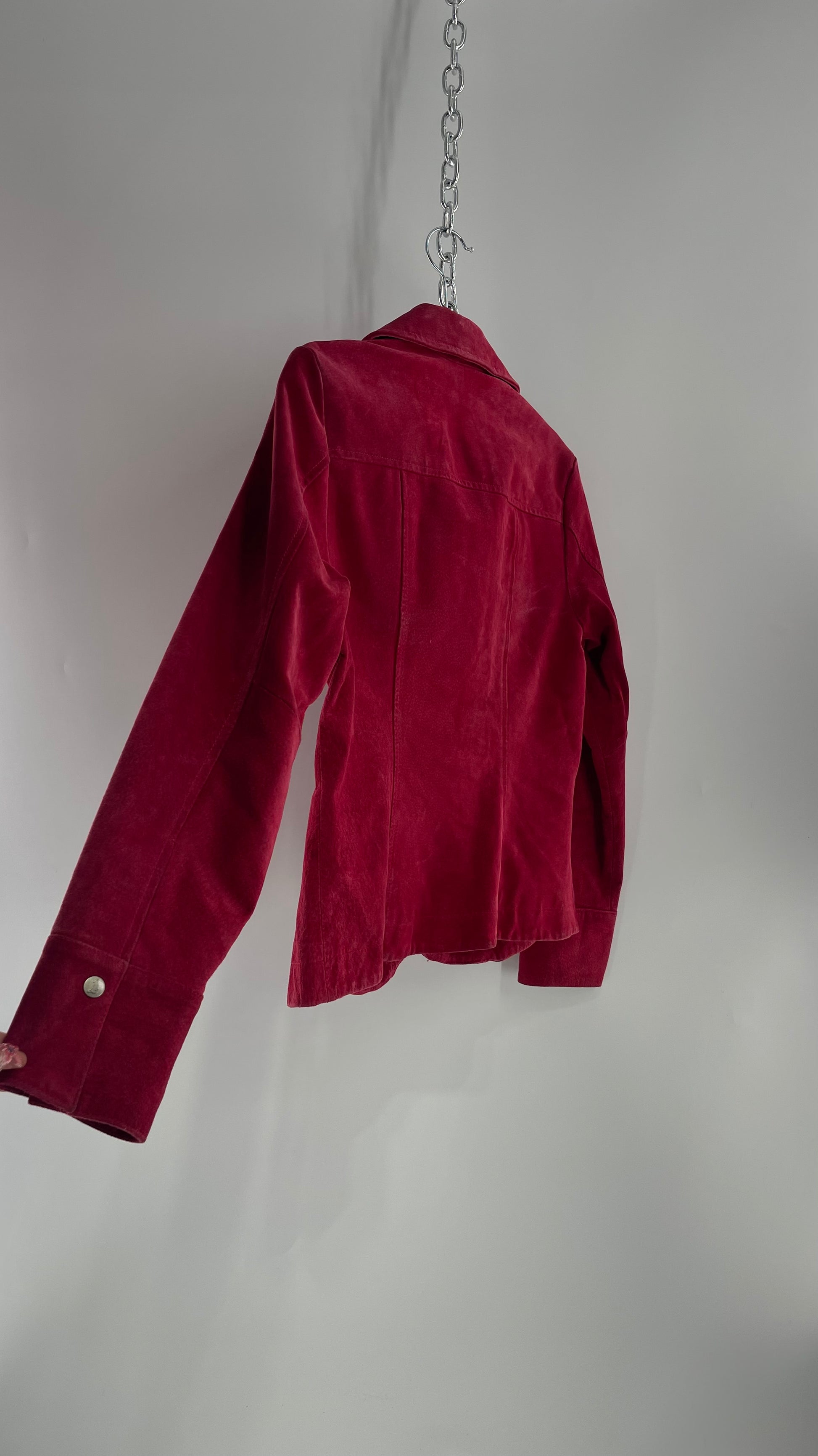 VINTAGE A.M.I Raspberry Red Suede Leather Slim Waist Metal Button Front Jacket (Small)