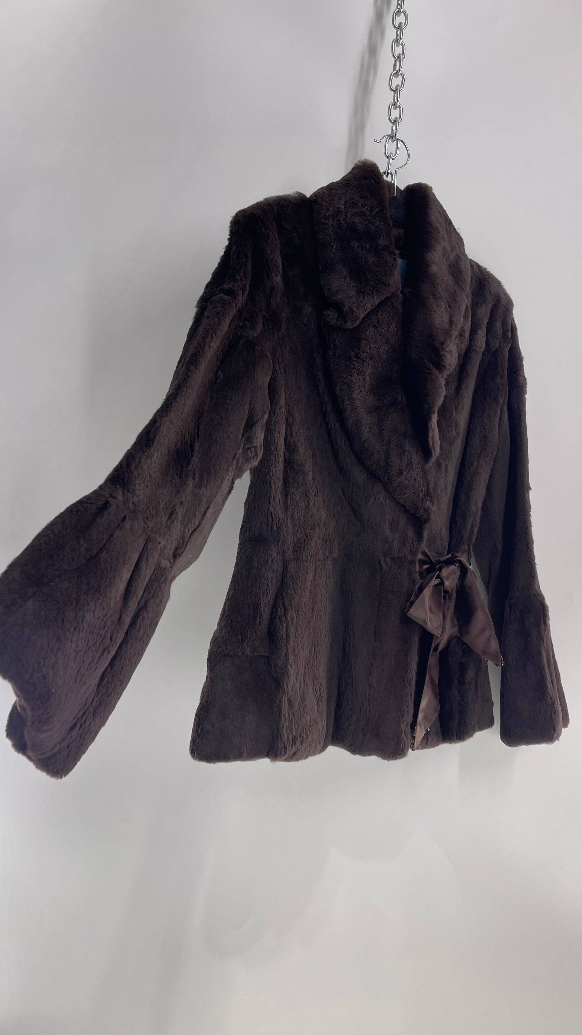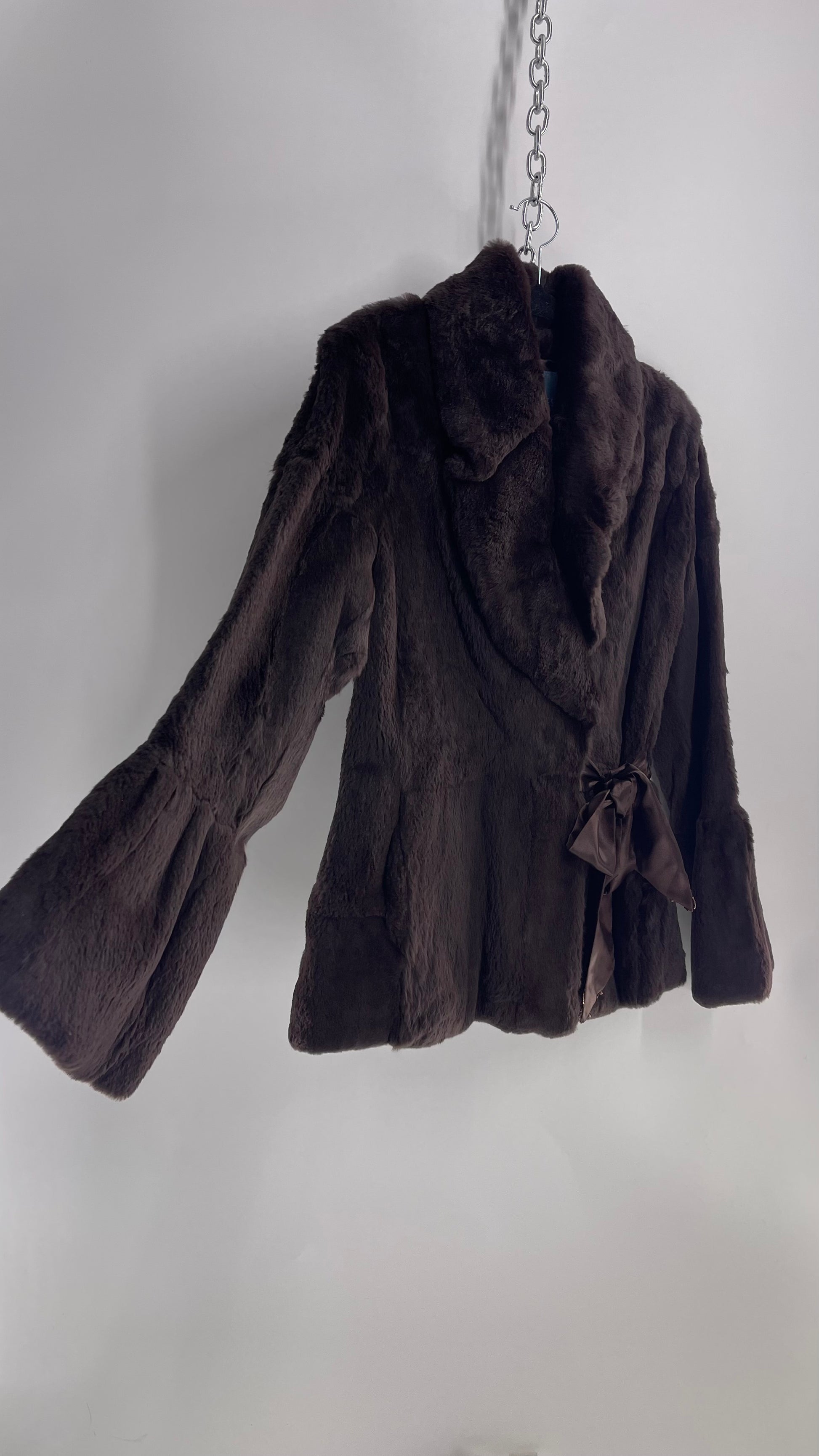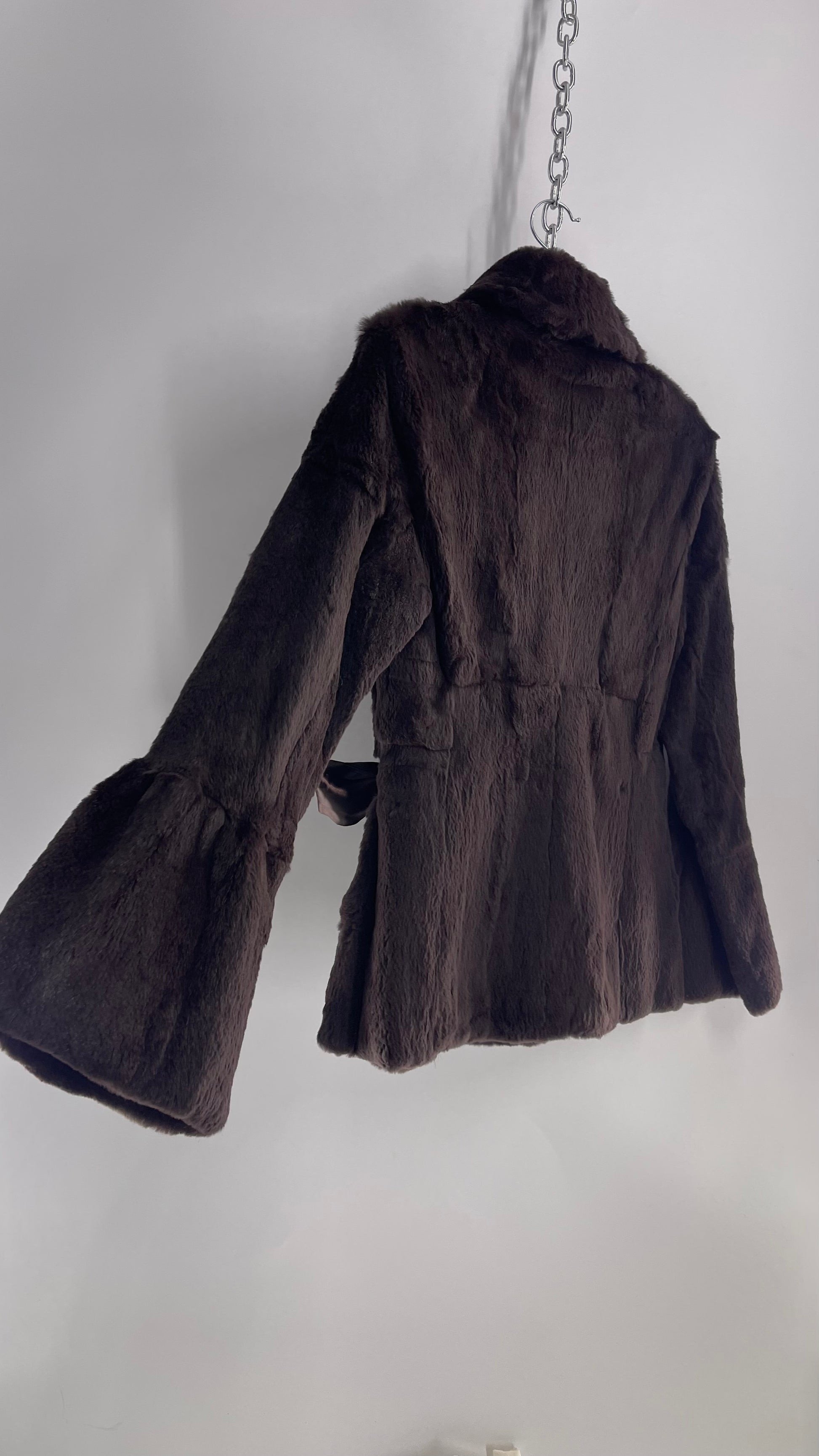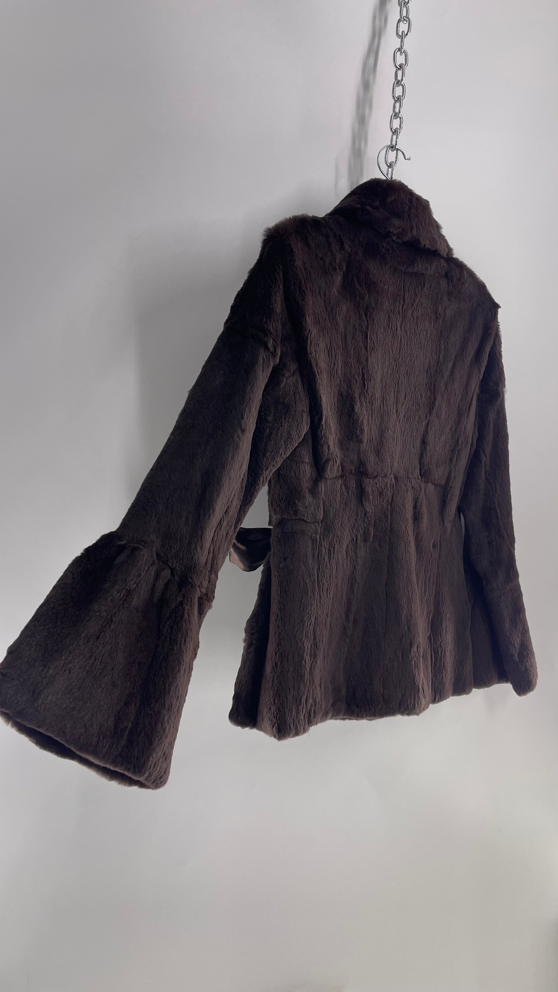 Deadstock Vintage Brown Fur Jacket with Lapels and Bell Sleeves (Small)