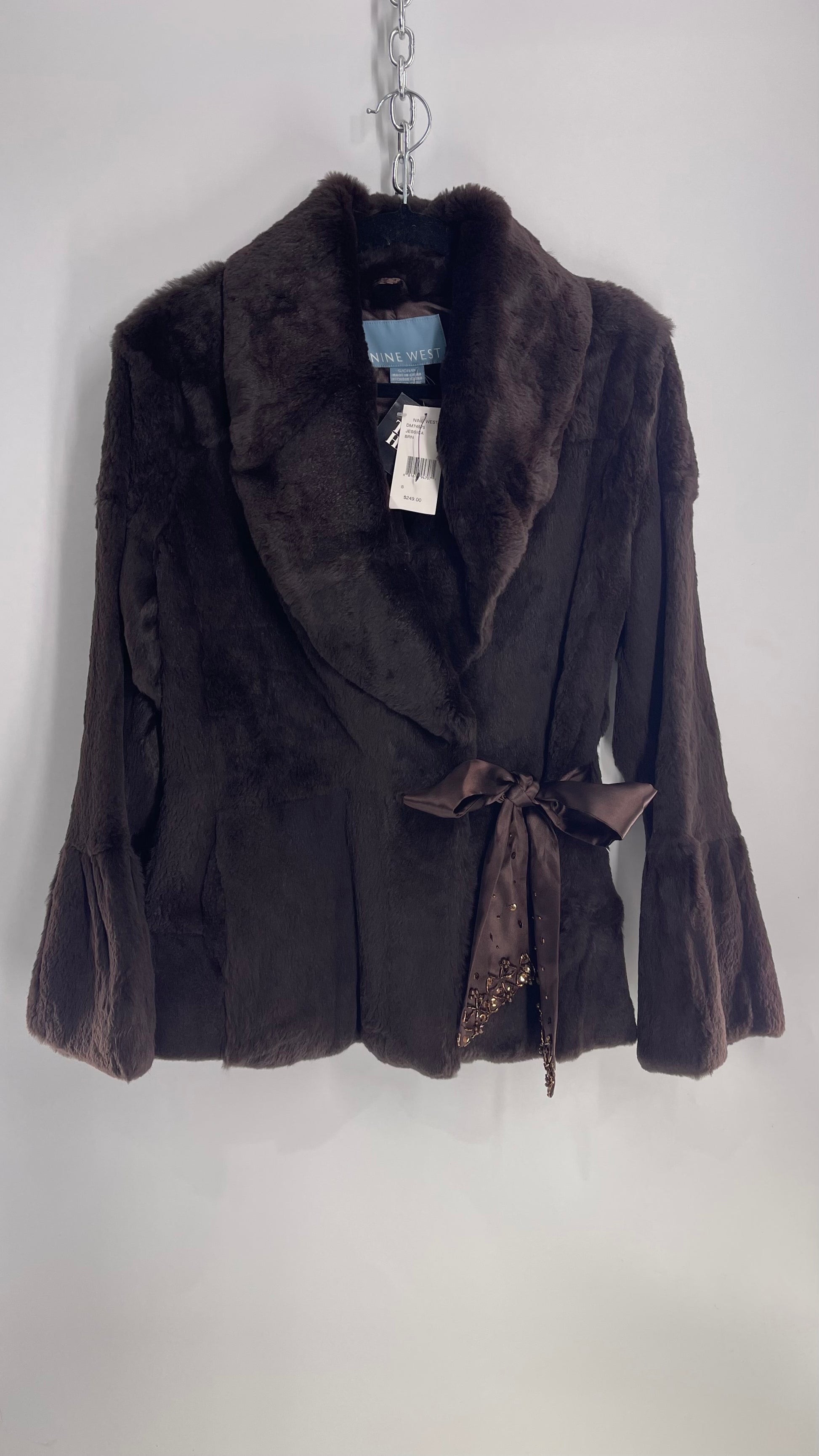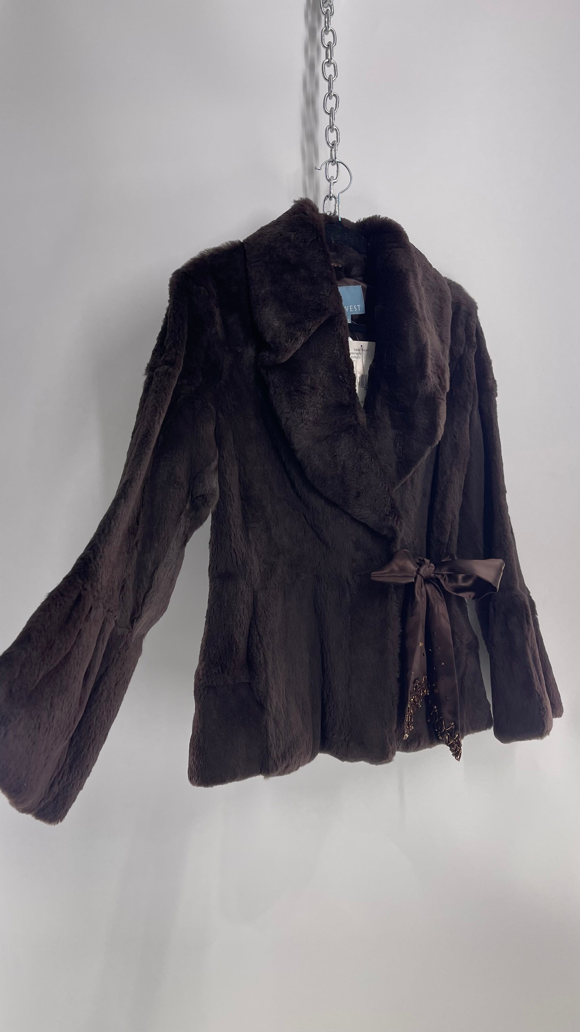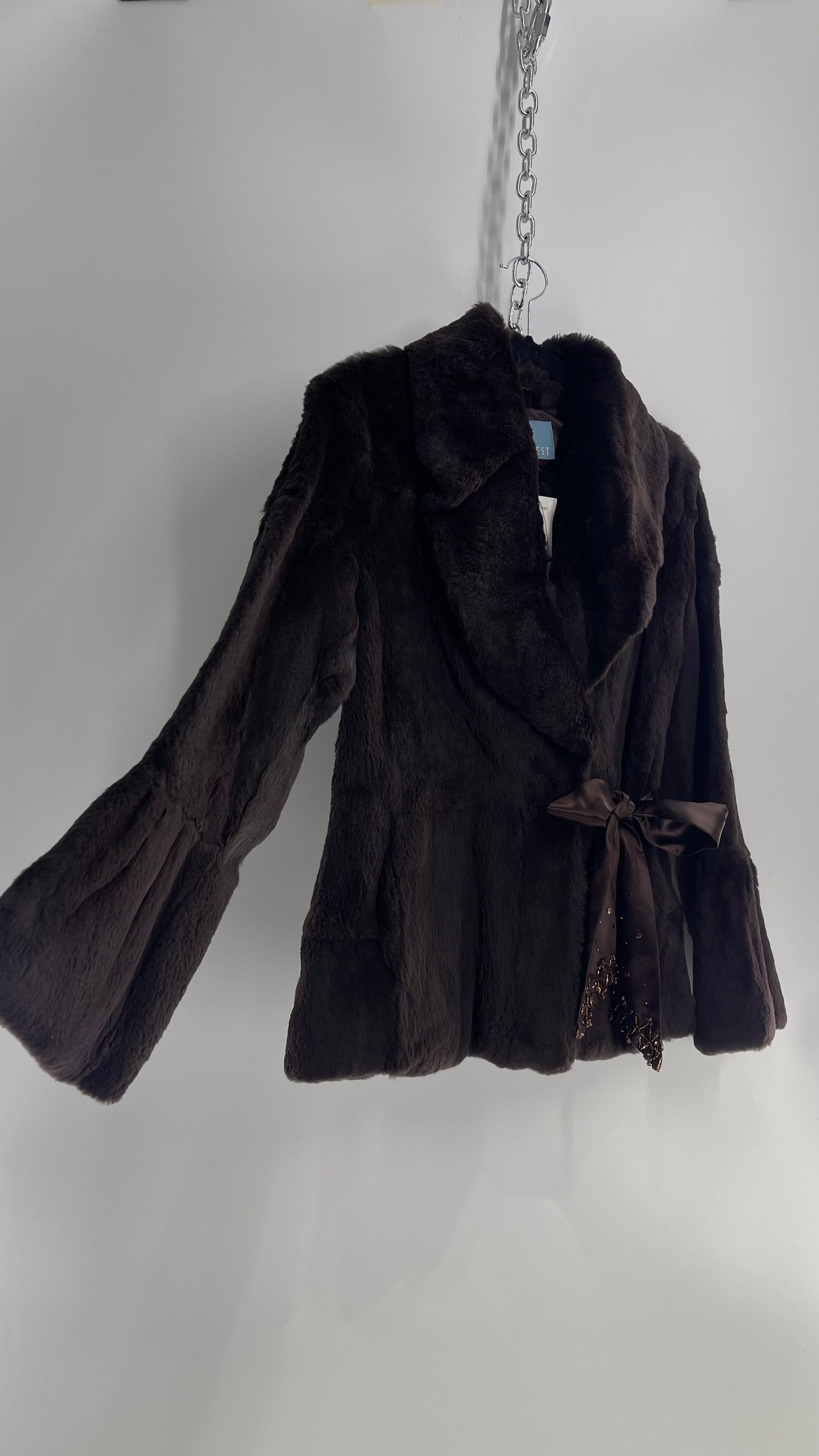 Deadstock Vintage Brown Fur Jacket with Lapels and Bell Sleeves (Small)