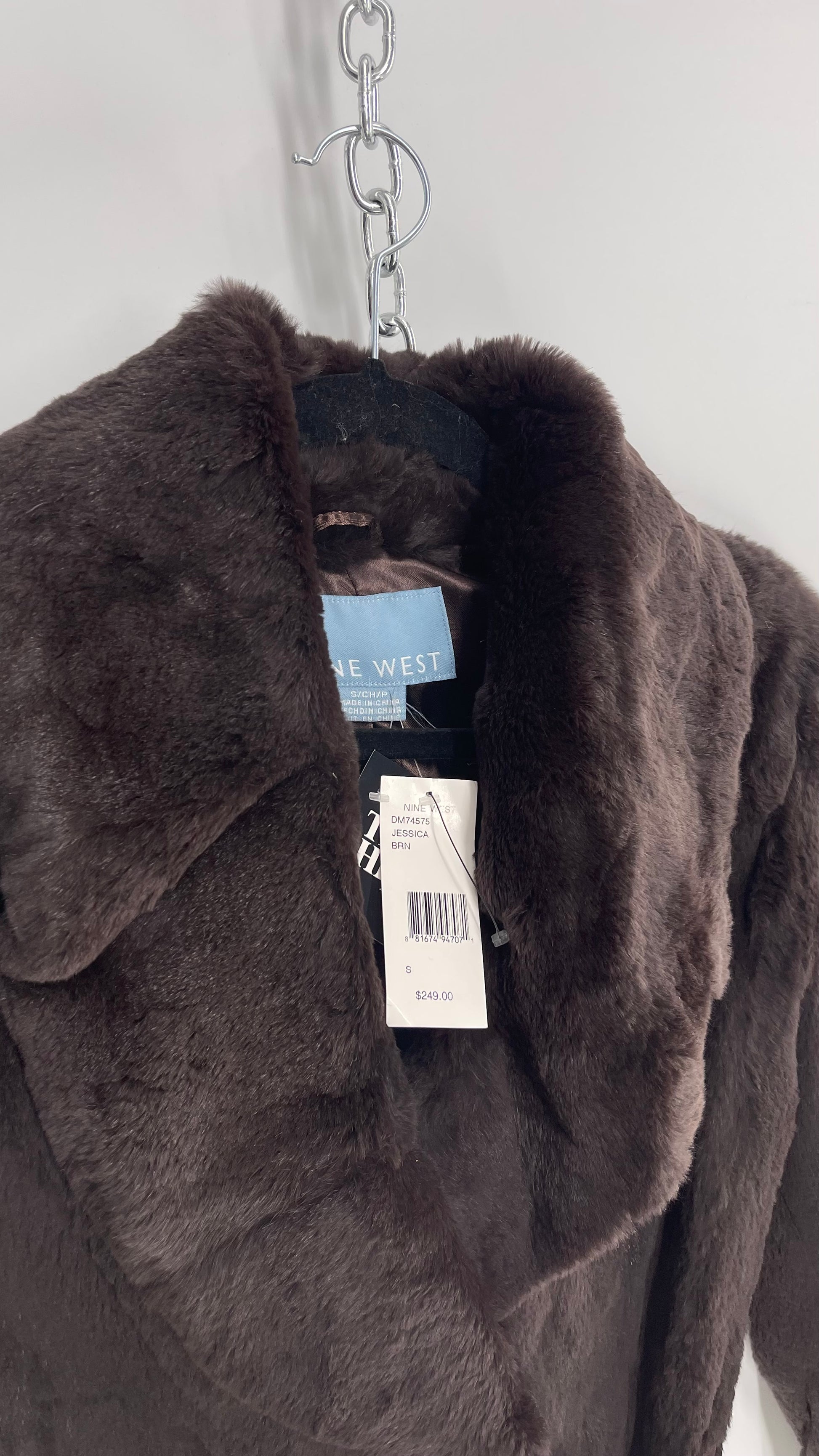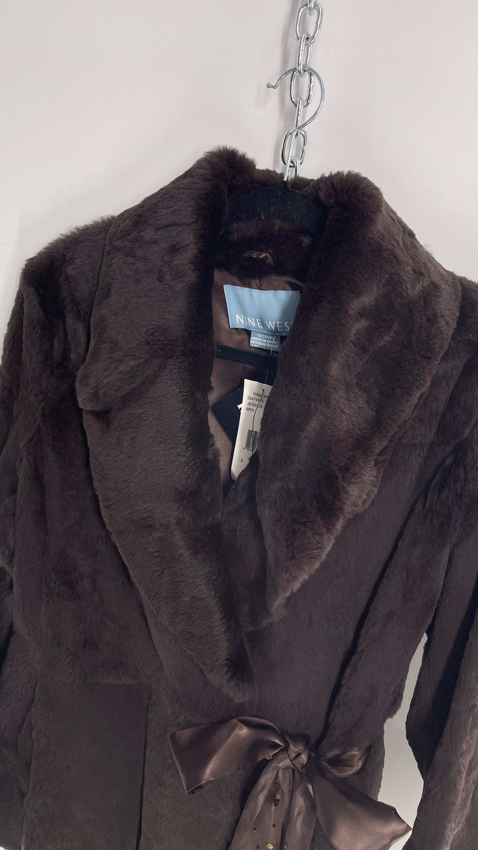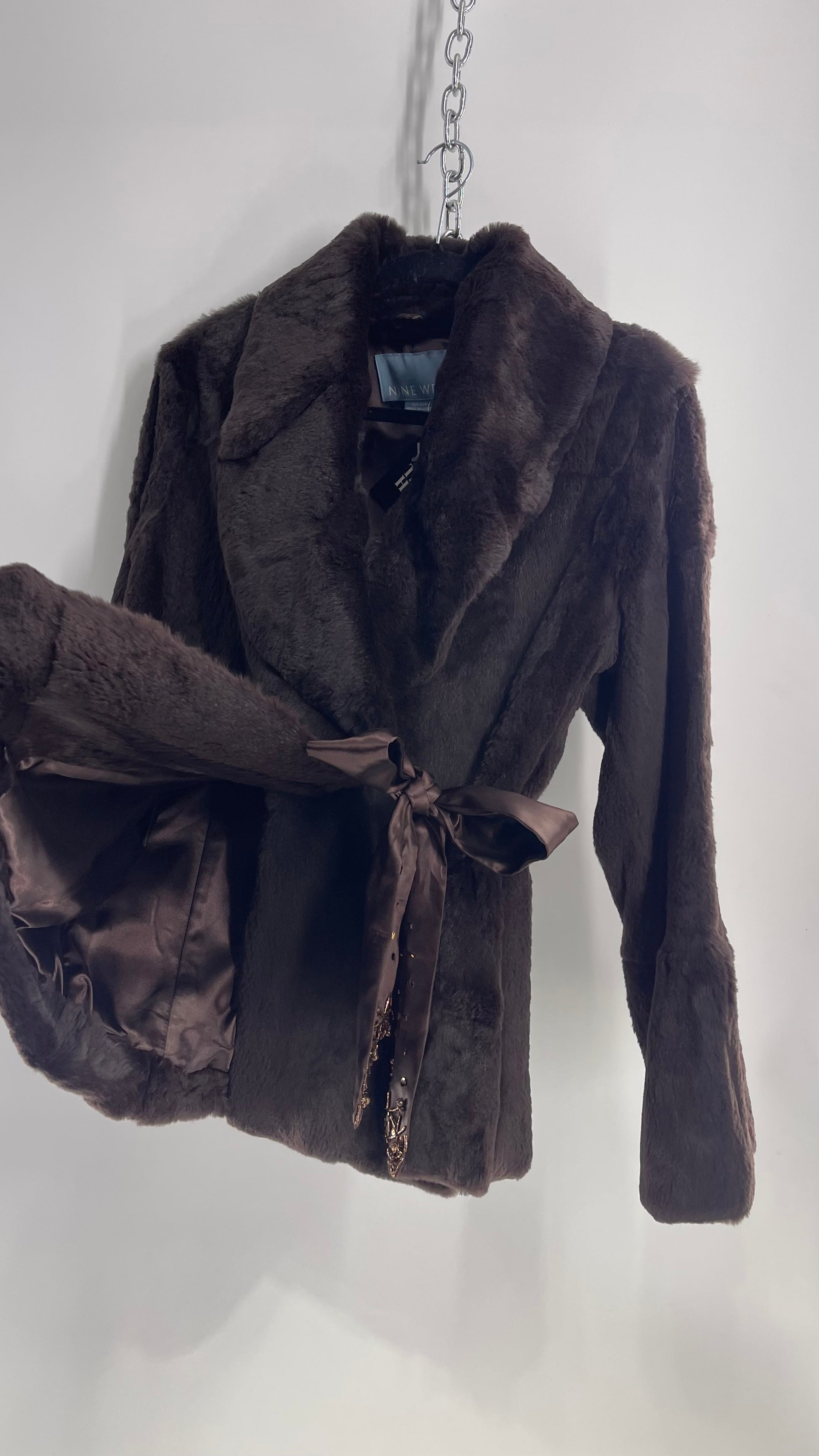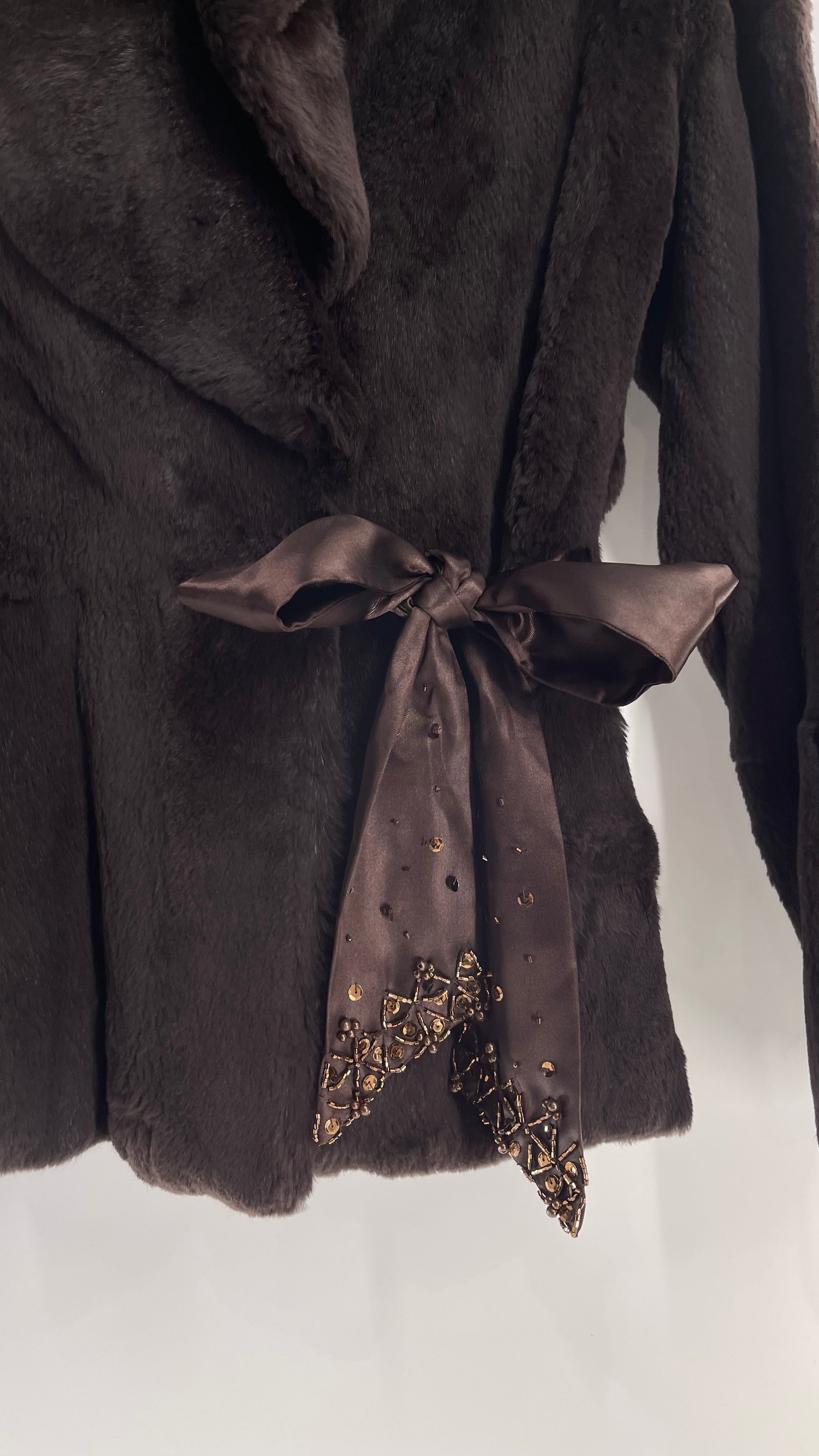 Deadstock Vintage Brown Fur Jacket with Lapels and Bell Sleeves (Small)