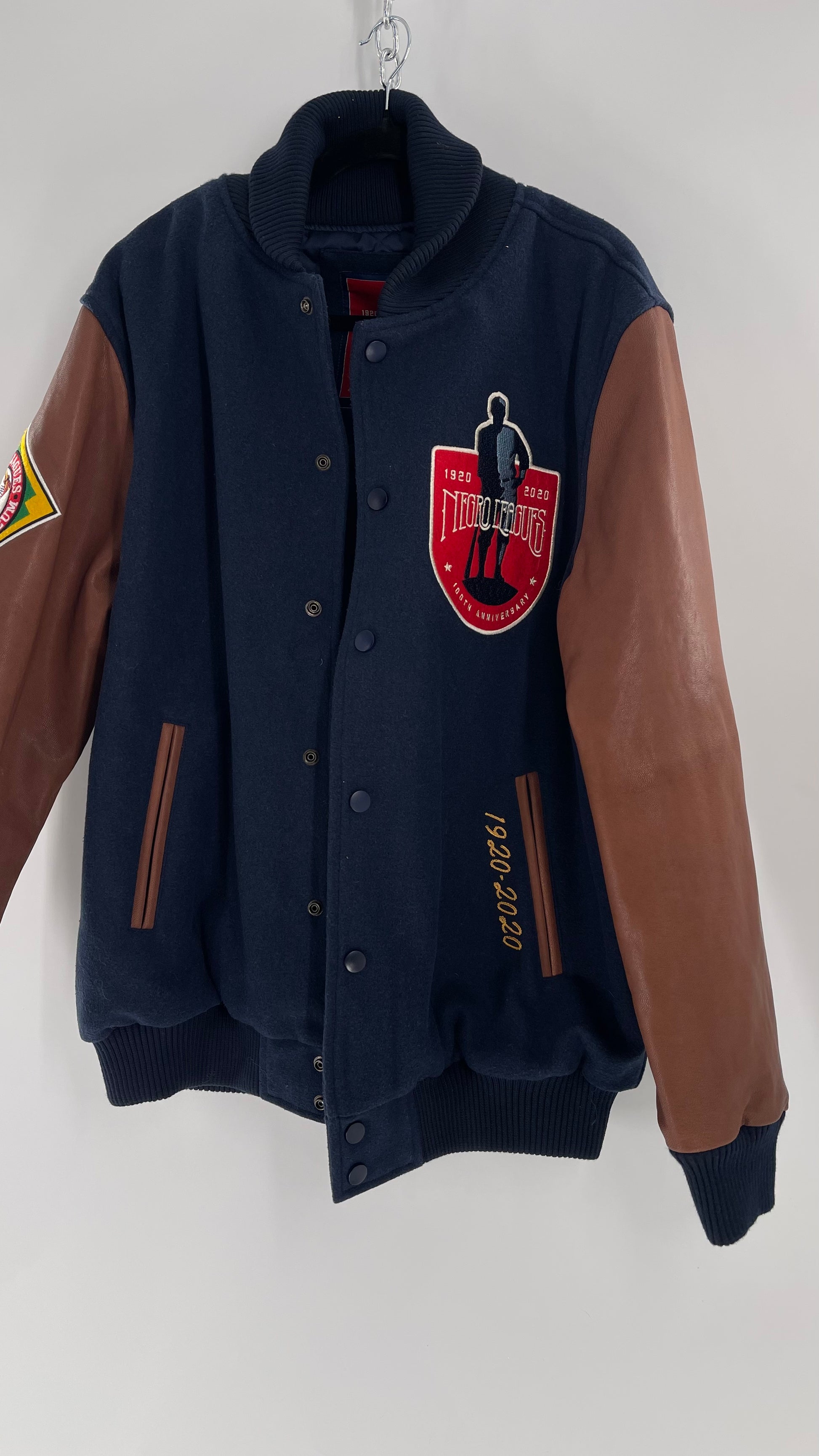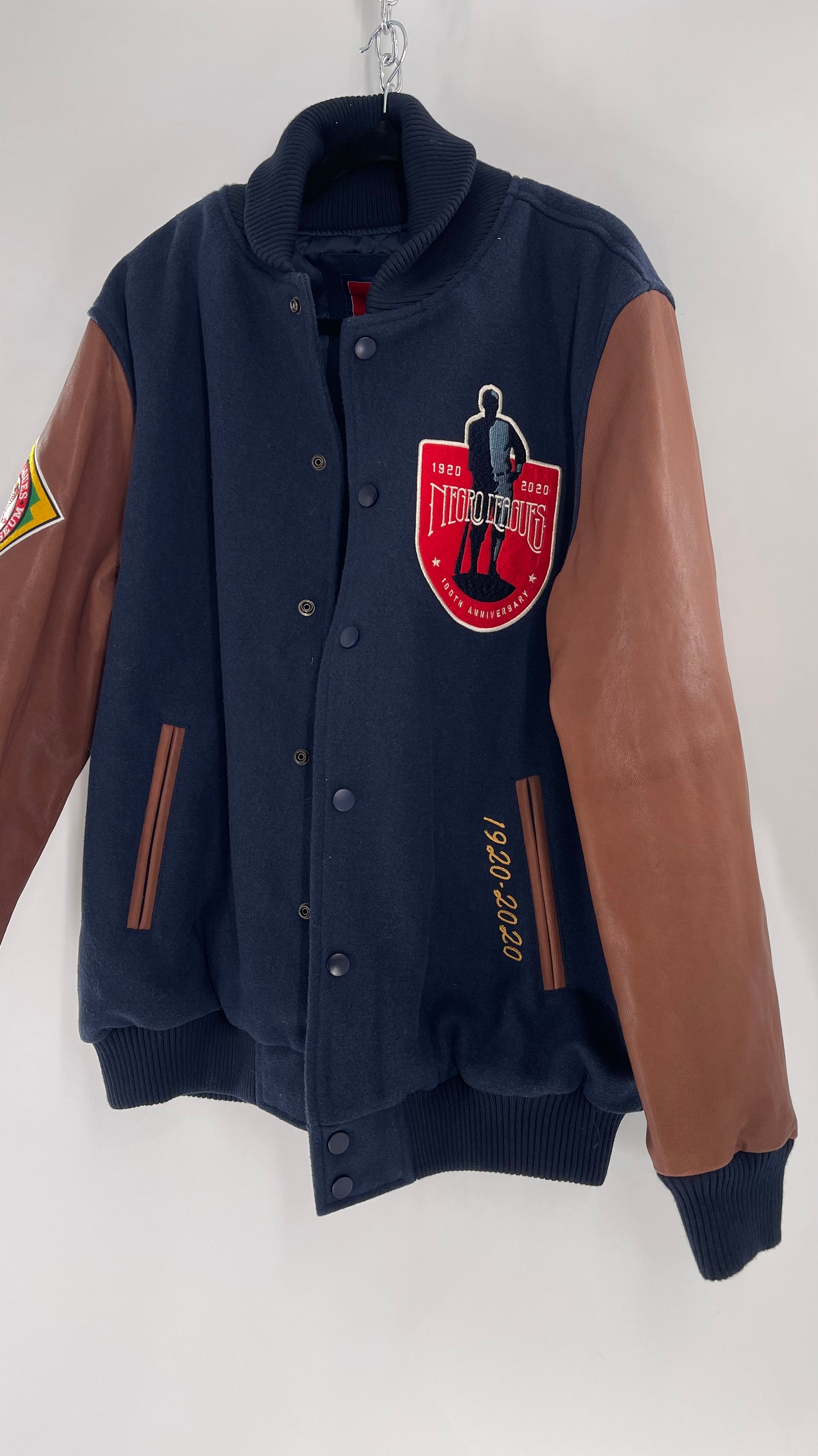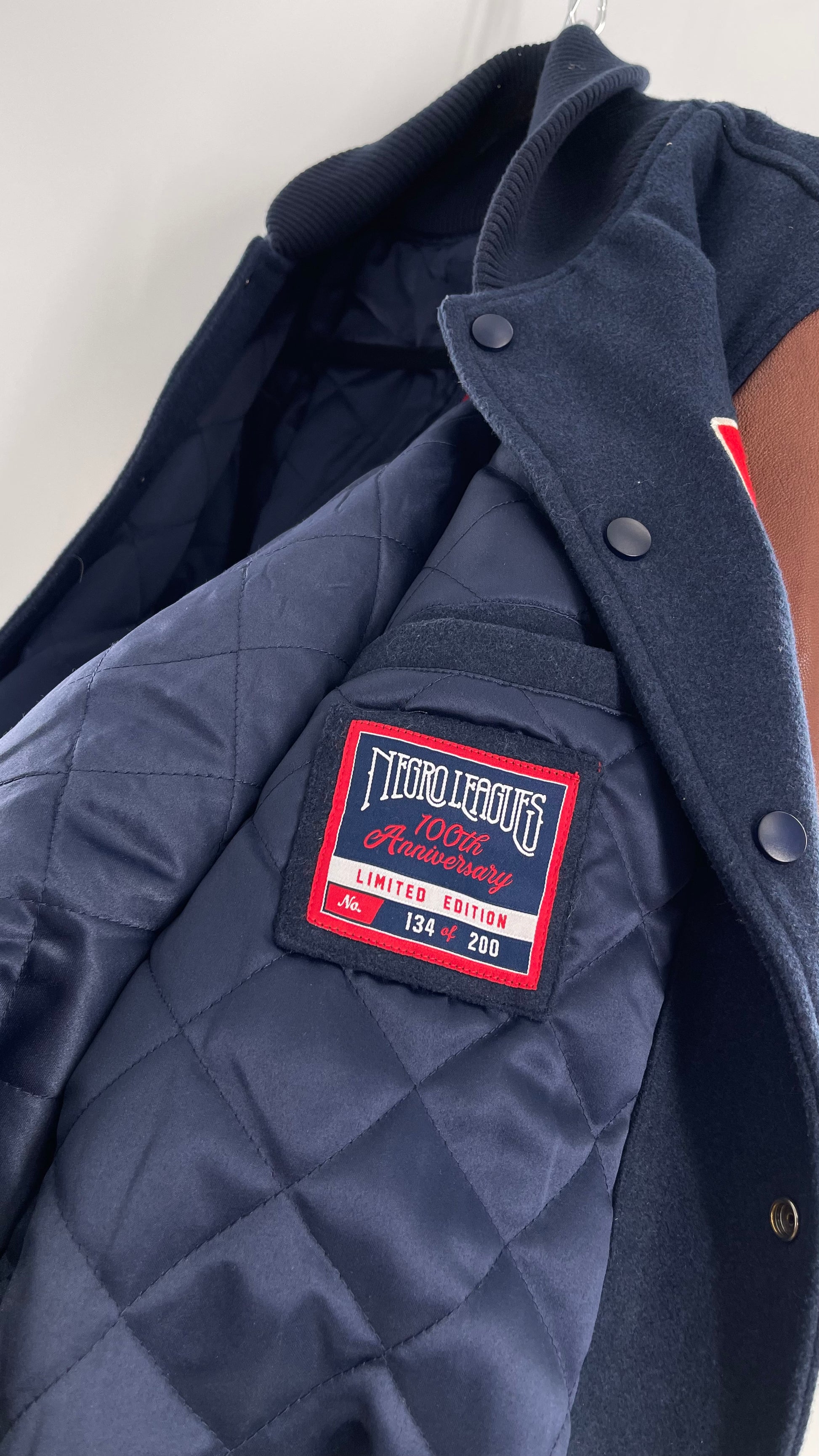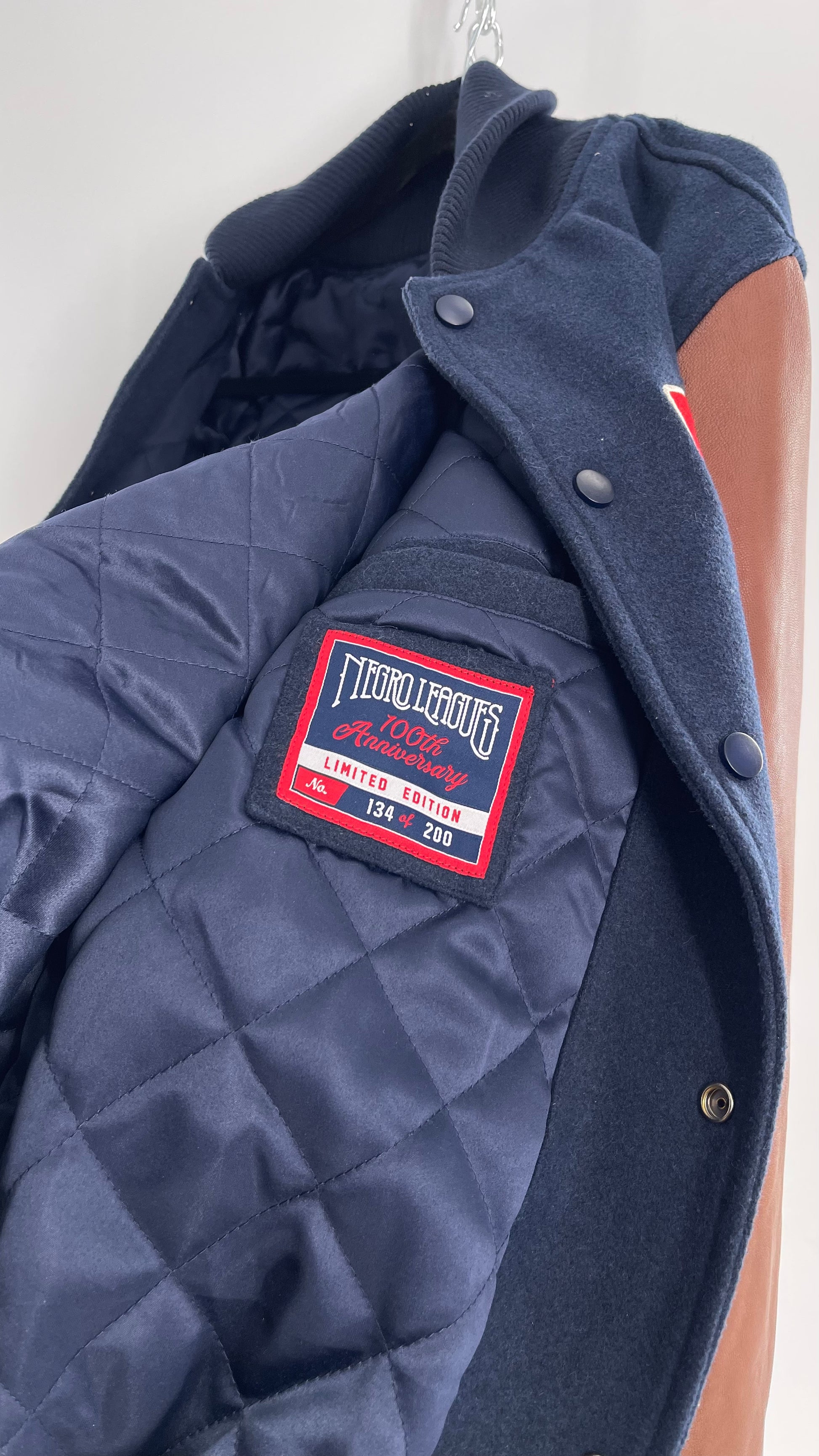 100th Anniversary Negro Leagues Wool Varsity Jacket with vegan leather arms and patches |