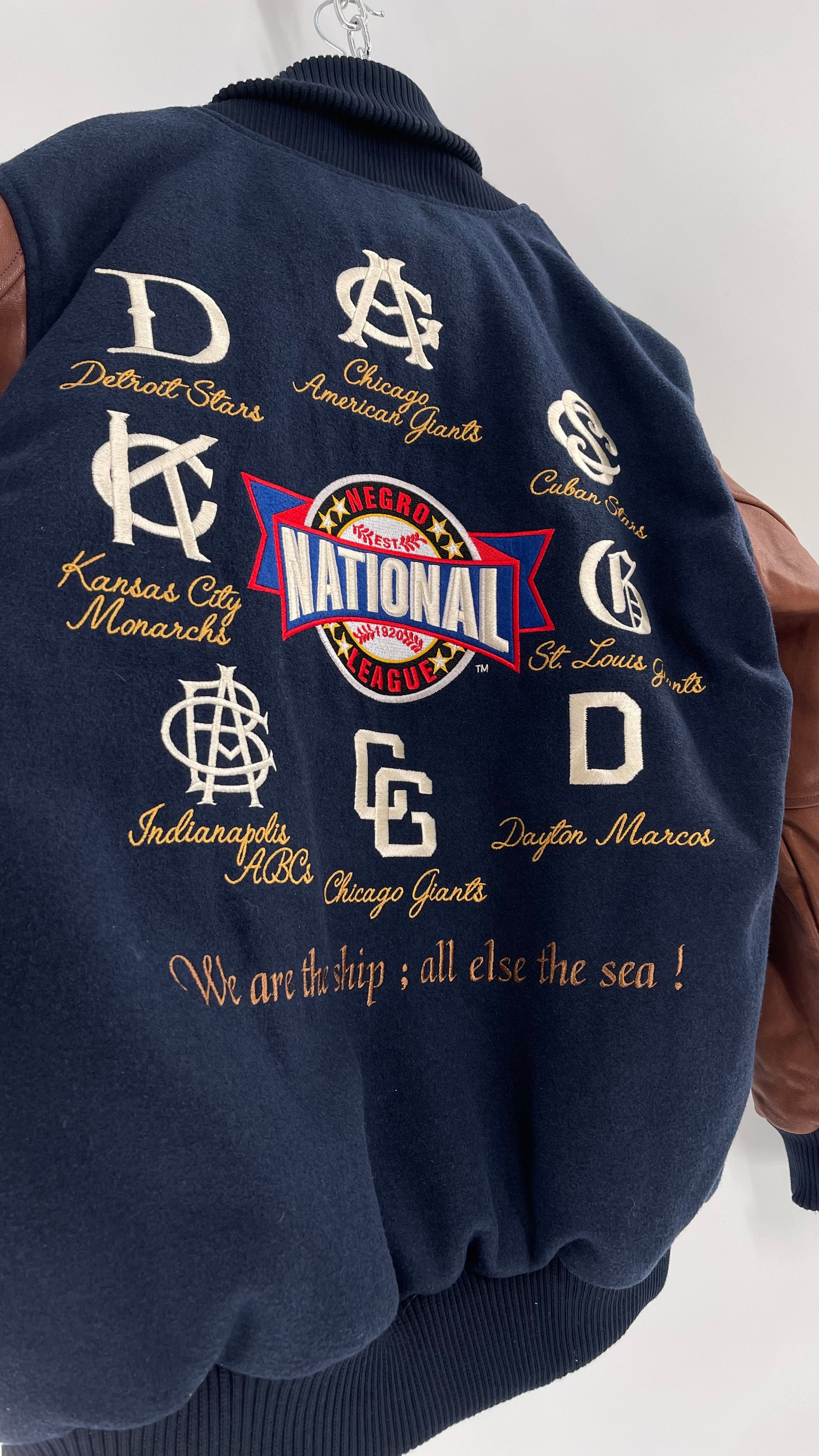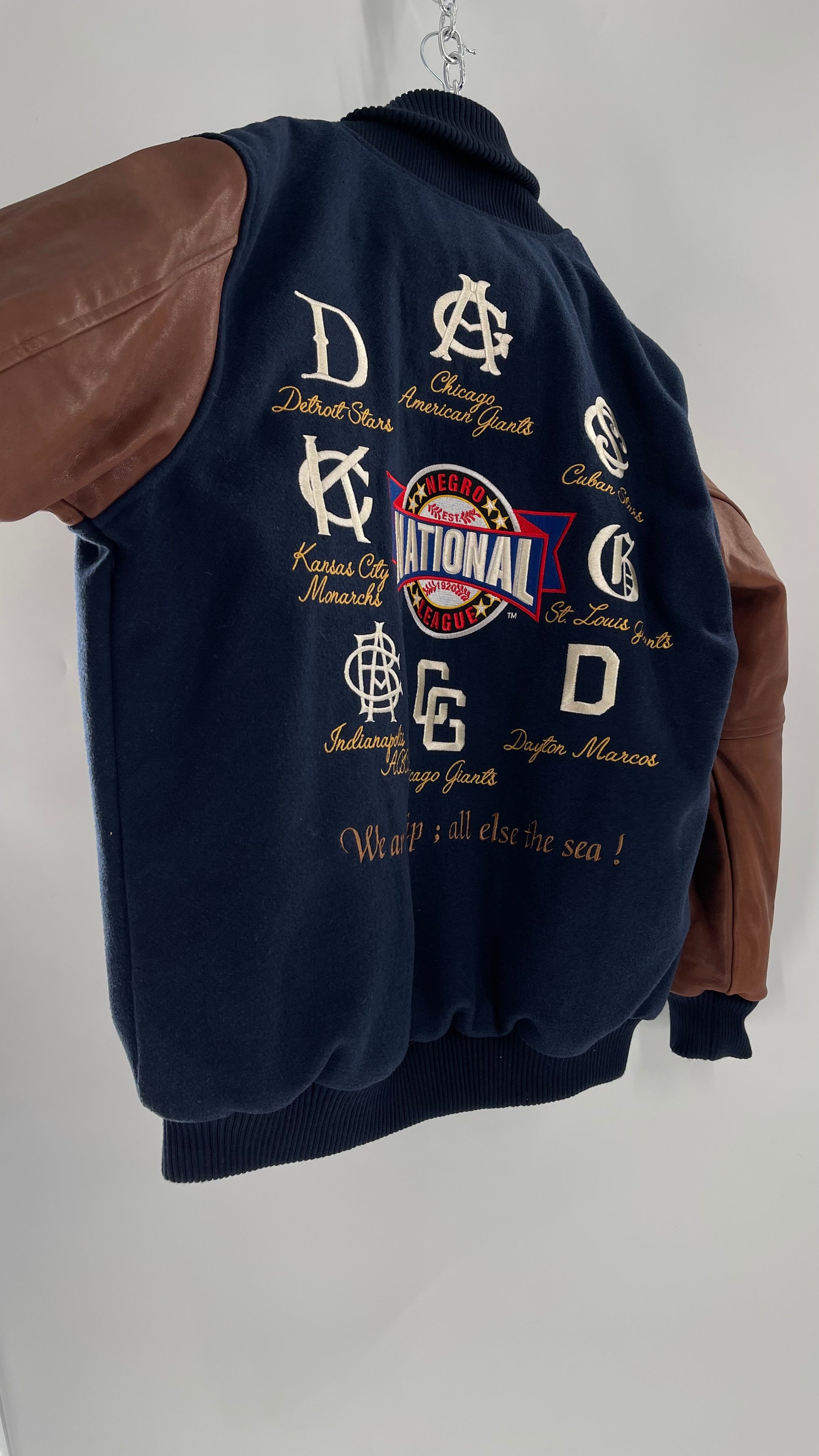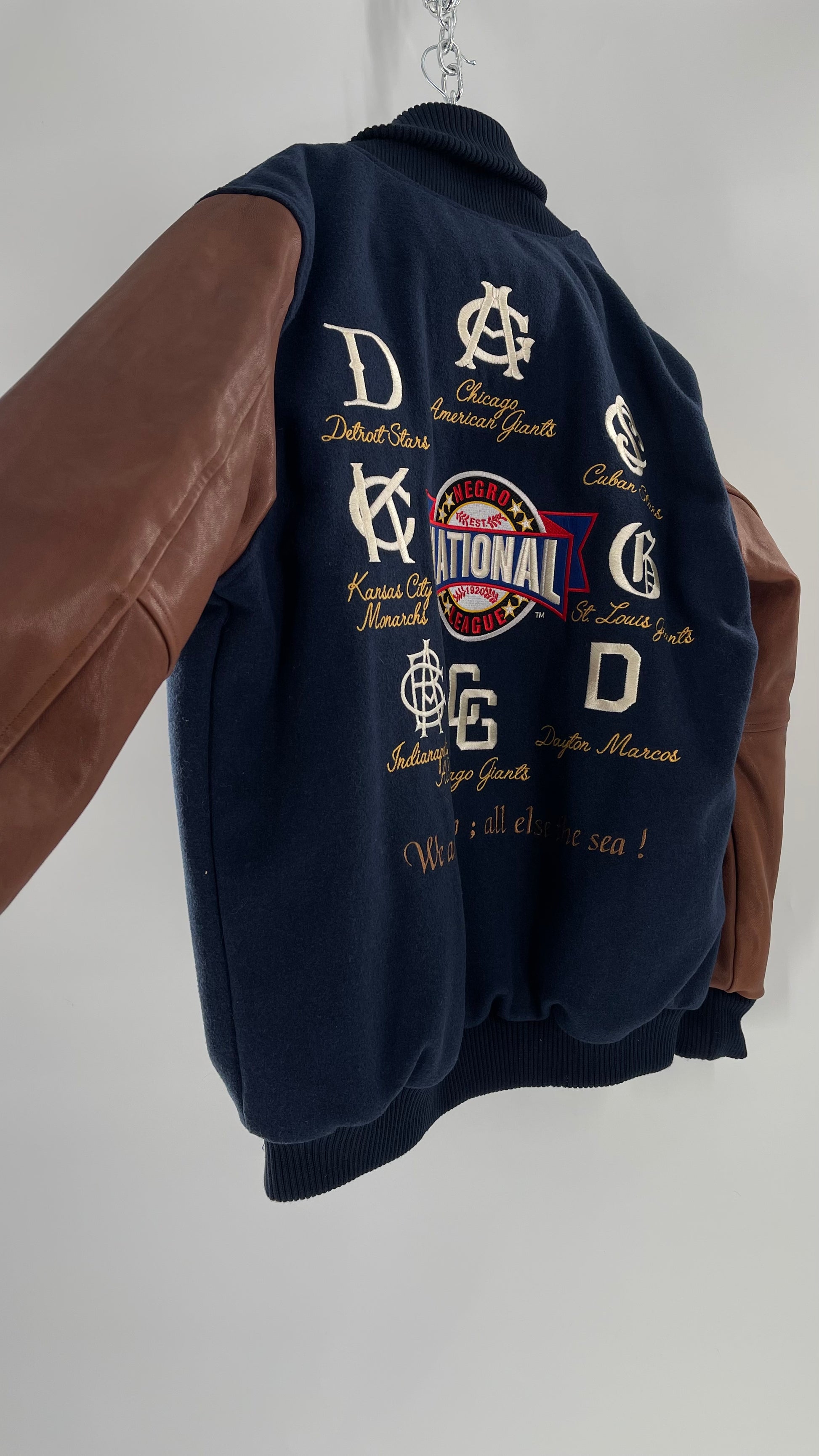 100th Anniversary Negro Leagues Wool Varsity Jacket with vegan leather arms and patches |