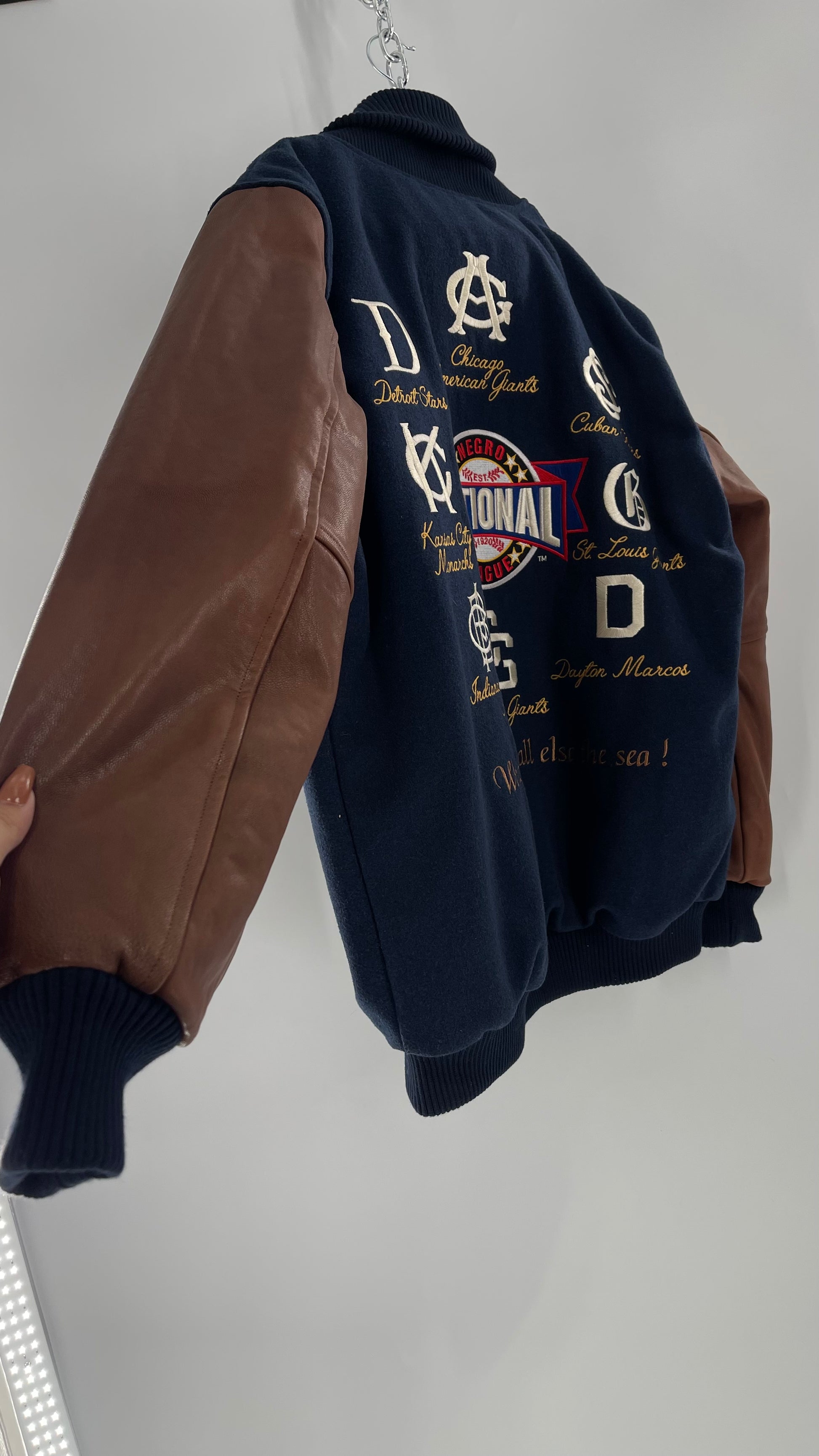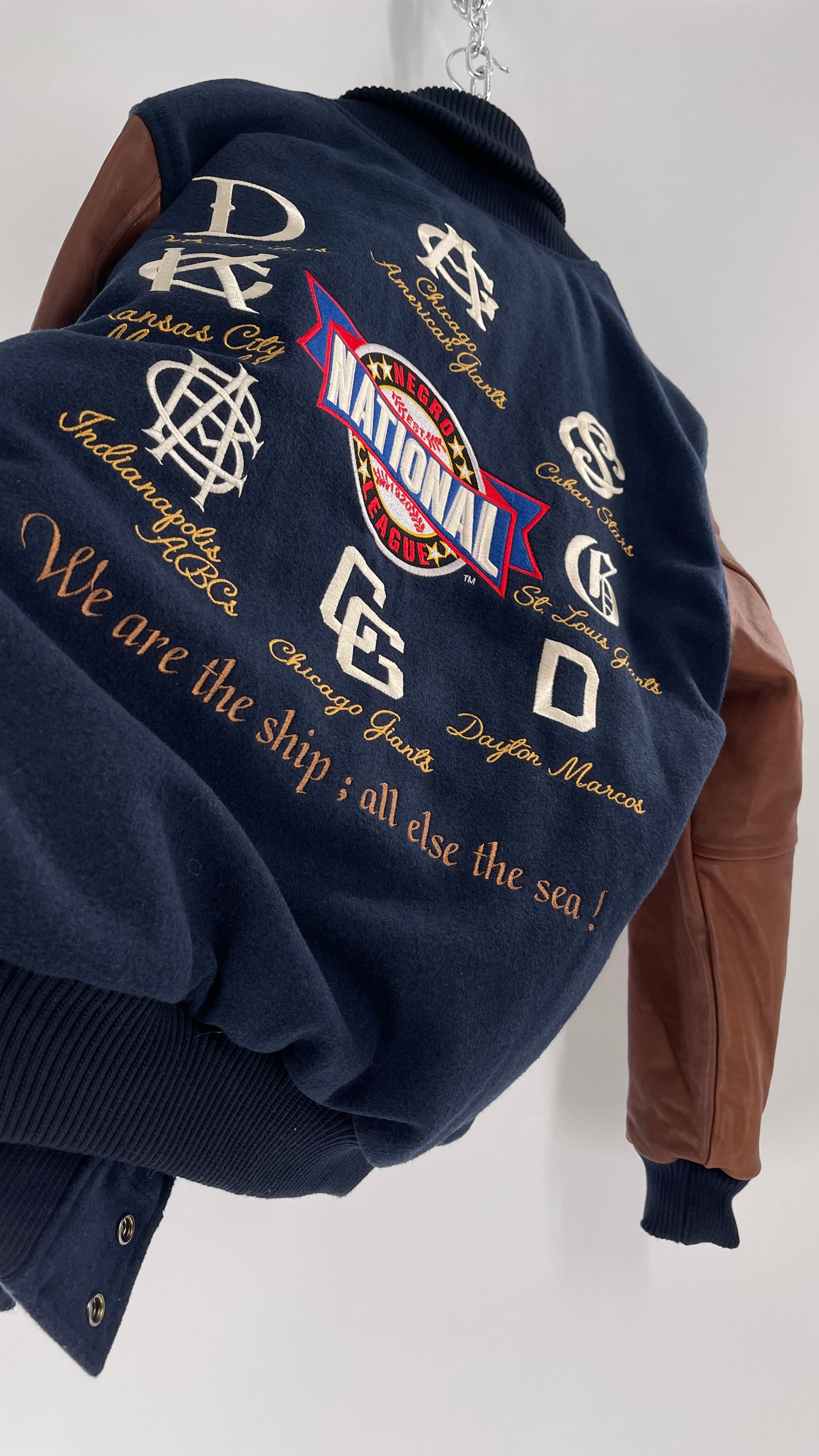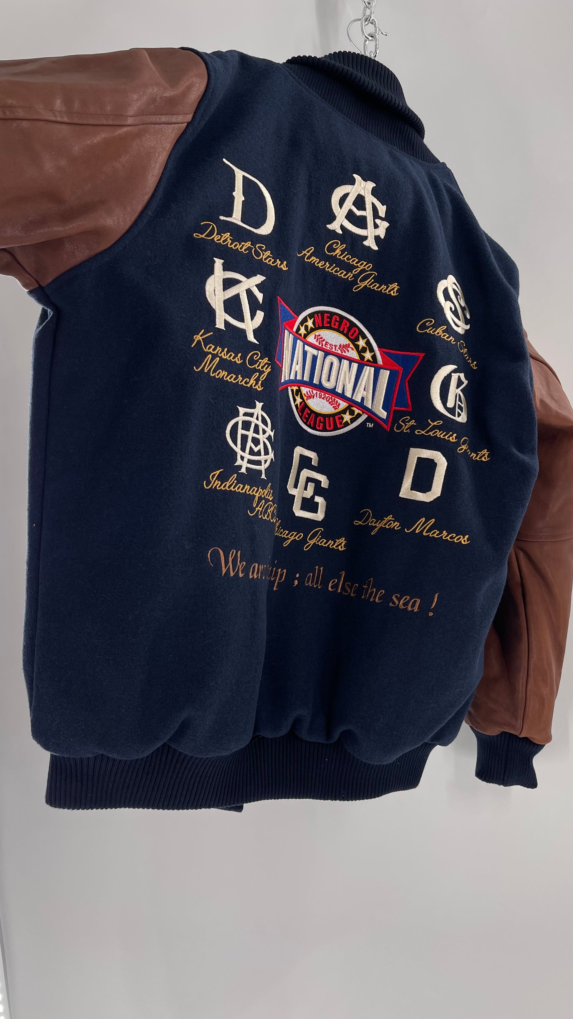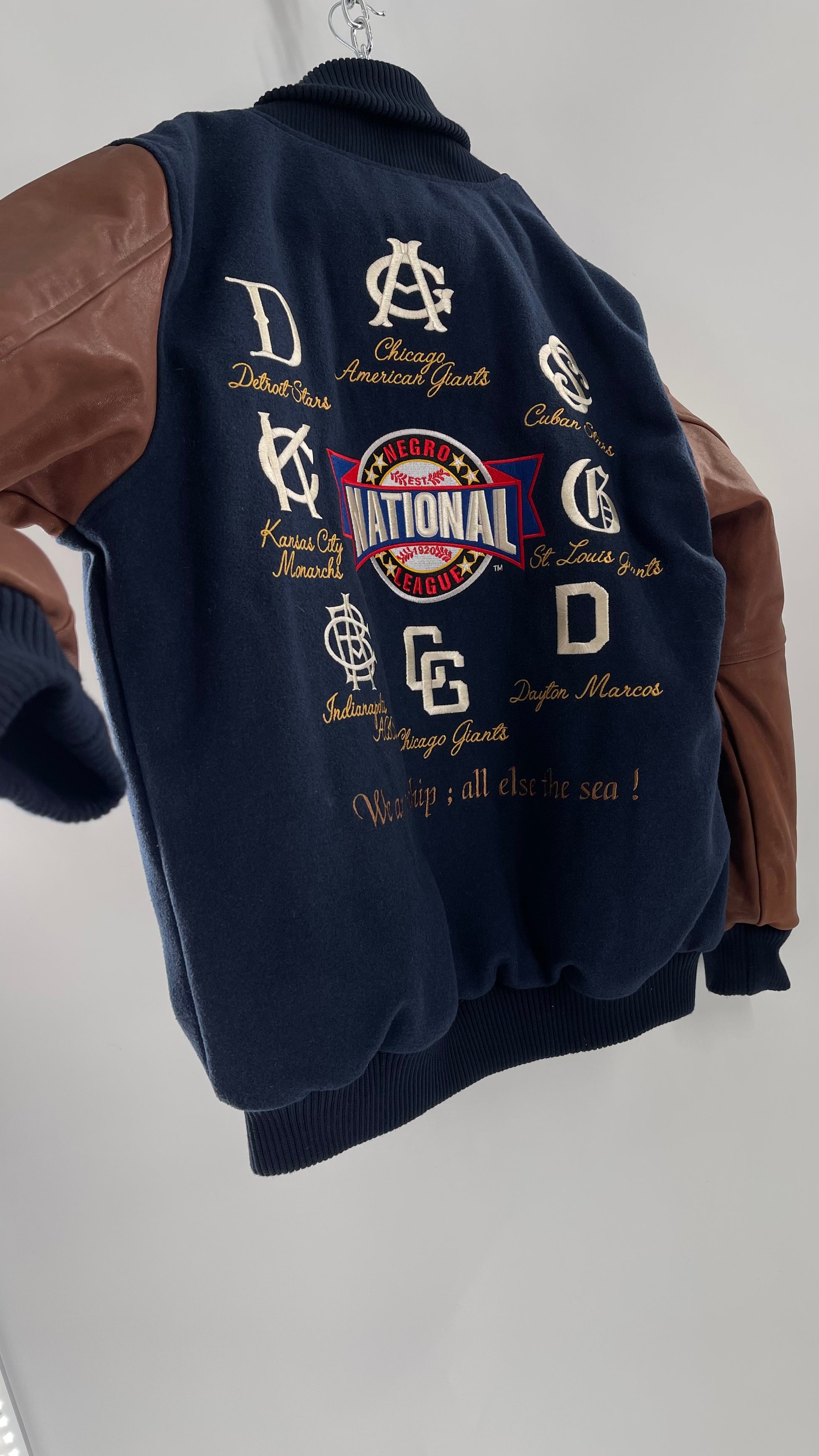 100th Anniversary Negro Leagues Wool Varsity Jacket with vegan leather arms and patches |