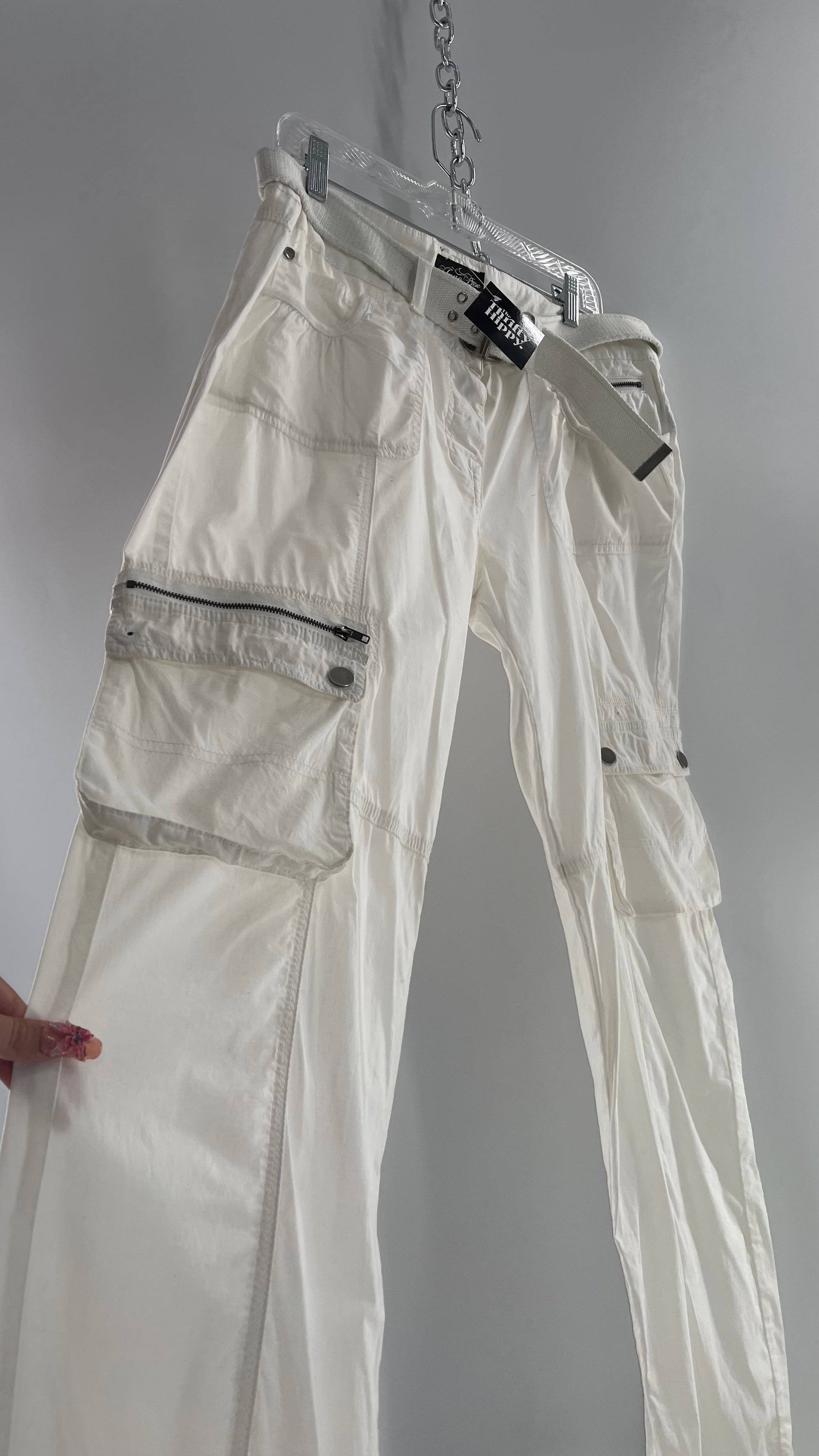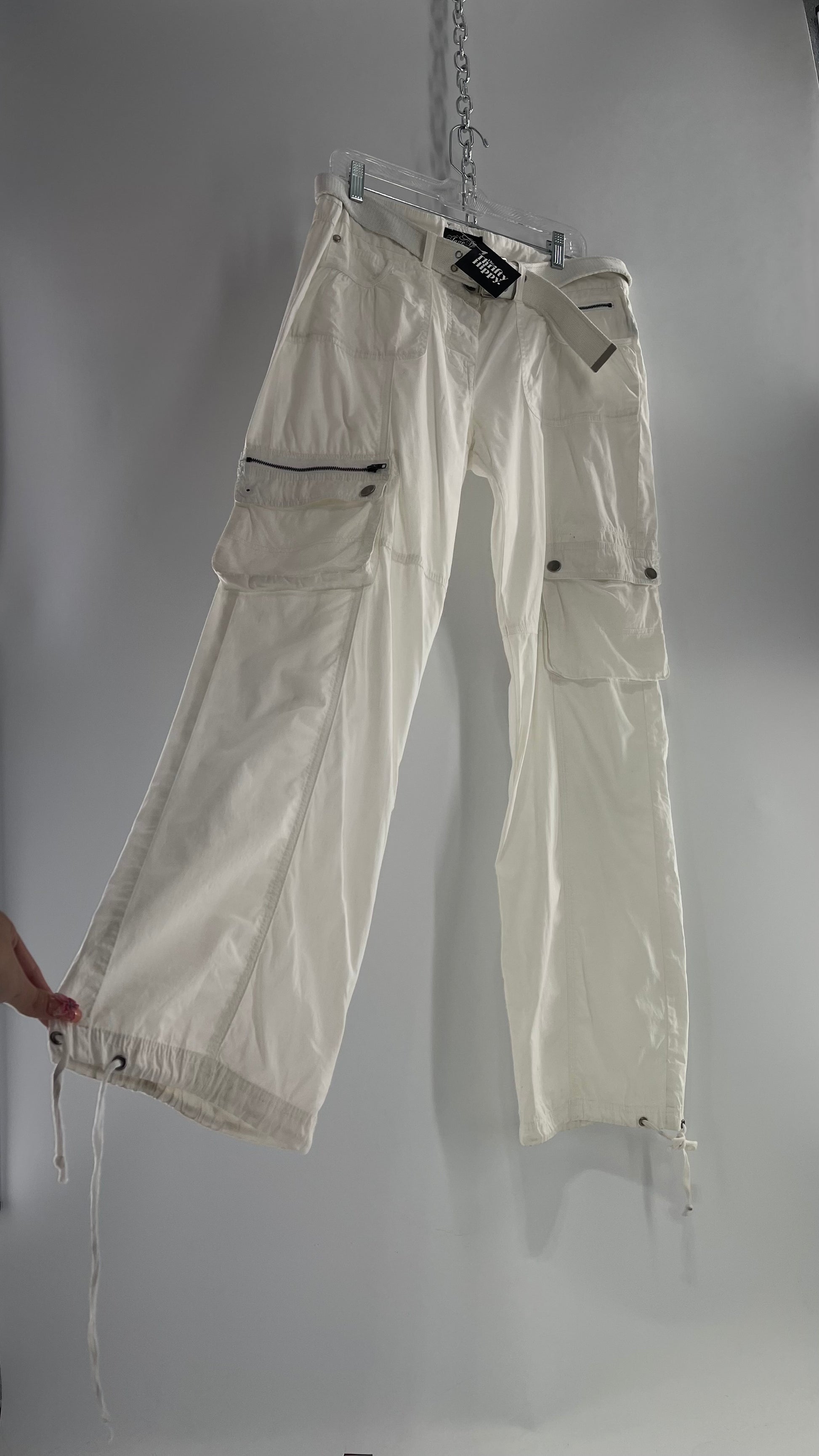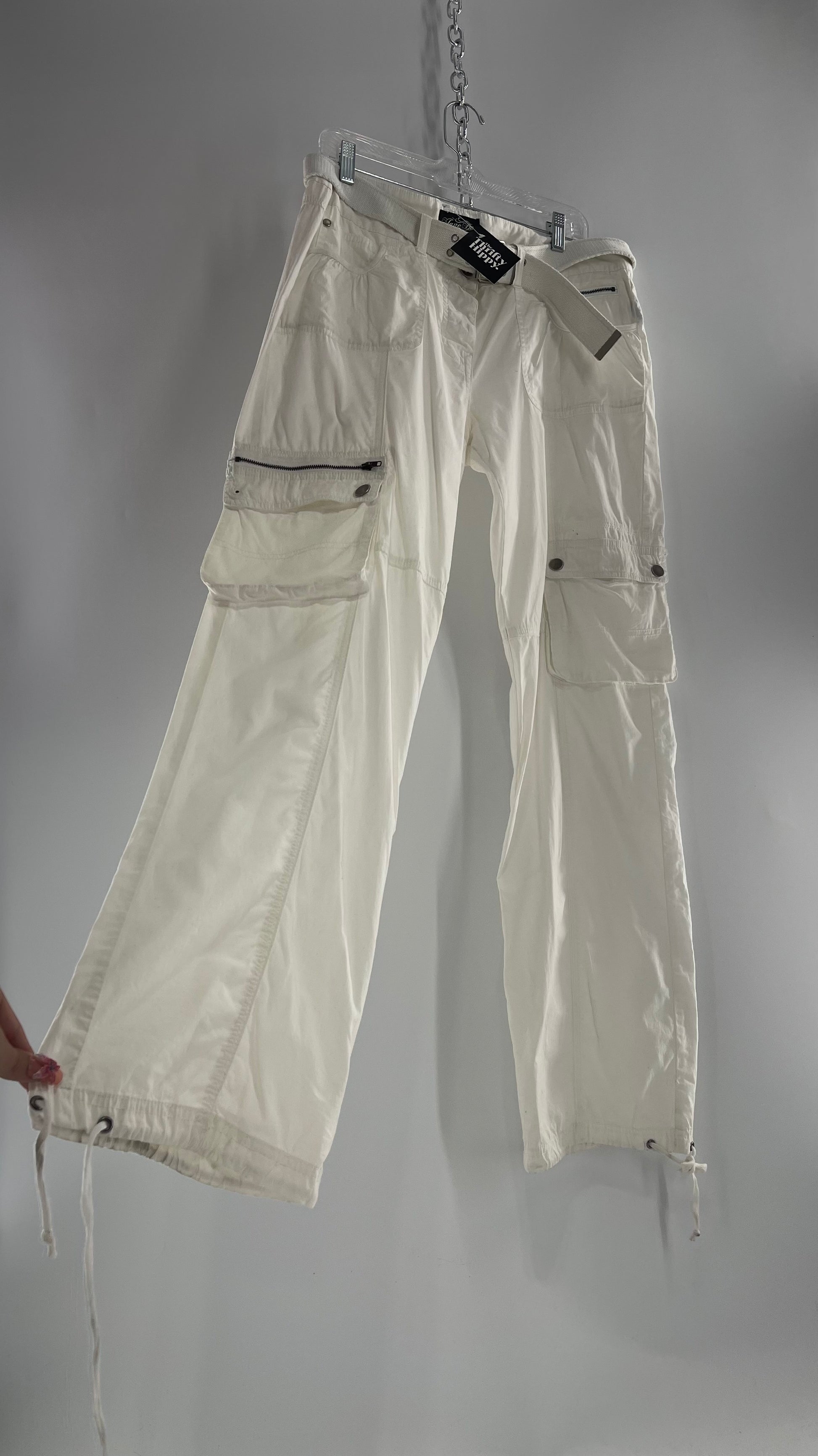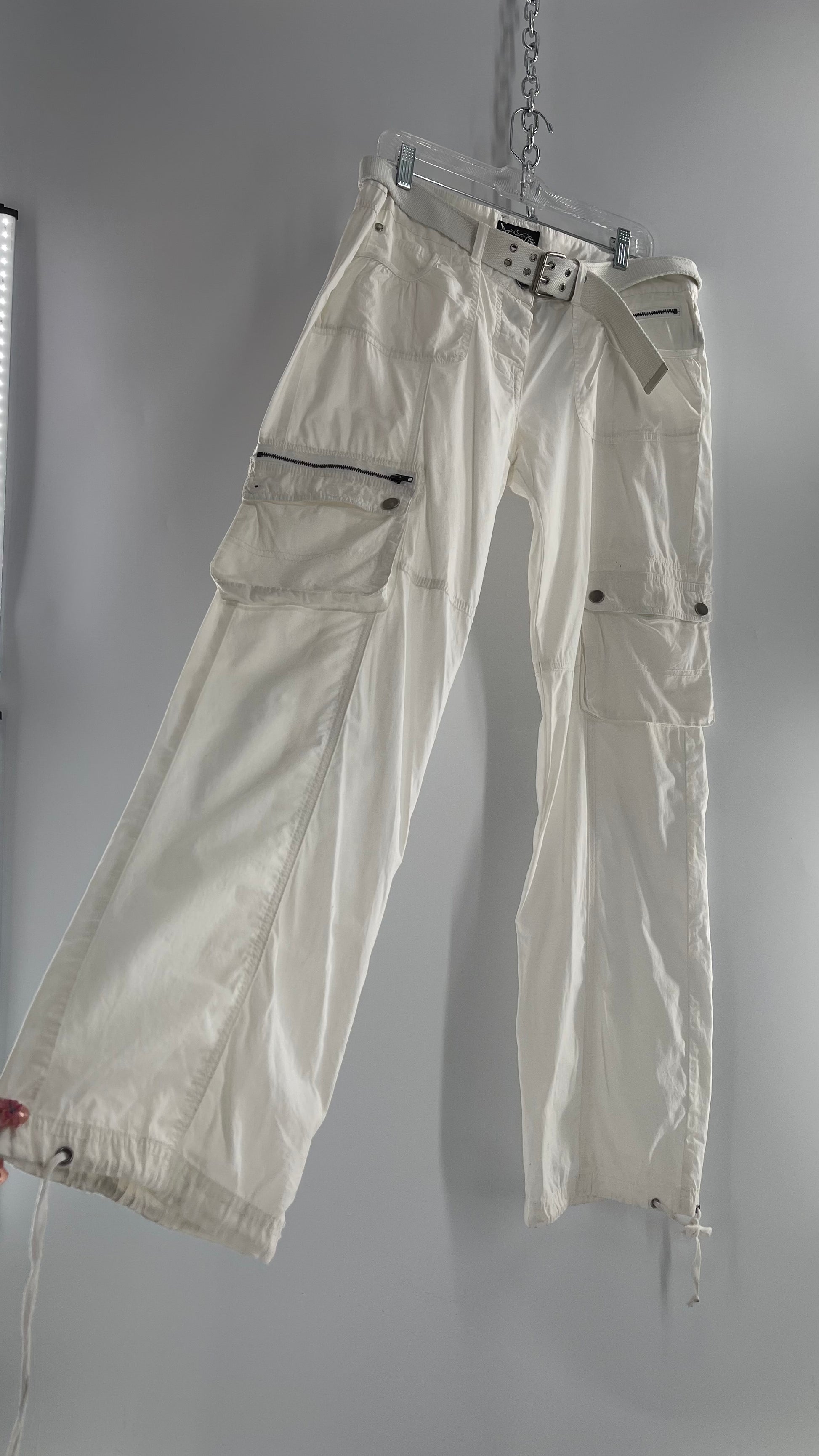 Vintage 1990s Jane Doe Low Rise White Baggy Cargos with Belted Waistline