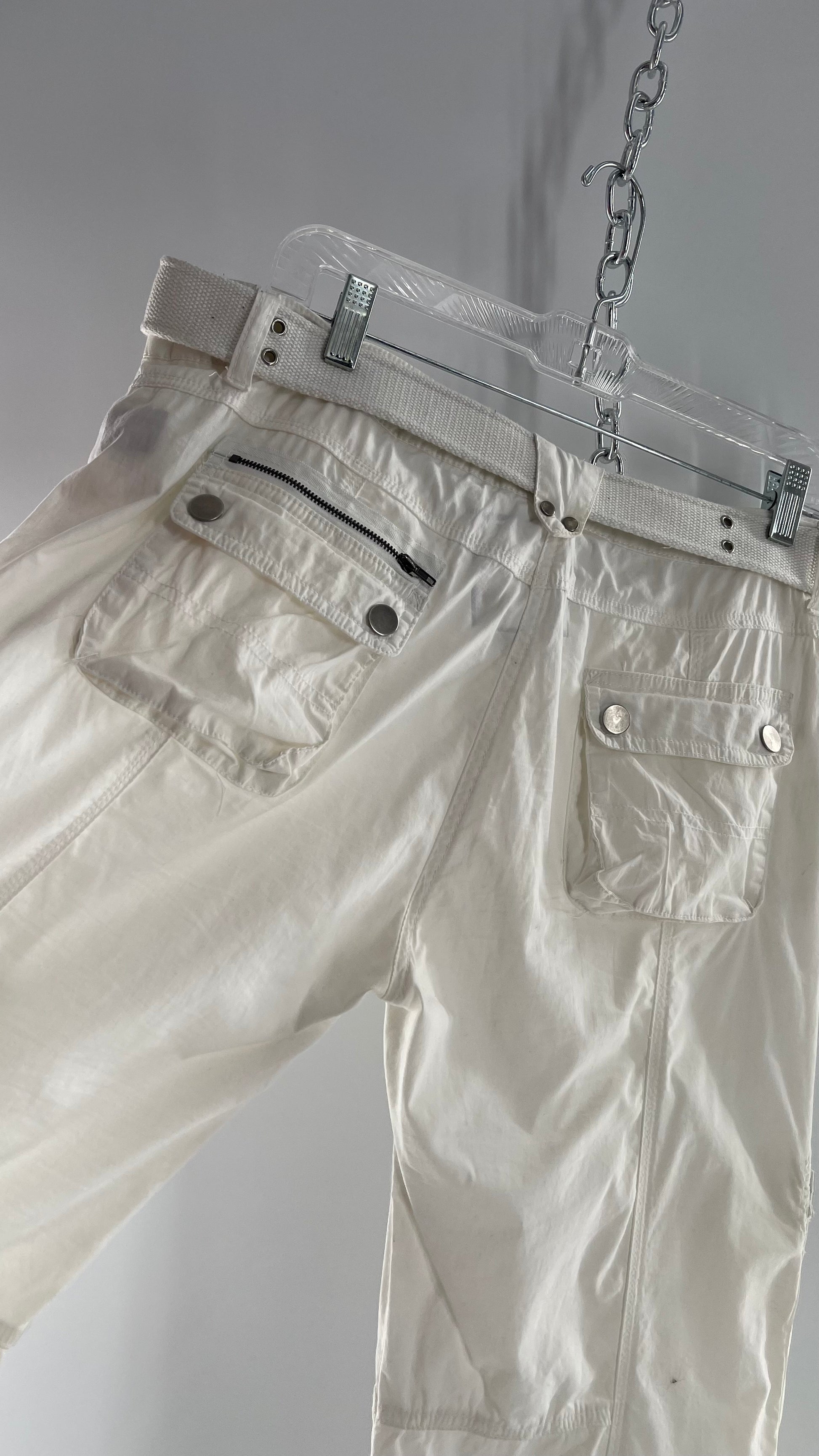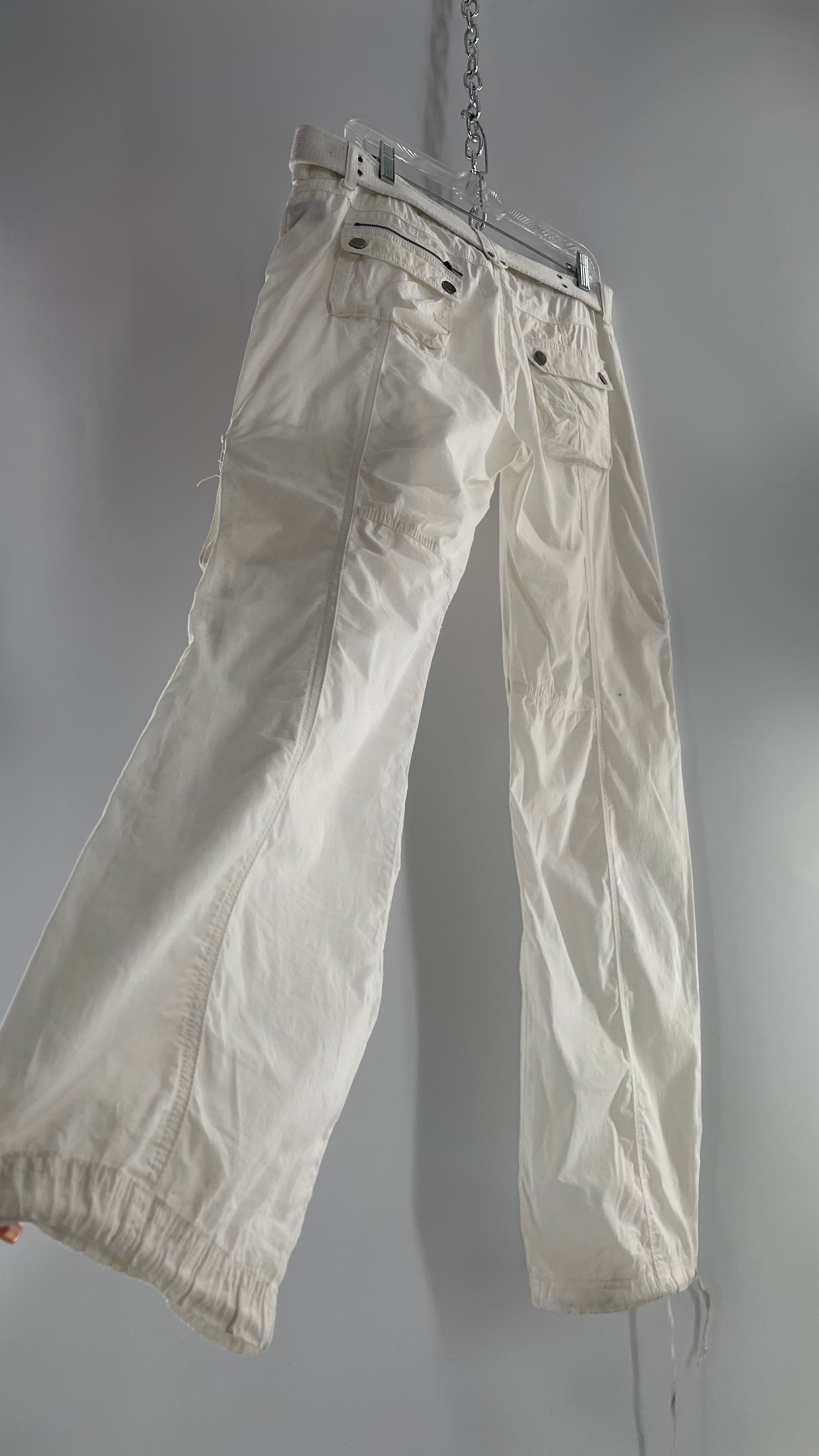 Vintage 1990s Jane Doe Low Rise White Baggy Cargos with Belted Waistline (32)
