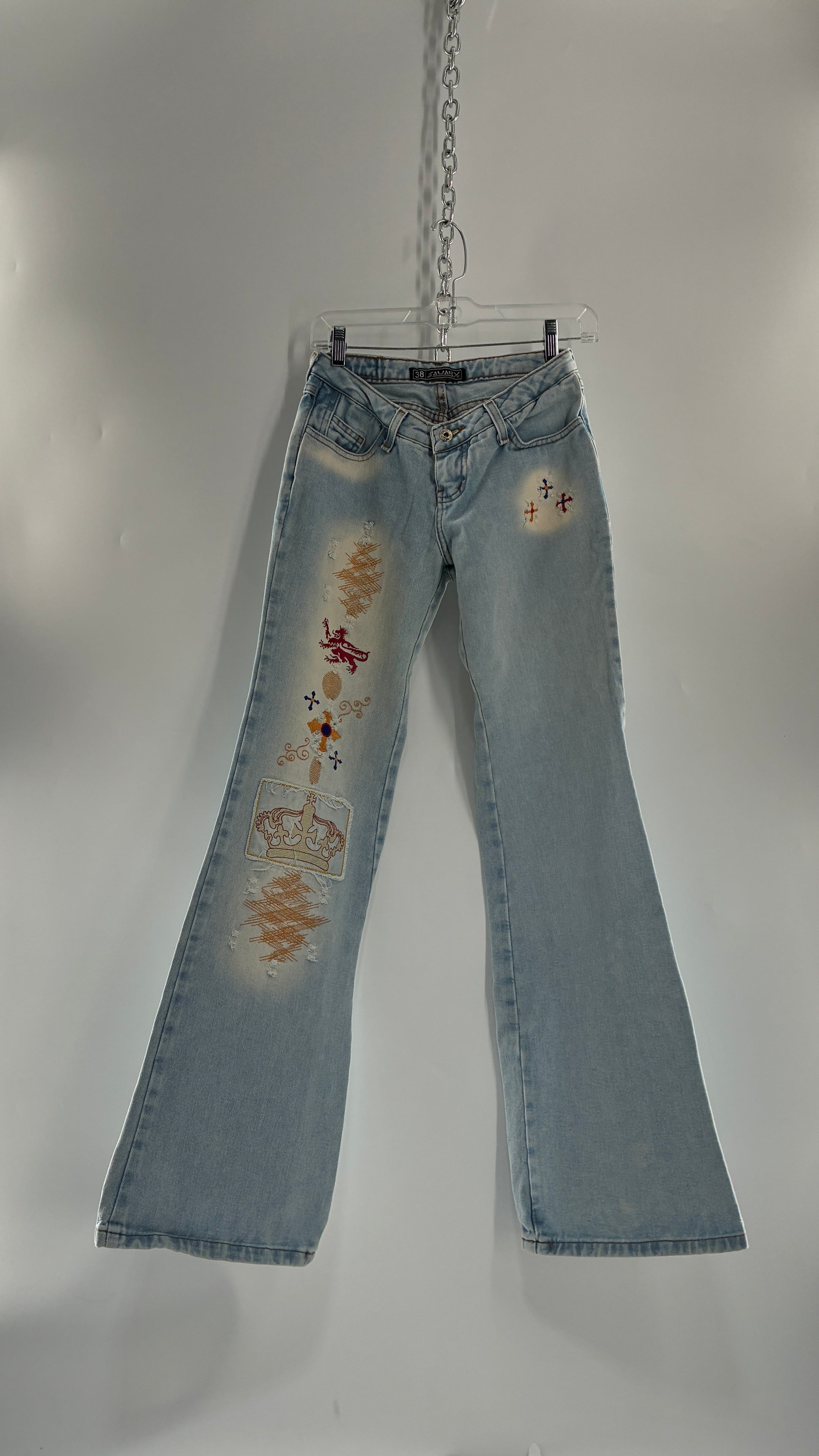 Vintage SAWARY Light Wash Brazilian Jeans with Fade and Embroidered Details (38)