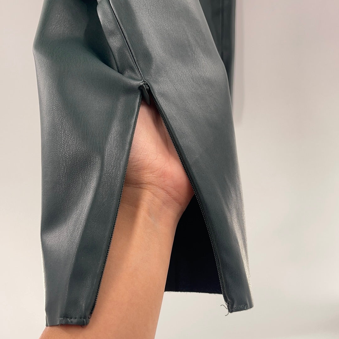 Zara Emerald Green Faux Leather Trouser With slender leg and zipper ankle (SzL)