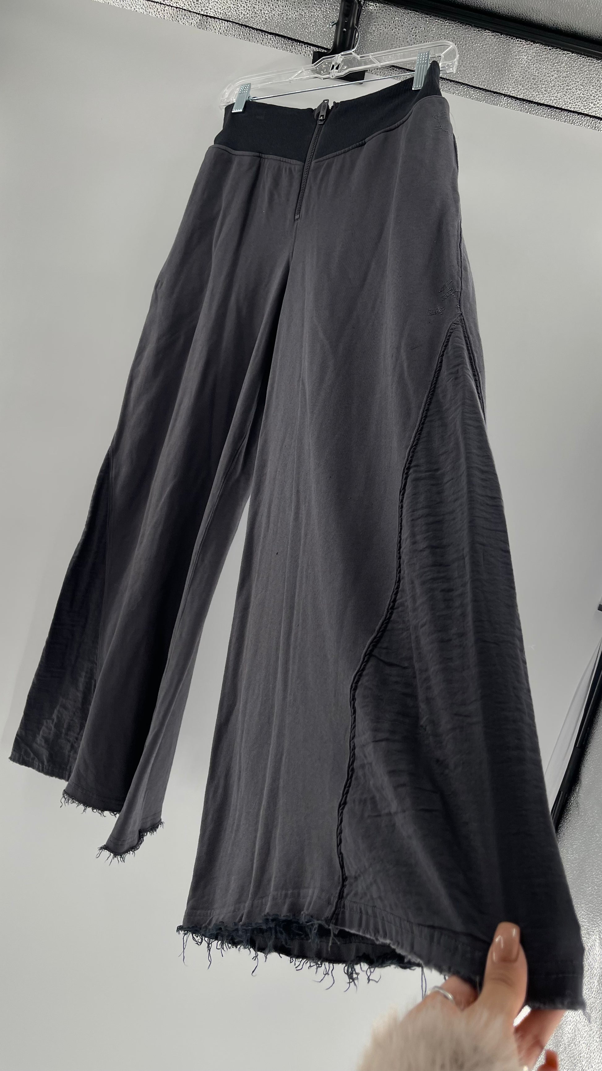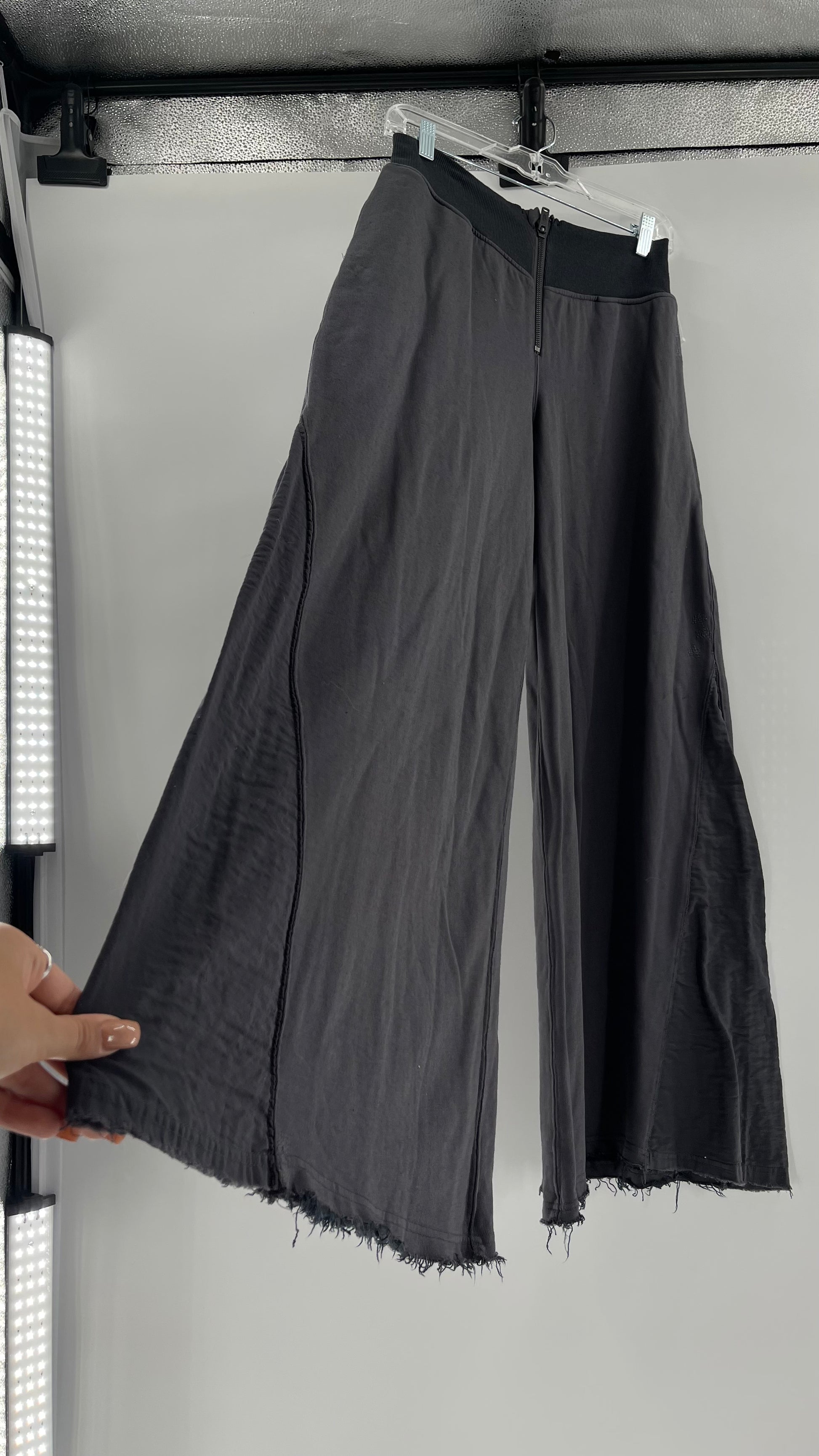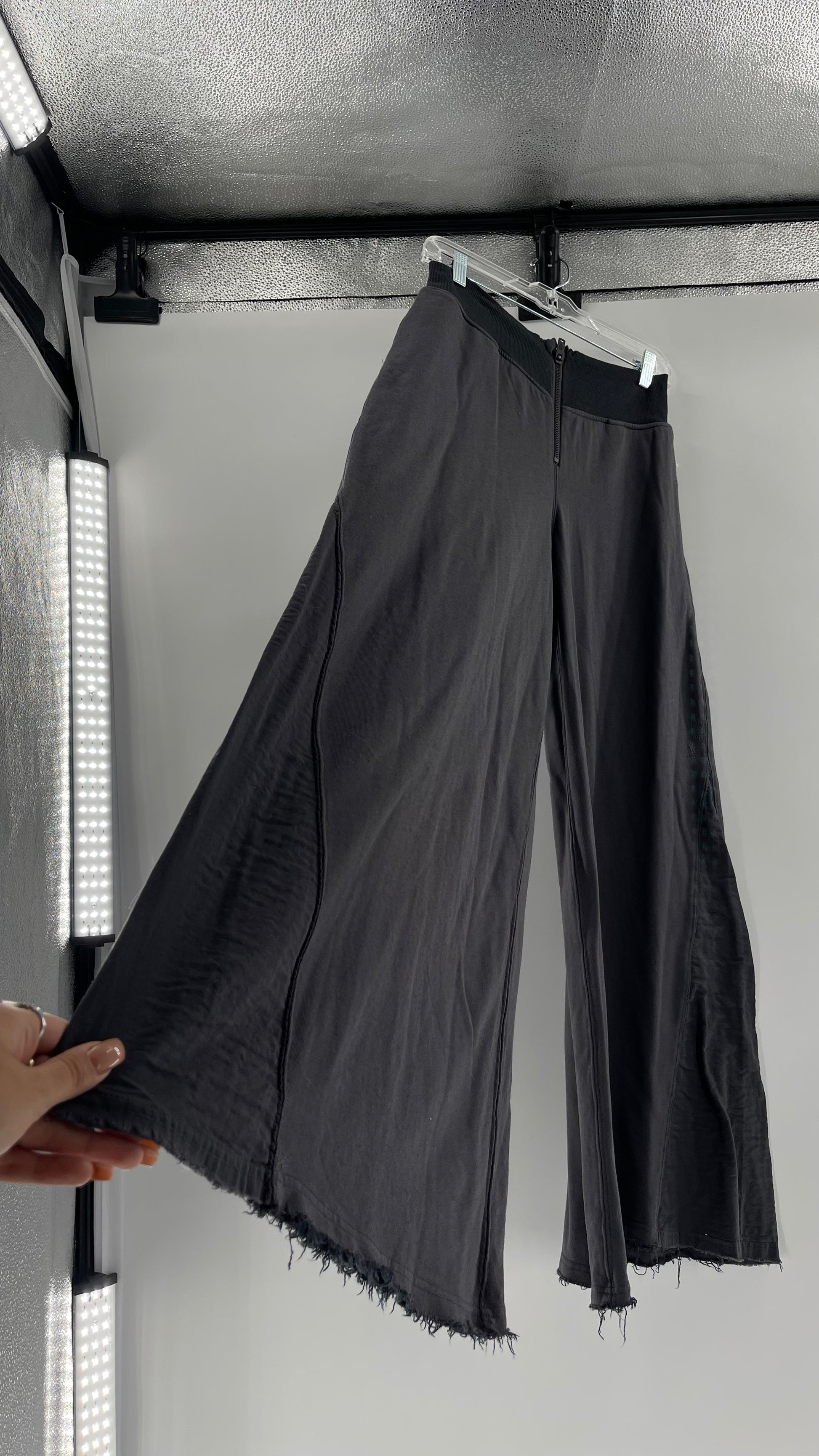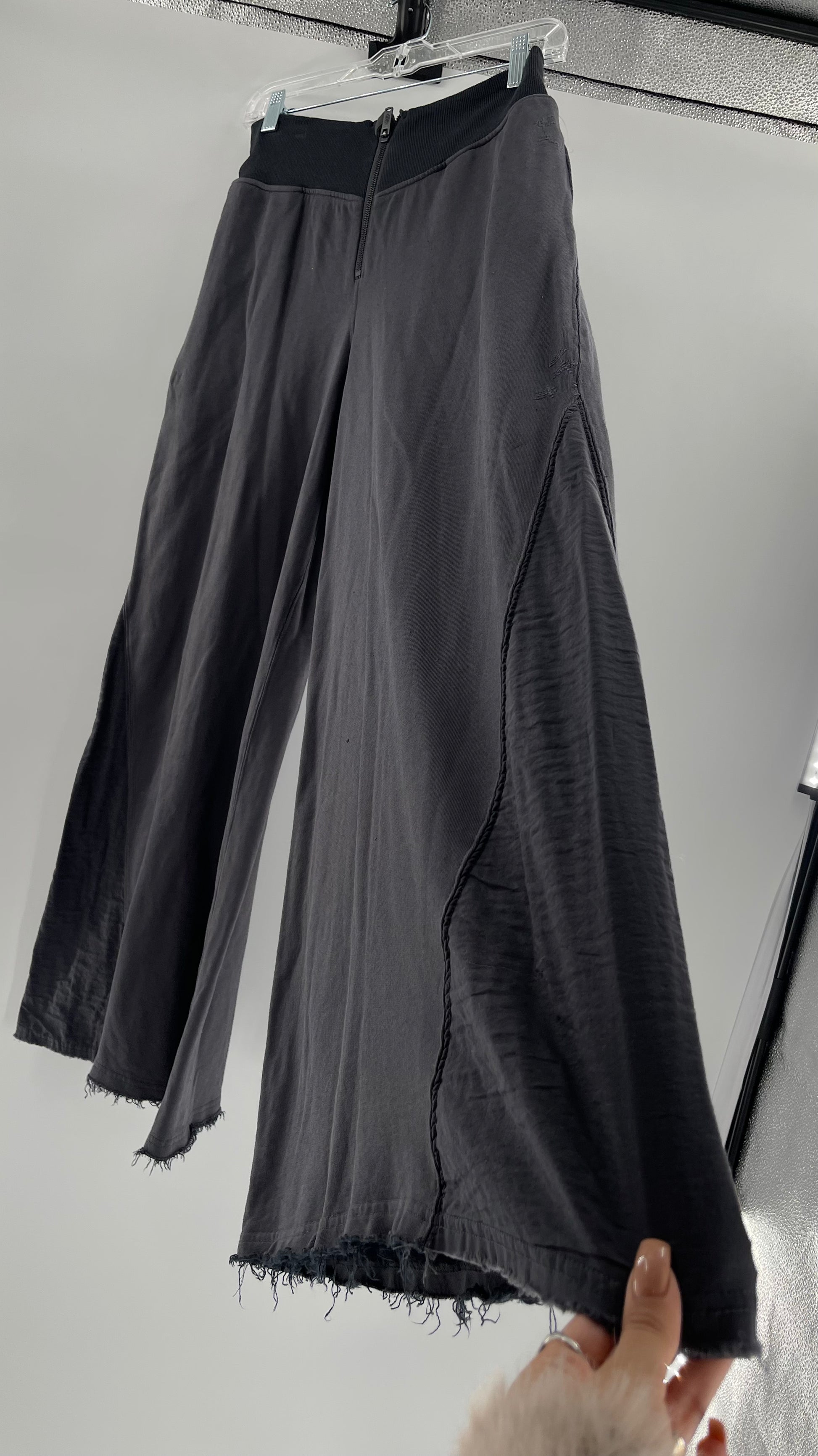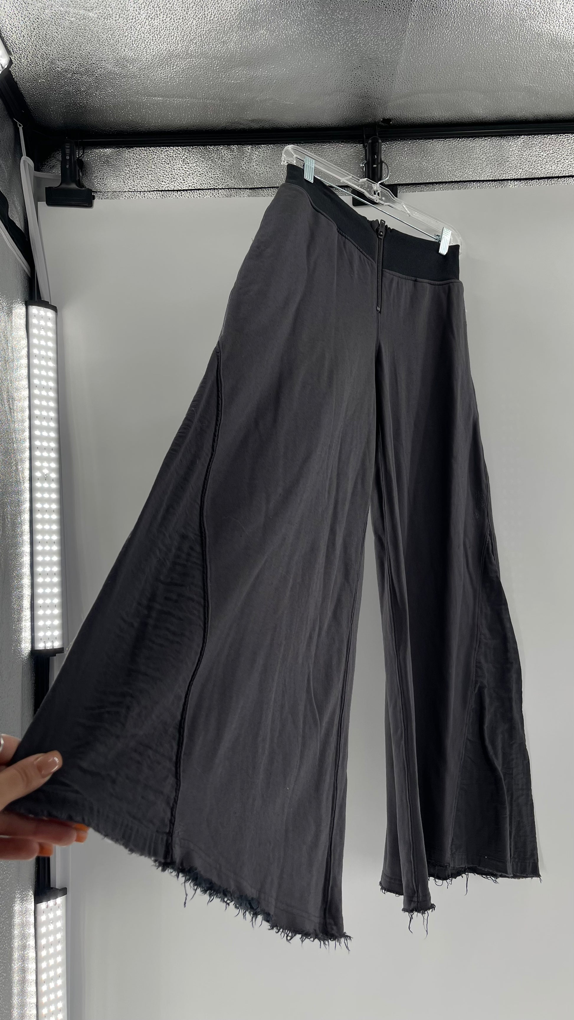 Free People Movement Charcoal Grey embroidered extreme wide leg Jersey pants with high zip up waist (Size S)