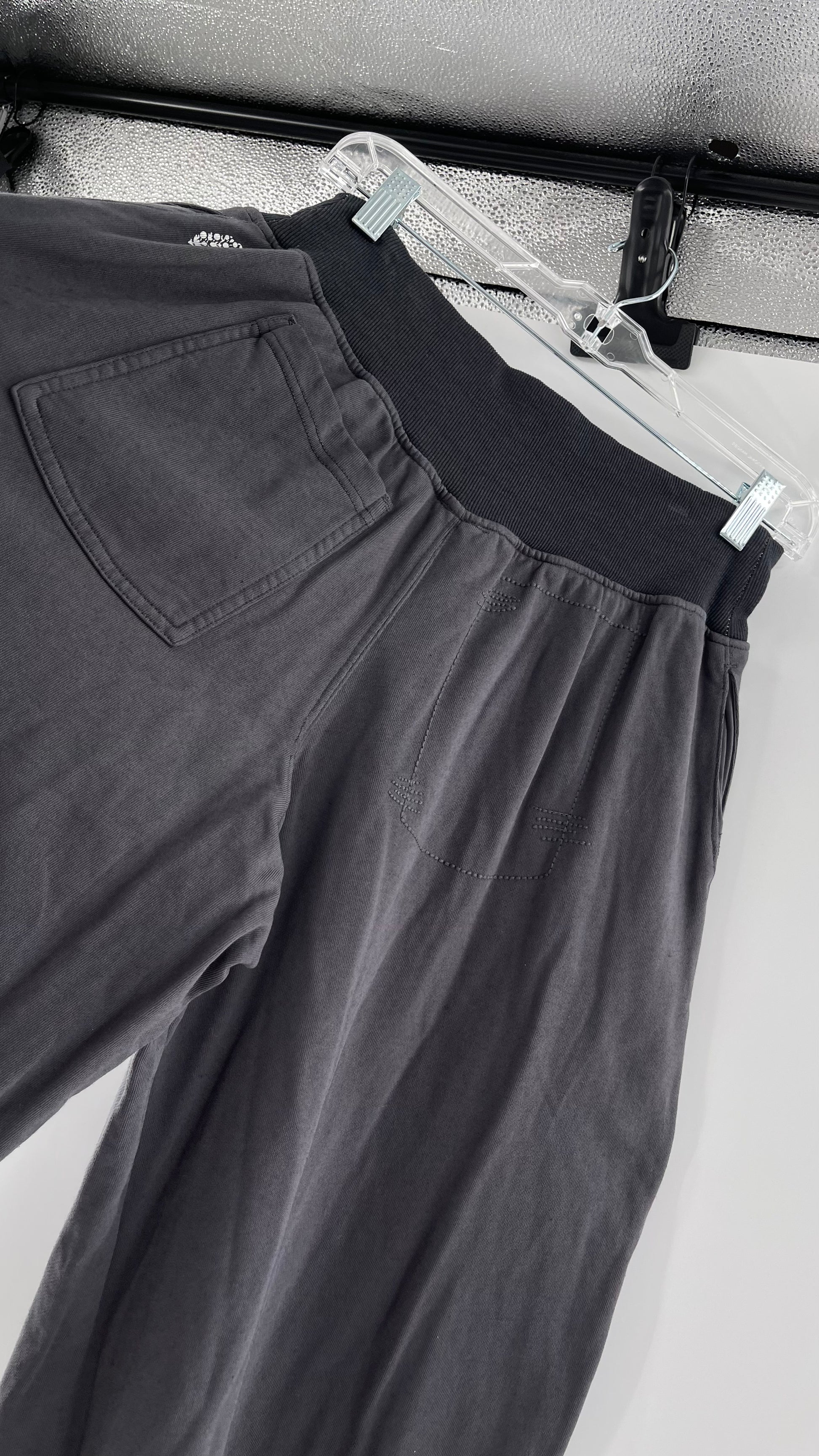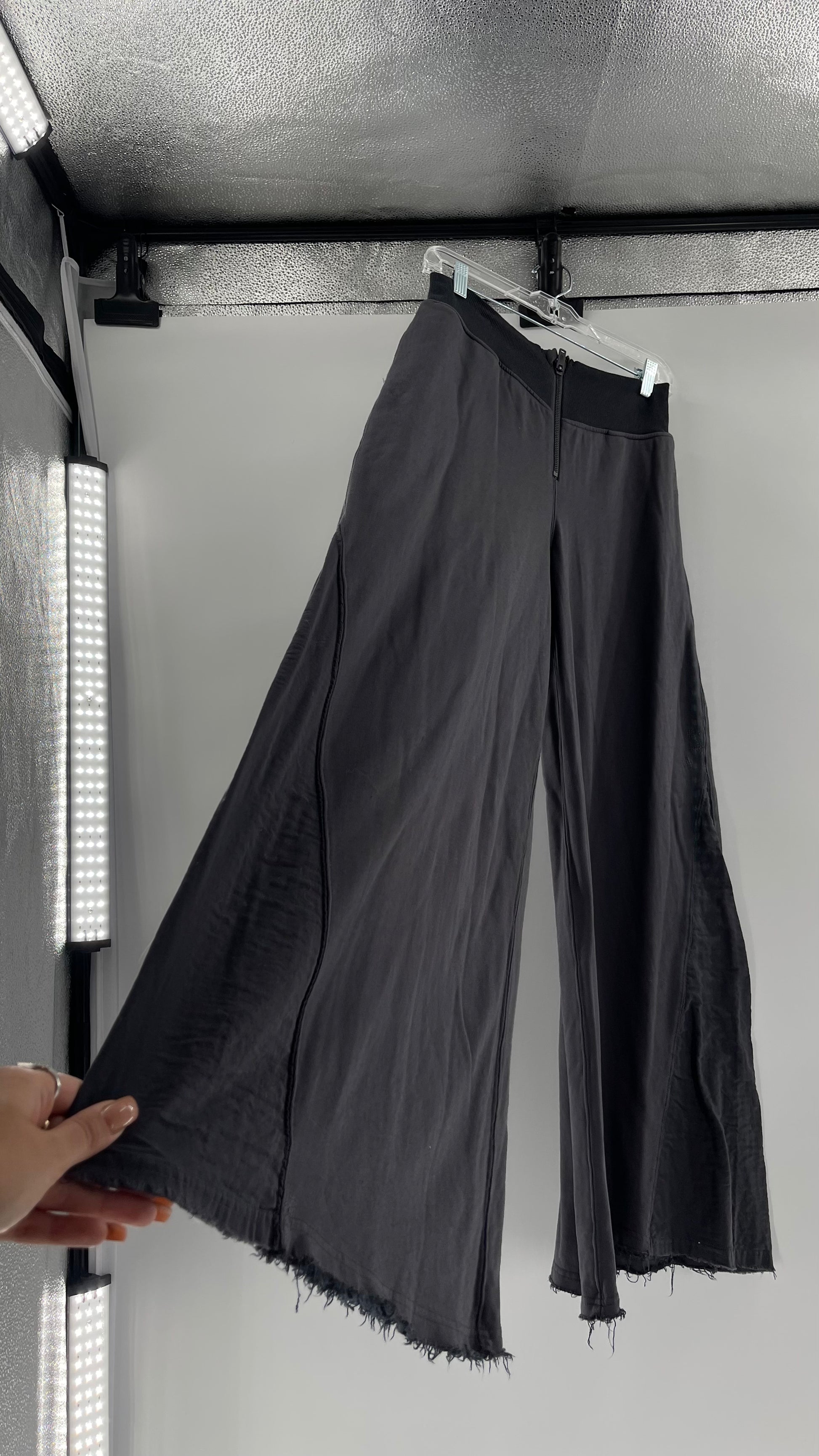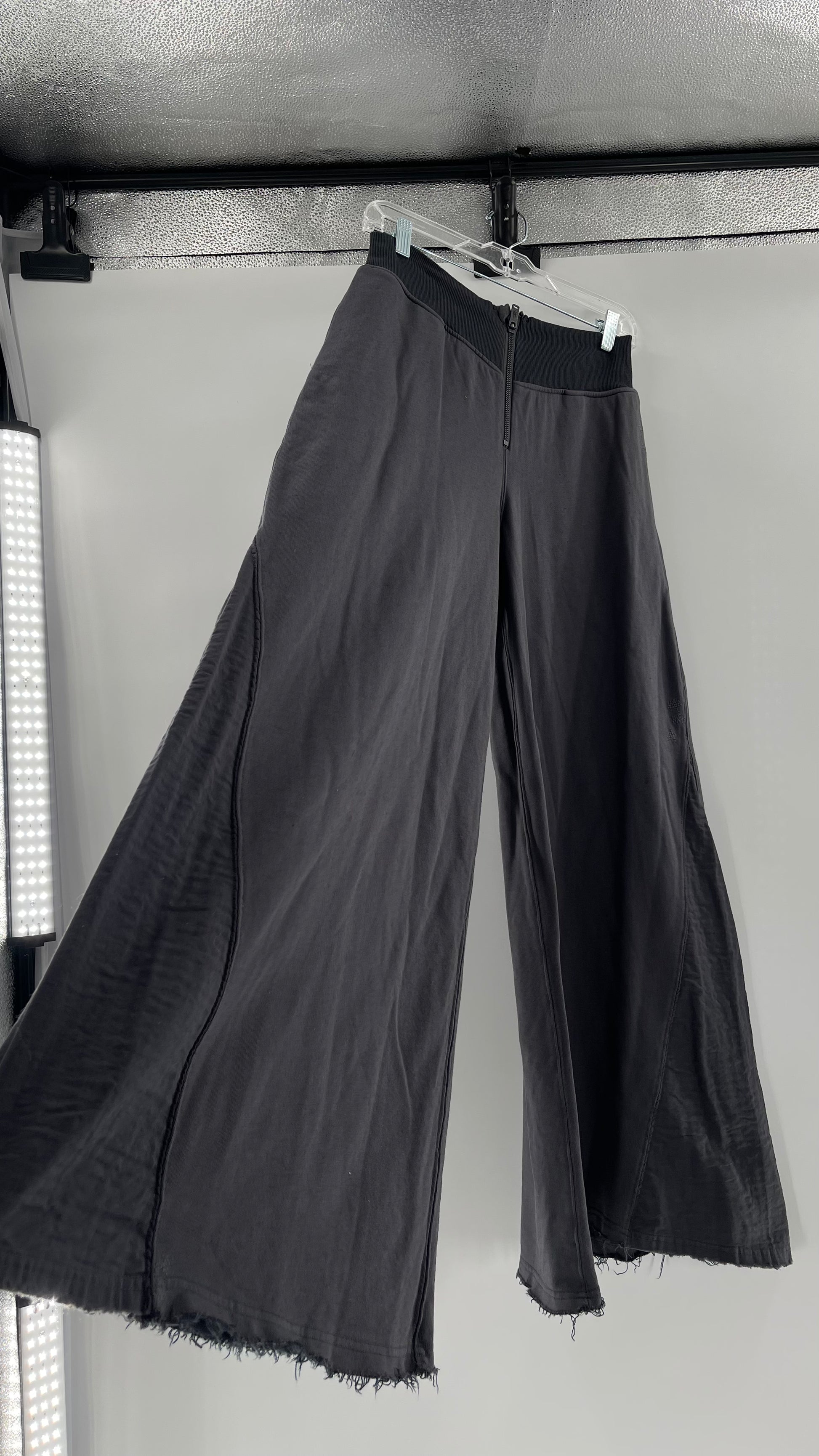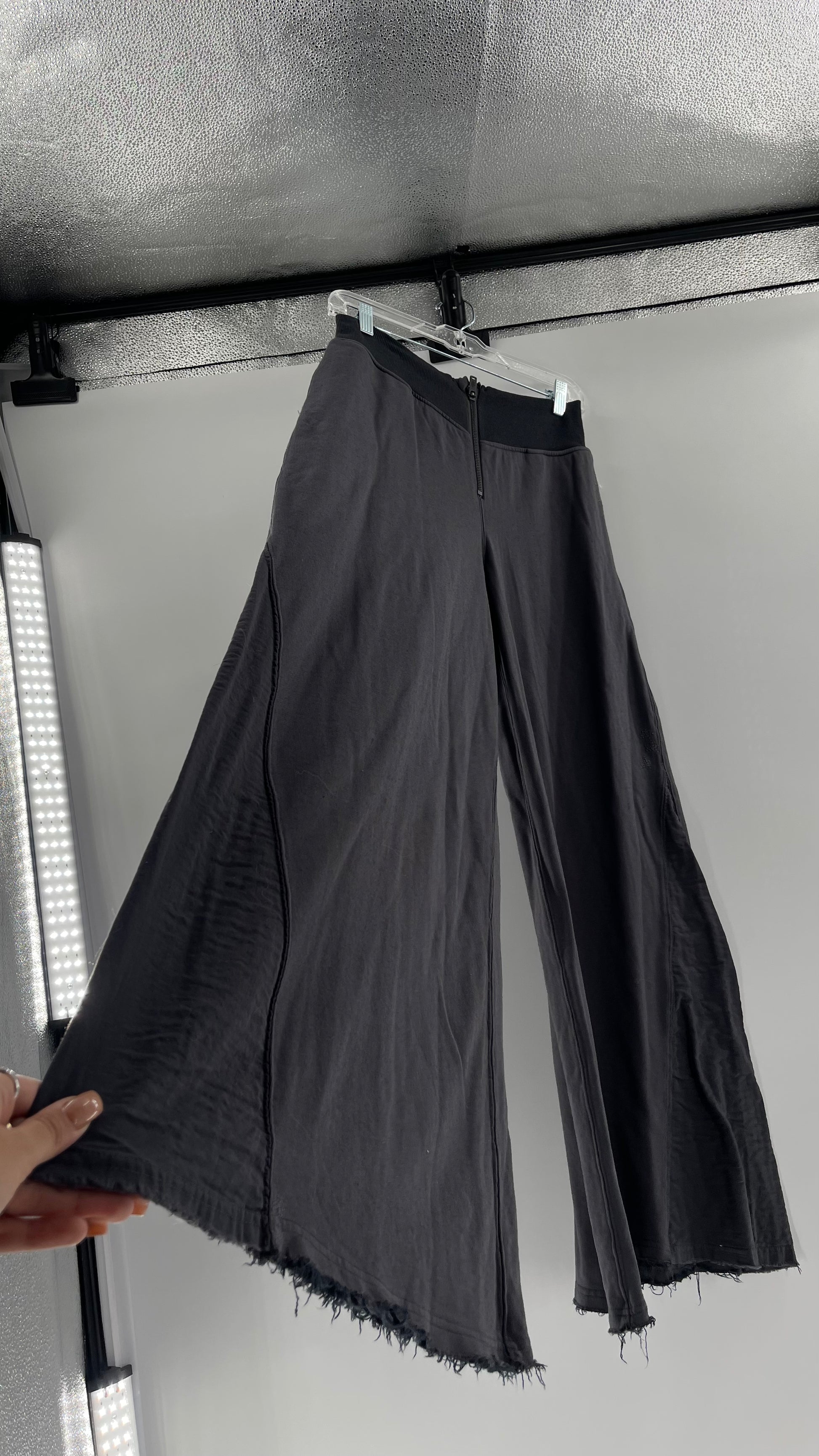 Free People Movement Charcoal Grey embroidered extreme wide leg Jersey pants with high zip up waist (Size S)