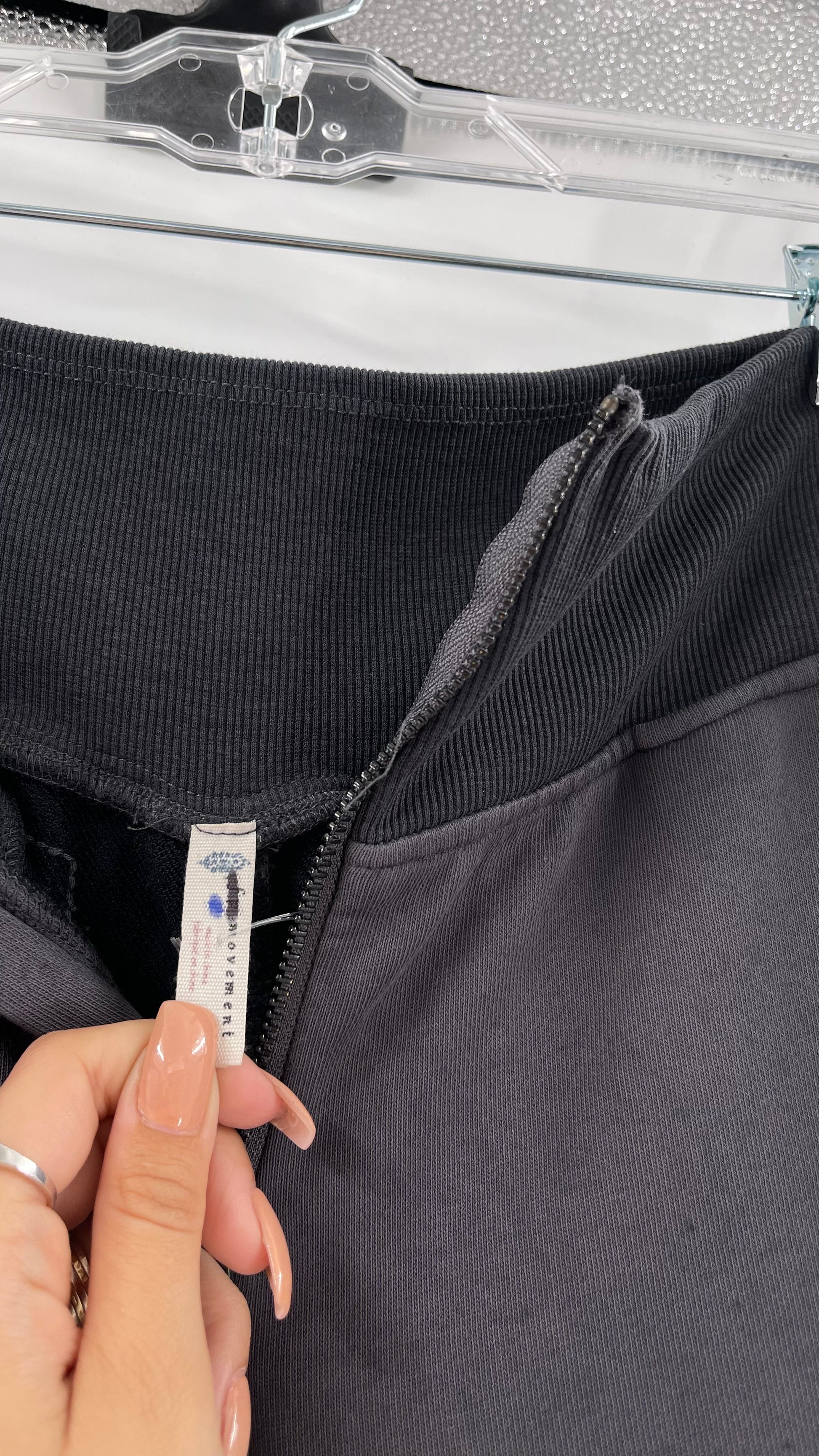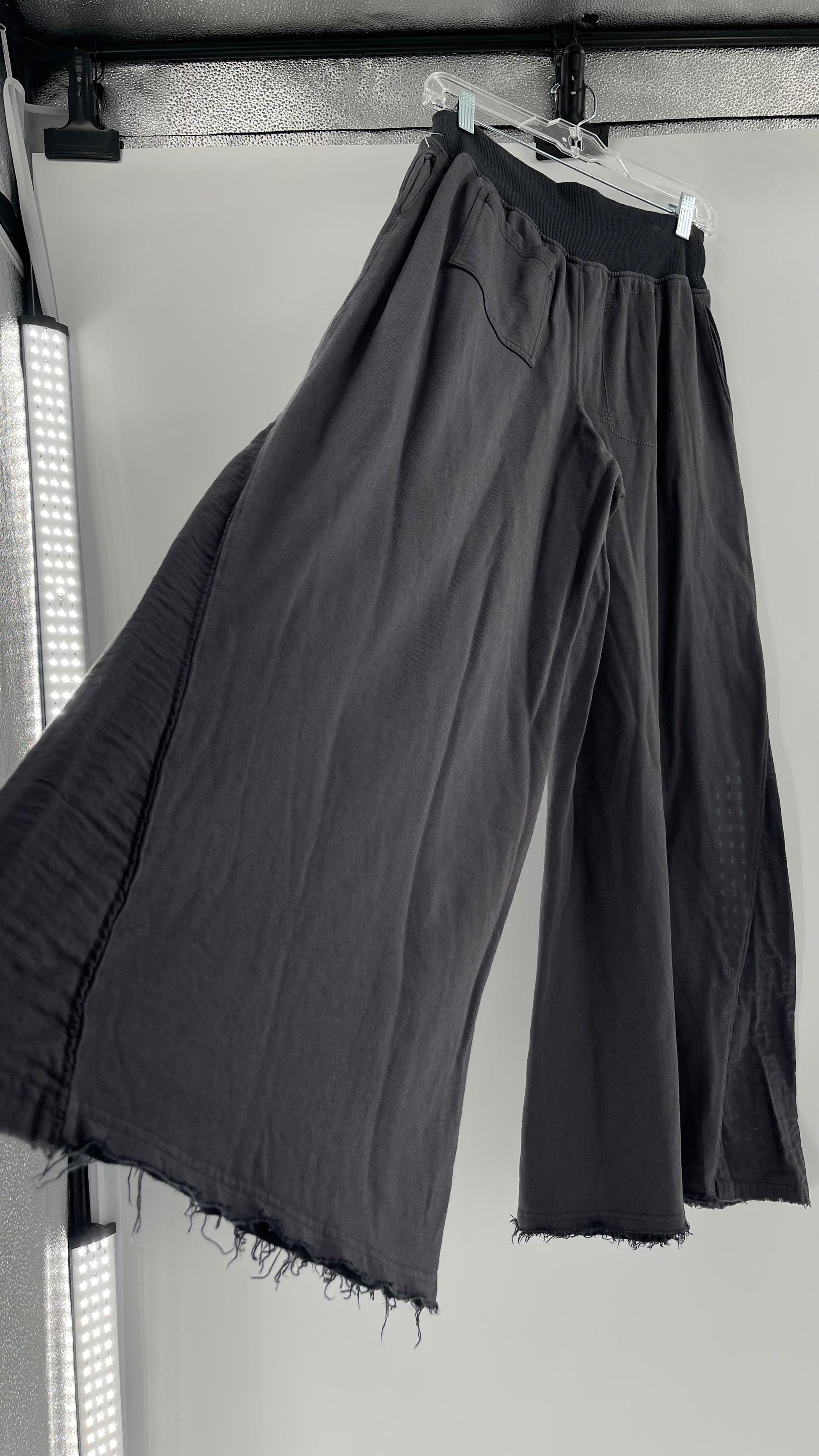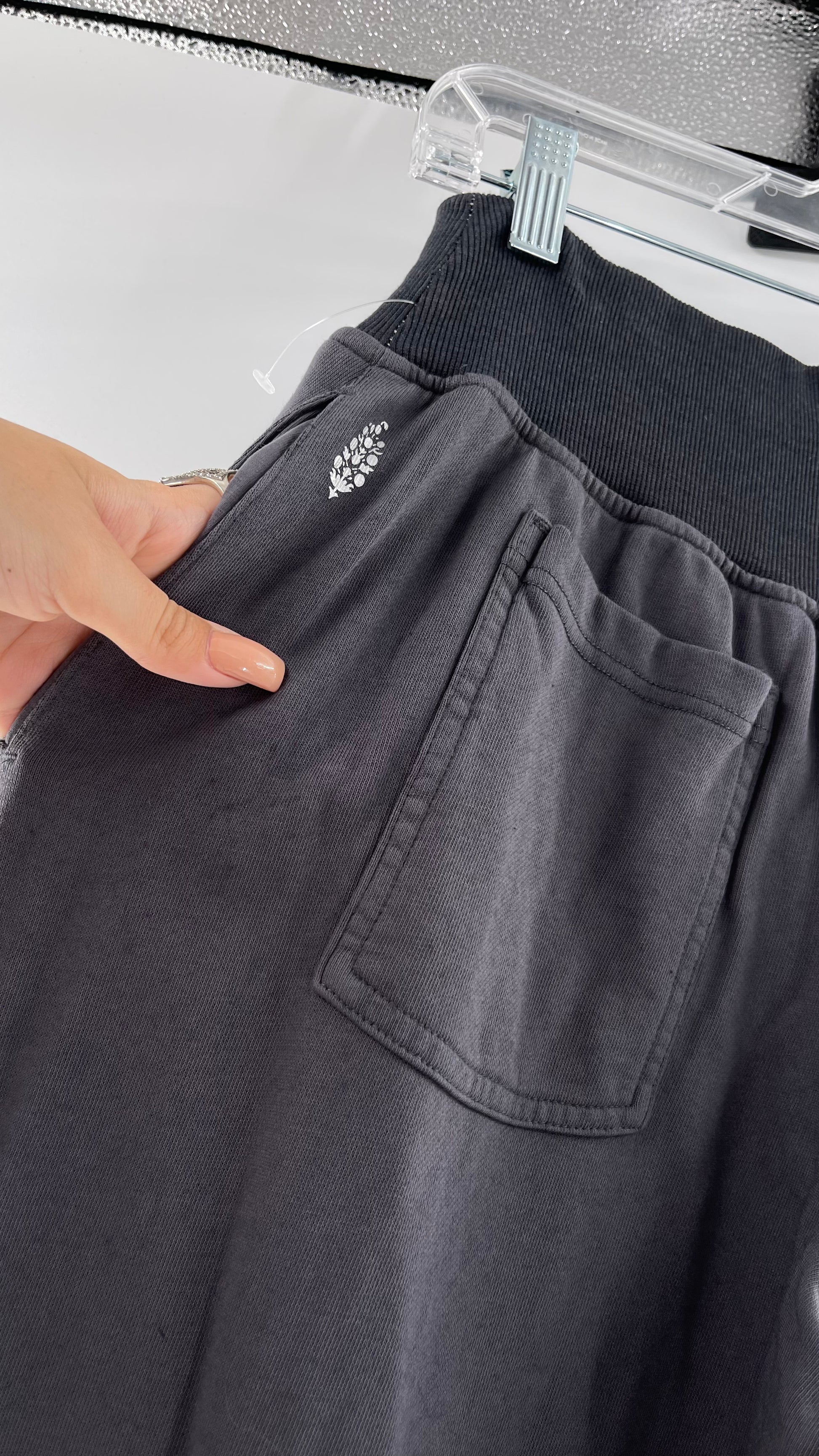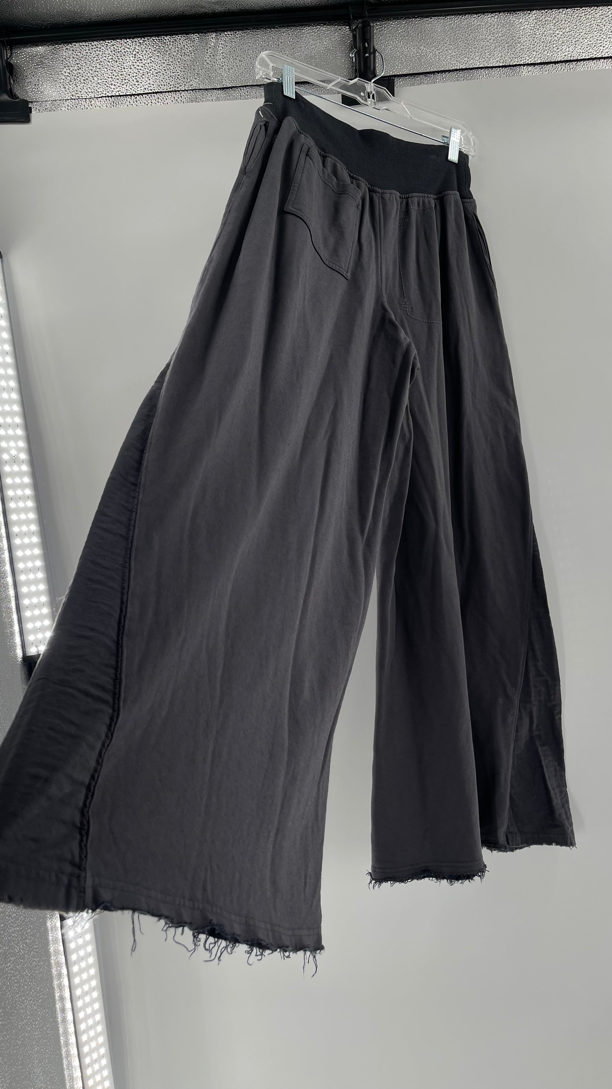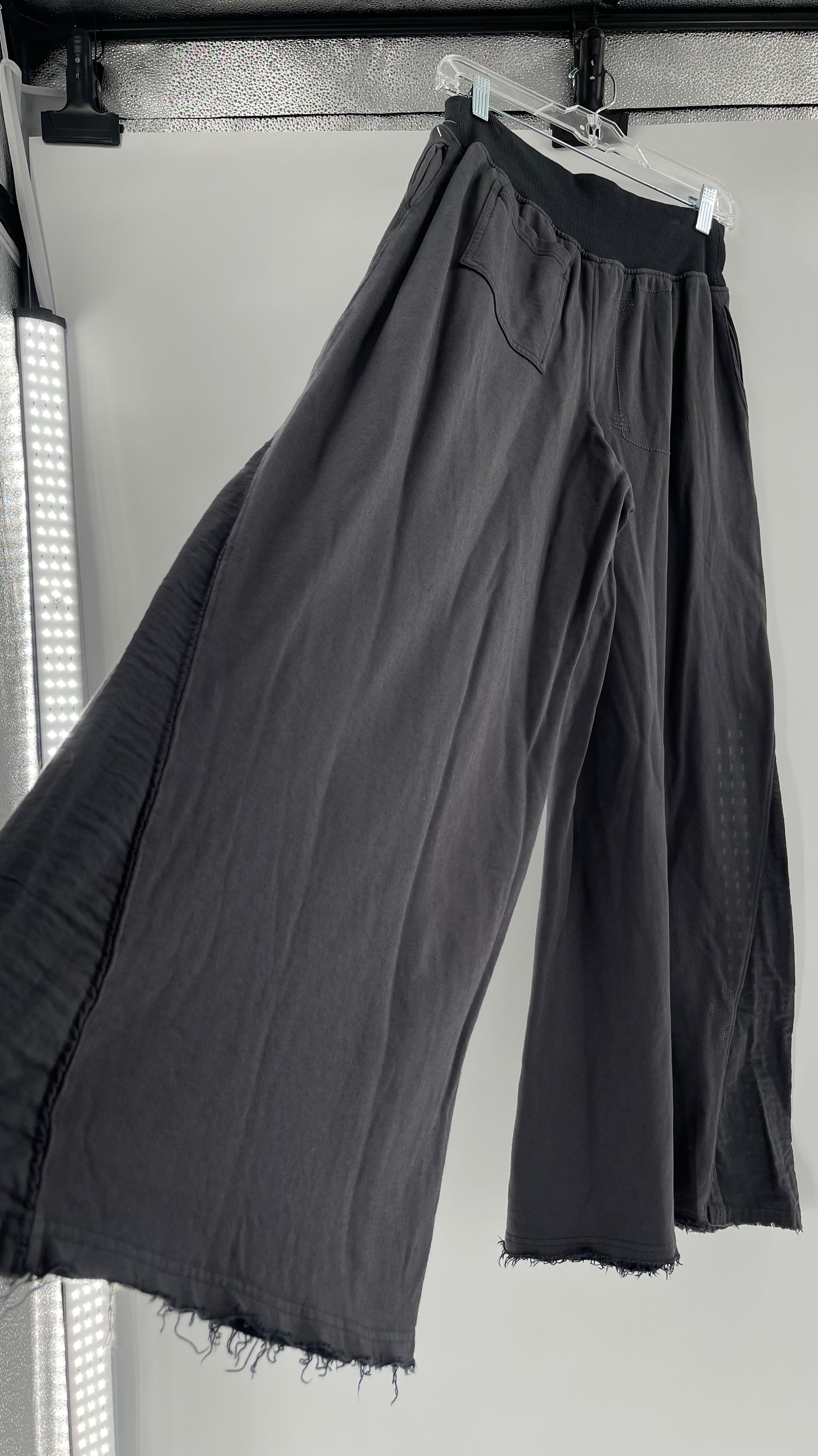 Free People Movement Charcoal Grey embroidered extreme wide leg Jersey pants with high zip up waist (Size S)