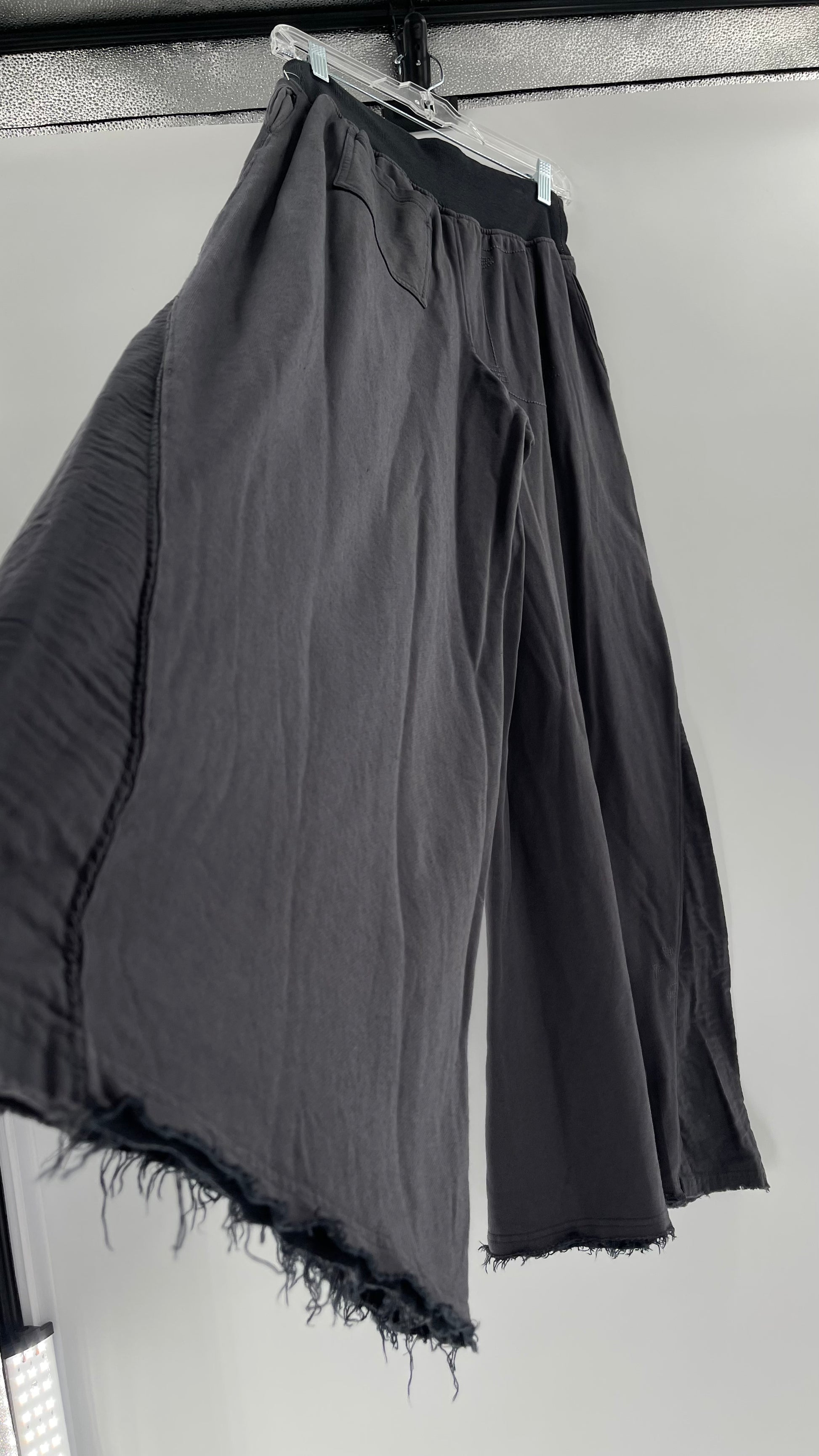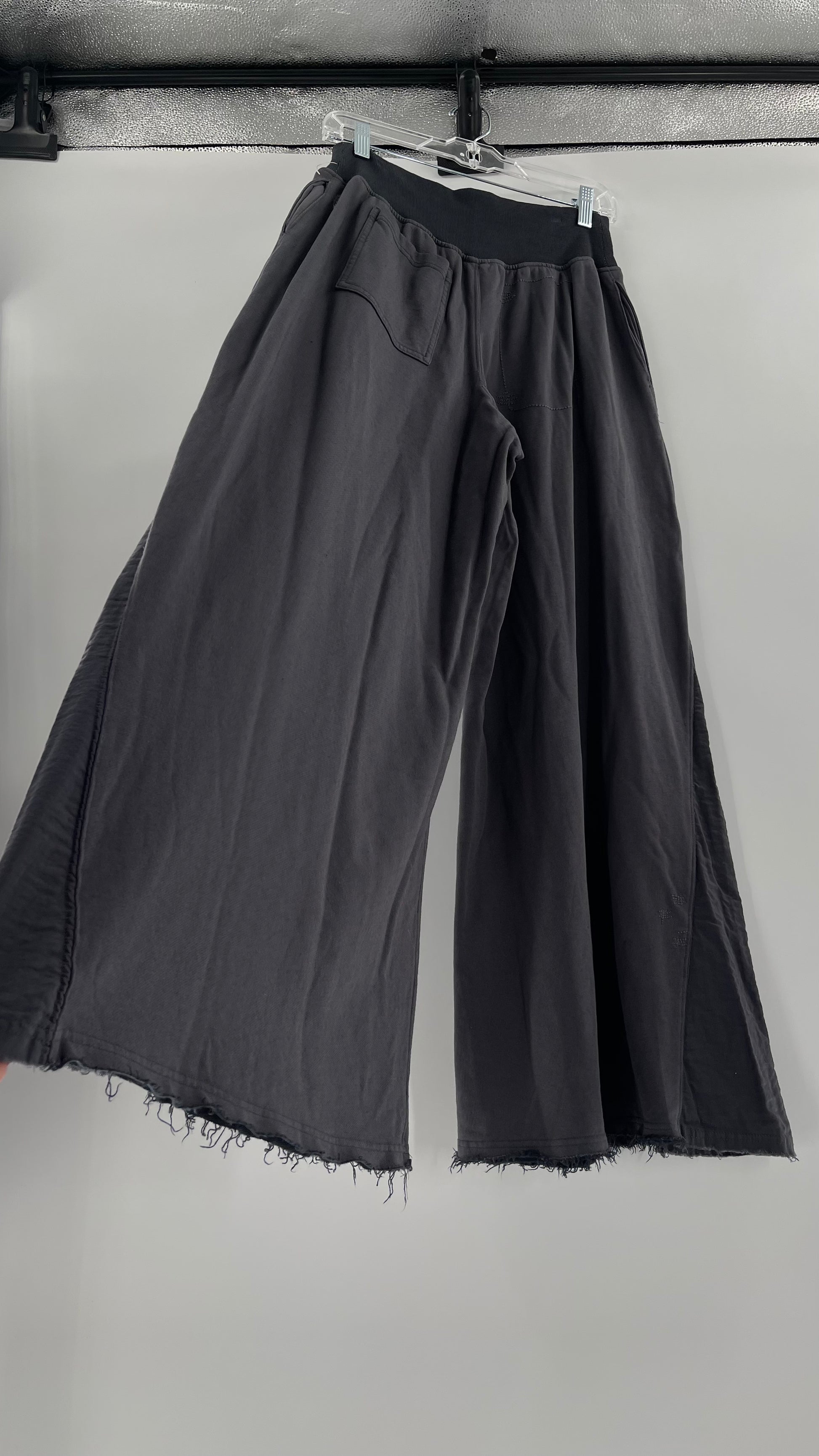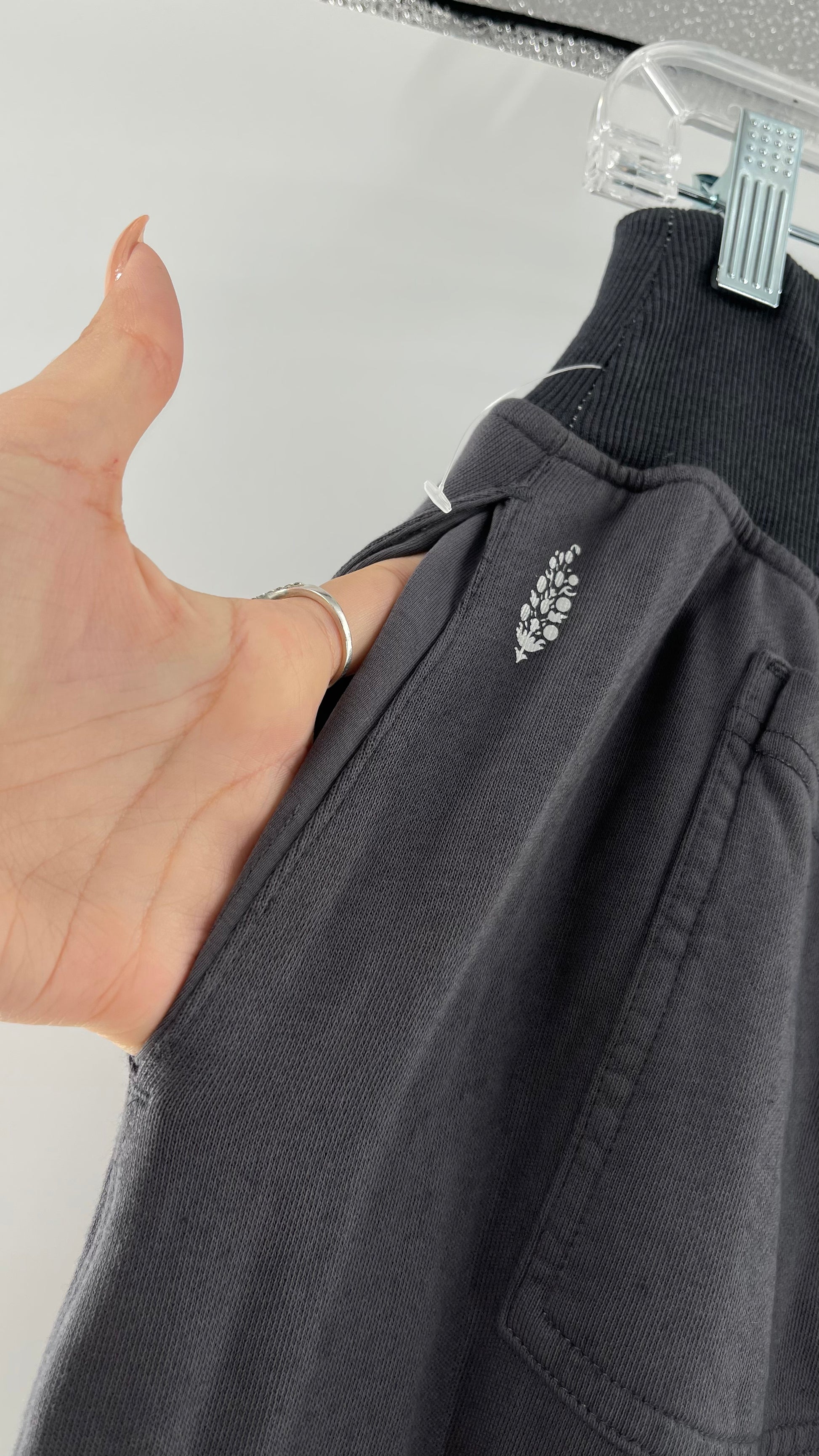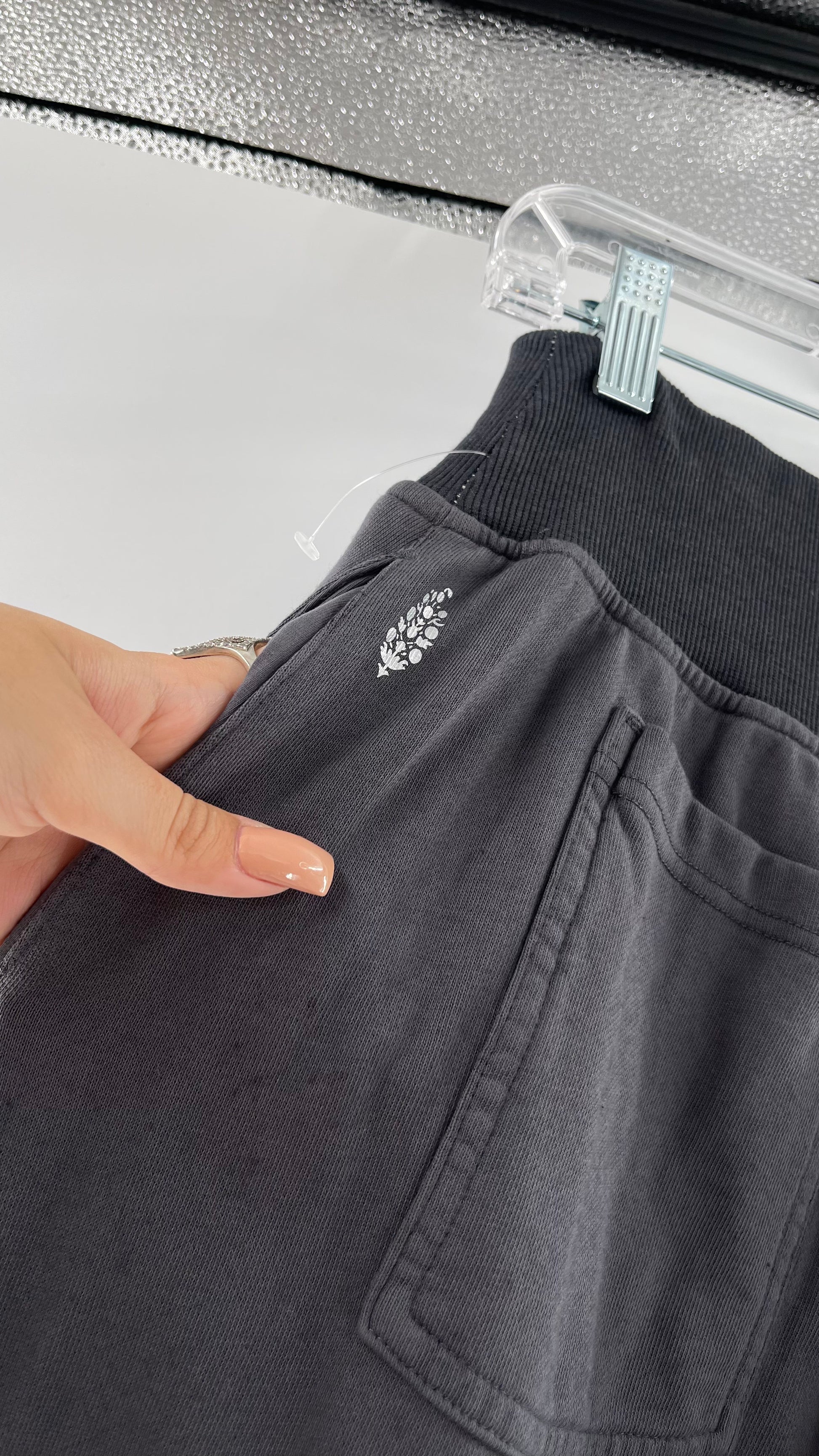 Free People Movement Charcoal Grey embroidered extreme wide leg Jersey pants with high zip up waist (Size S)