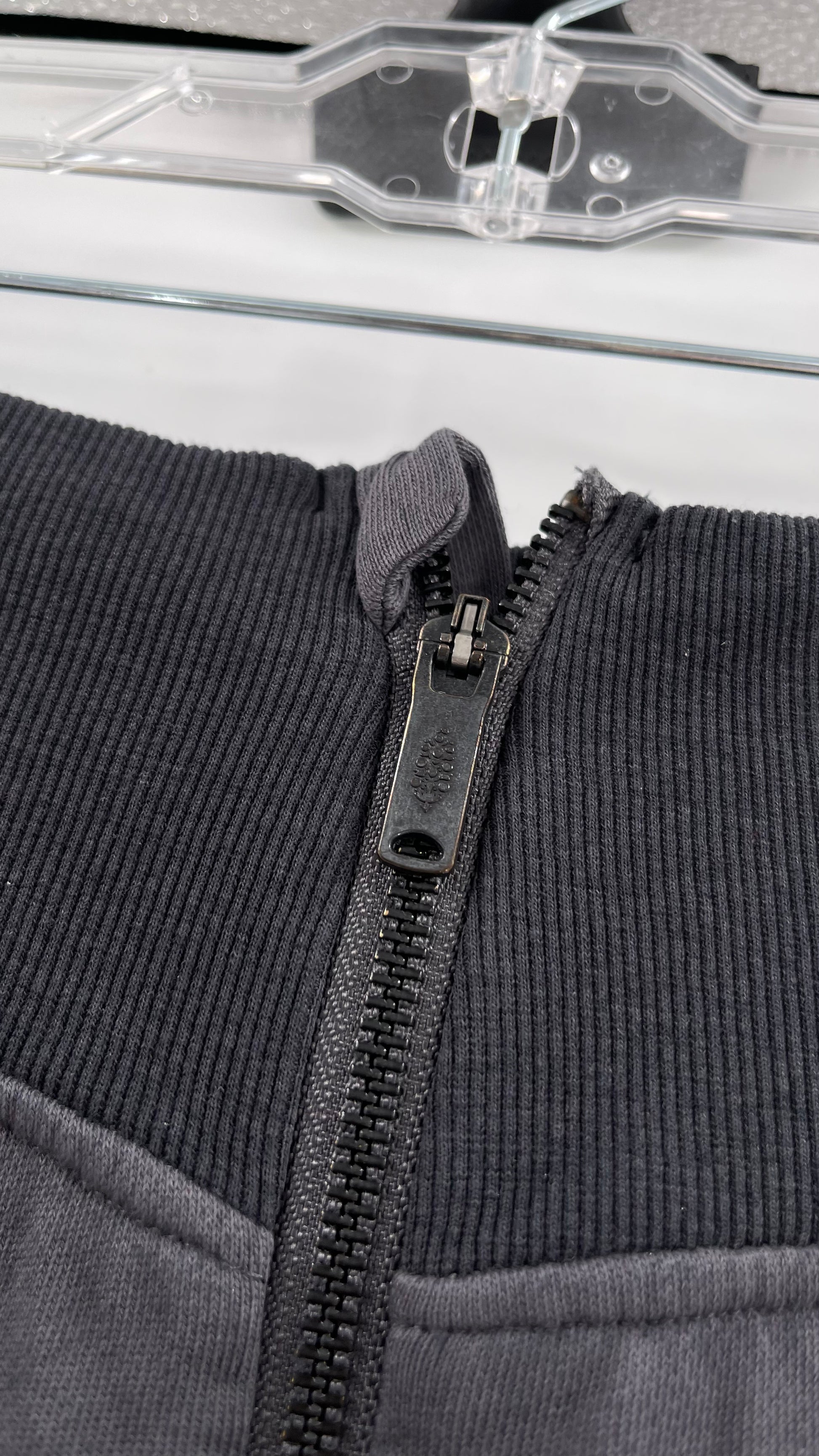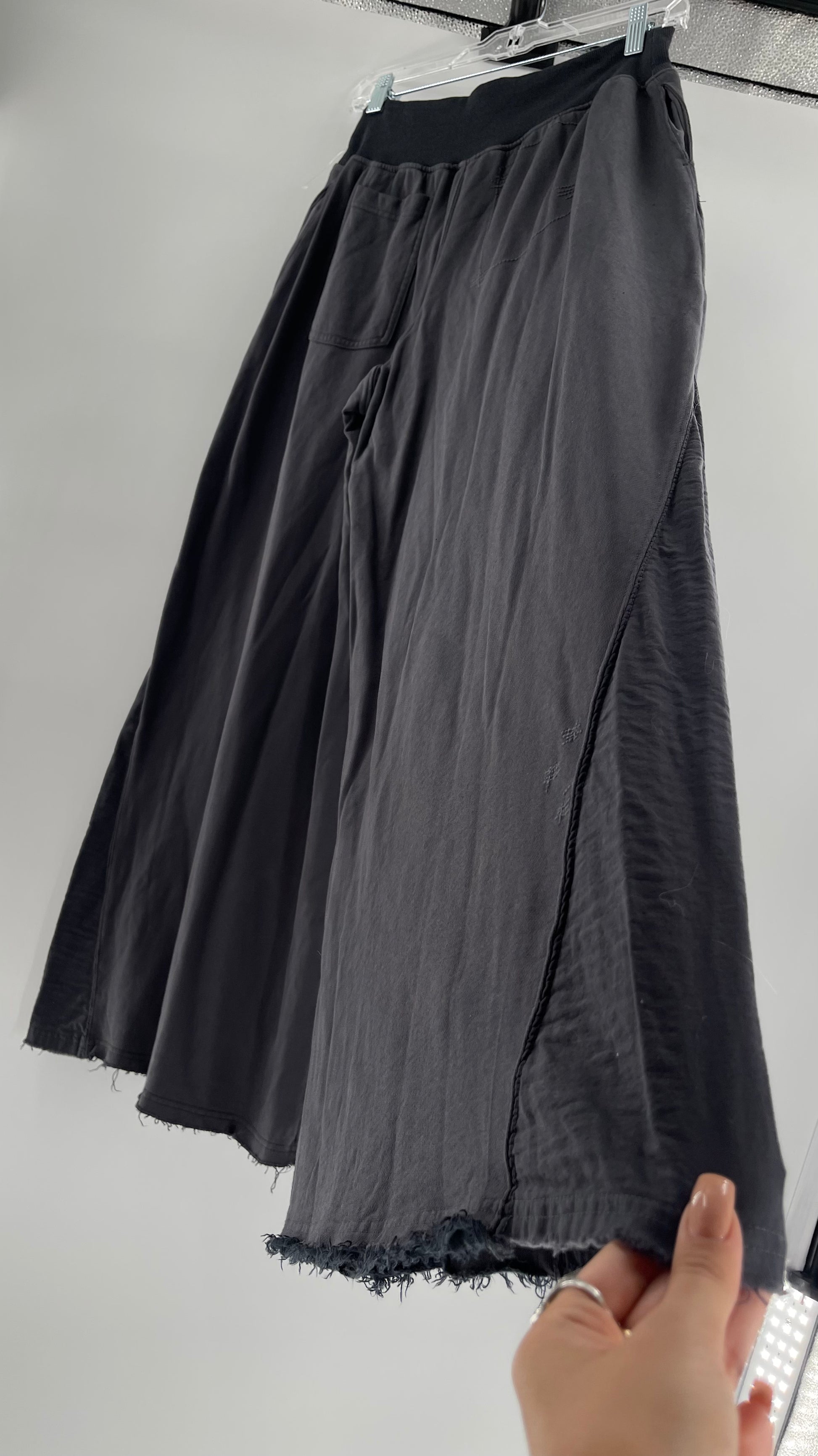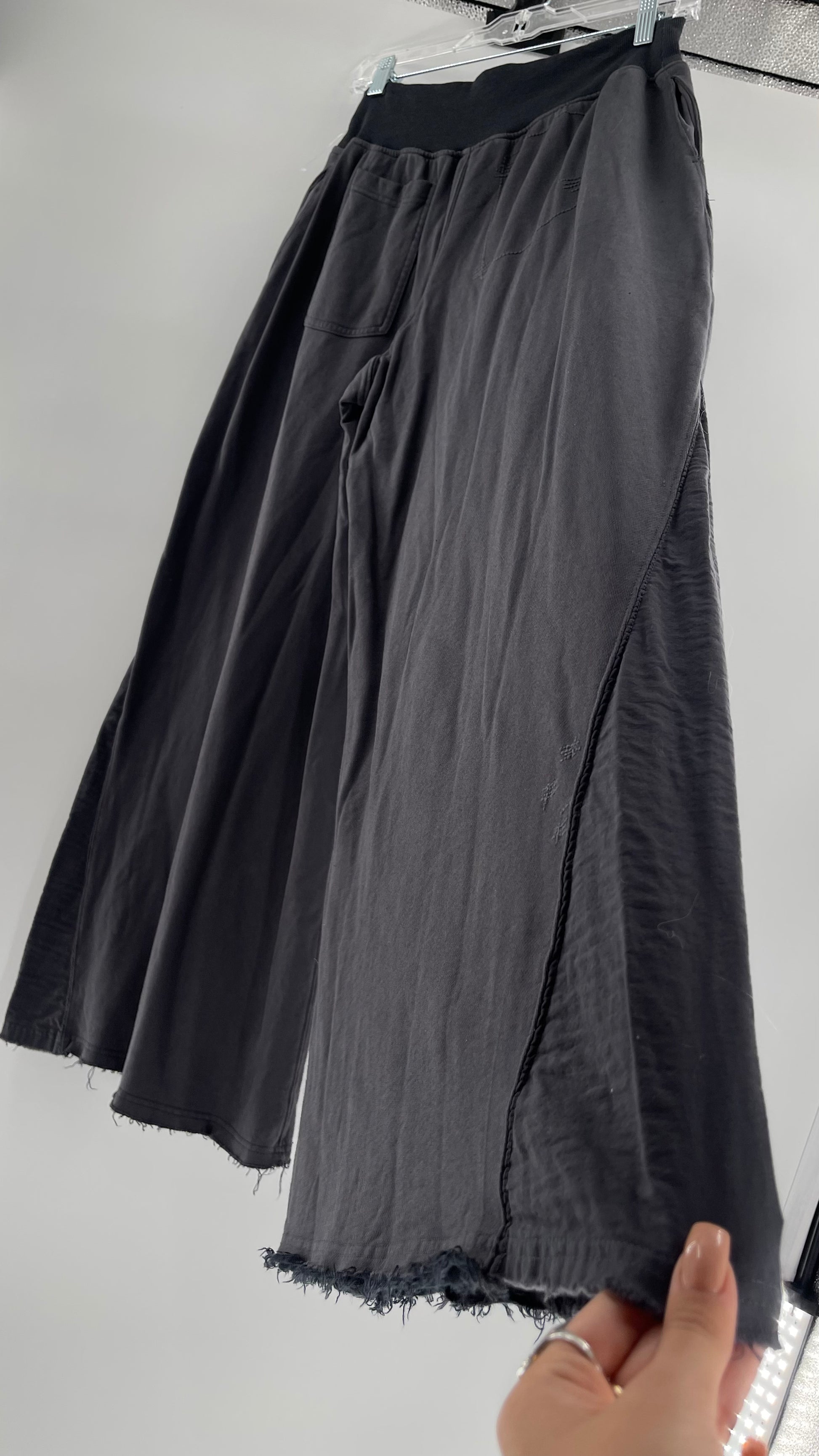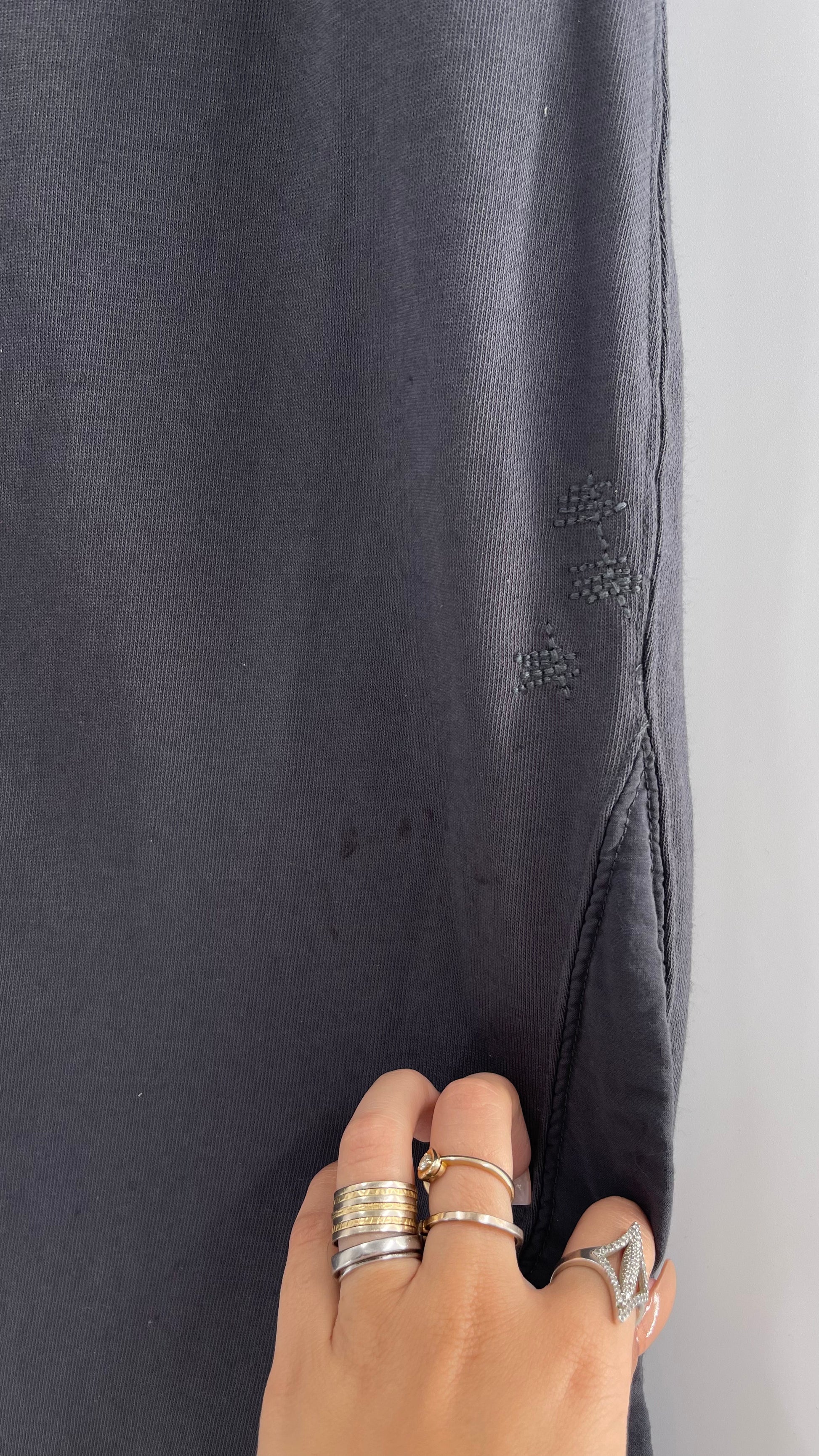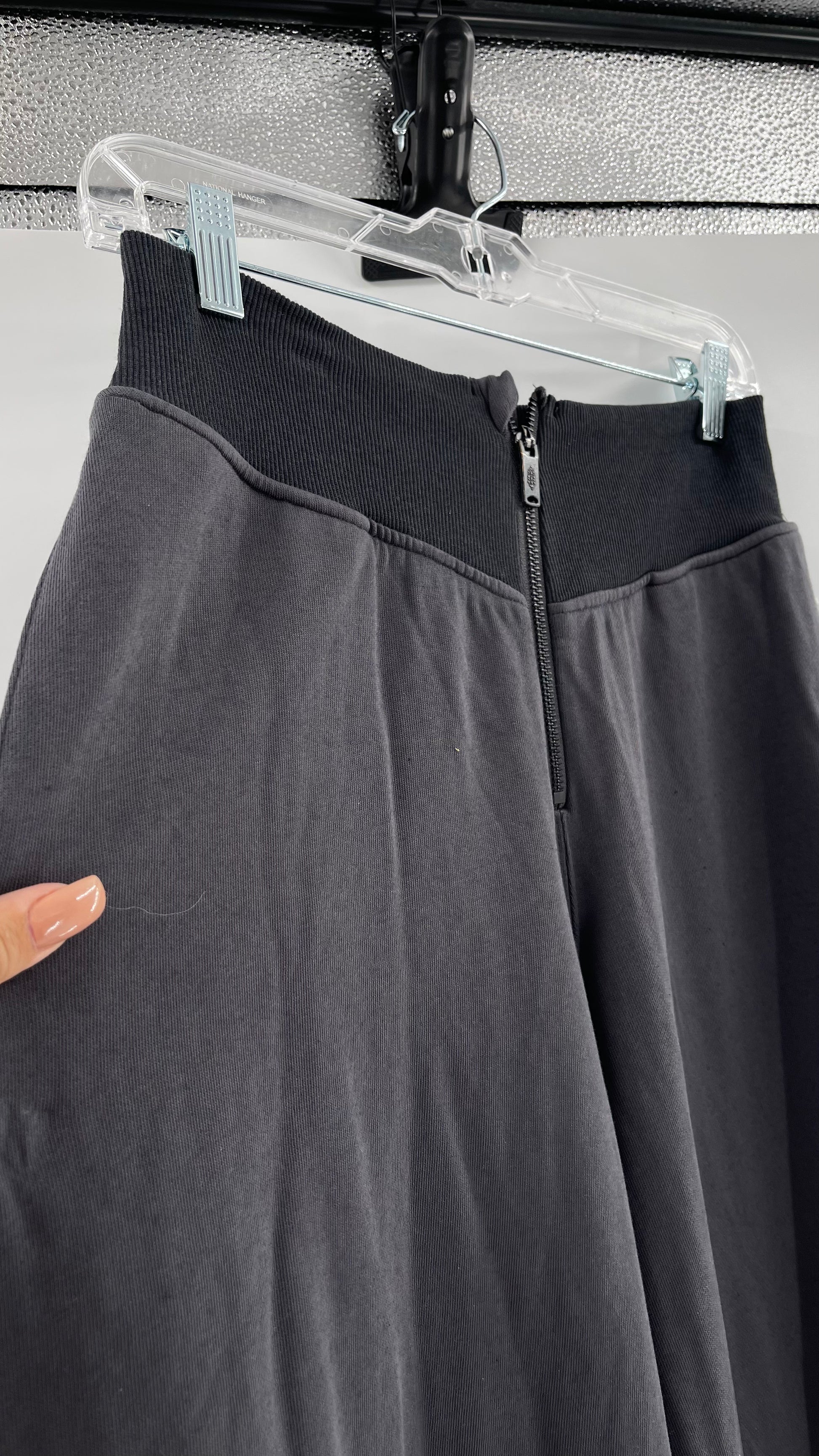 Free People Movement Charcoal Grey embroidered extreme wide leg Jersey pants with high zip up waist (Size S)