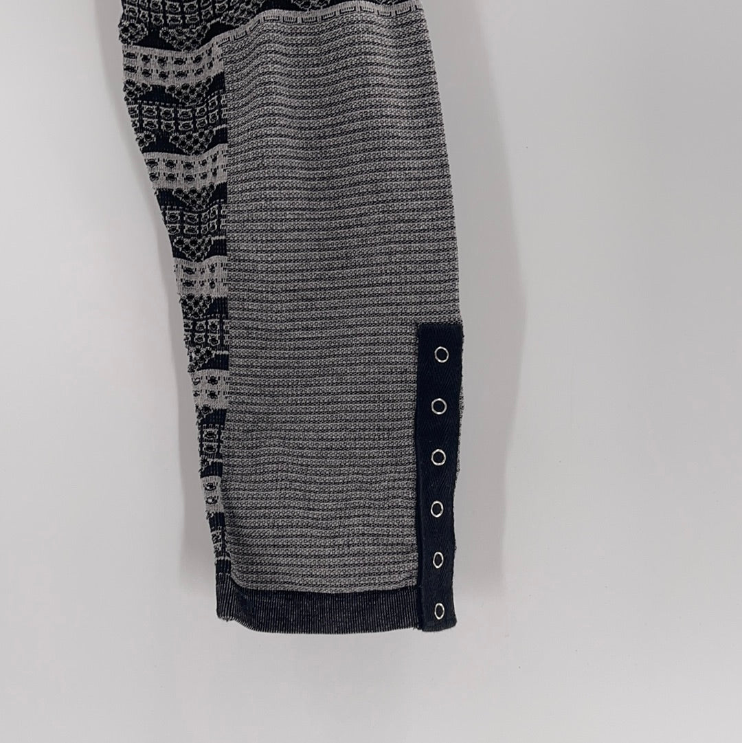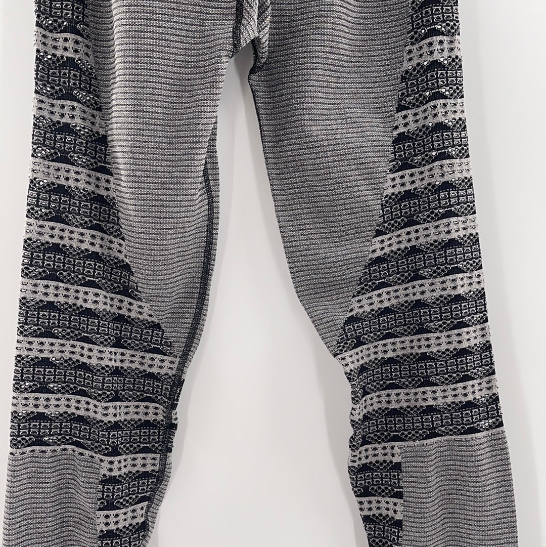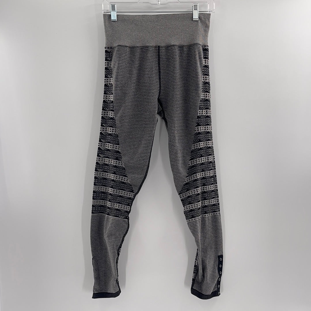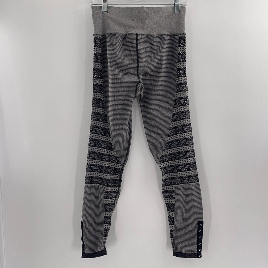 Free People Movement Grey/Black Leggings with segments of striped, perforated fabric (Sz M/L)