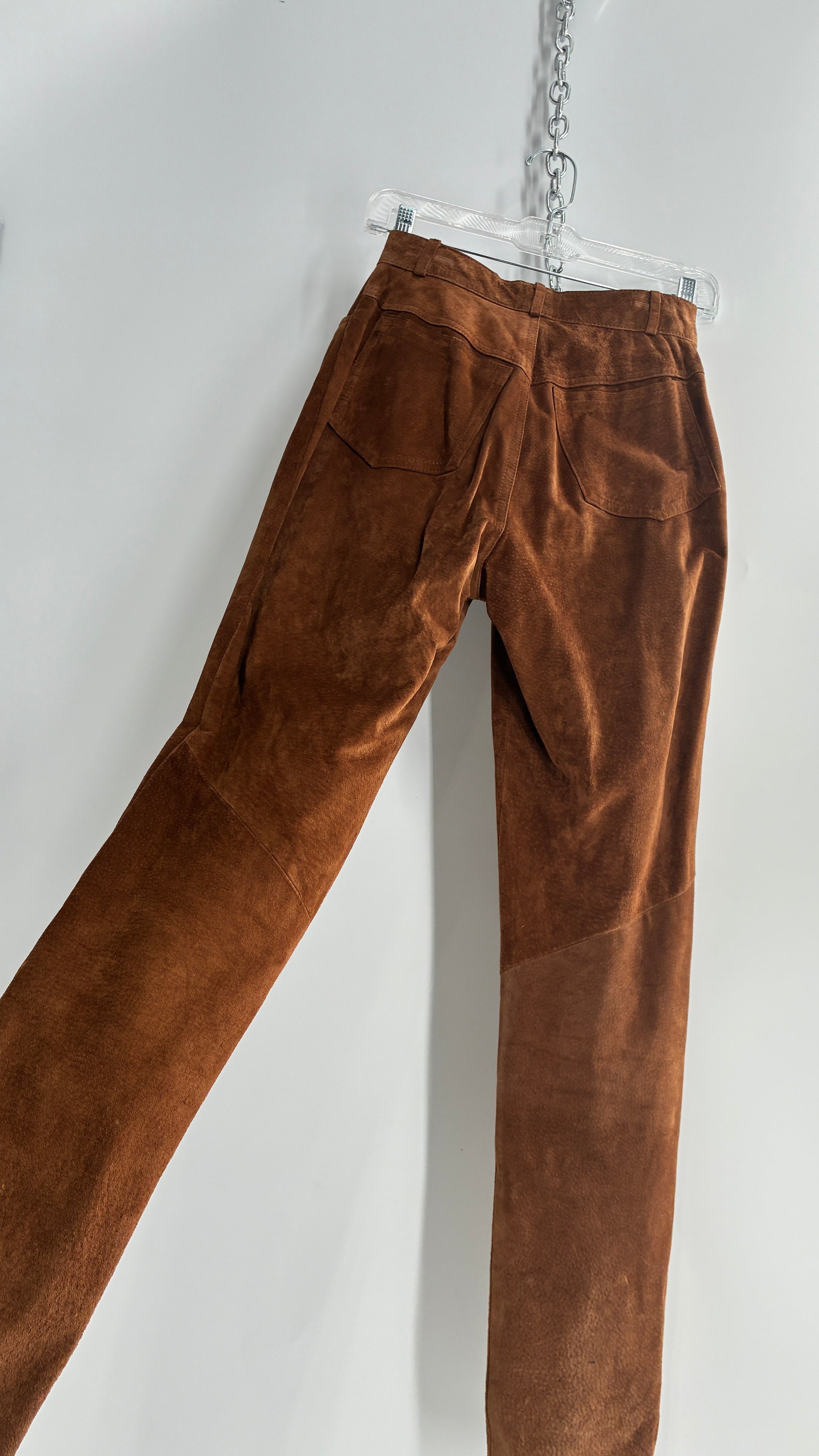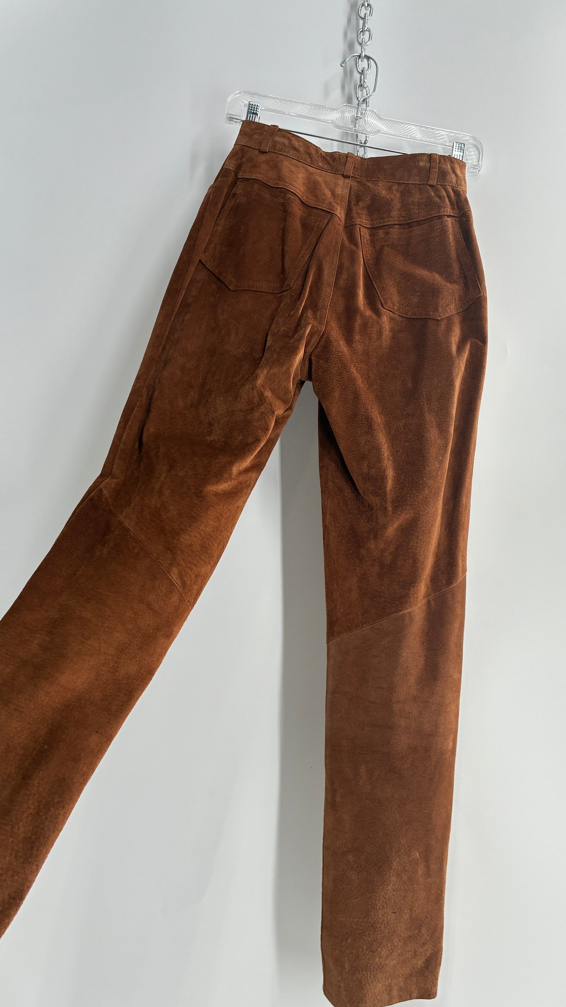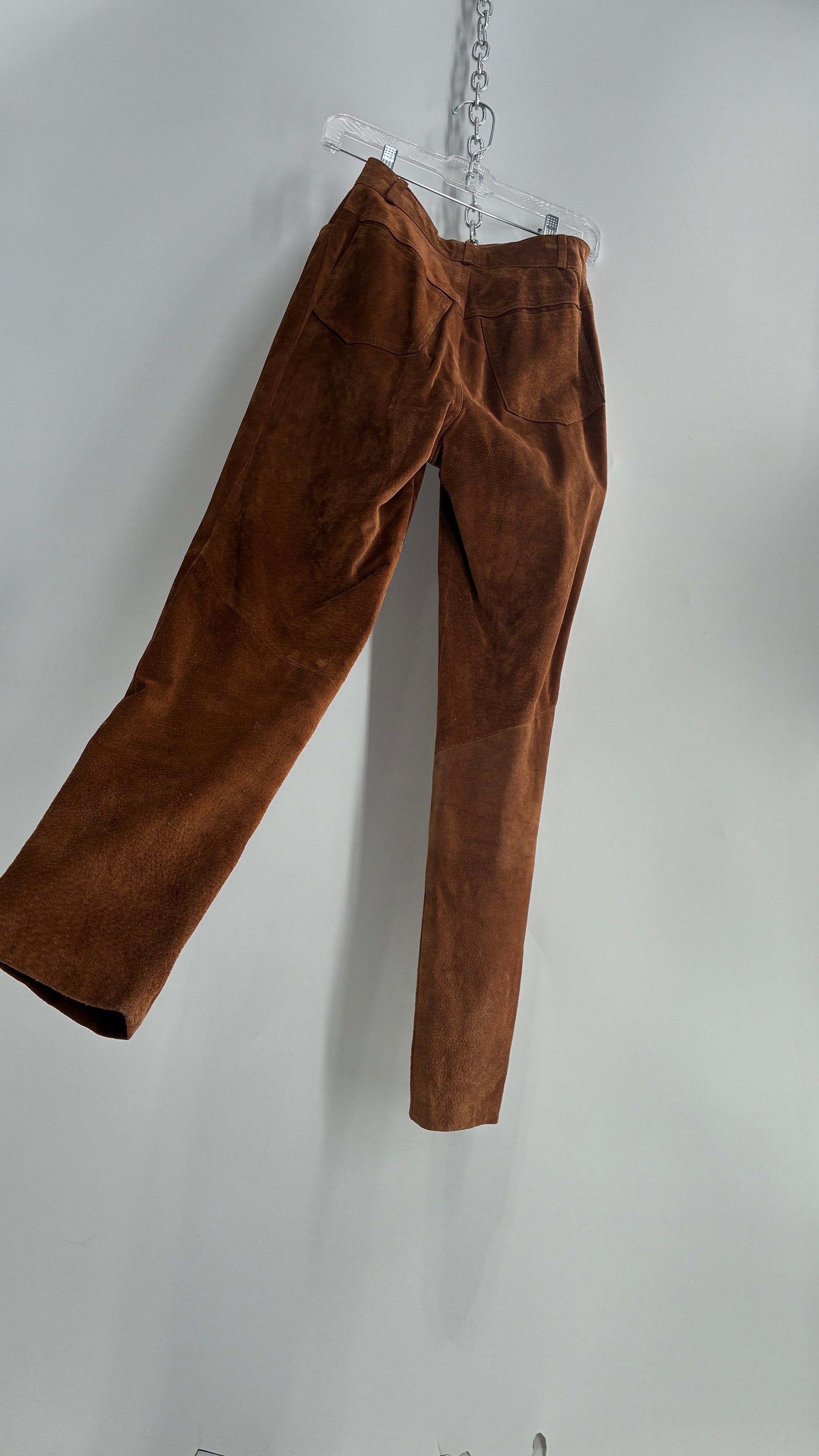 Vintage ANNTAYLOR Brown Suede Leather Straight Leg Bottoms