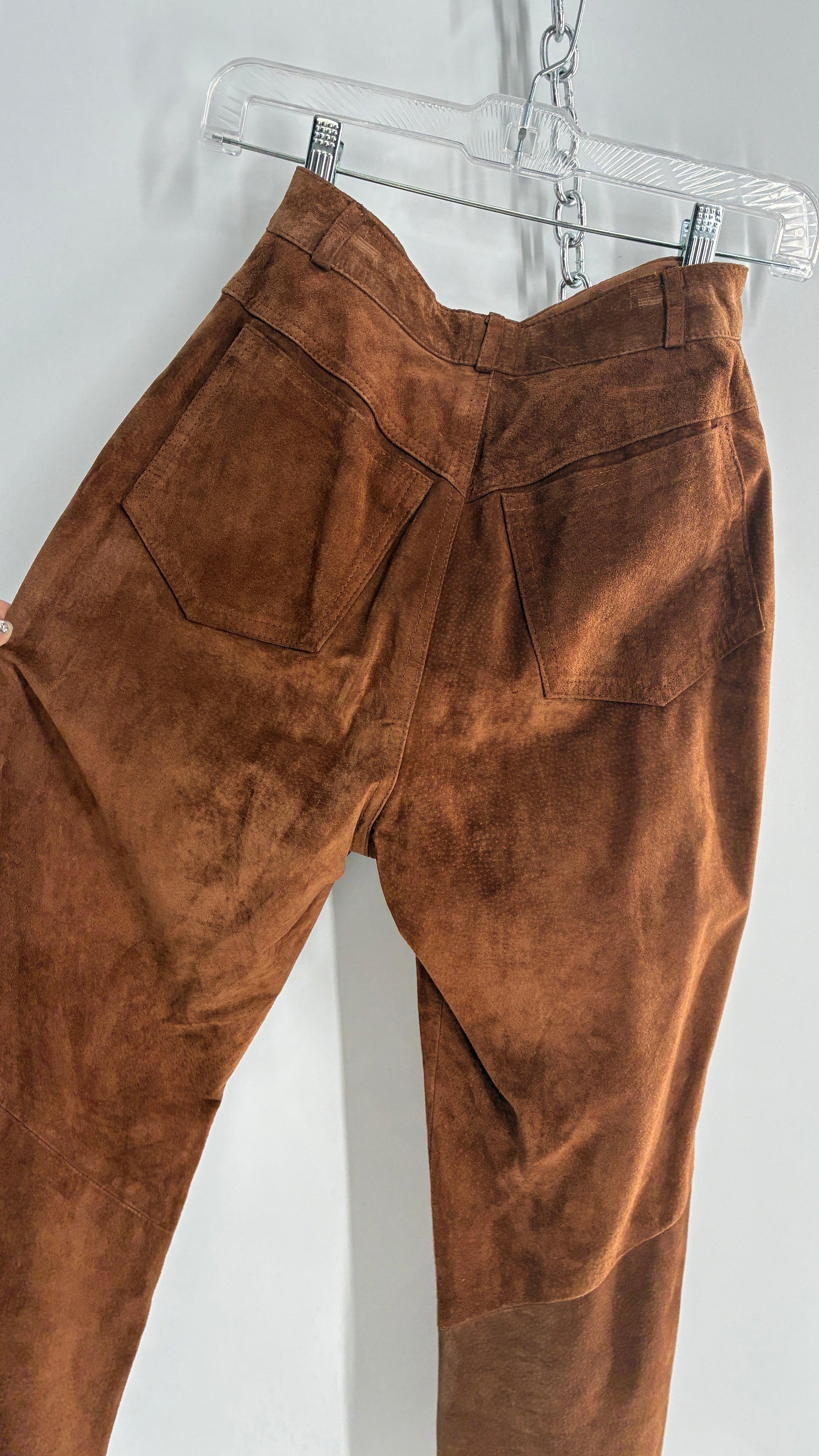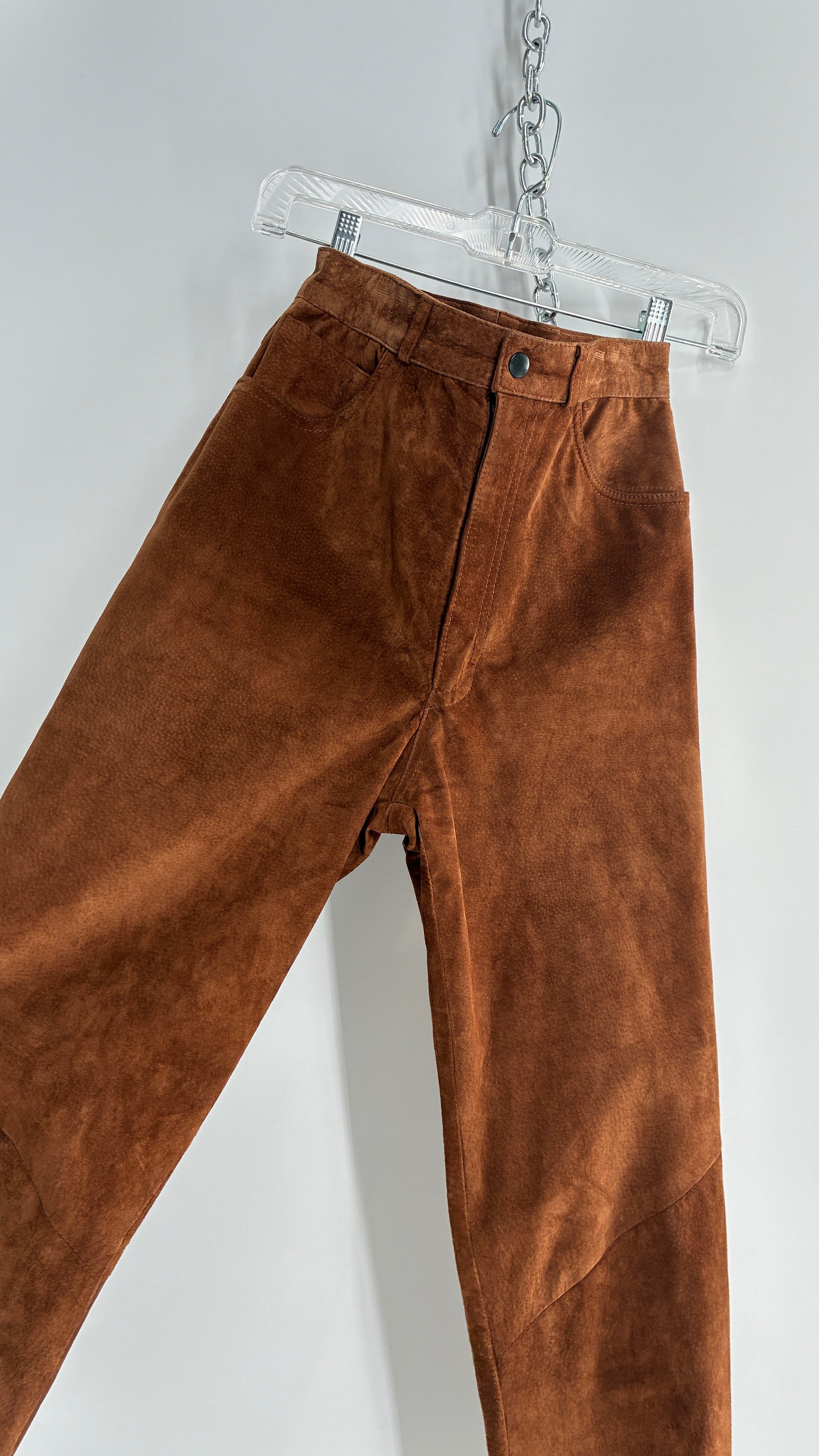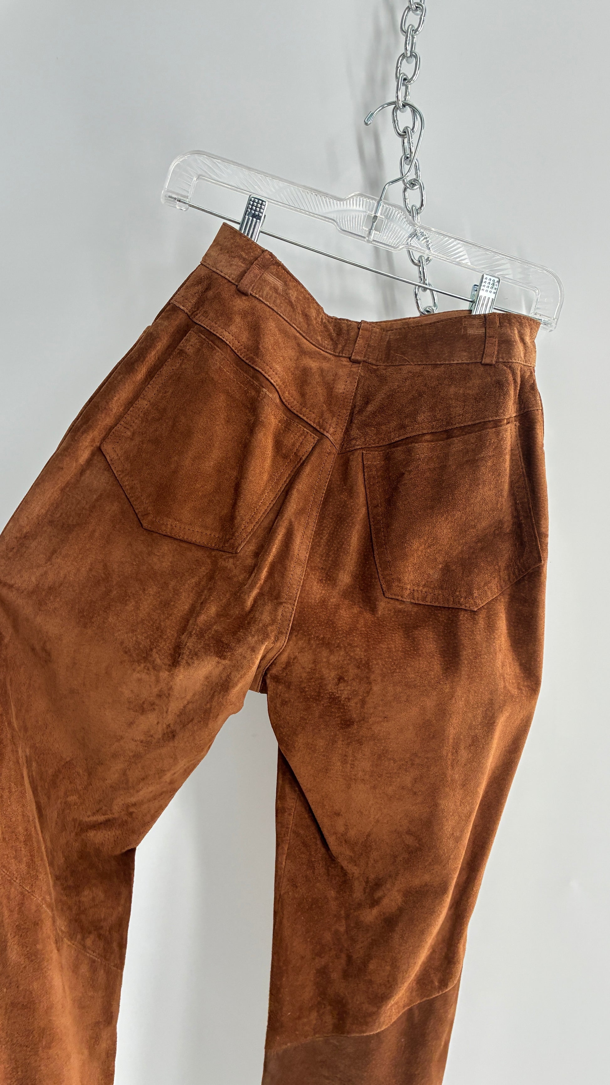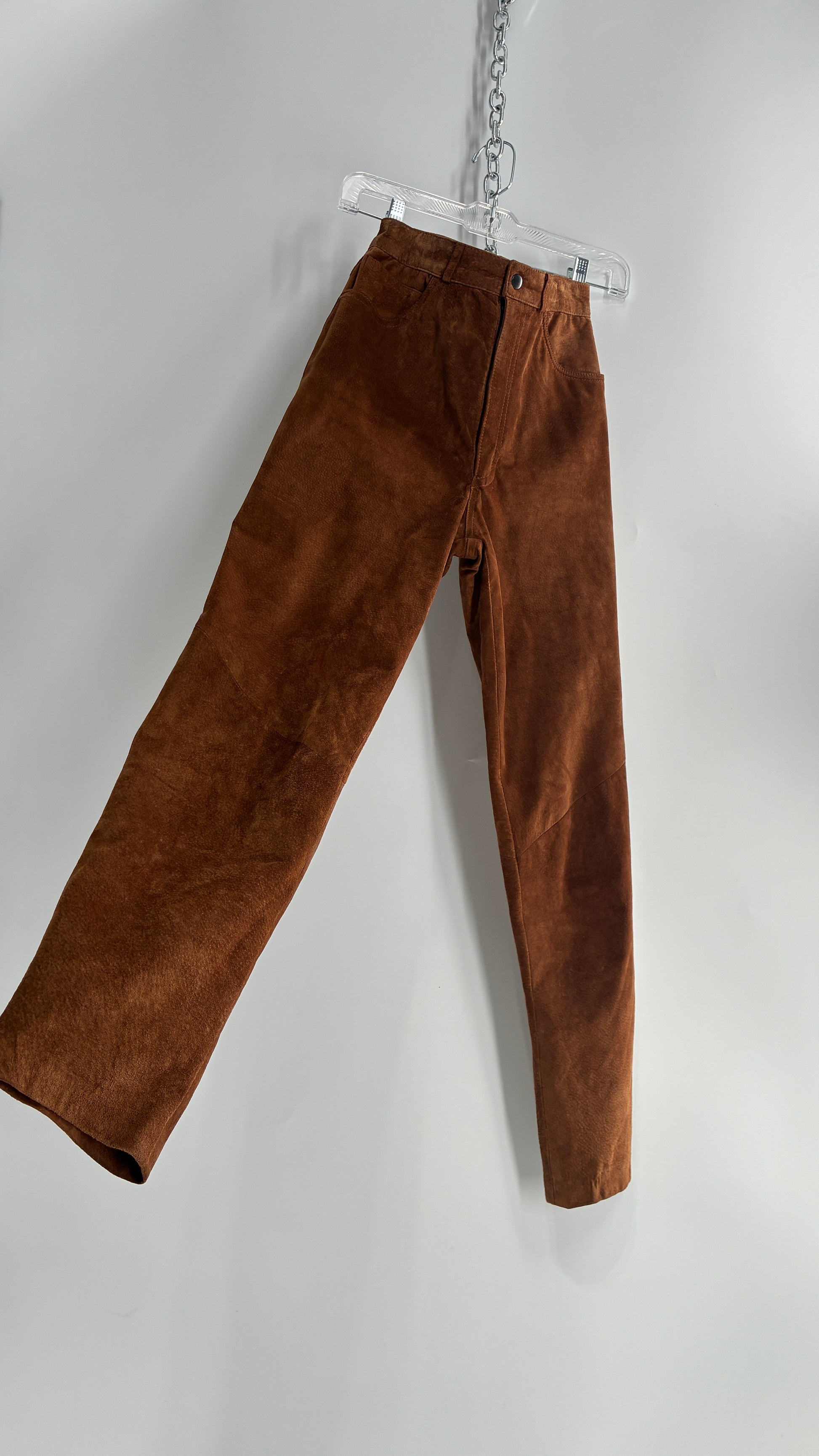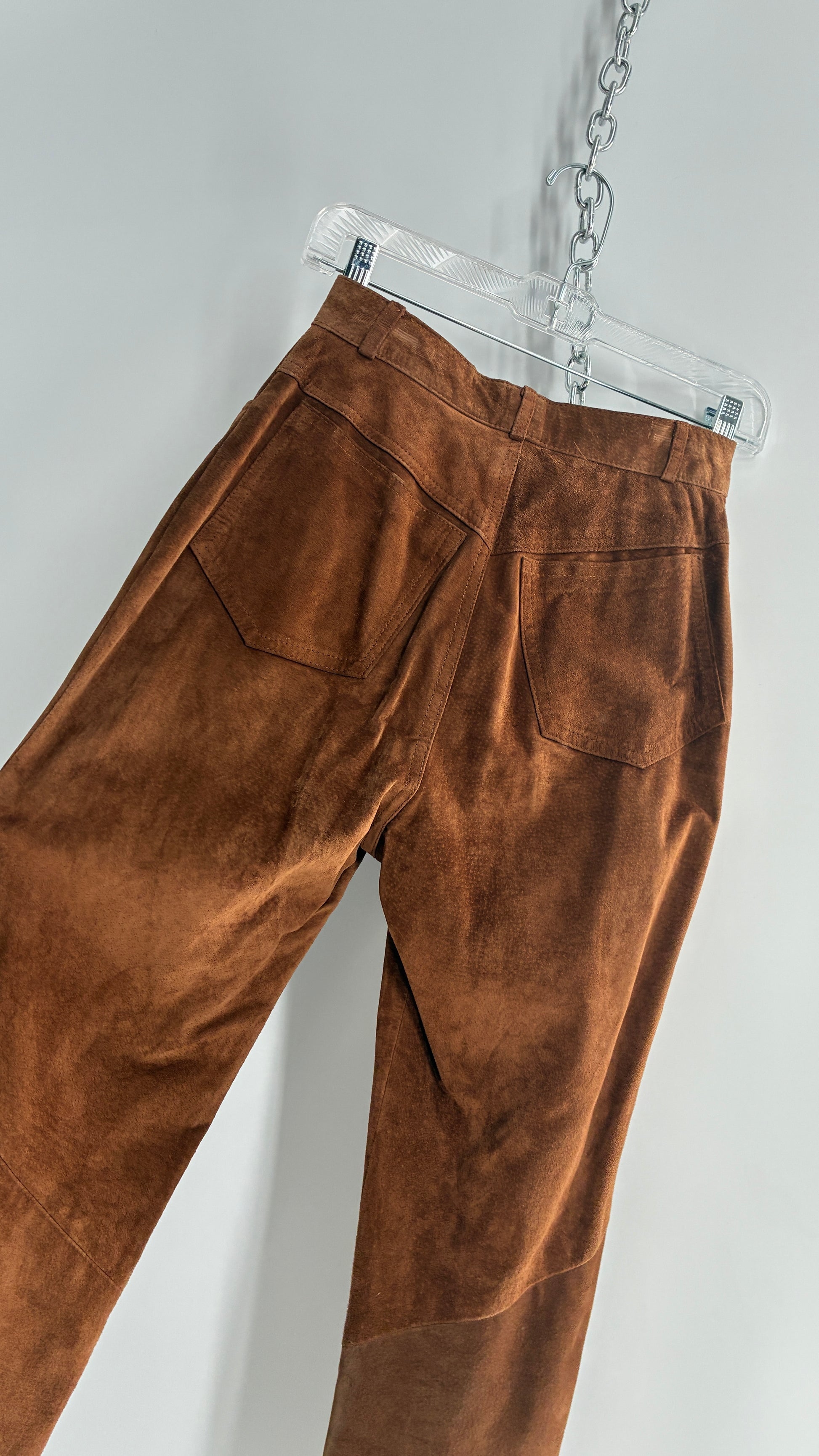 Vintage 1980 ANNTAYLOR High Waisted Brown Suede Leather Straight Leg Bottoms (2)