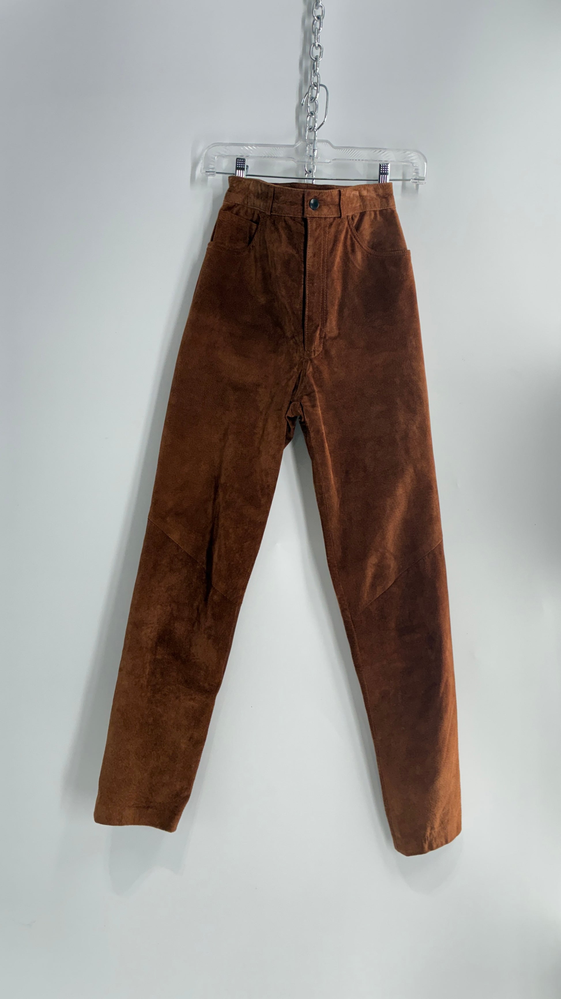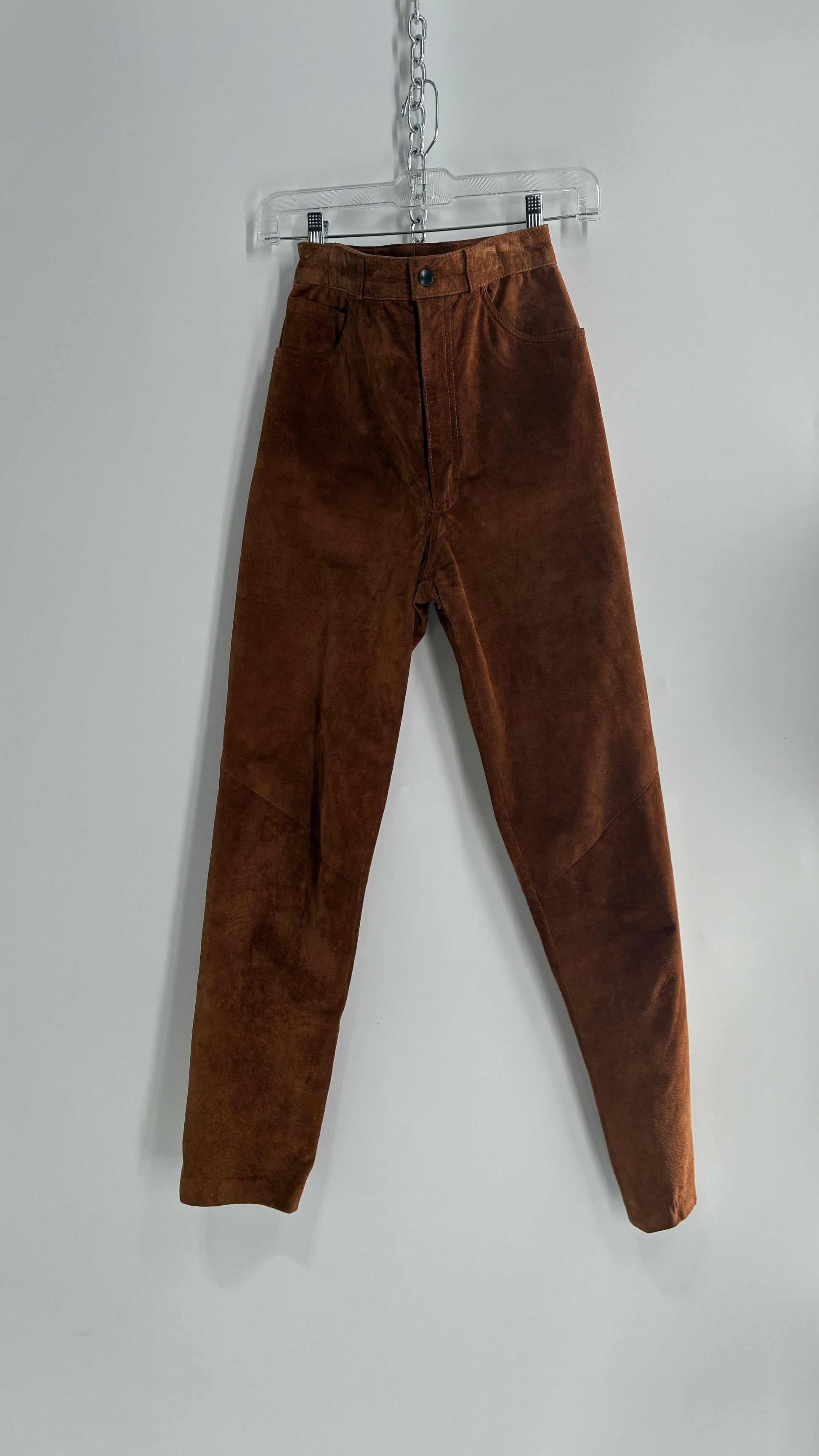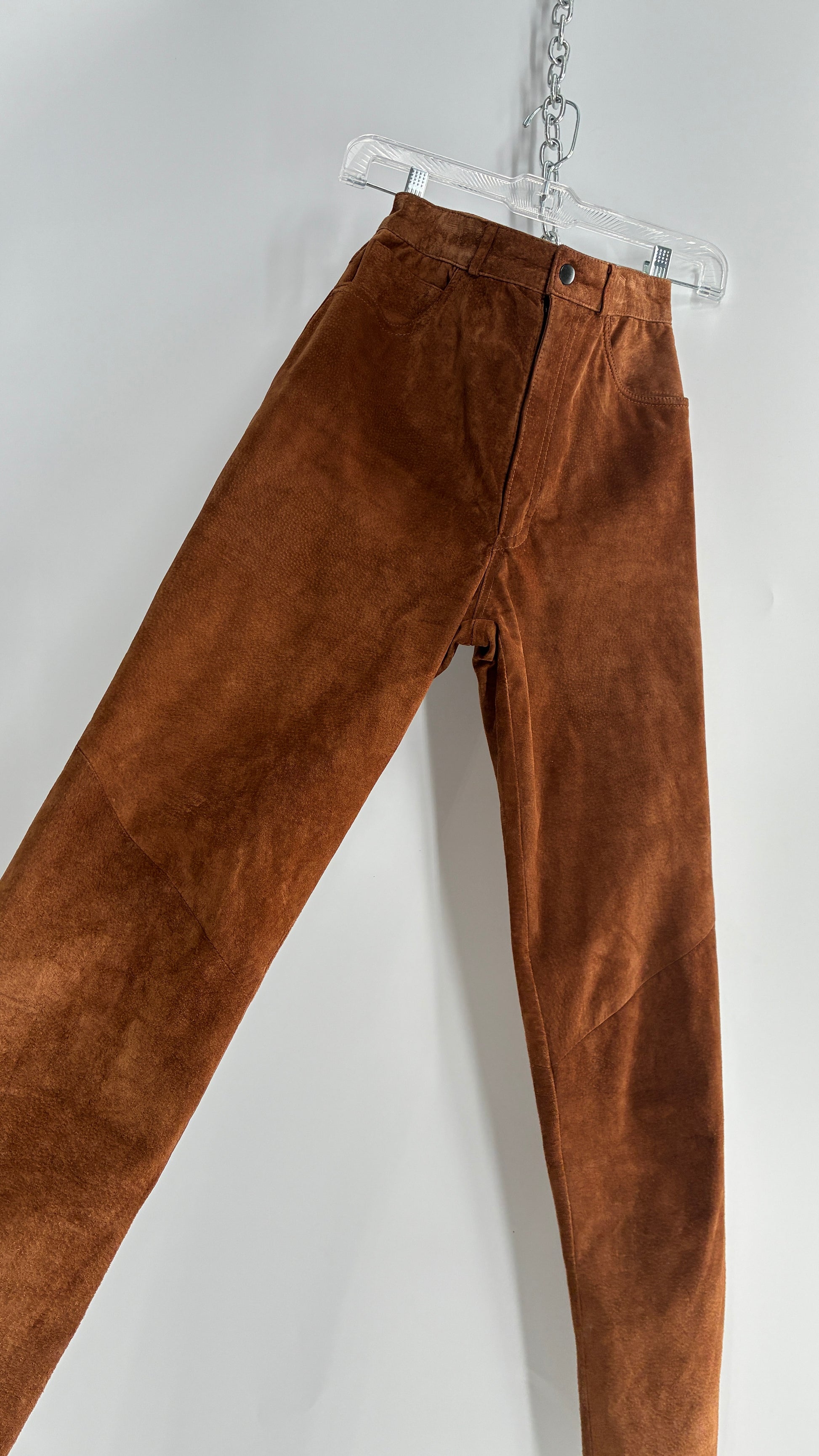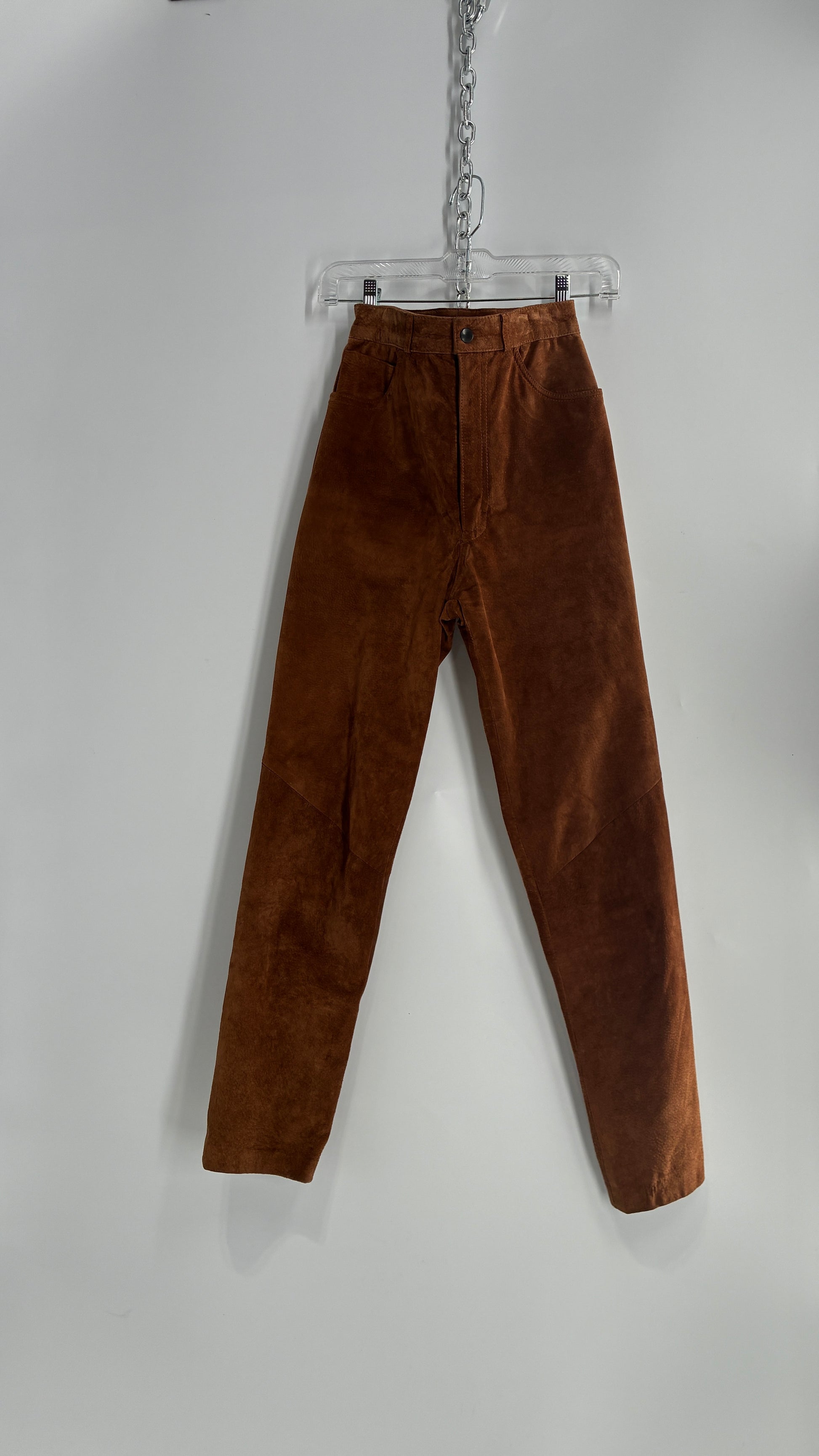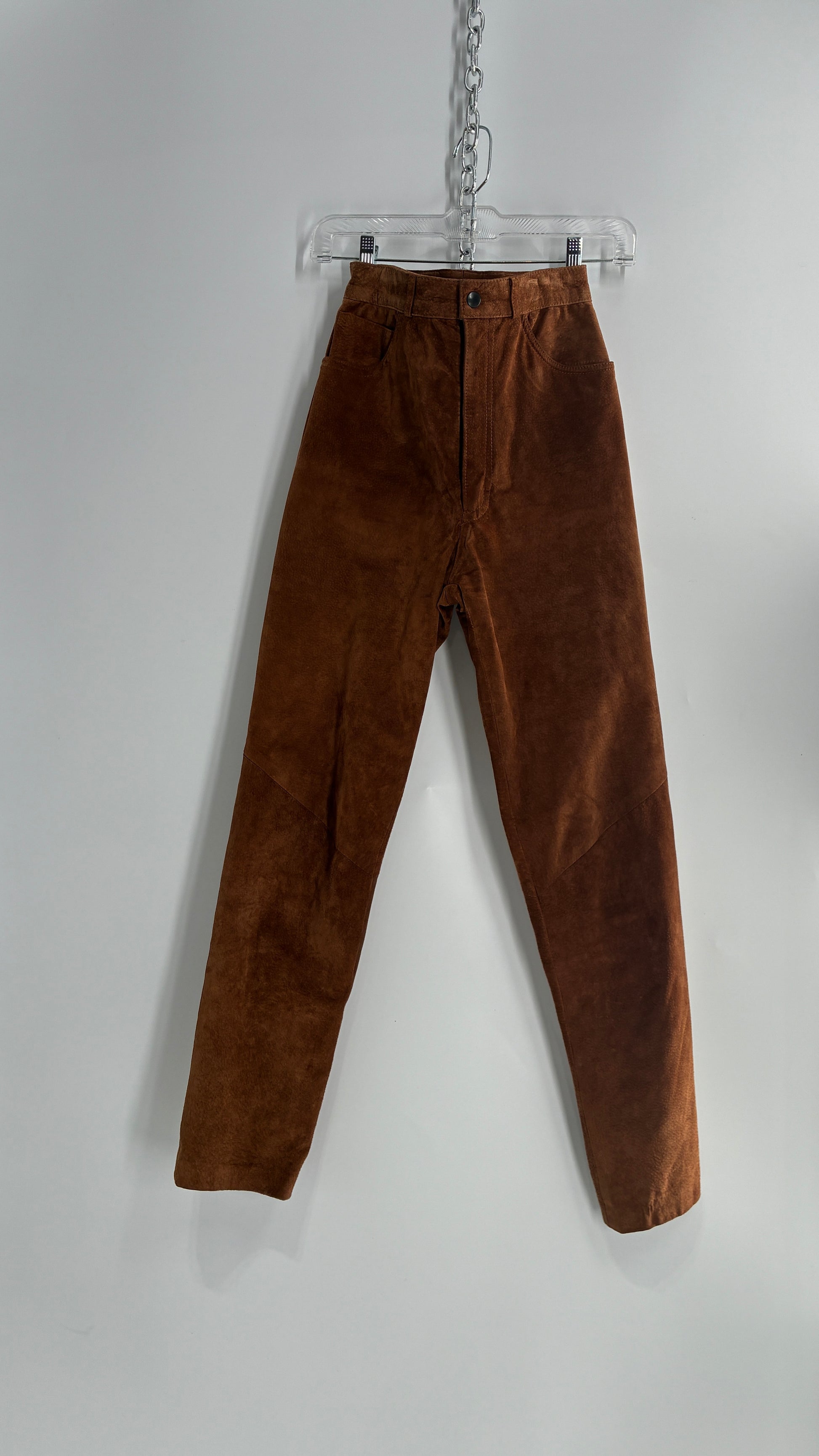 Vintage 1980 ANNTAYLOR High Waisted Brown Suede Leather Straight Leg Bottoms (2)