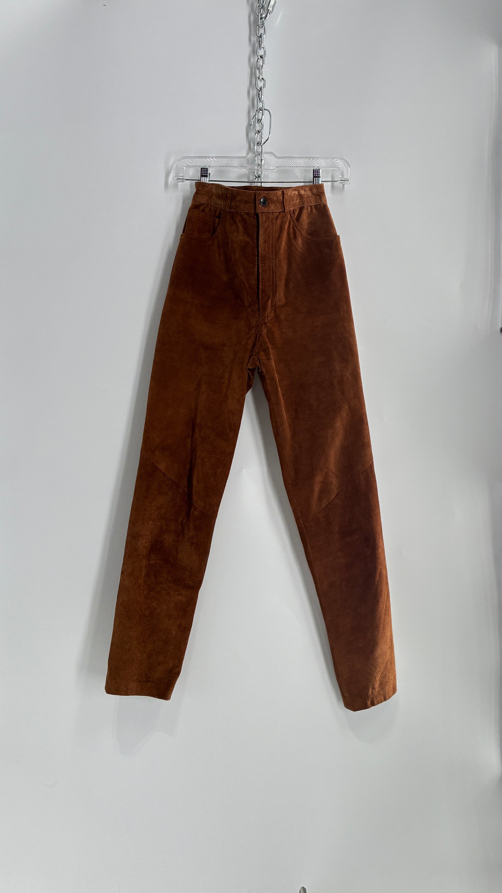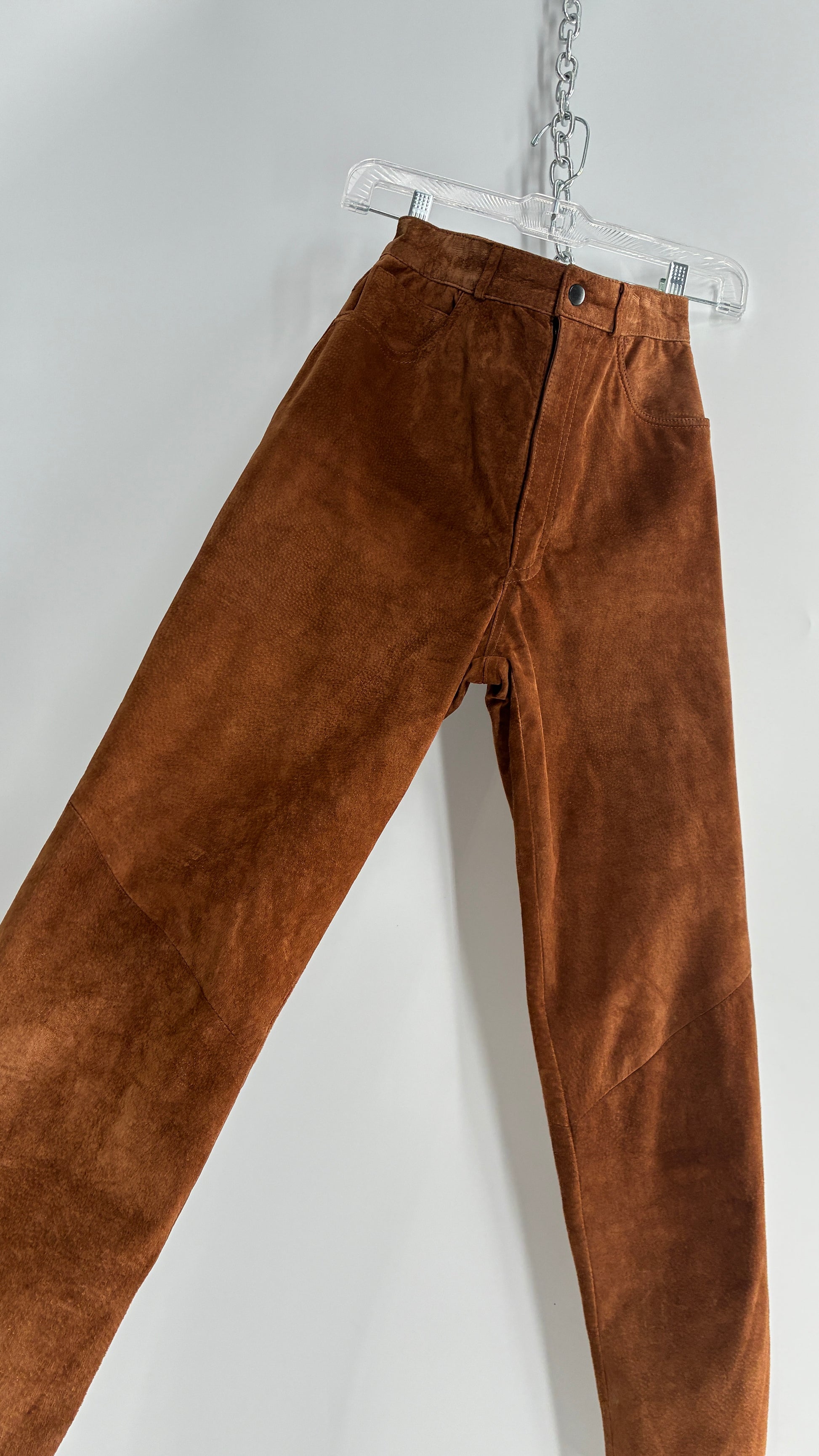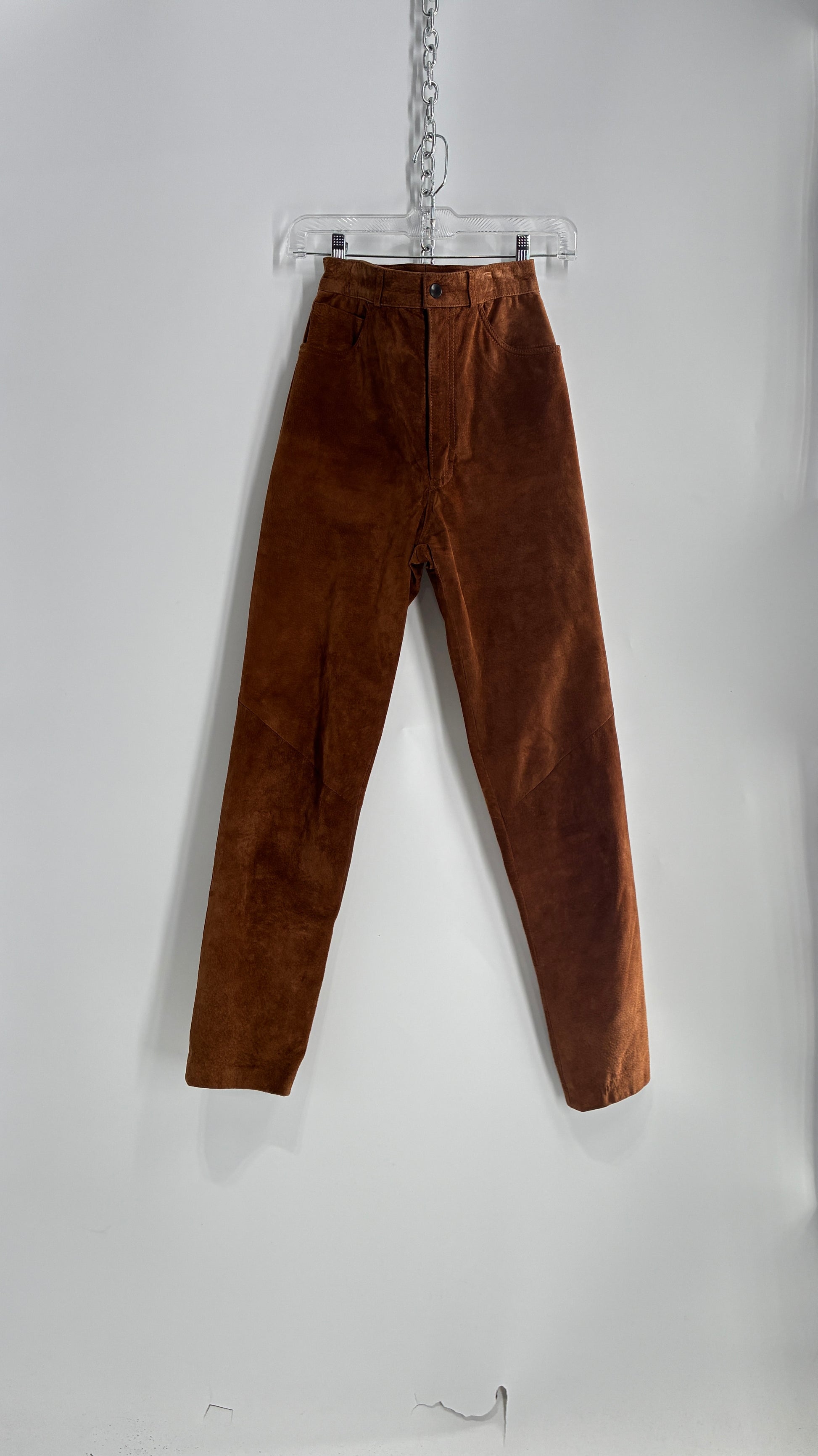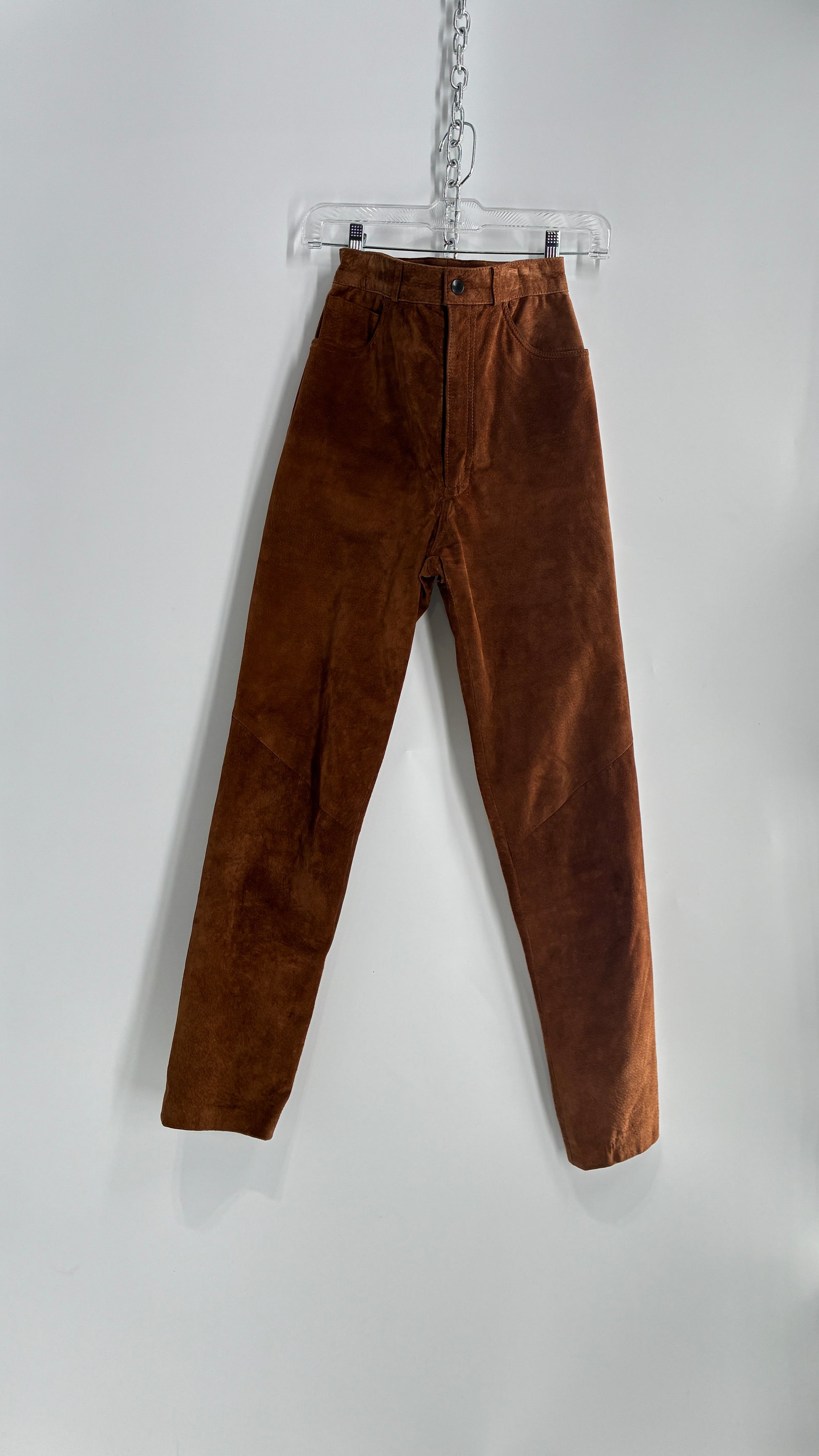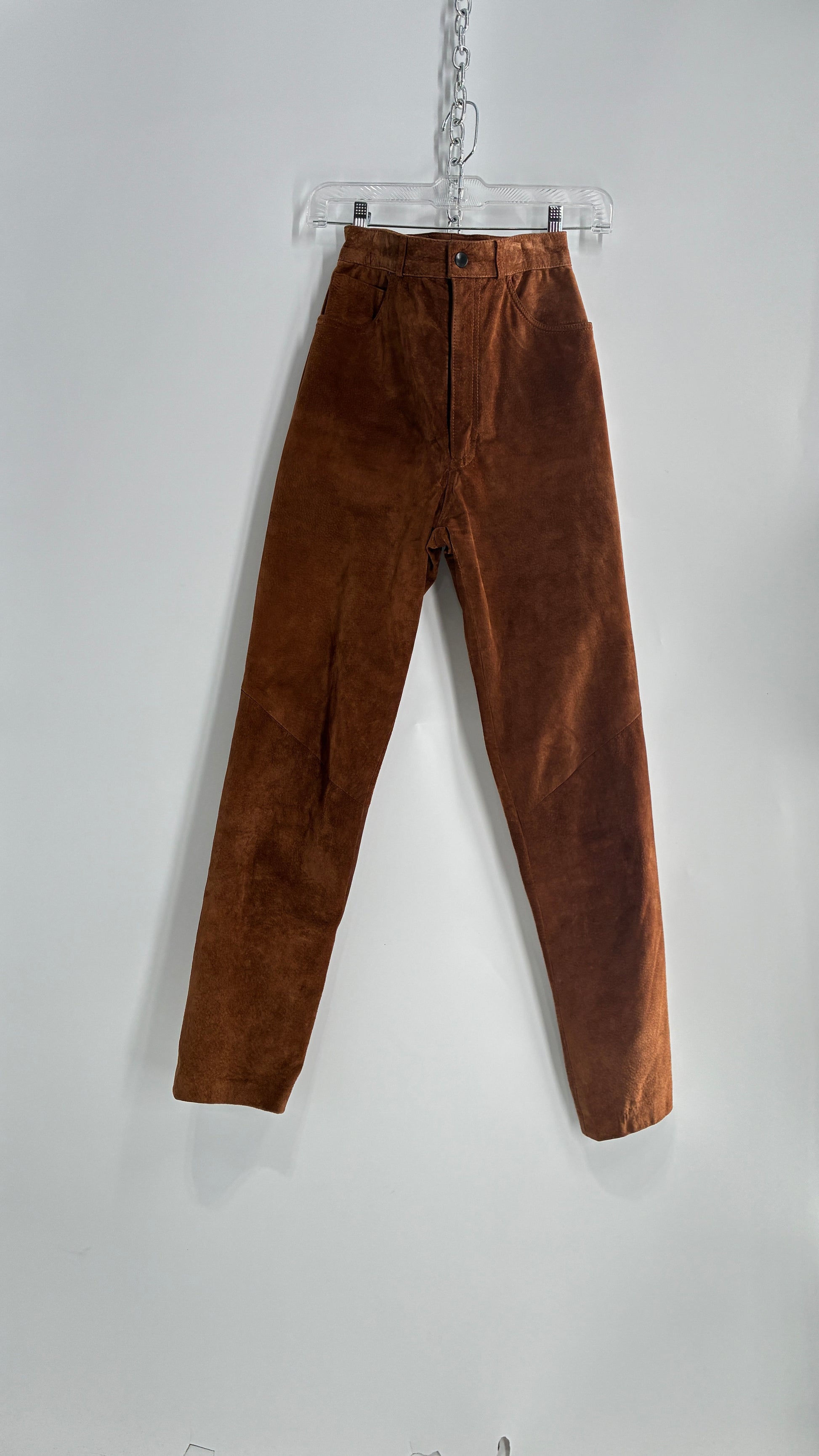 Vintage 1980 ANNTAYLOR High Waisted Brown Suede Leather Straight Leg Bottoms (2)