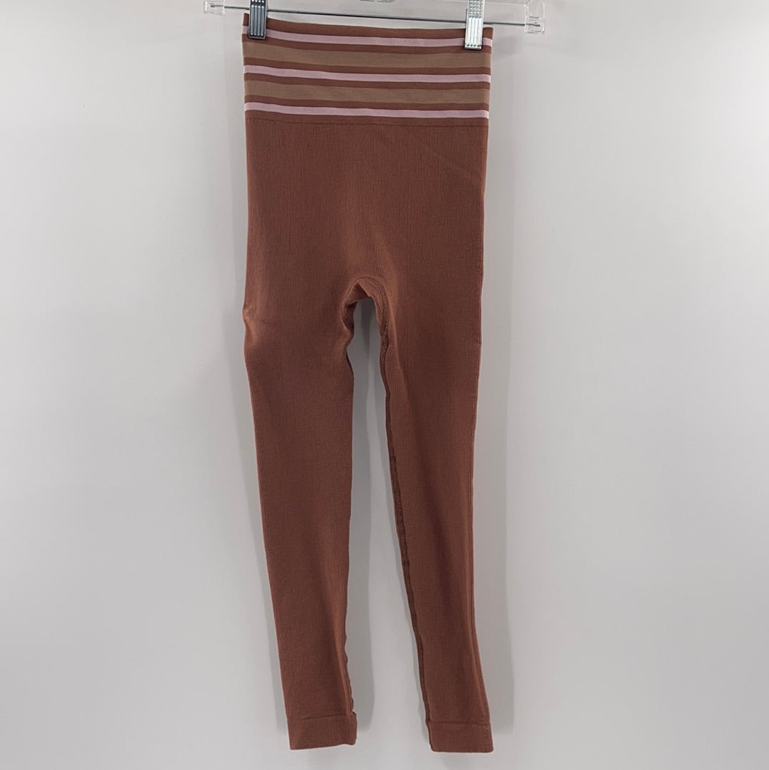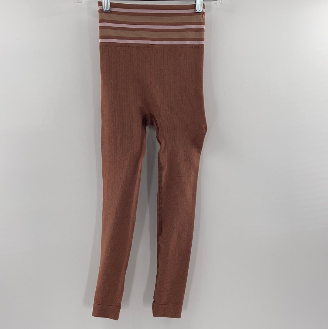 Urban Outfitters Out from Under brown ribbed leggings with multicolored striped waist band (XS)