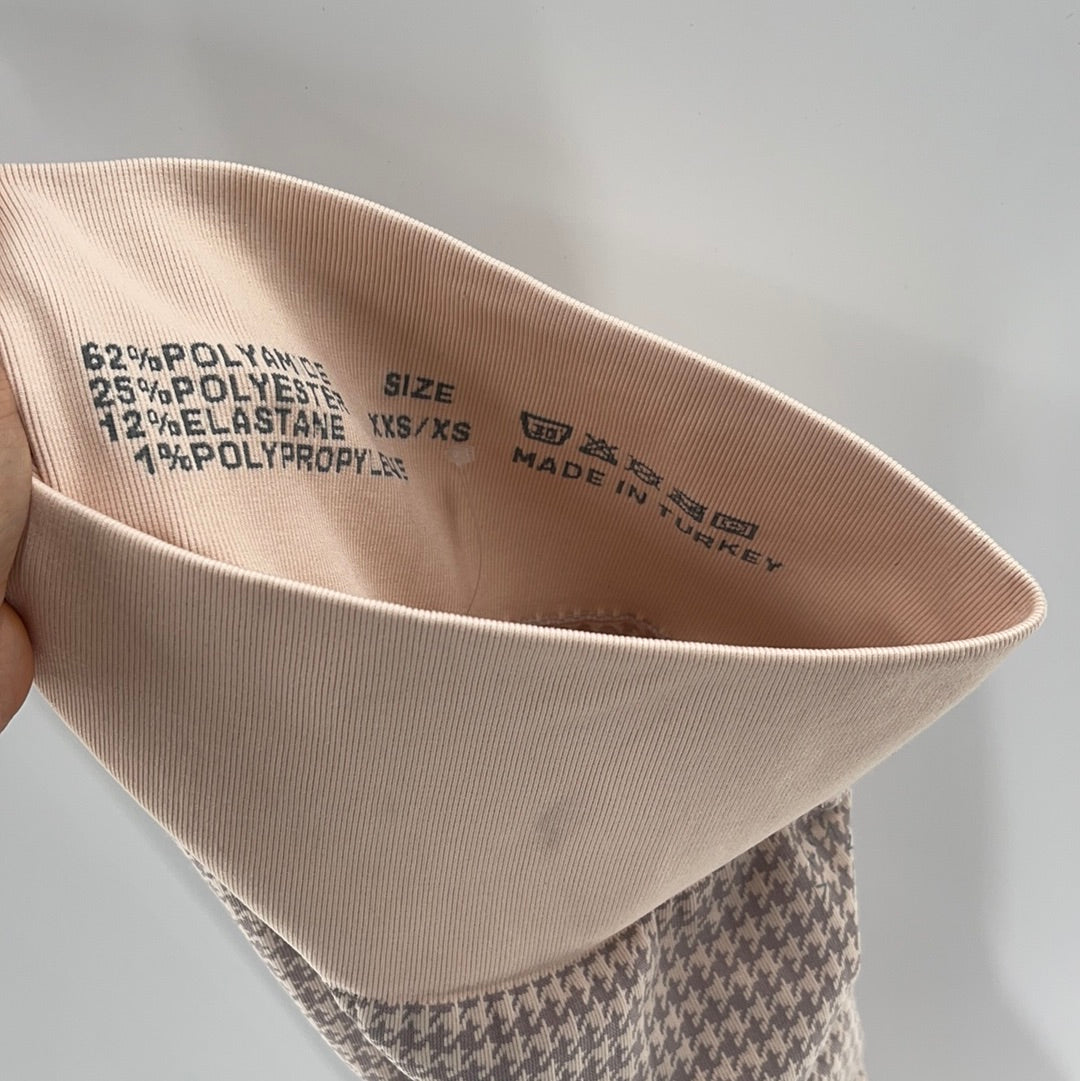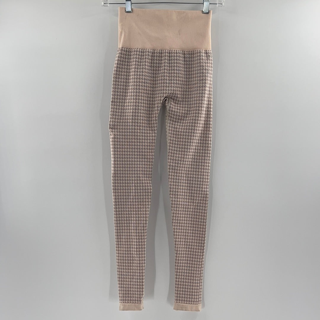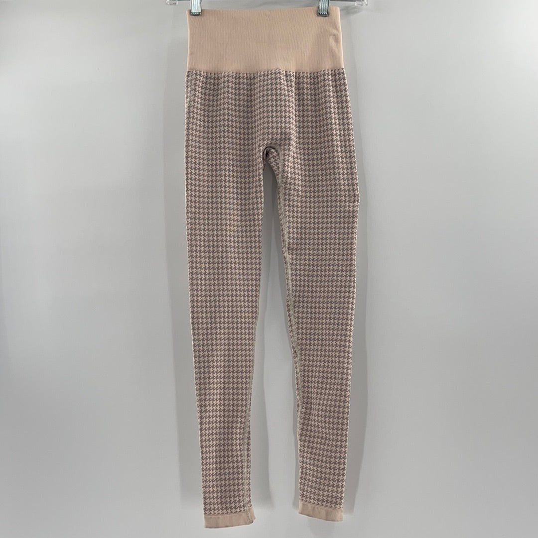 Free People X Varley houndstooth leggings with pink +dusty lilac pattern (Sz XXS/XS)