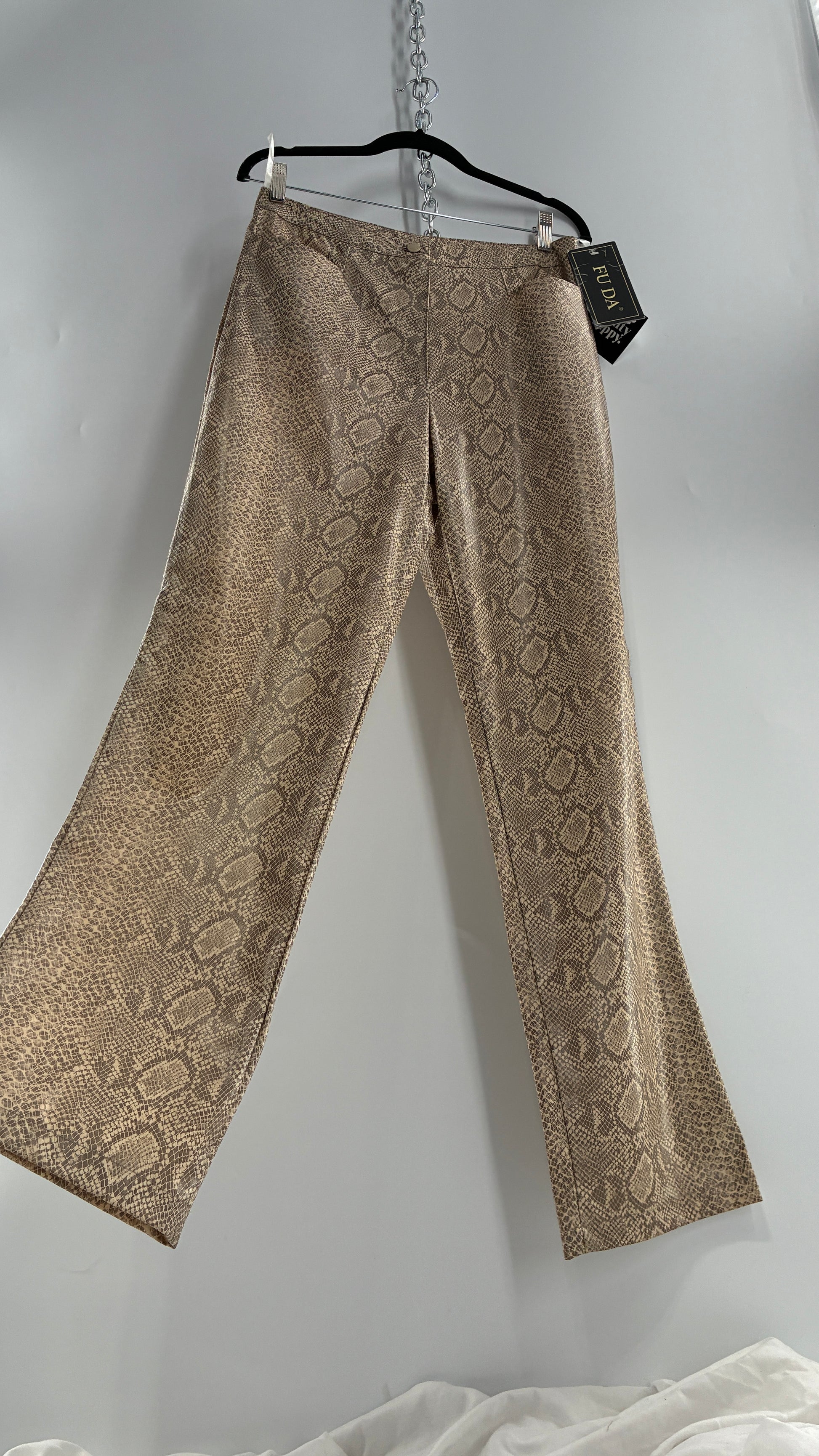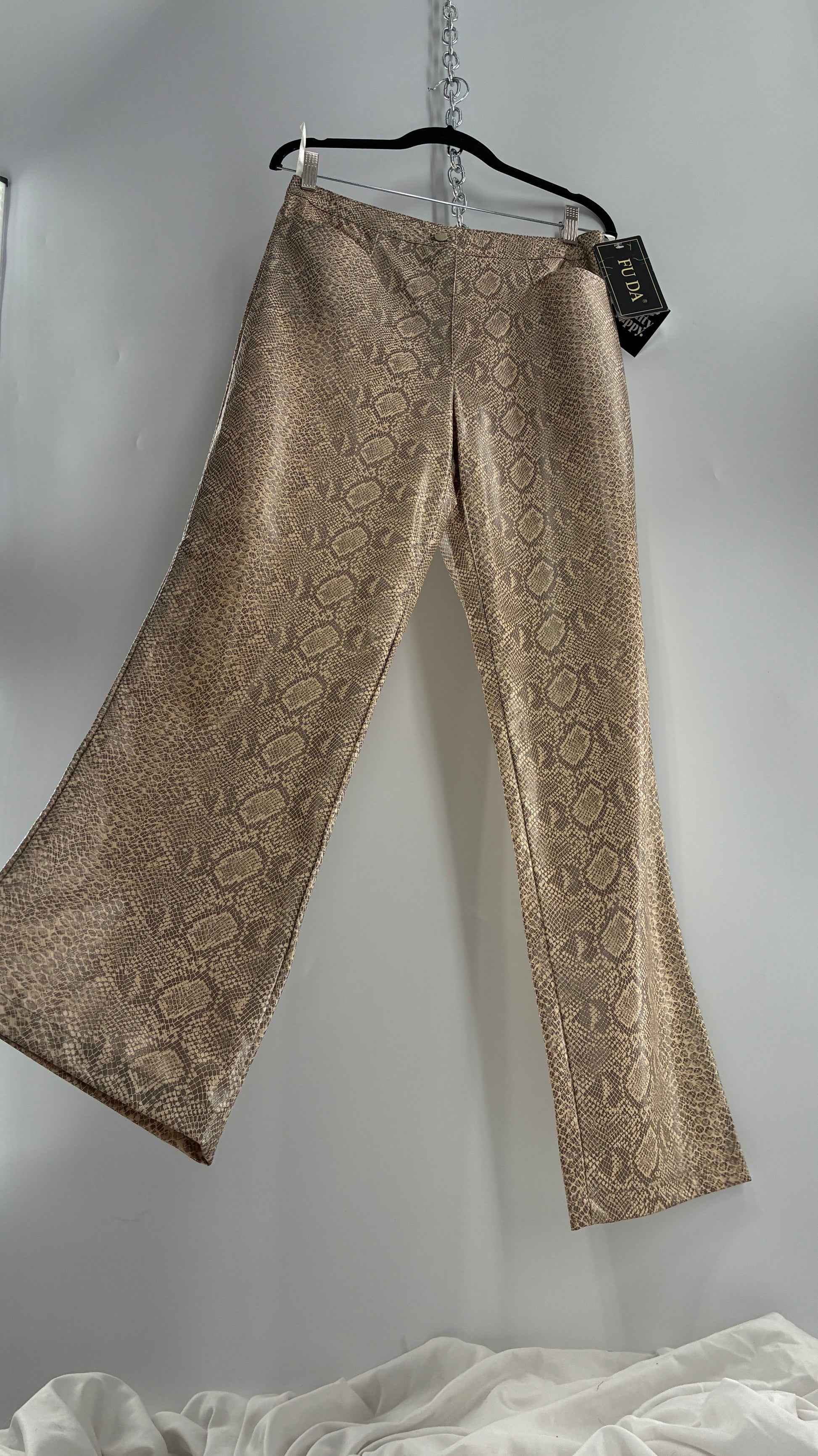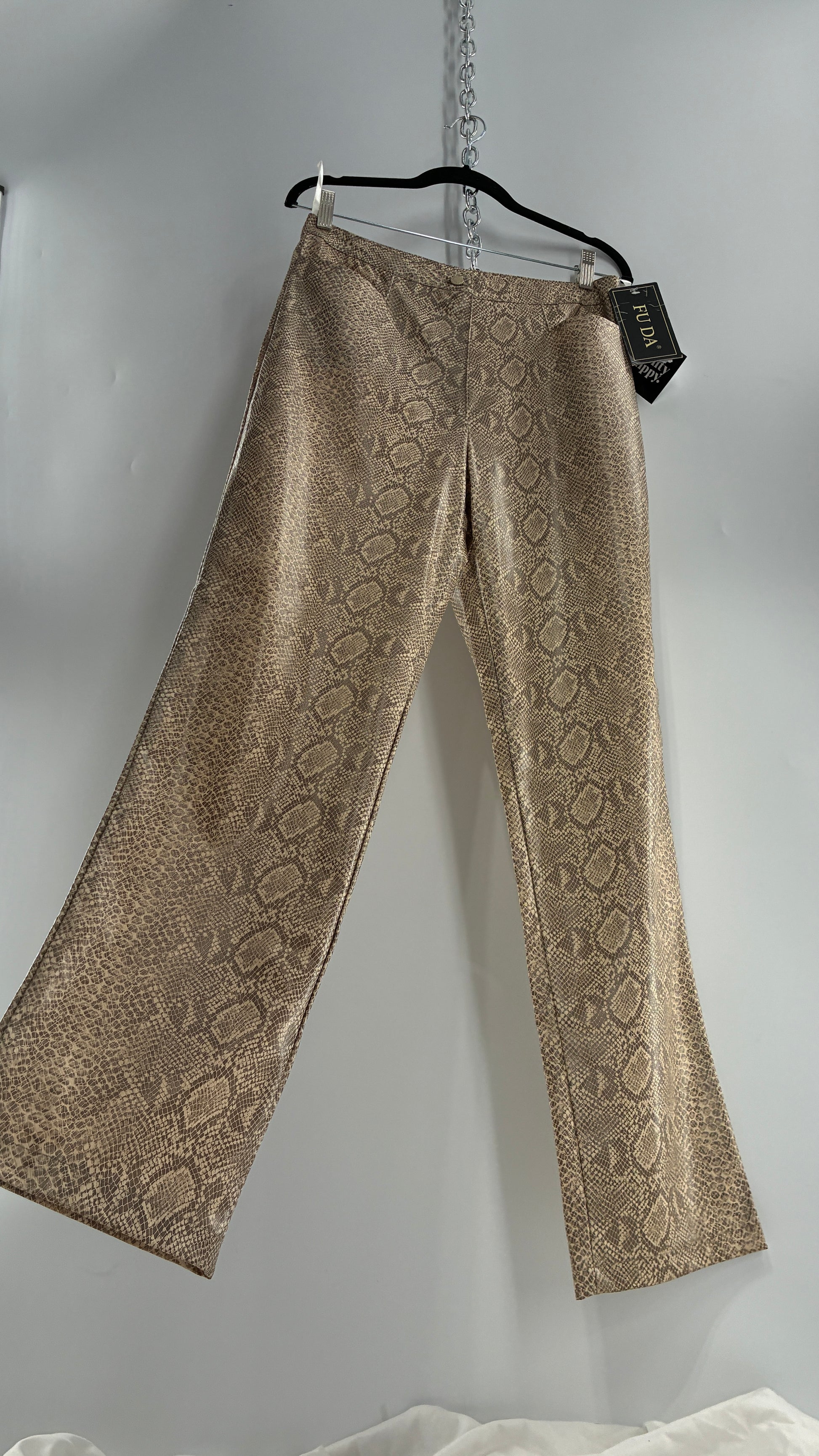 Deadstock Vintage FUDA Vegan Leather Snakeskin Patterned Straight Legs