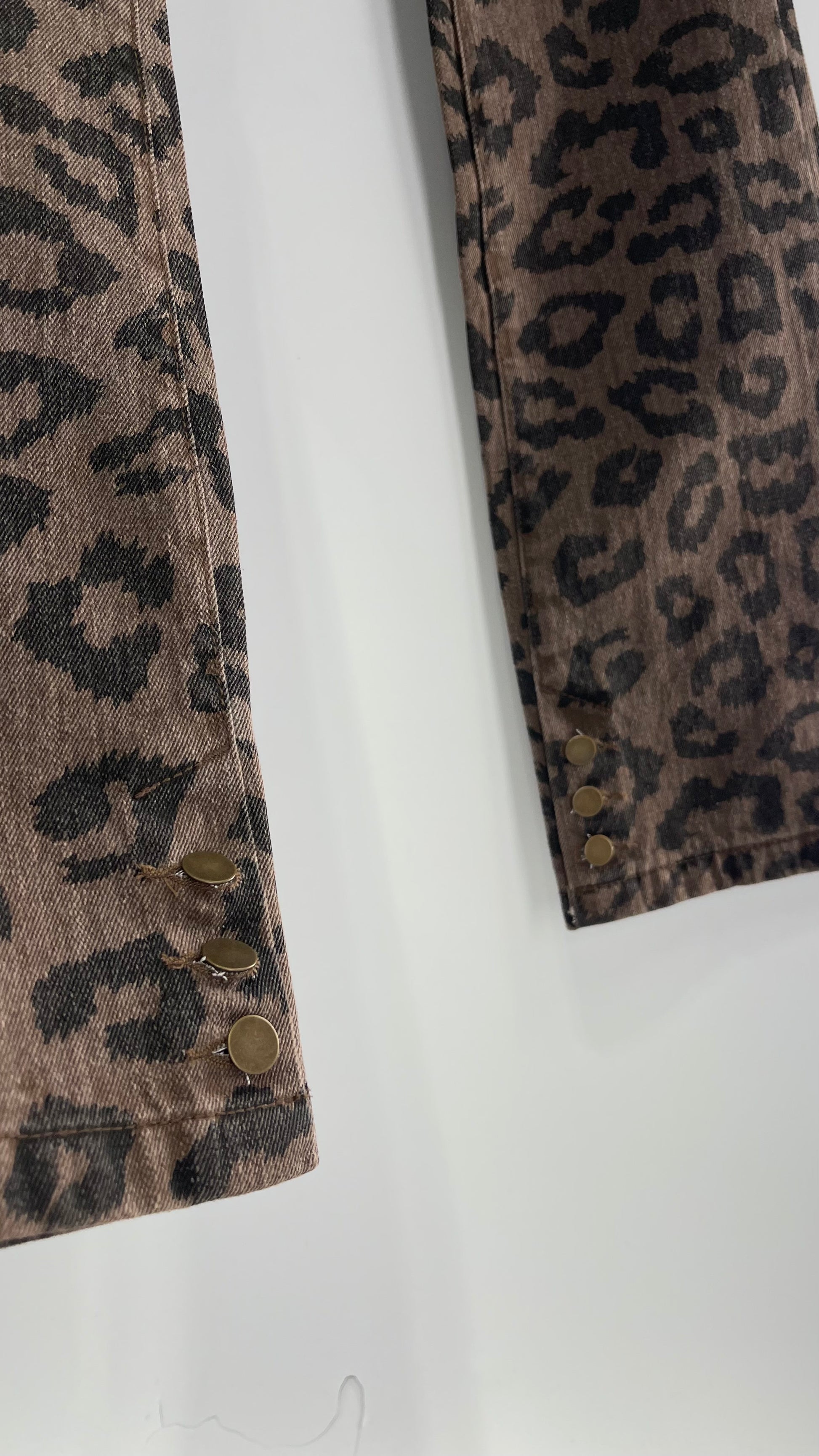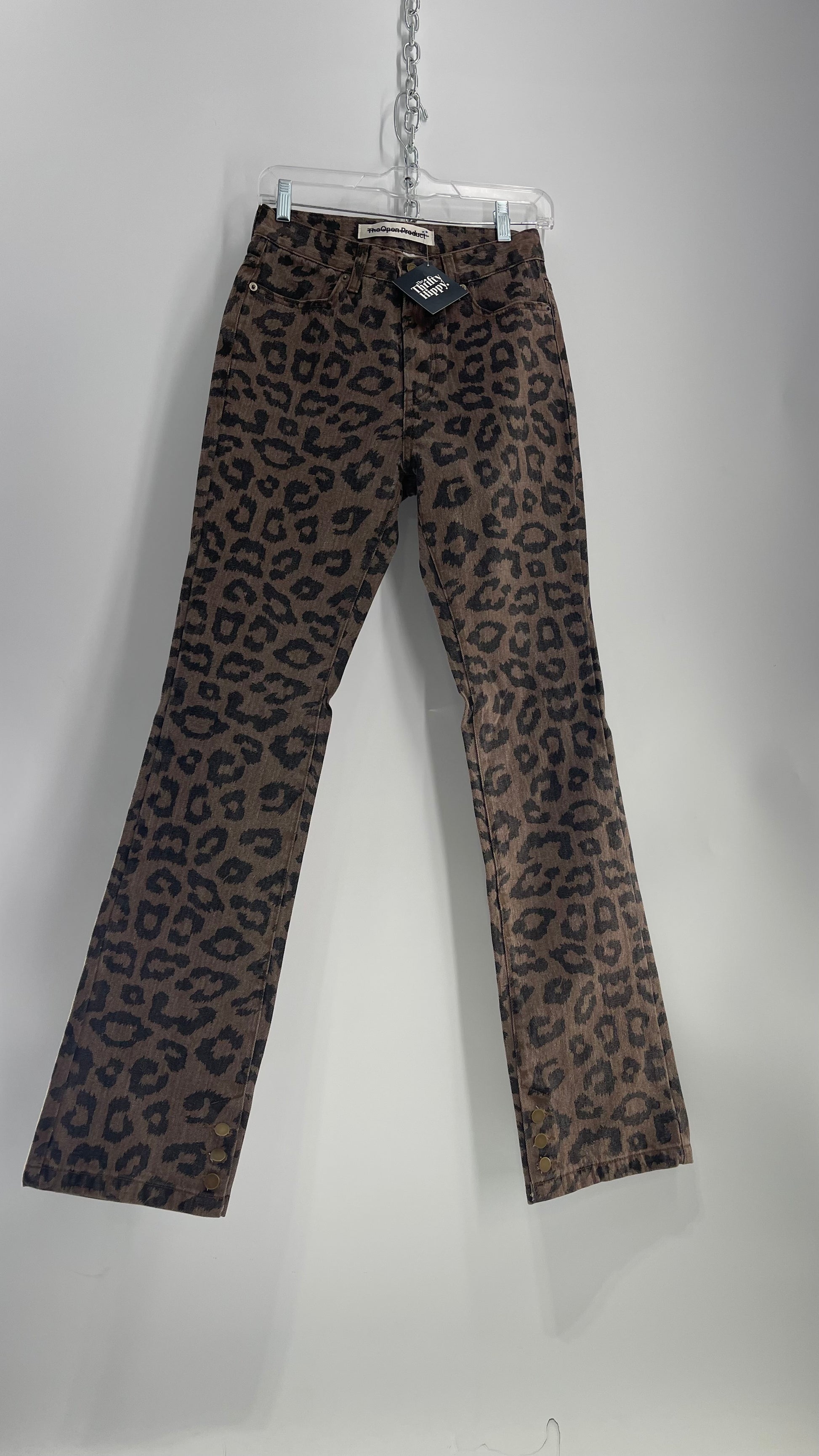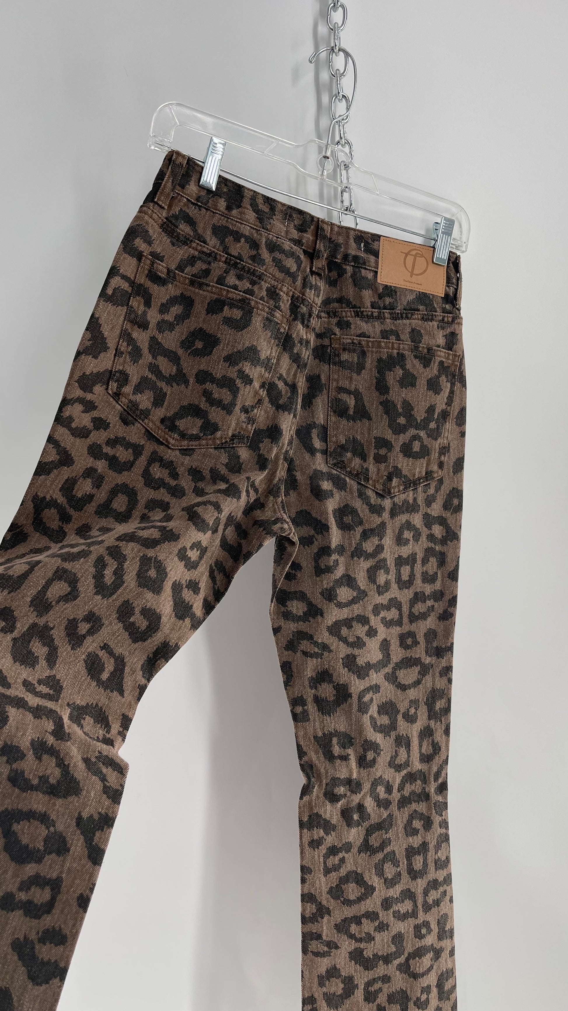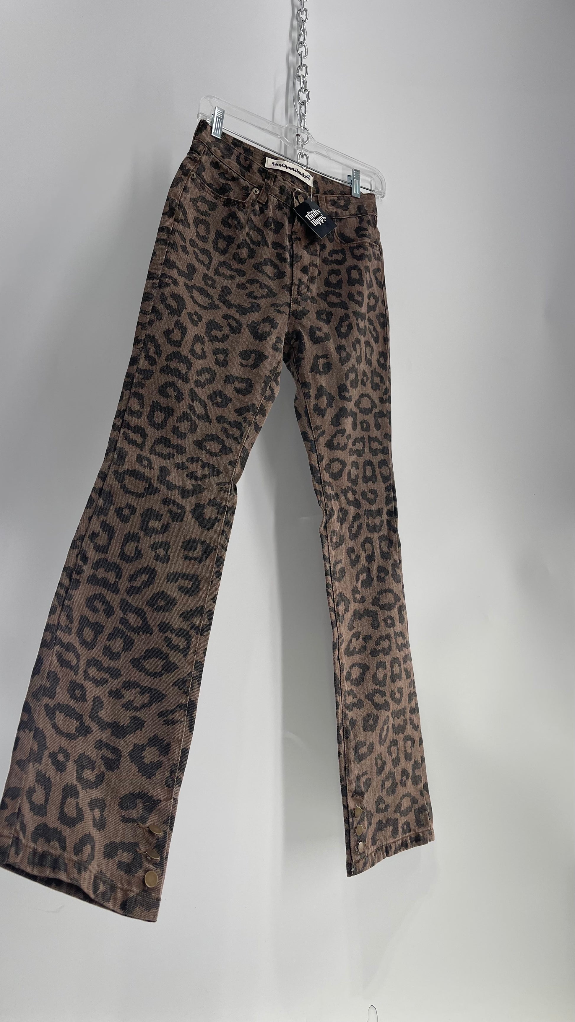 The Open Product Cheetah Print Brown Jeans with Buttons on Hem (2)