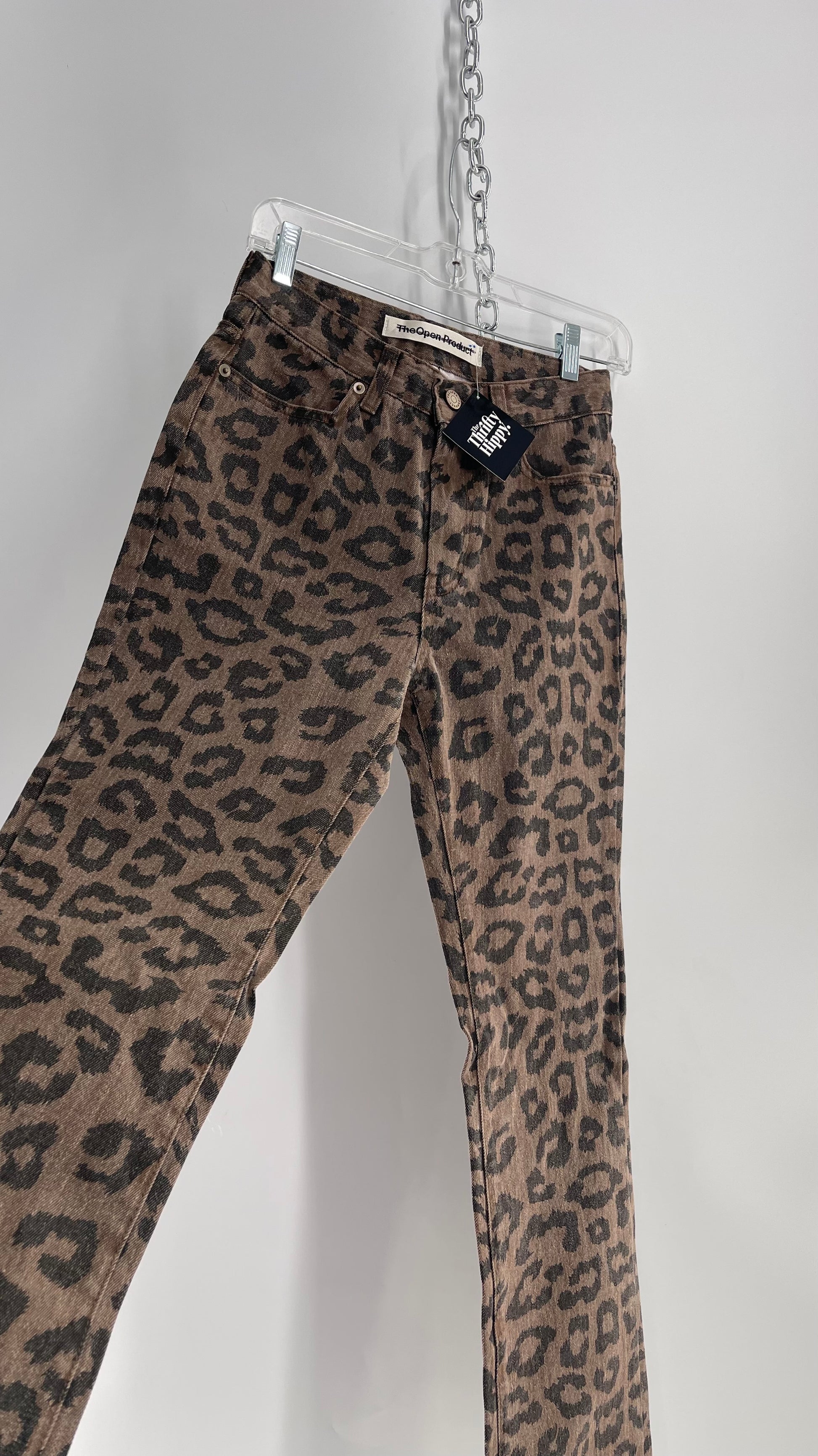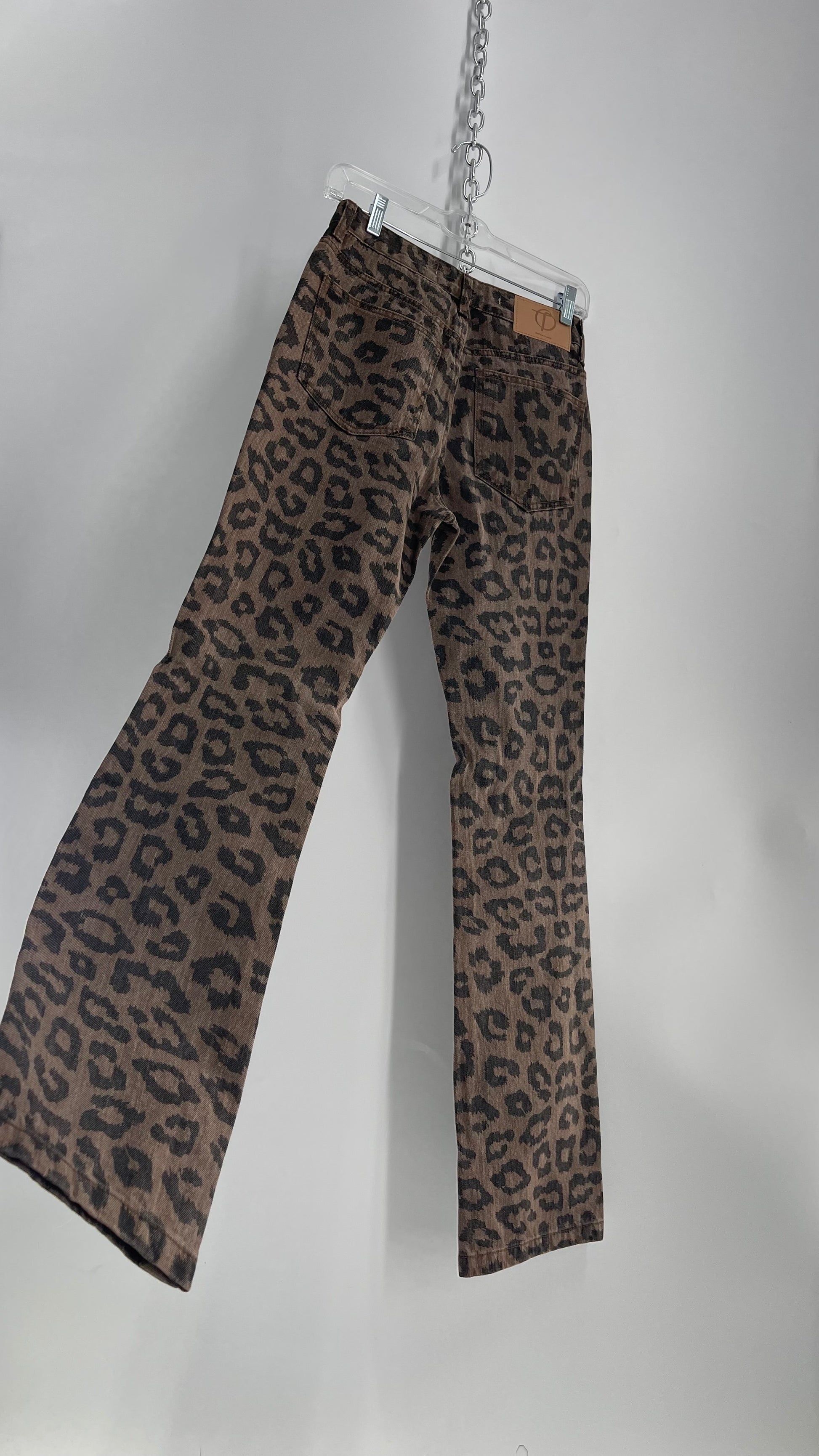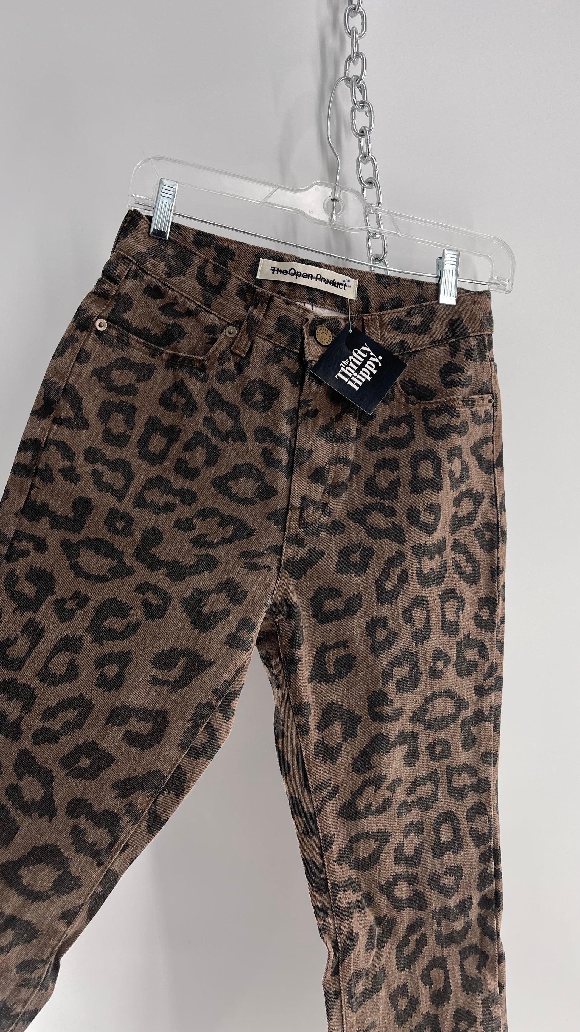 The Open Product Cheetah Print Brown Jeans with Buttons on Hem (2)