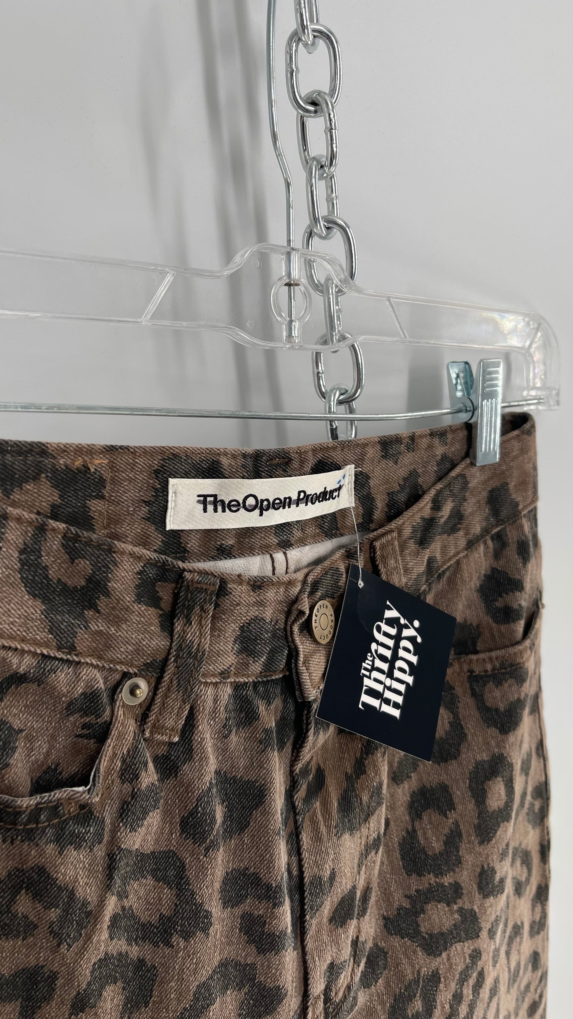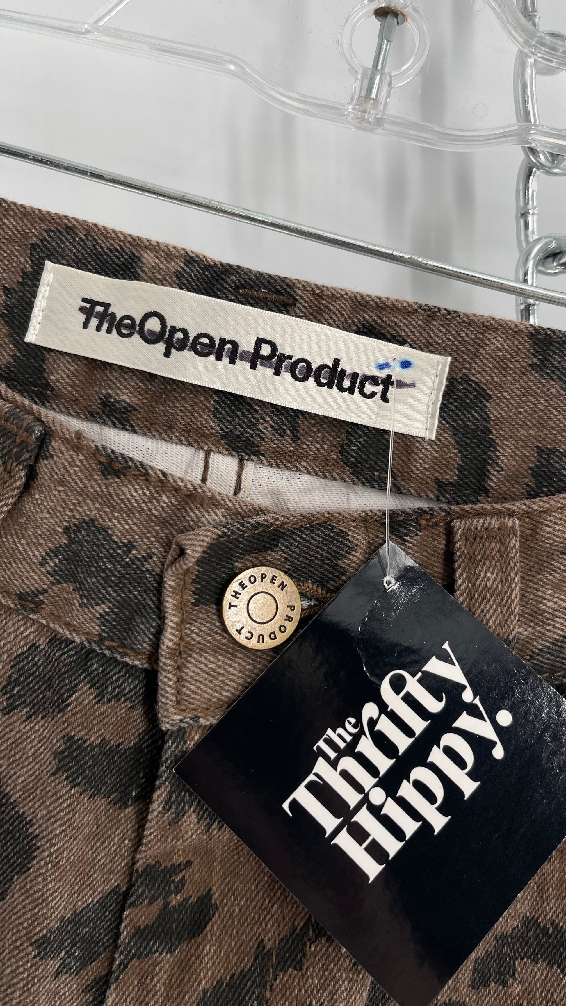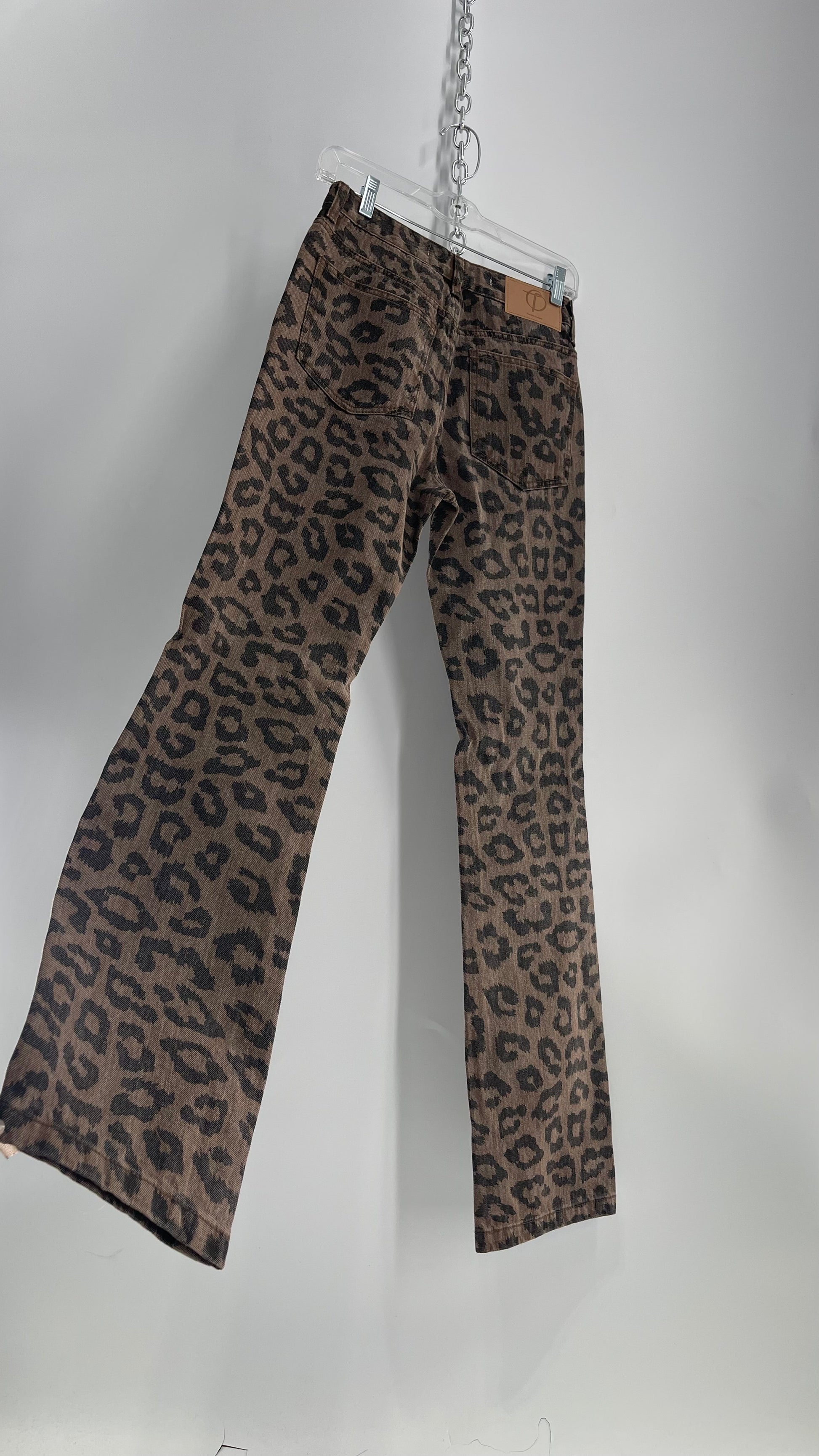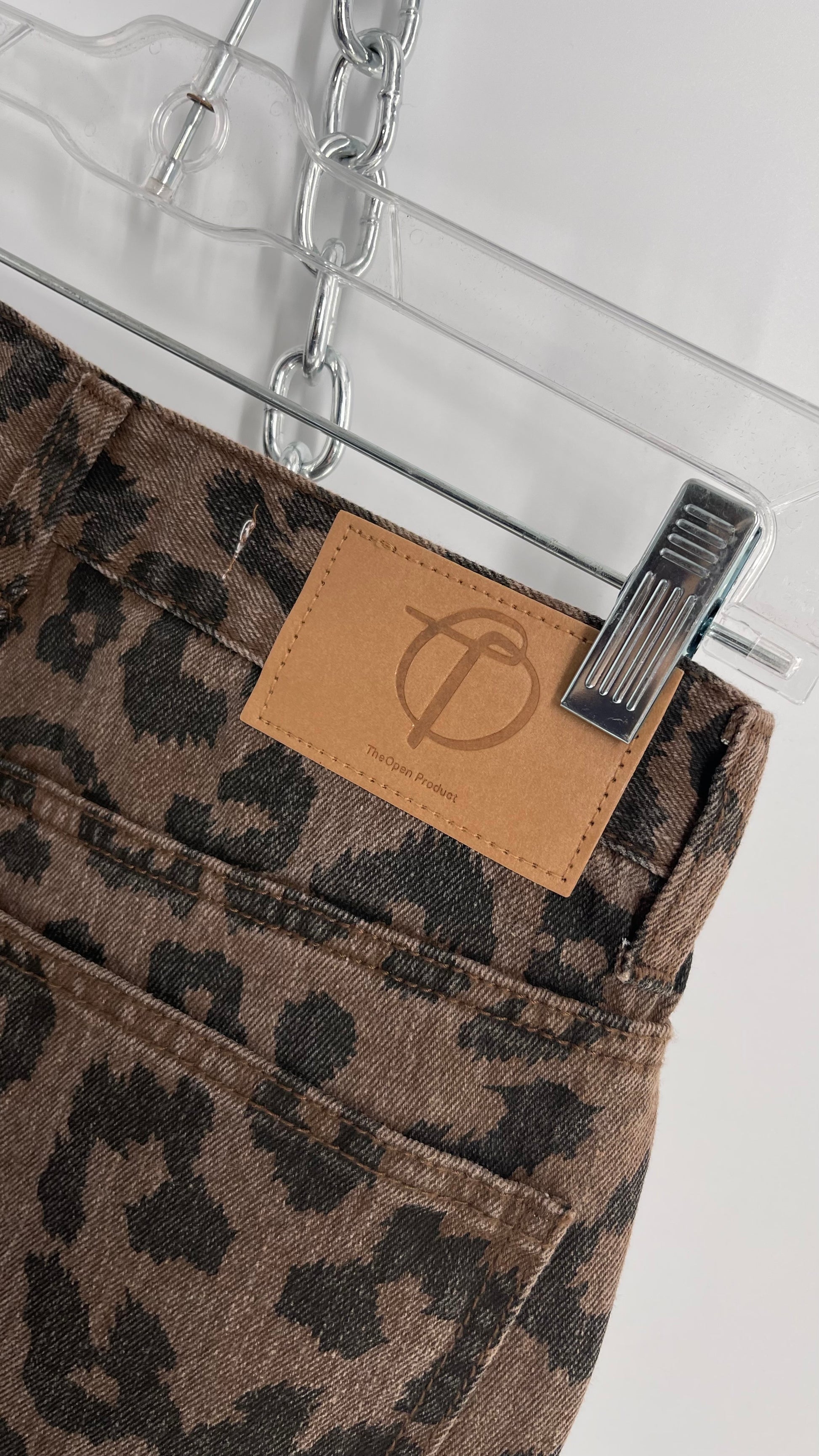 The Open Product Cheetah Print Brown Jeans with Buttons on Hem (2)
