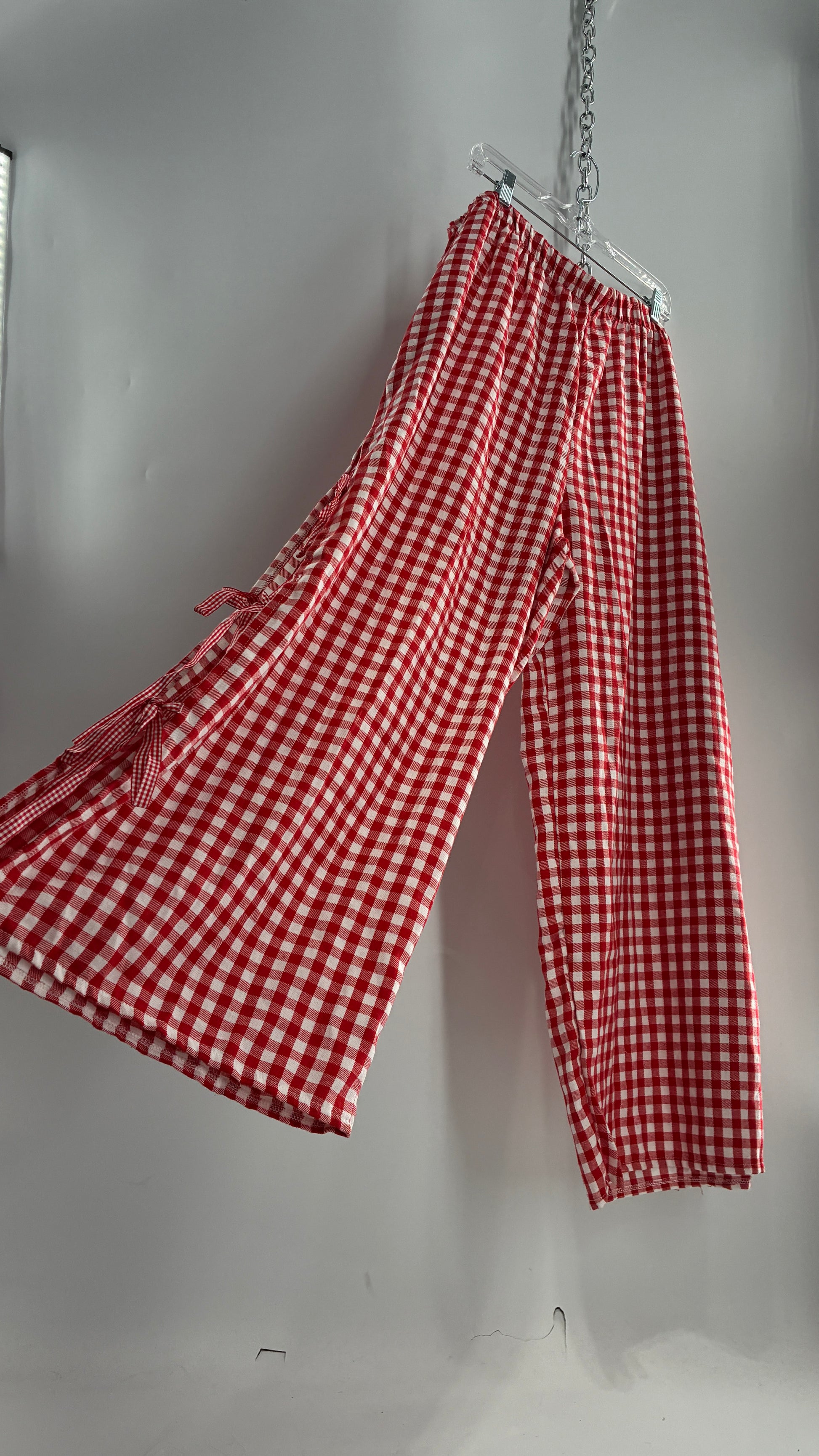 Gingham Wide Leg Red and White Picnic Pants with Ribbon Detailing and Tags Attached