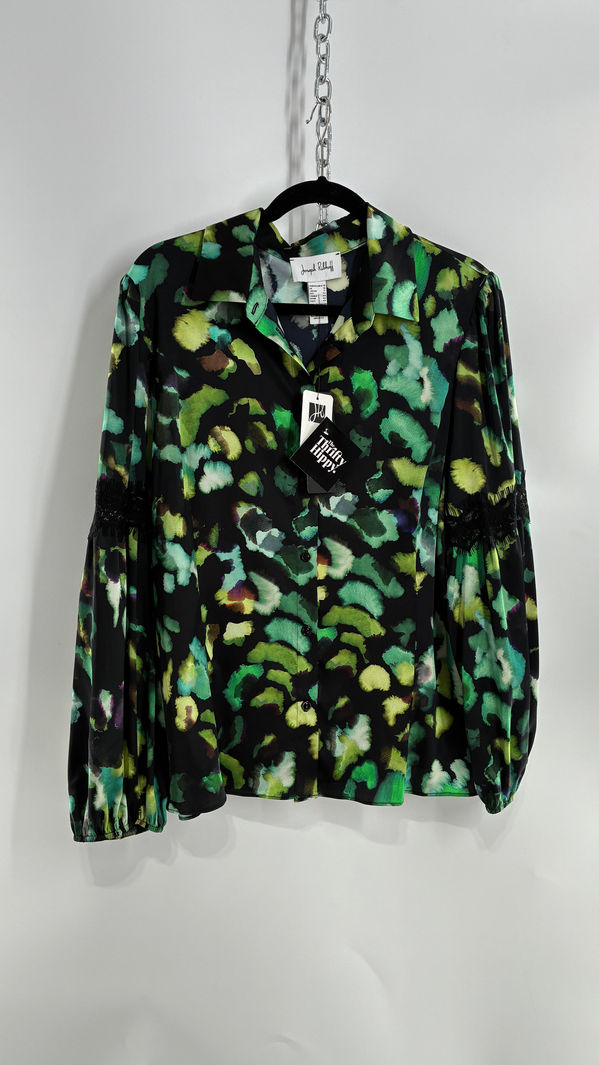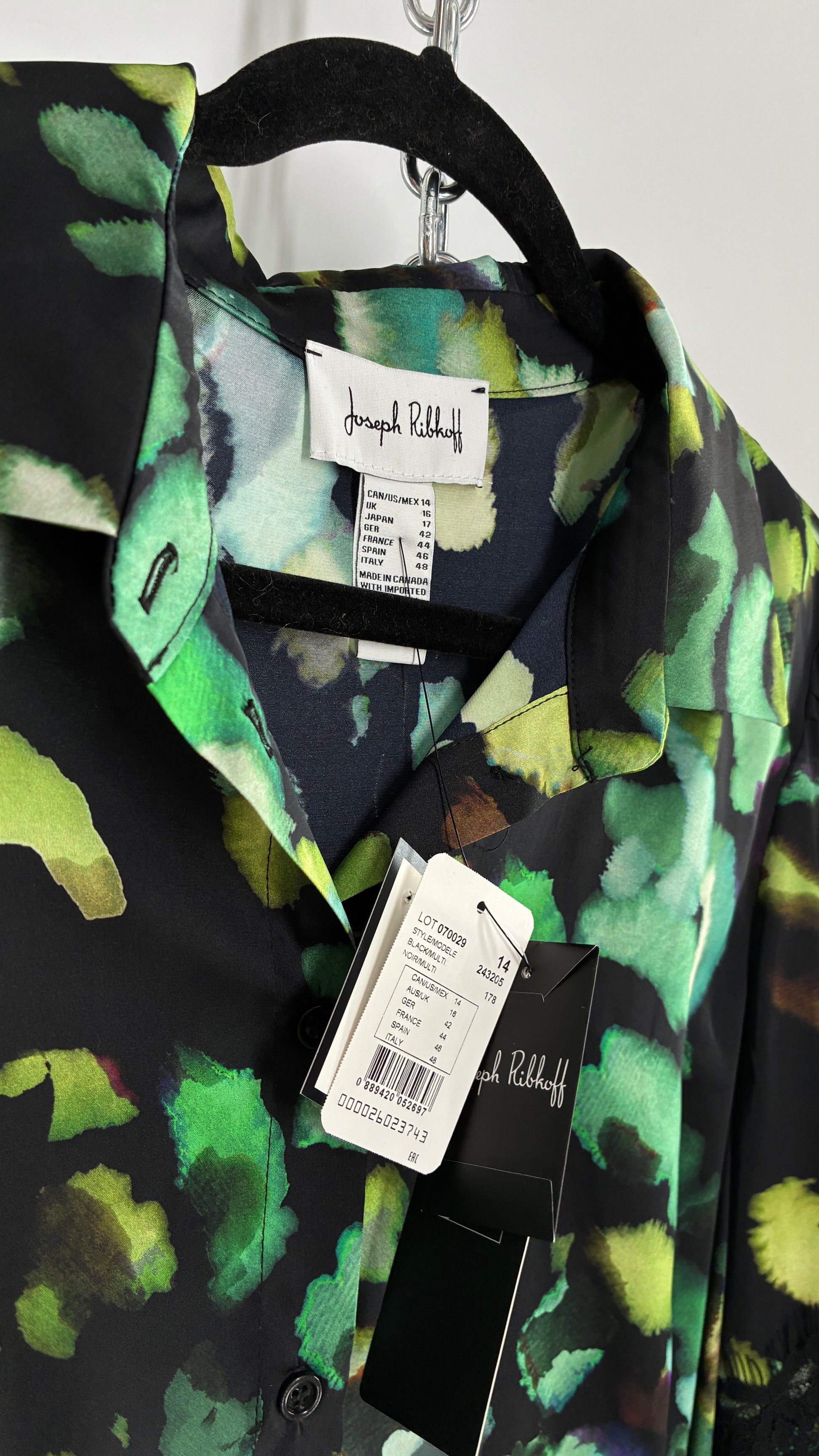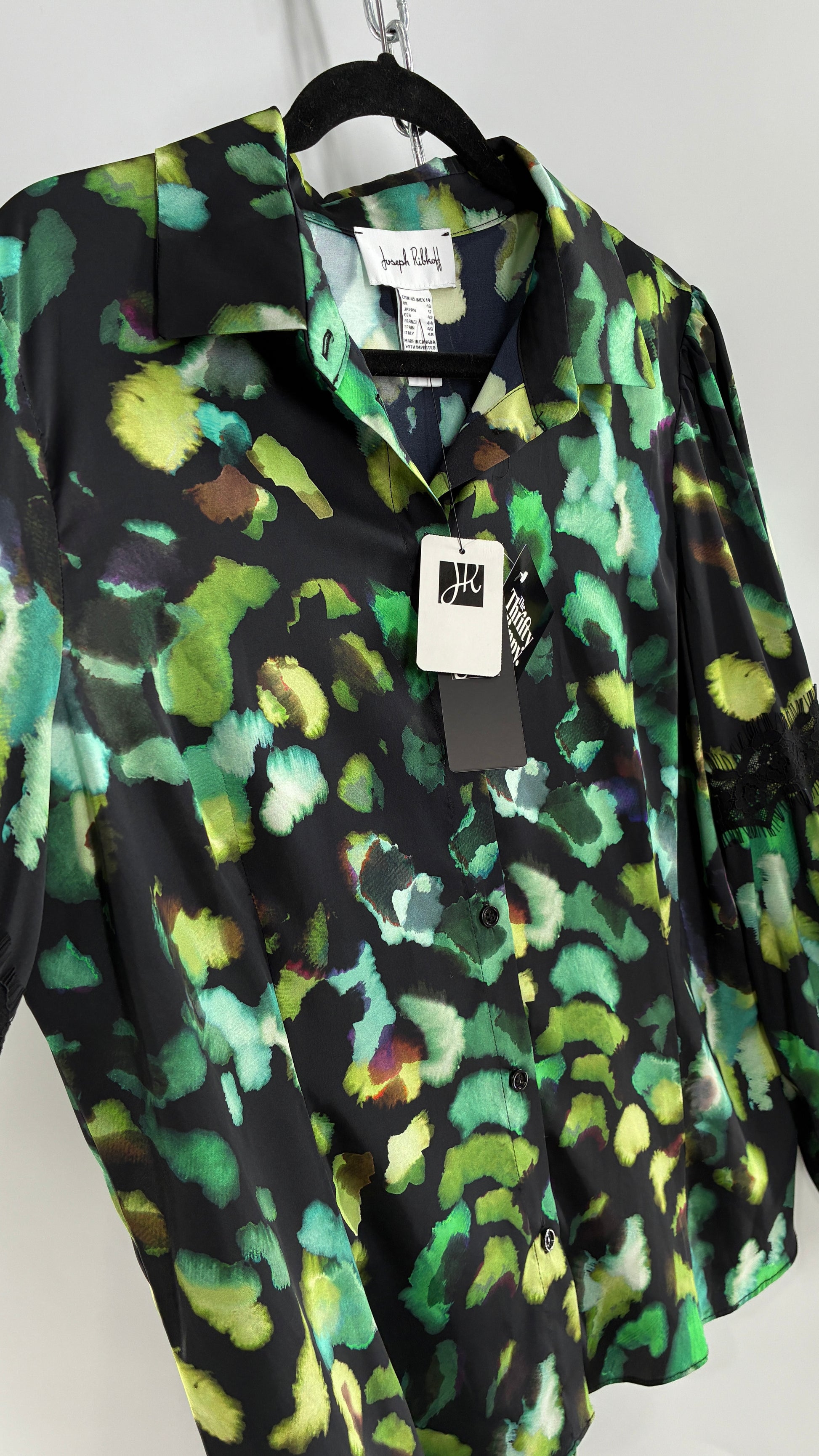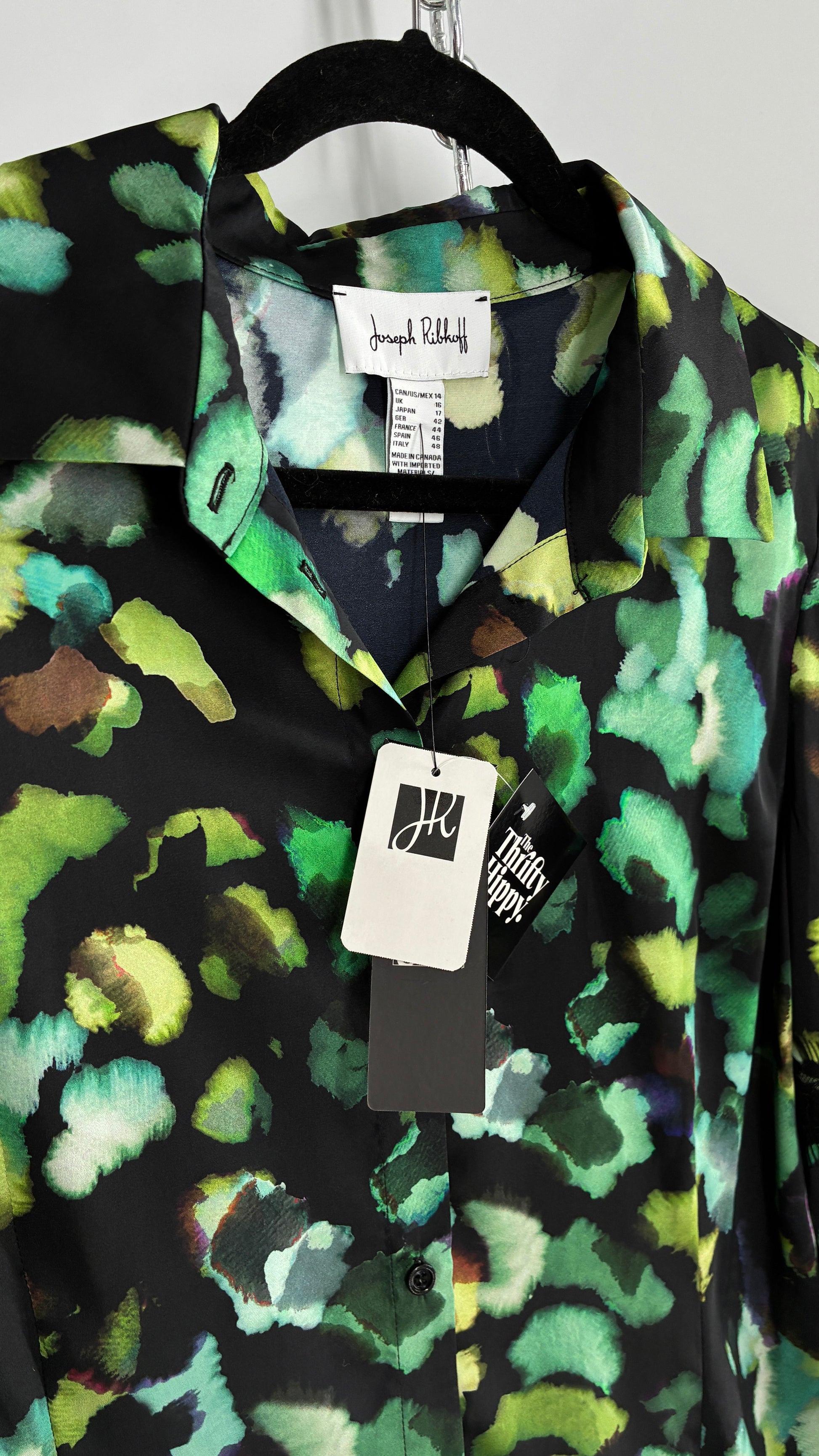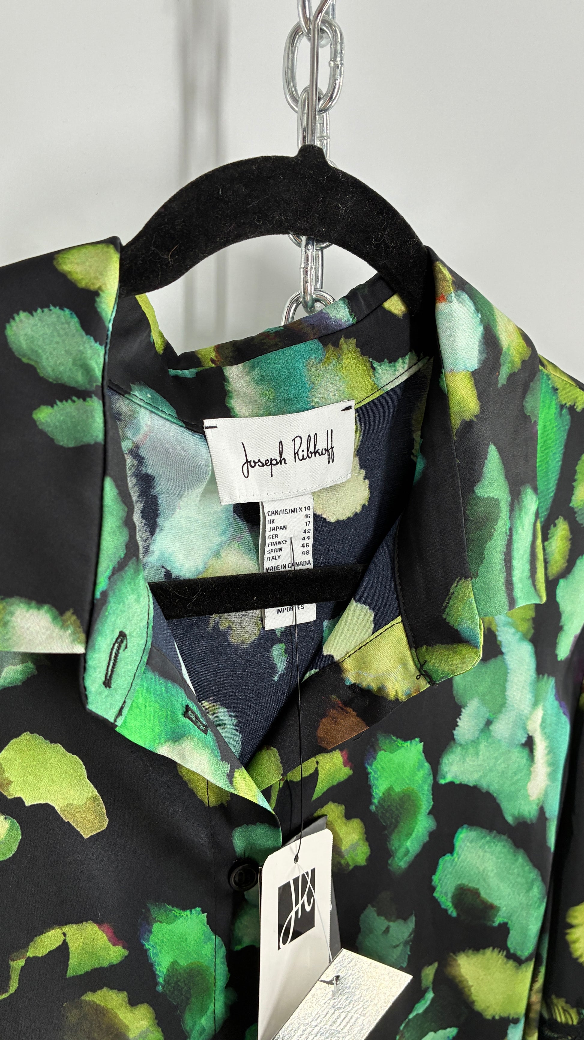 NWT Designer JOSEPH RIBKOFF Green Graphic Balloon Sleeve Blouse with Tags Attached
