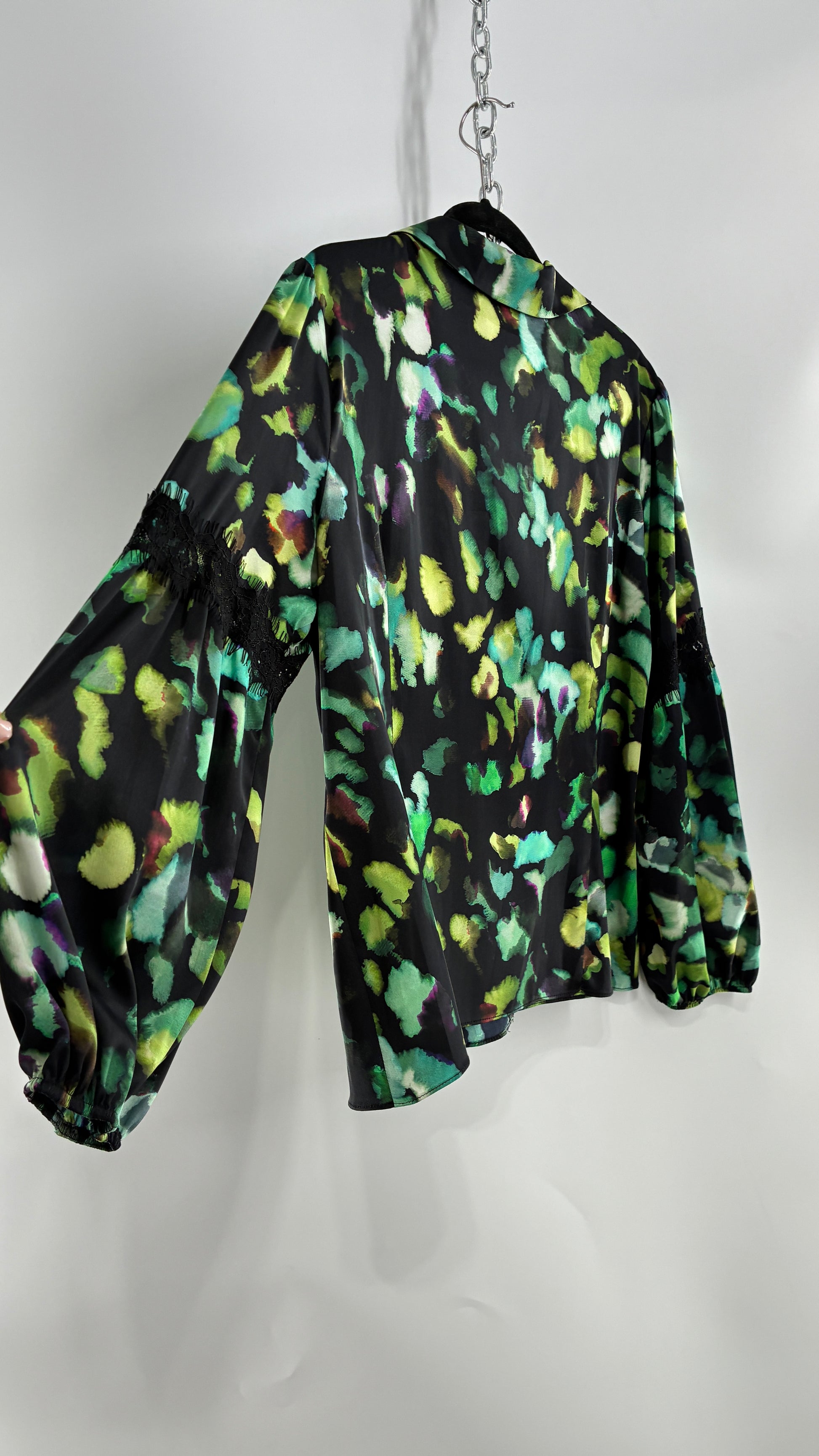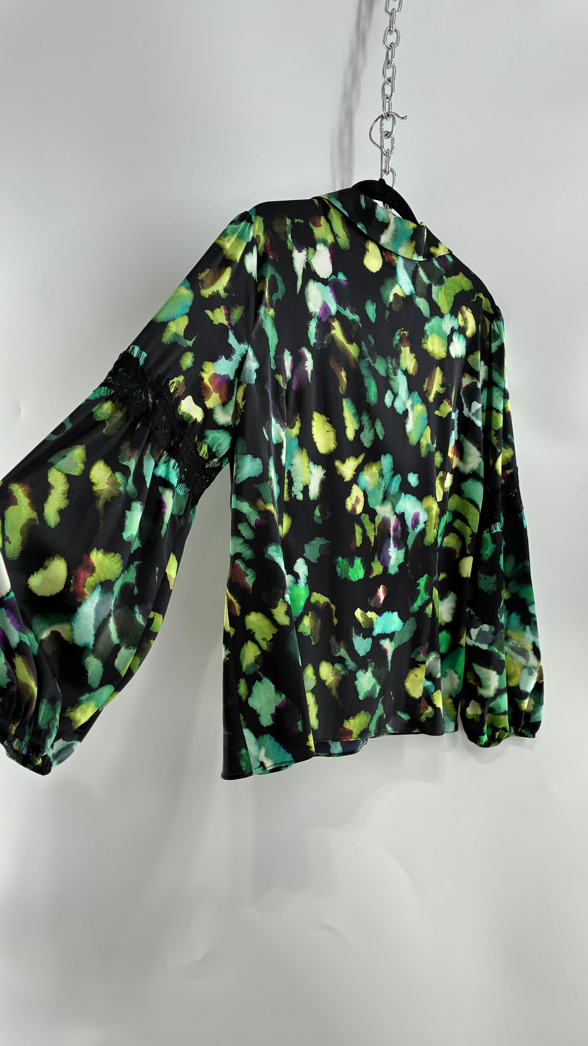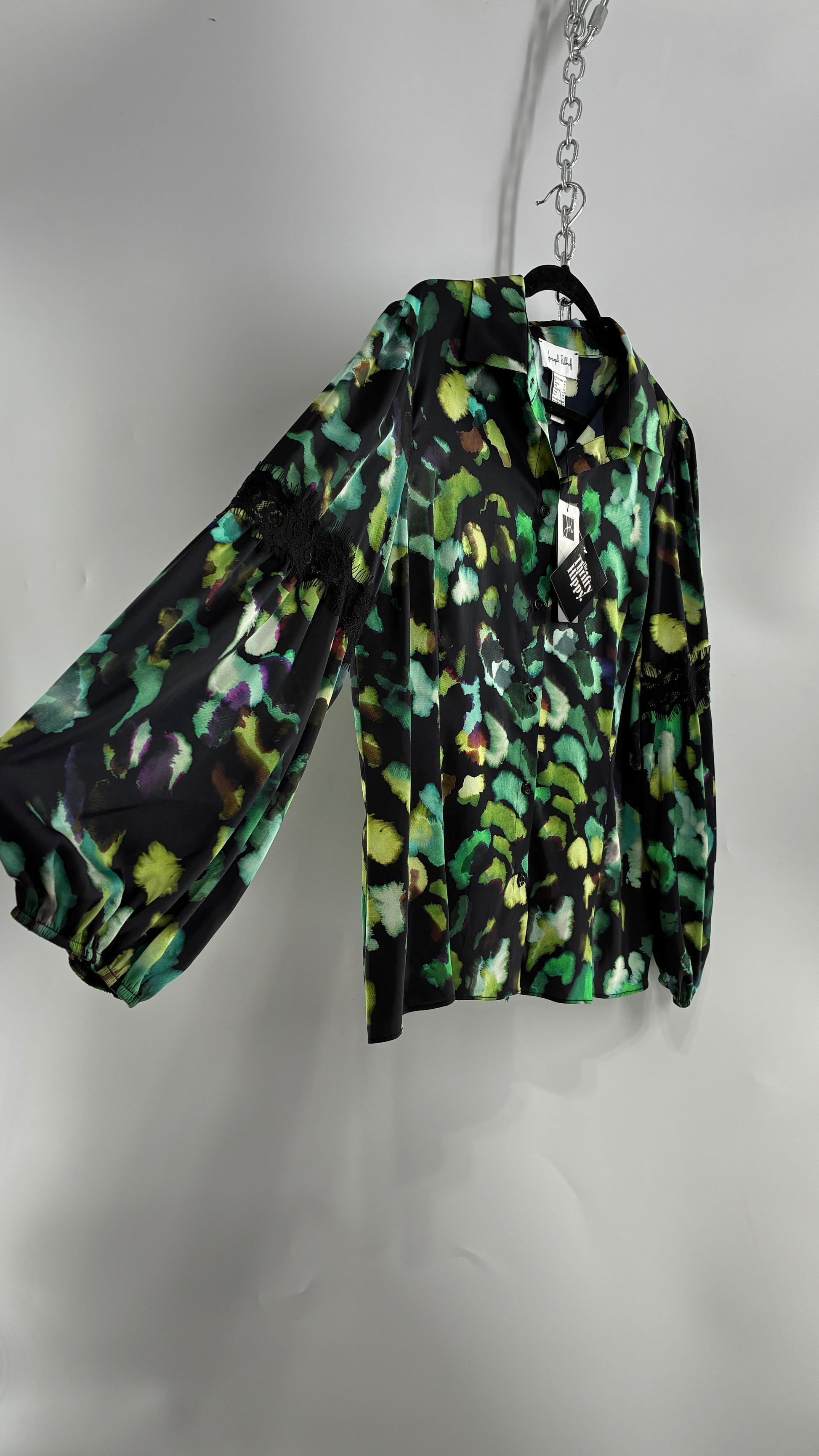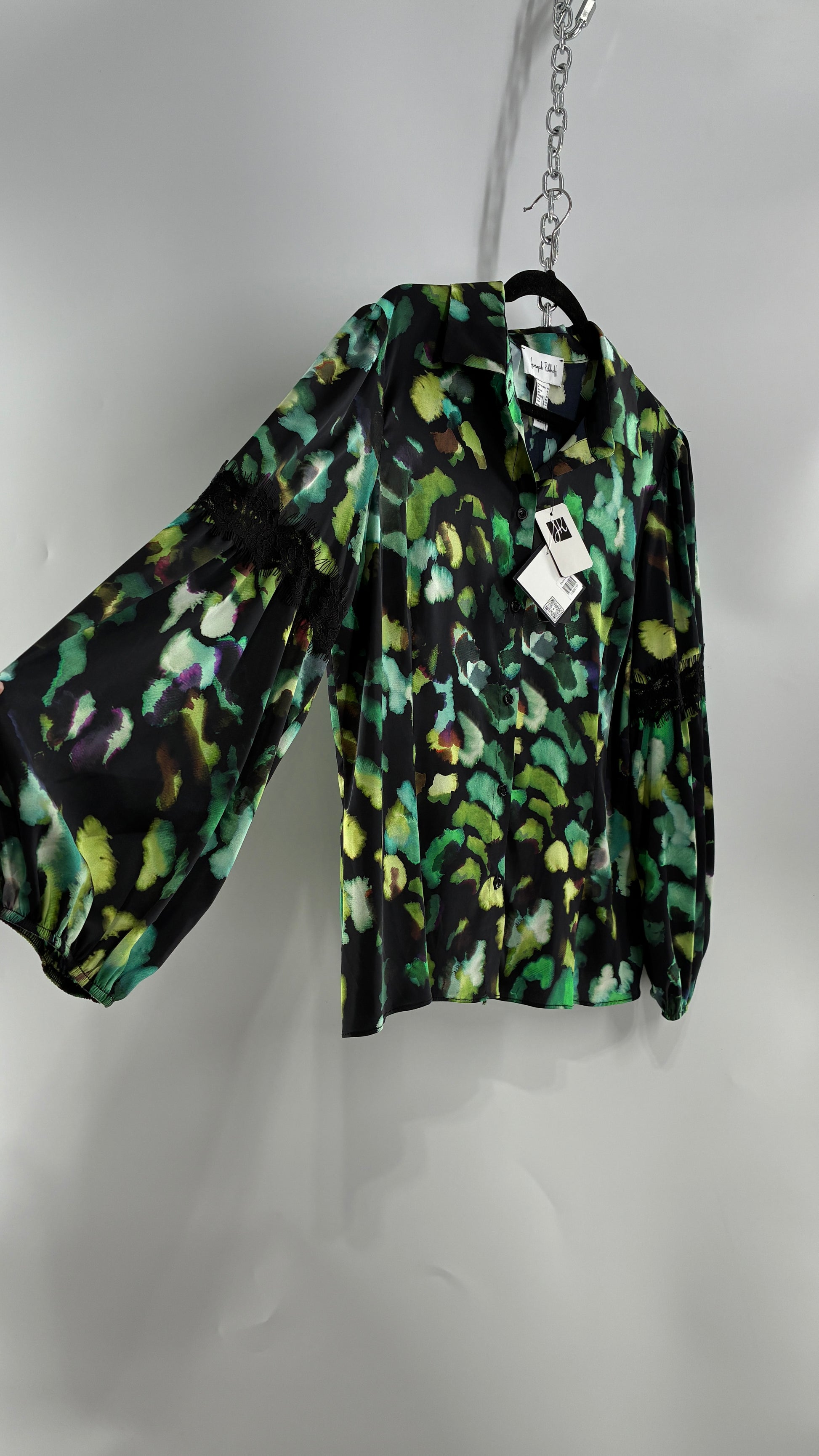 NWT Designer JOSEPH RIBKOFF Green Graphic Balloon Sleeve Blouse with Tags Attached