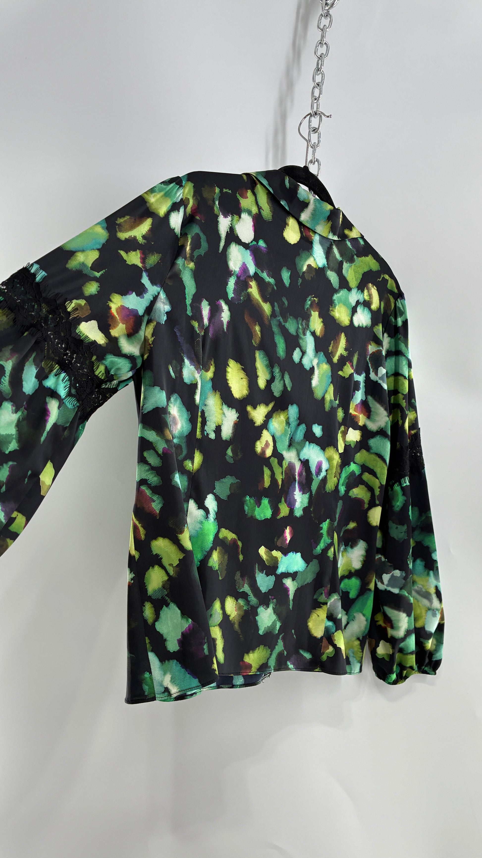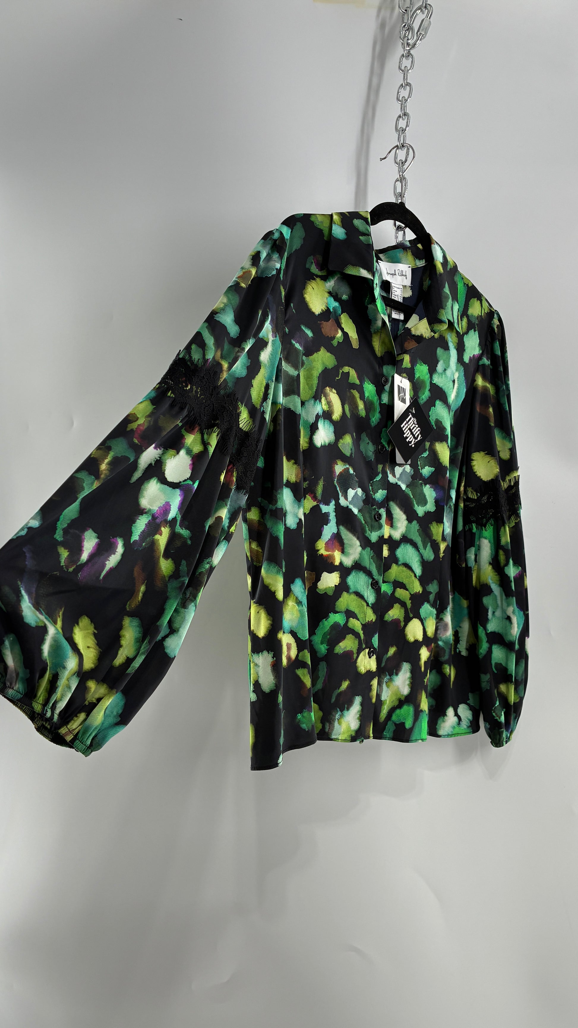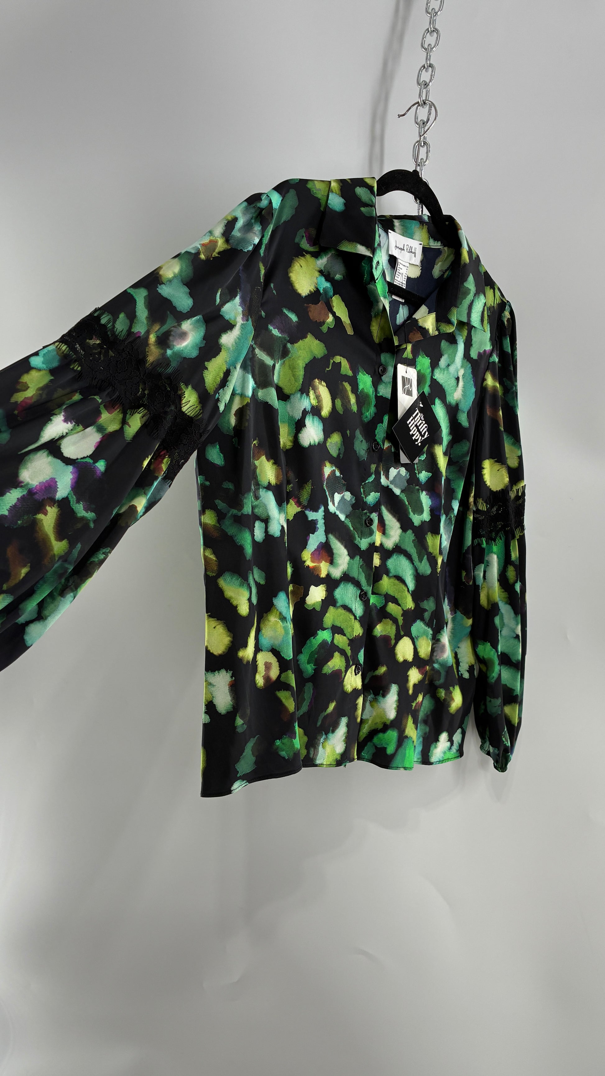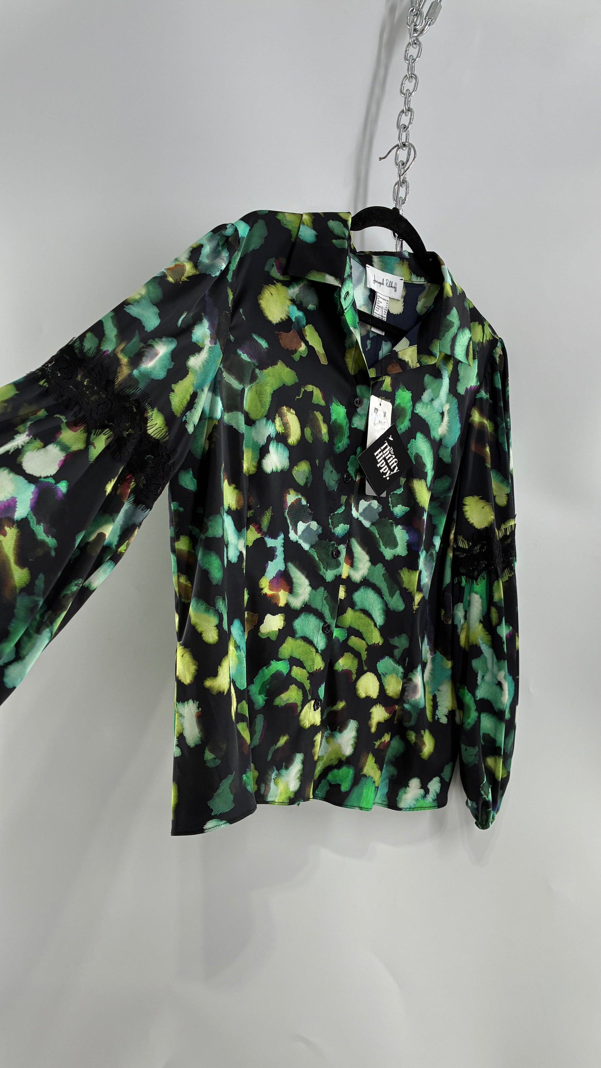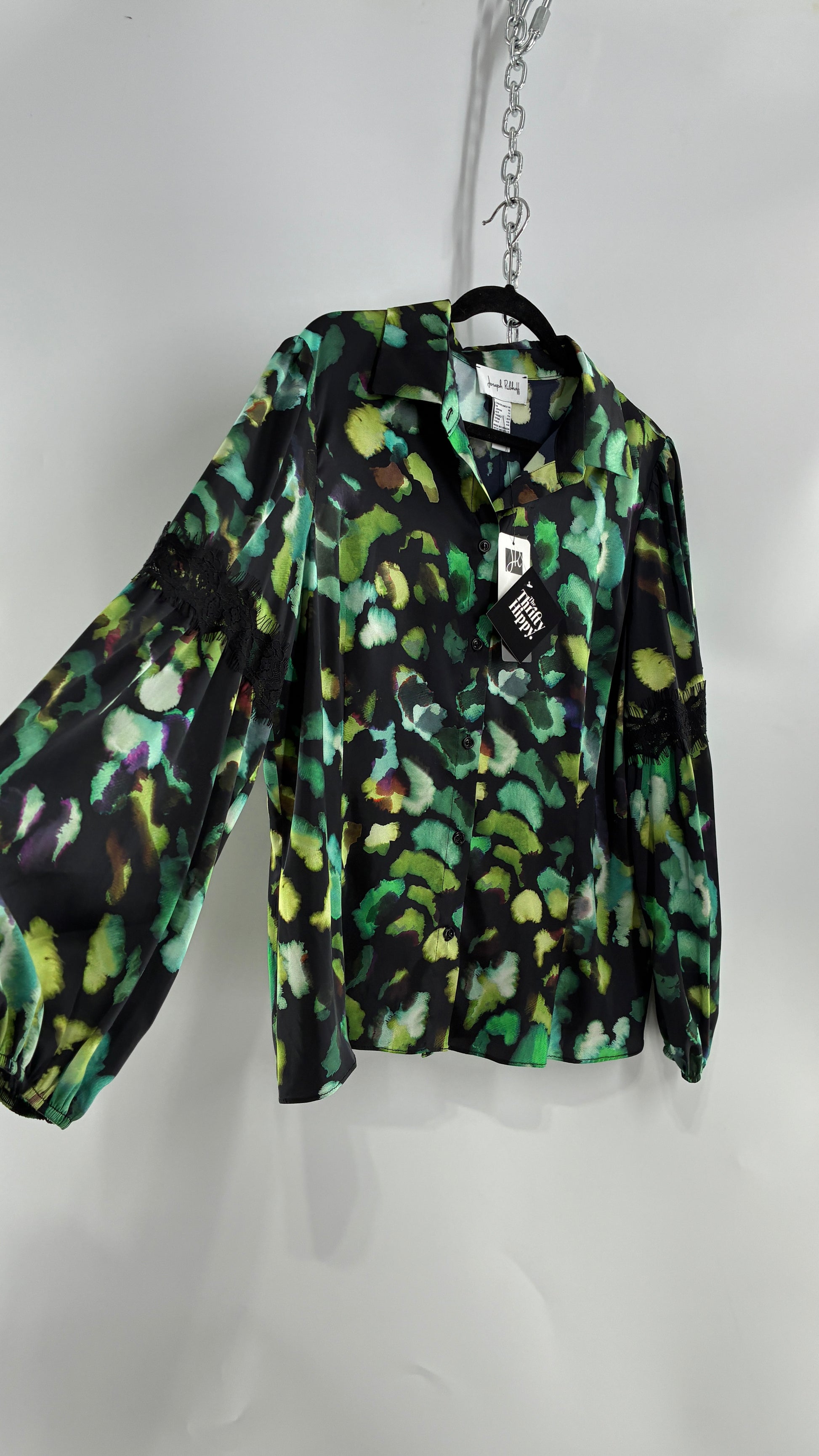 NWT Designer JOSEPH RIBKOFF Green Graphic Balloon Sleeve Blouse with Tags Attached