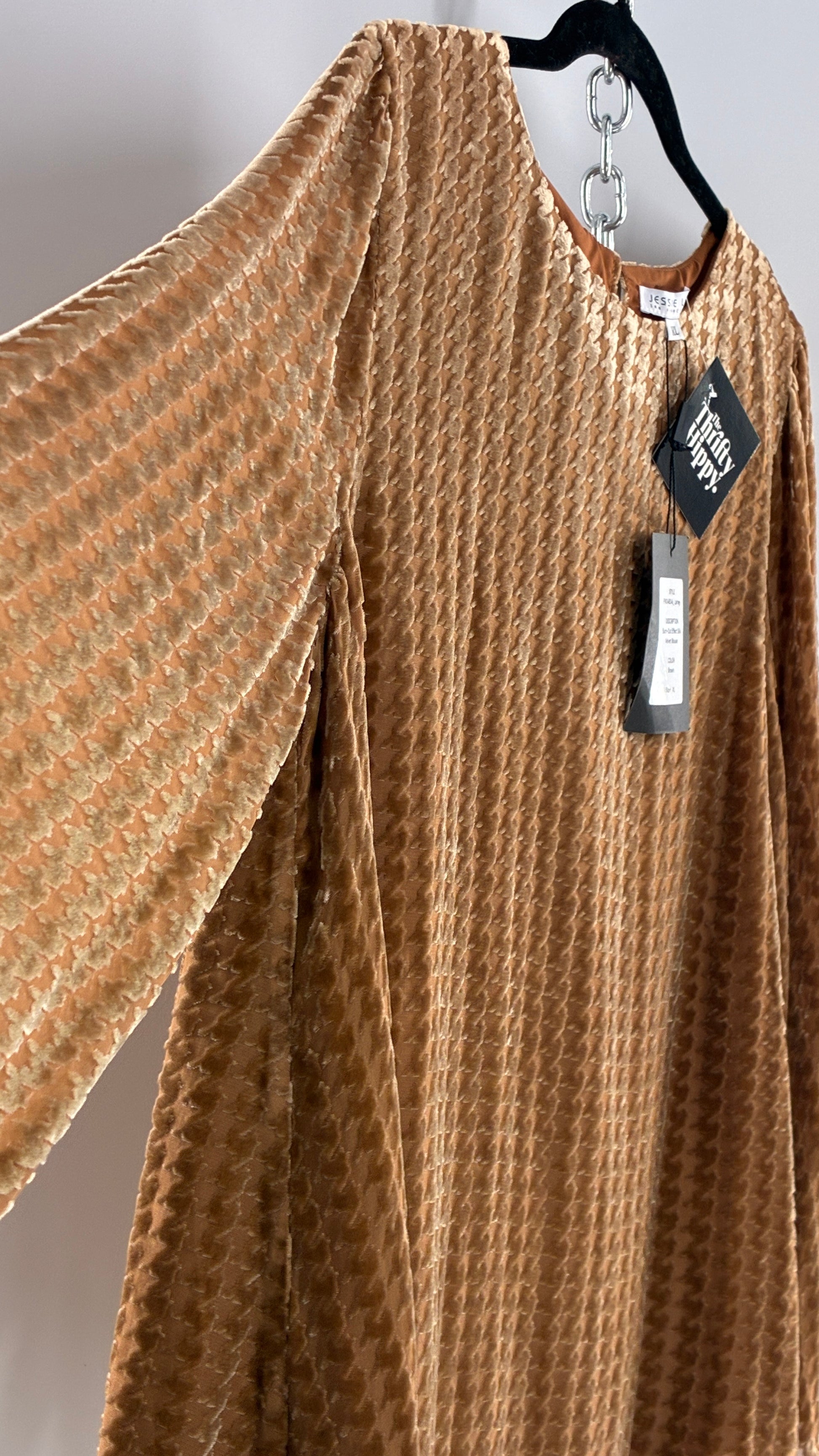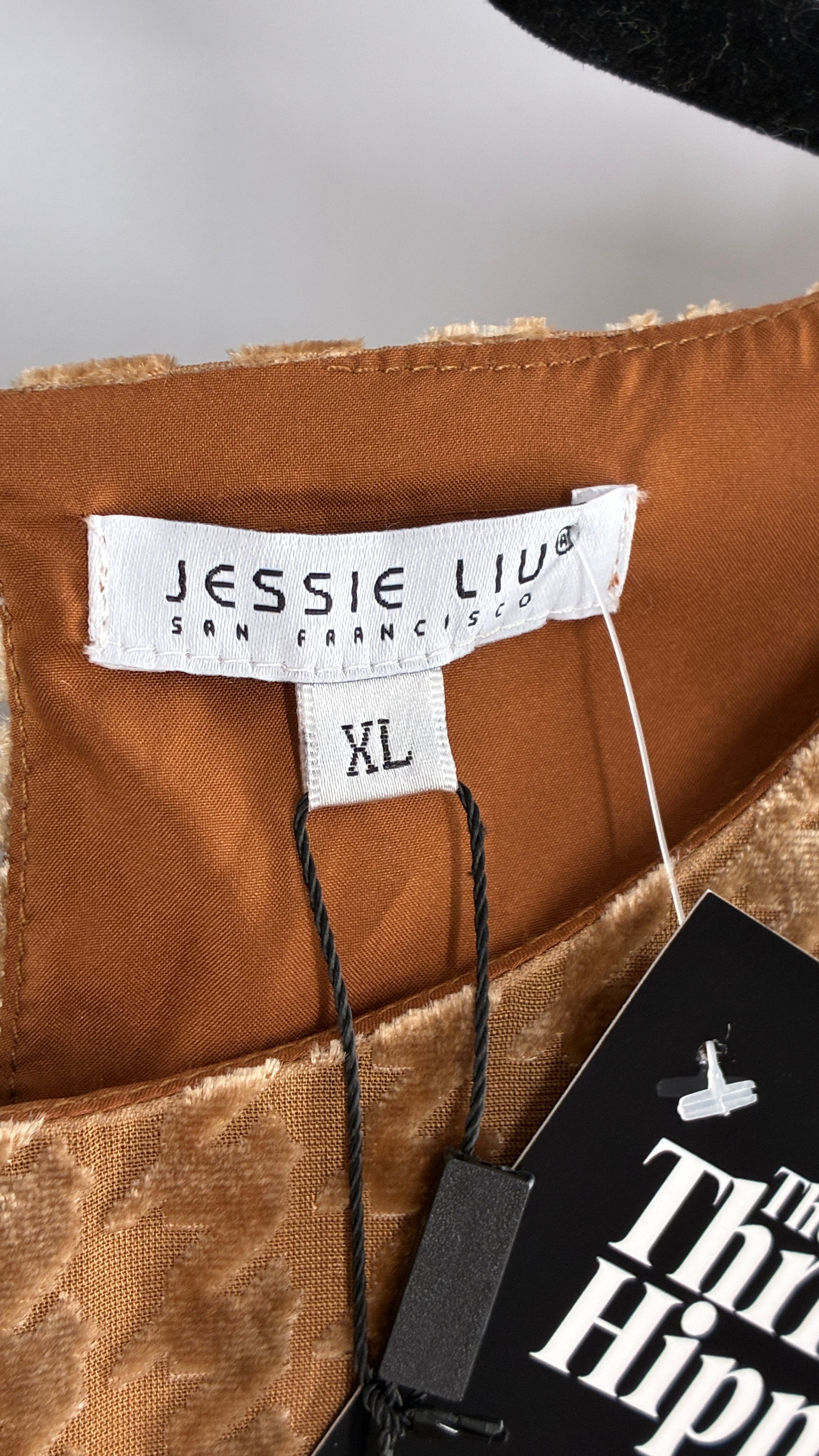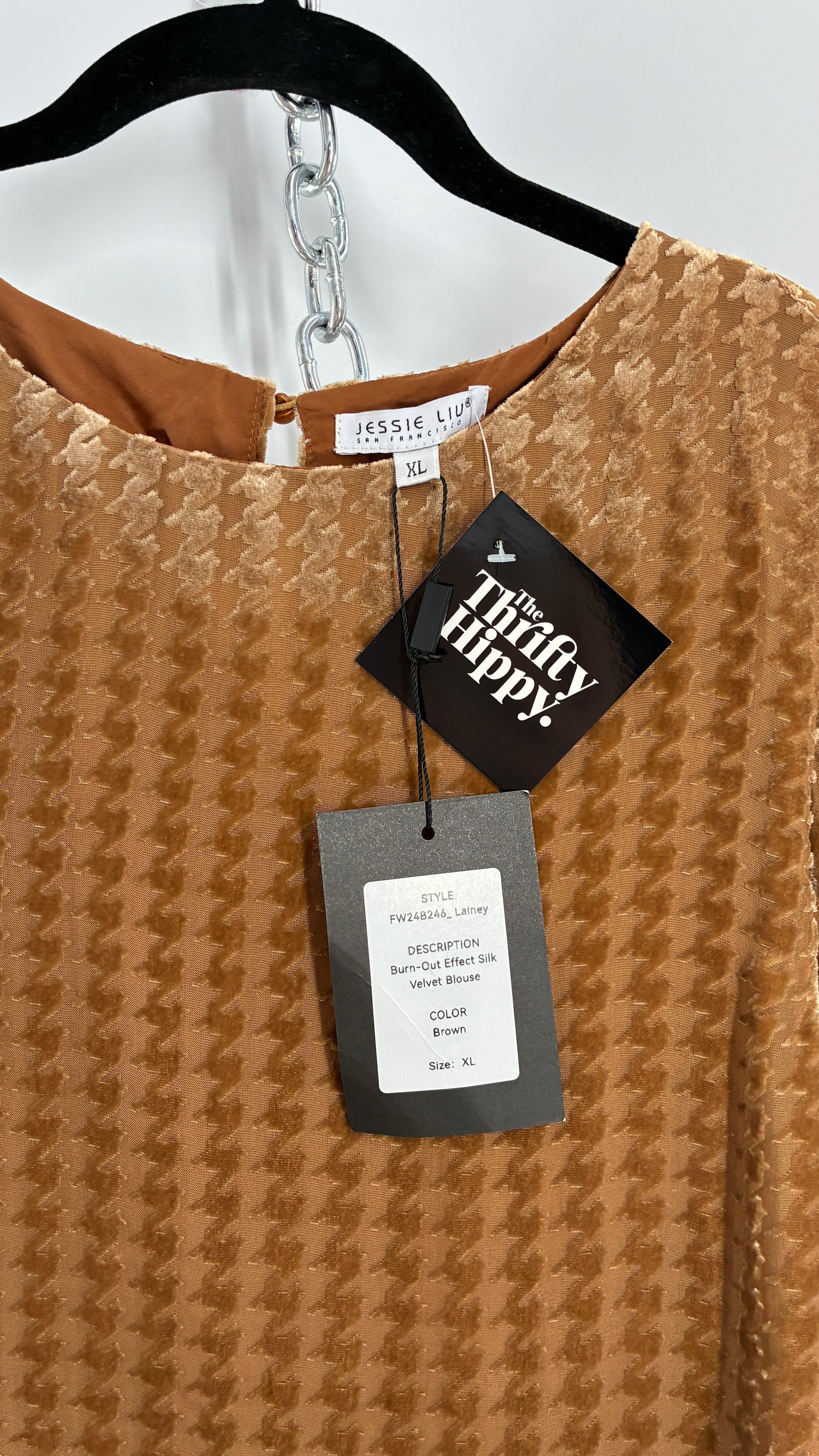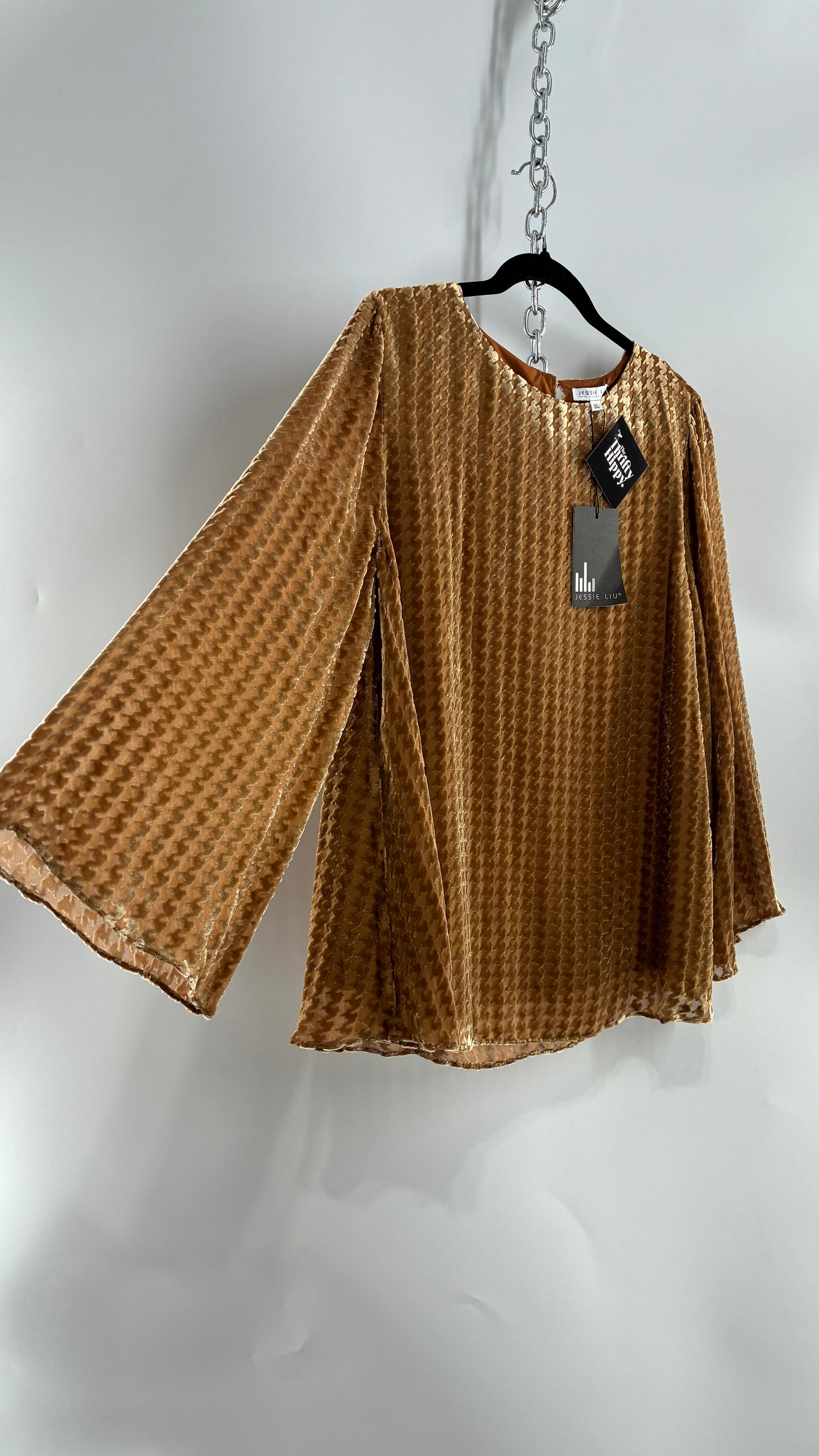 JESSIE LIU Lainey Bell Sleeve Burn Out Effect Silk Blouse (XL)
