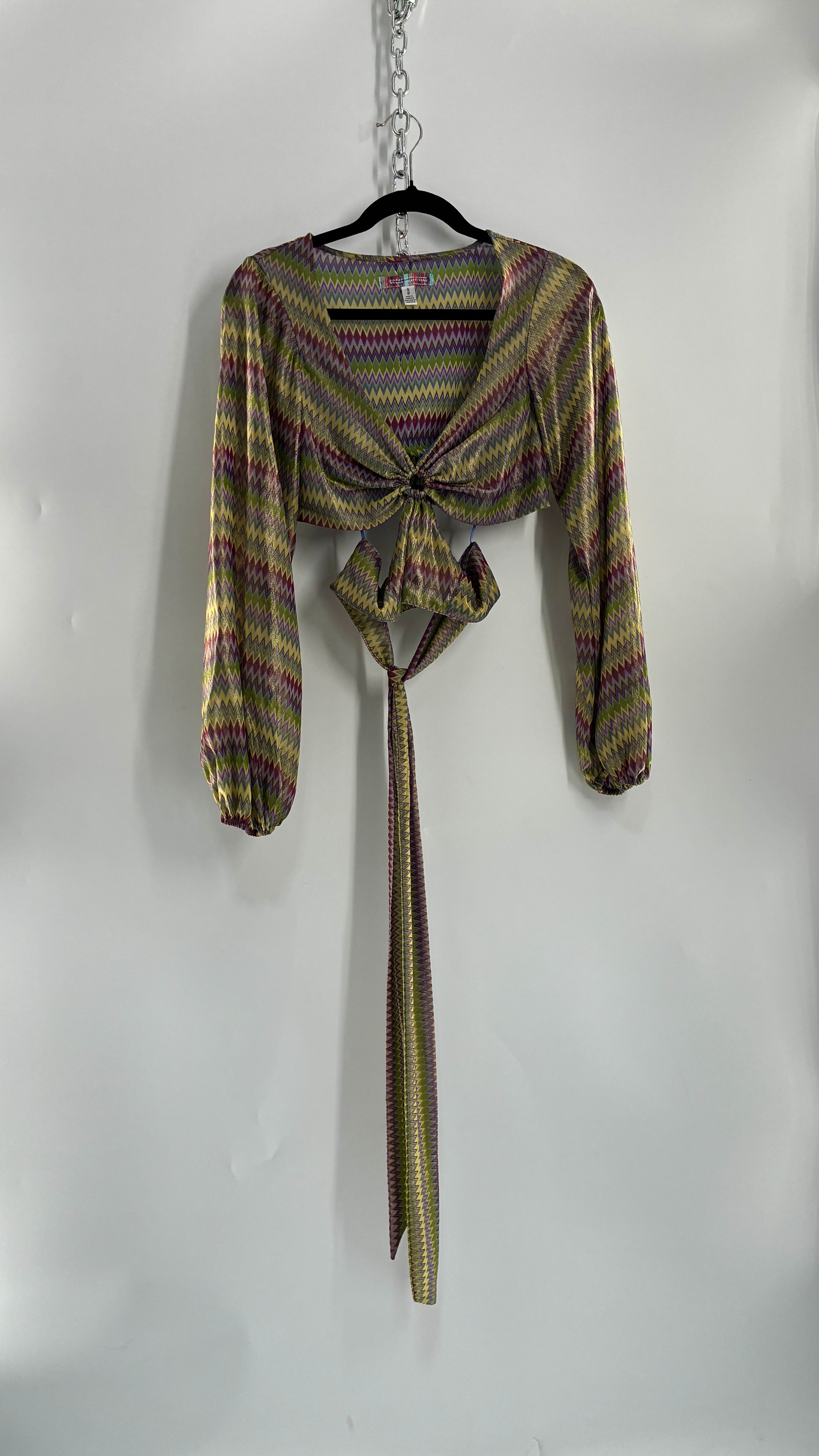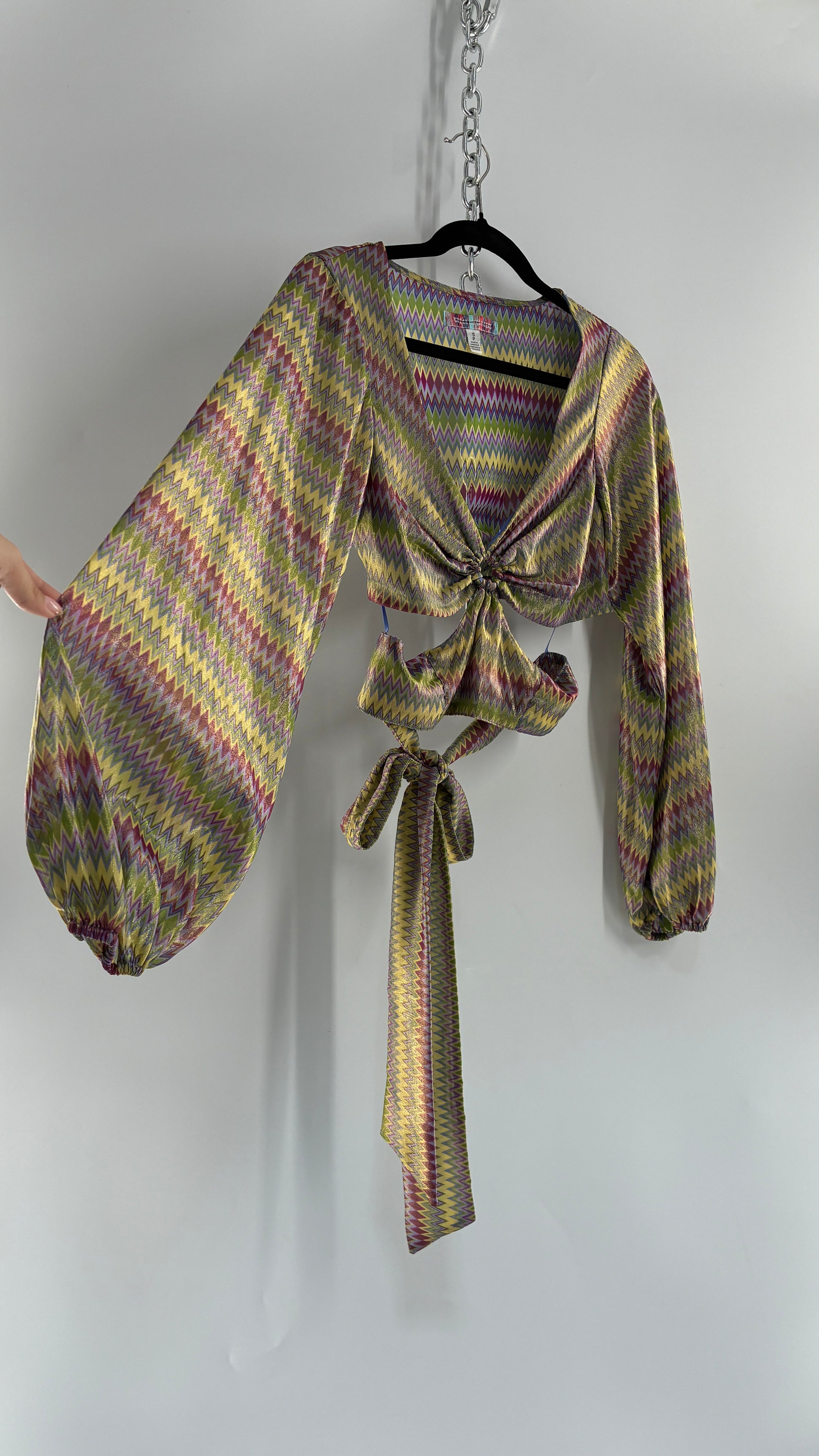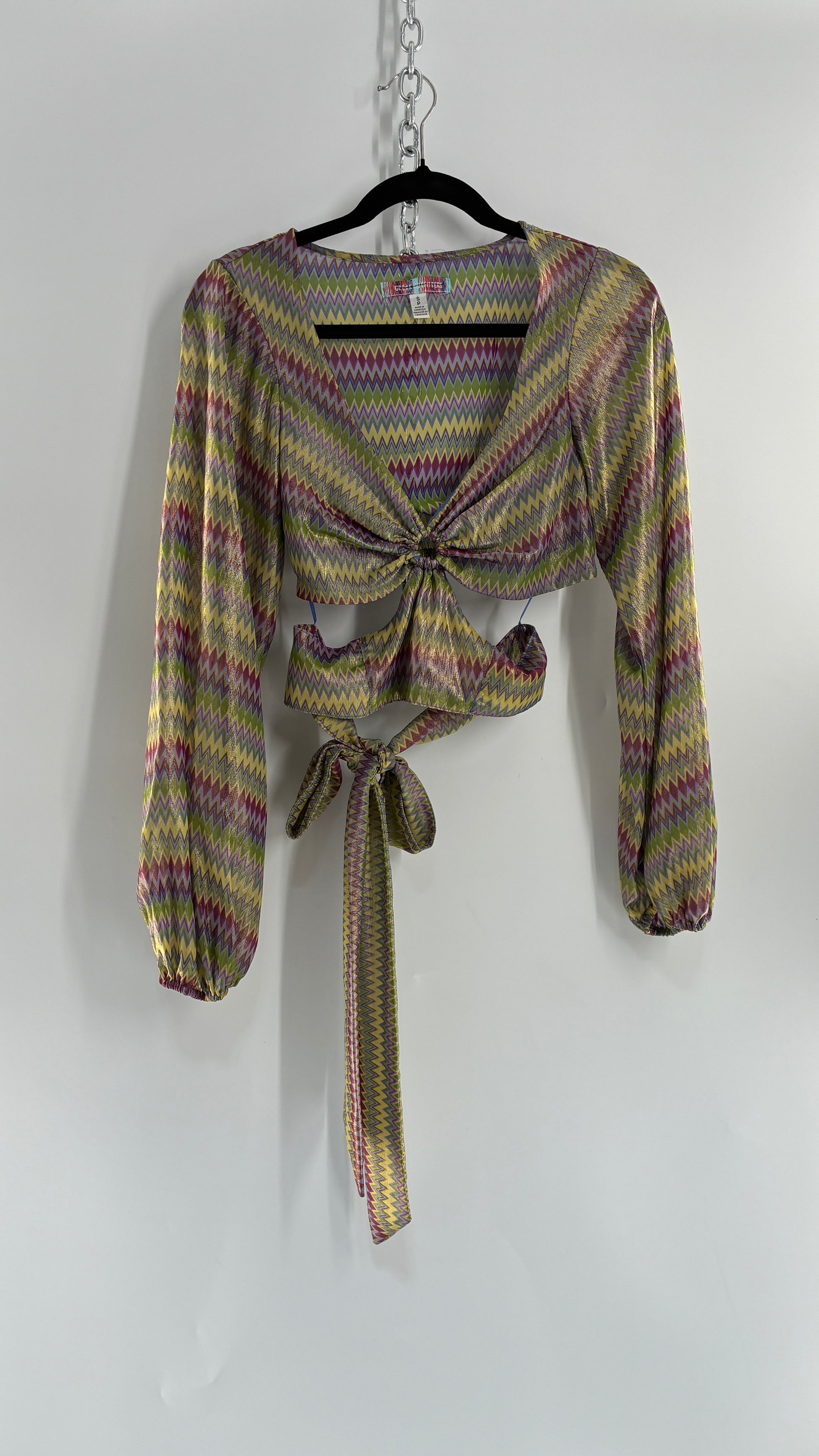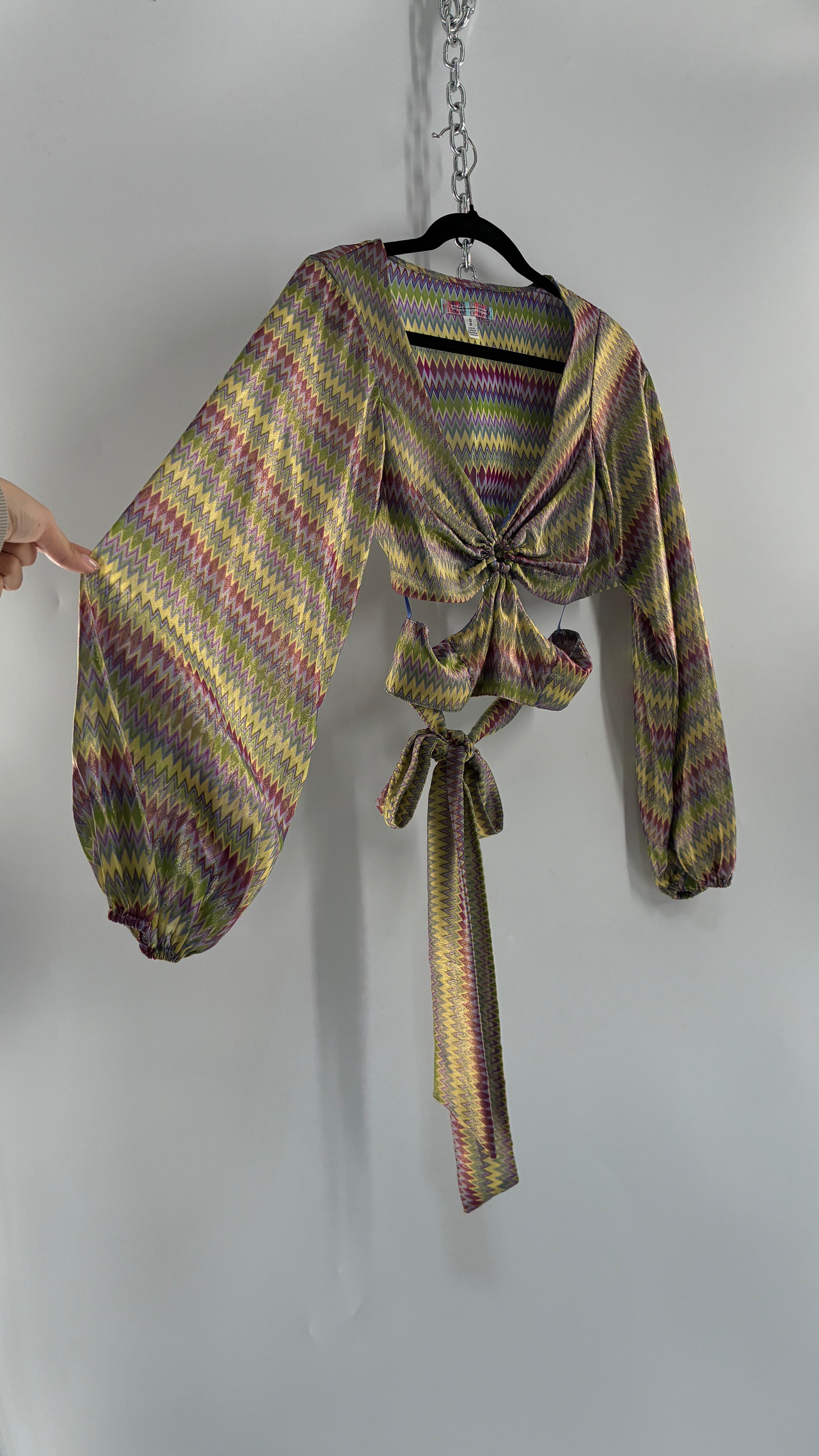 Urban Outfitters Open Side Tie Around, Balloon Sleeve Sparkle Top (Small)