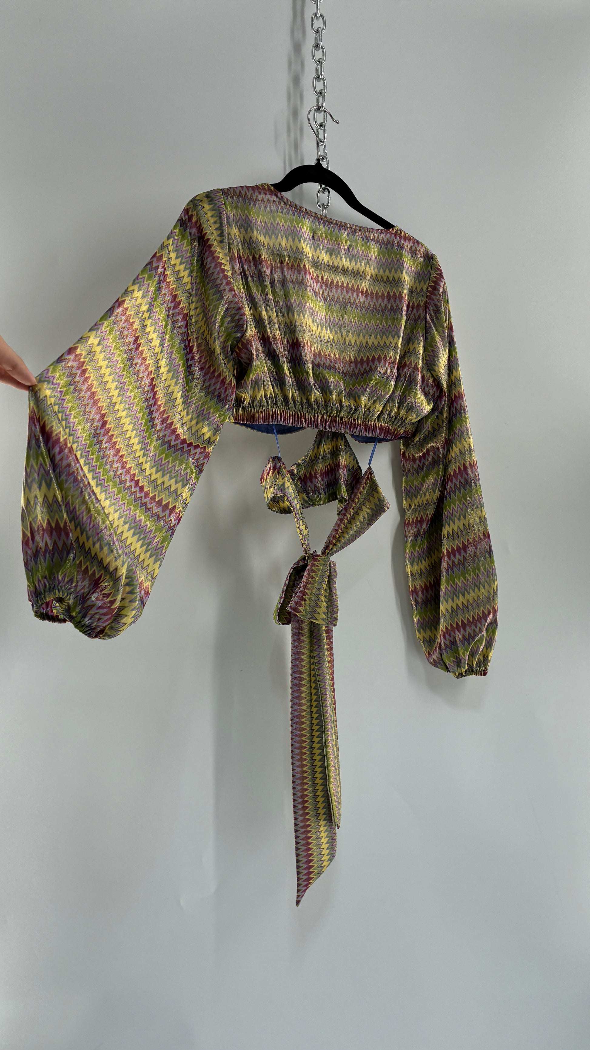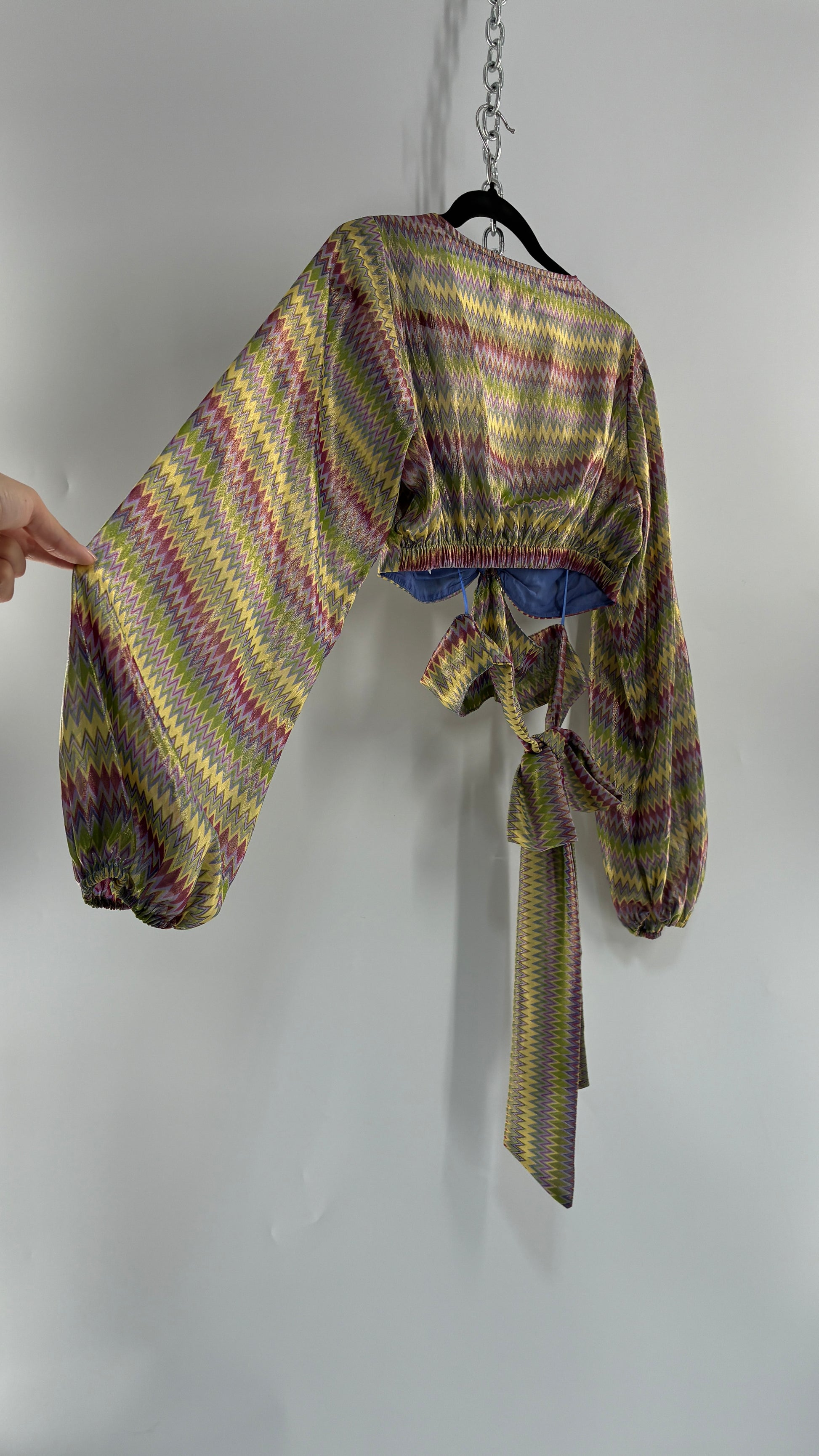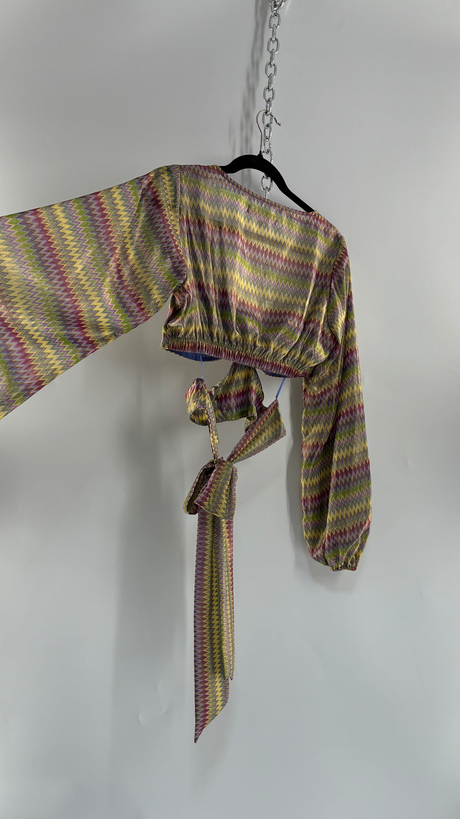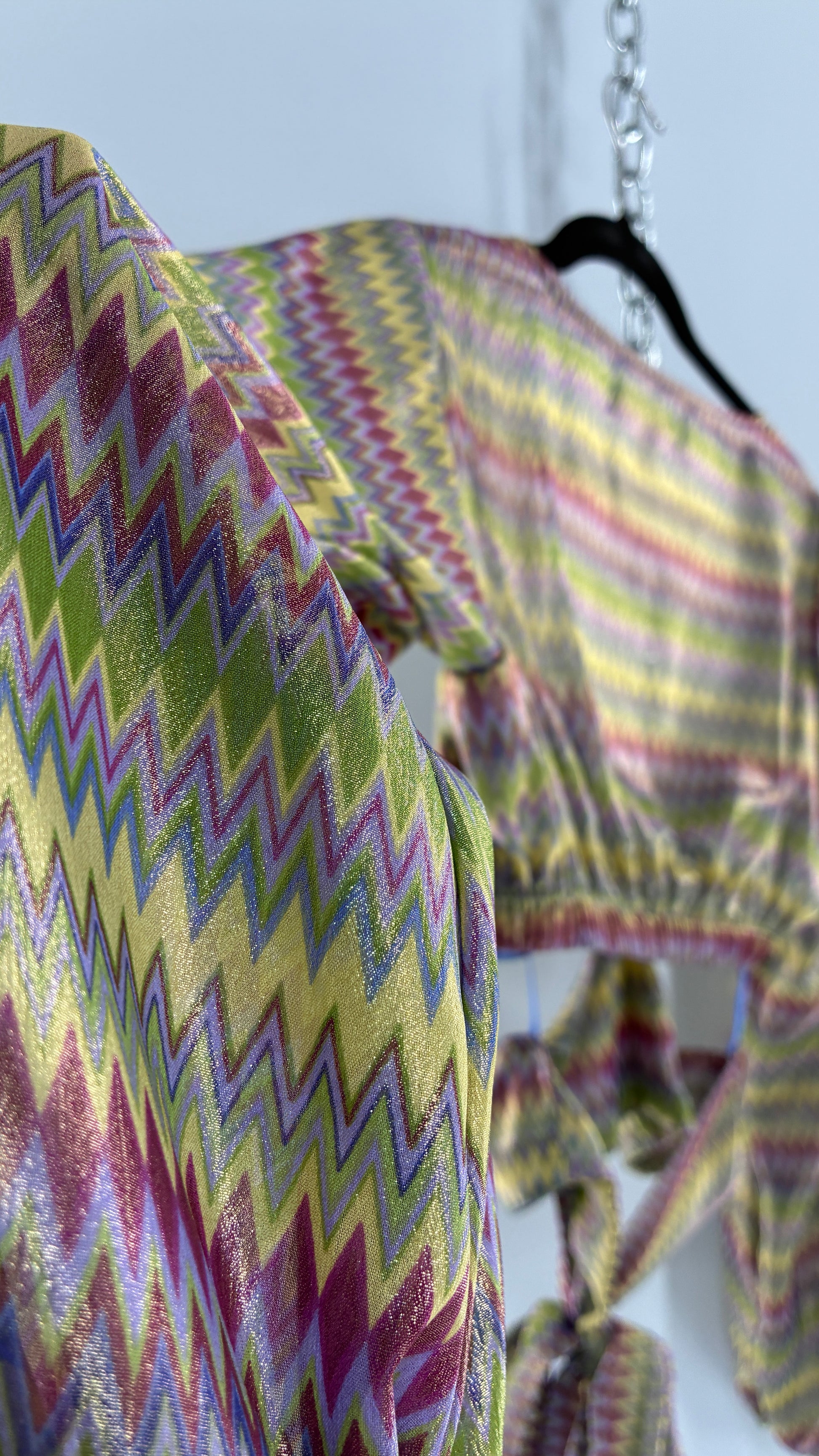 Urban Outfitters Open Side Tie Around, Balloon Sleeve Sparkle Top (Small)