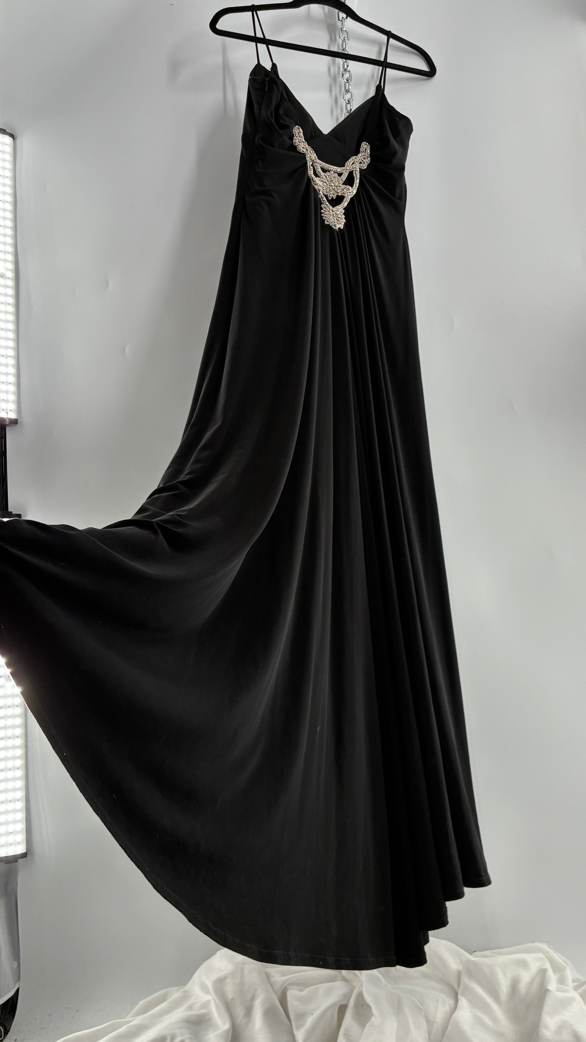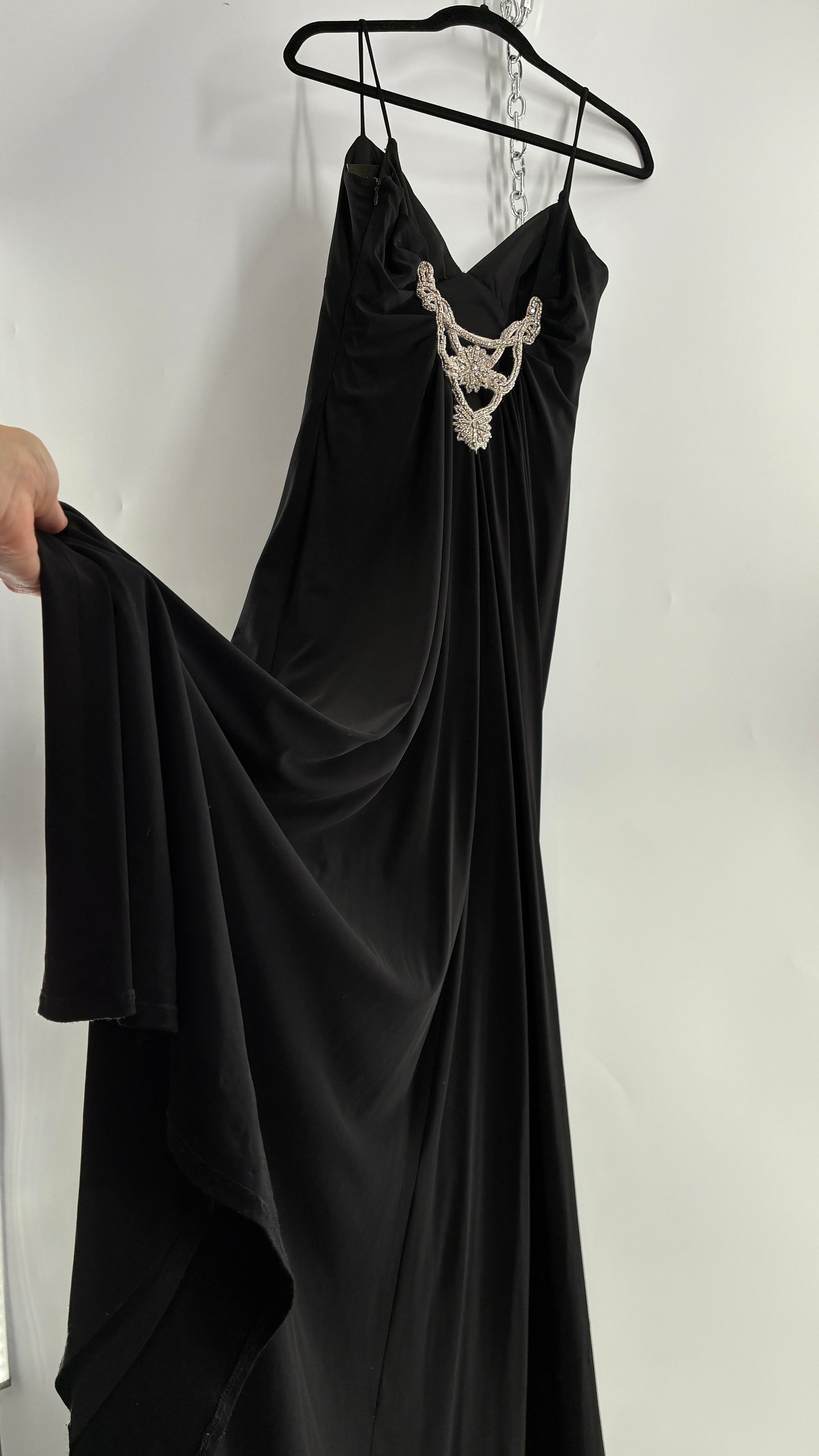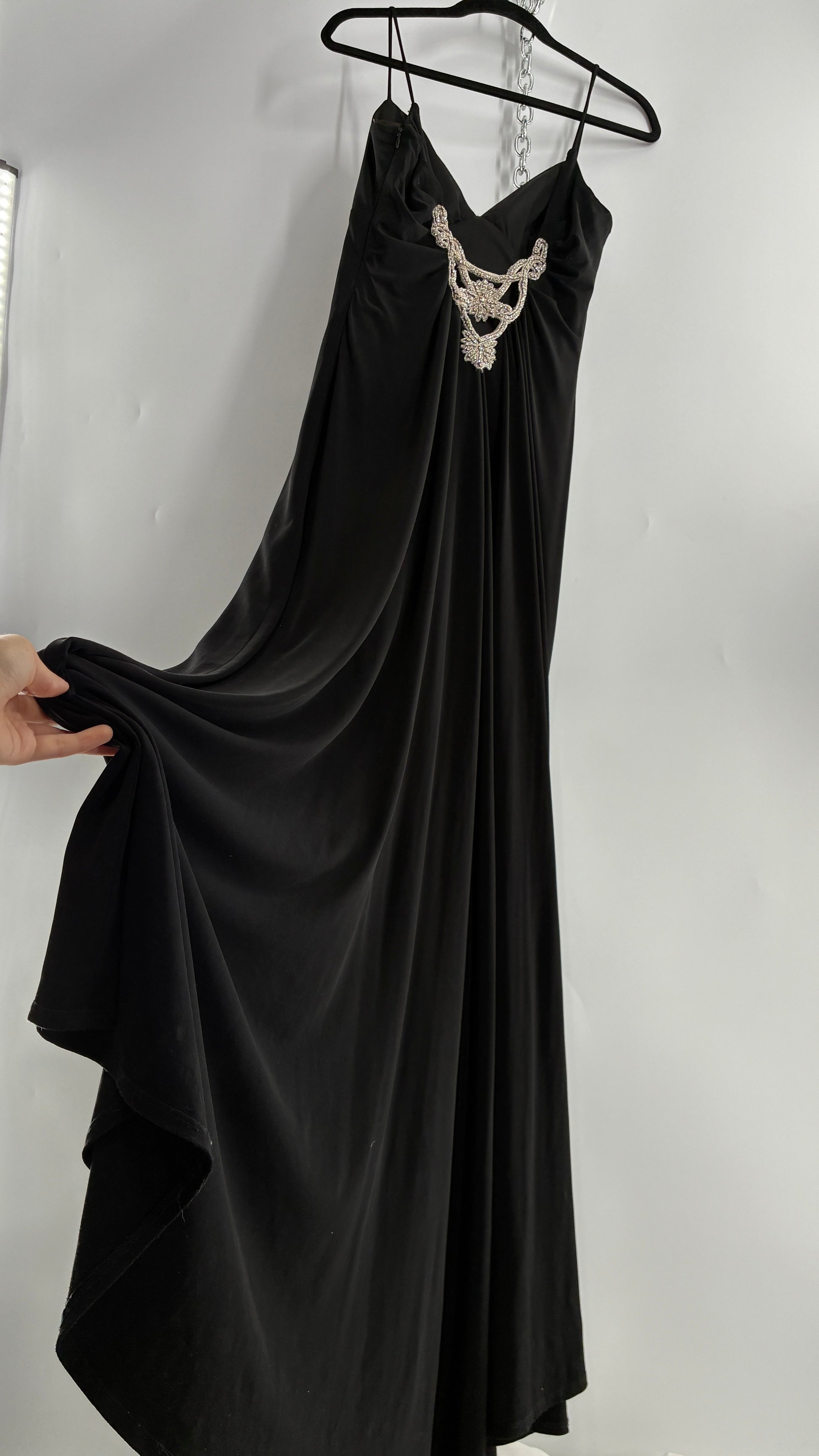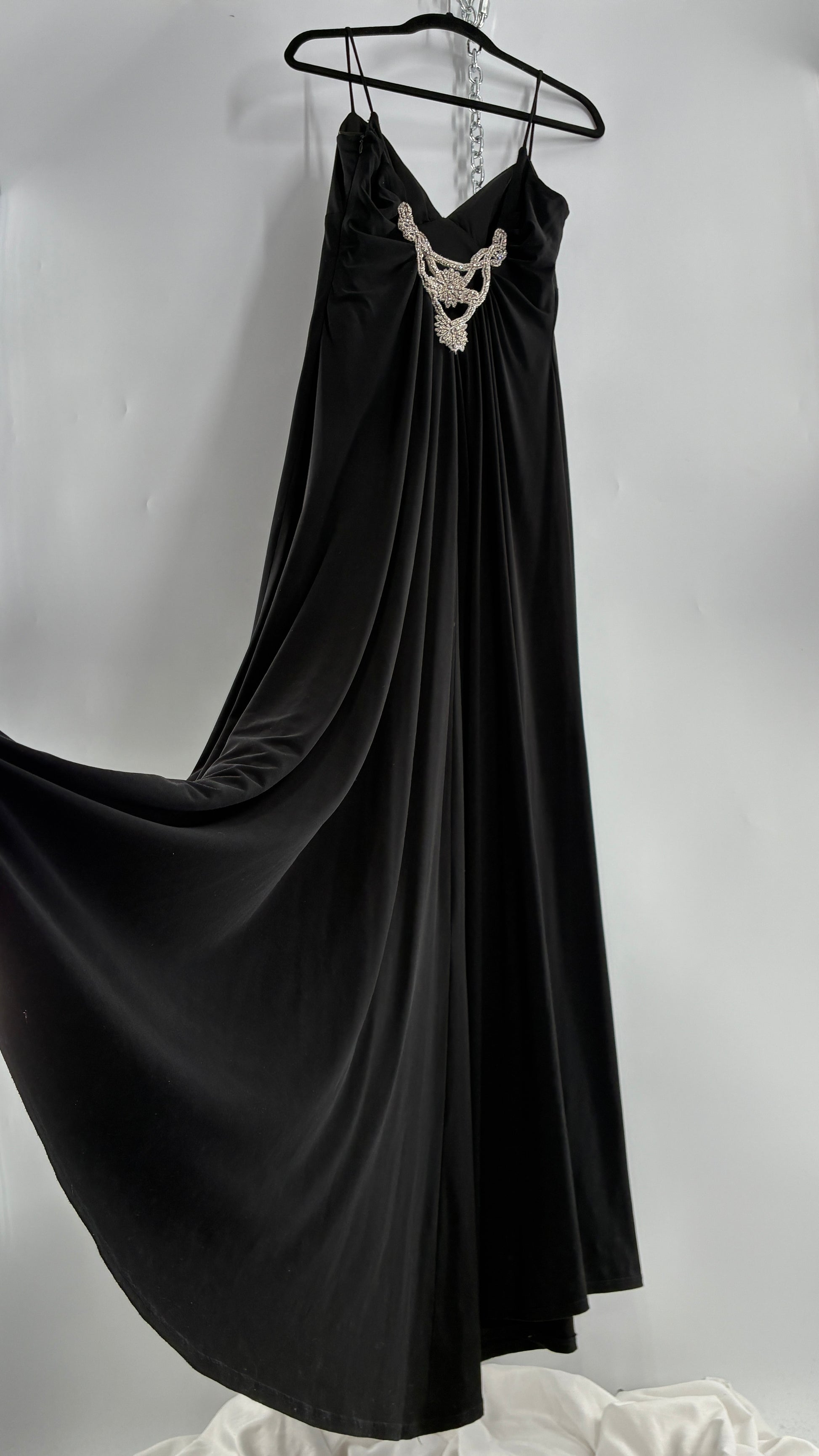 Vintage JS COLLECTION Black Full Length Gown with Jeweled Appliqué and Pleated Back (12)