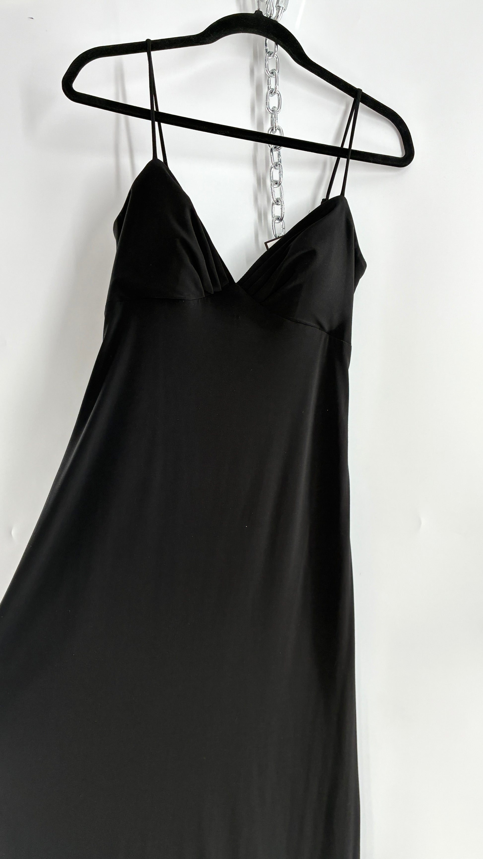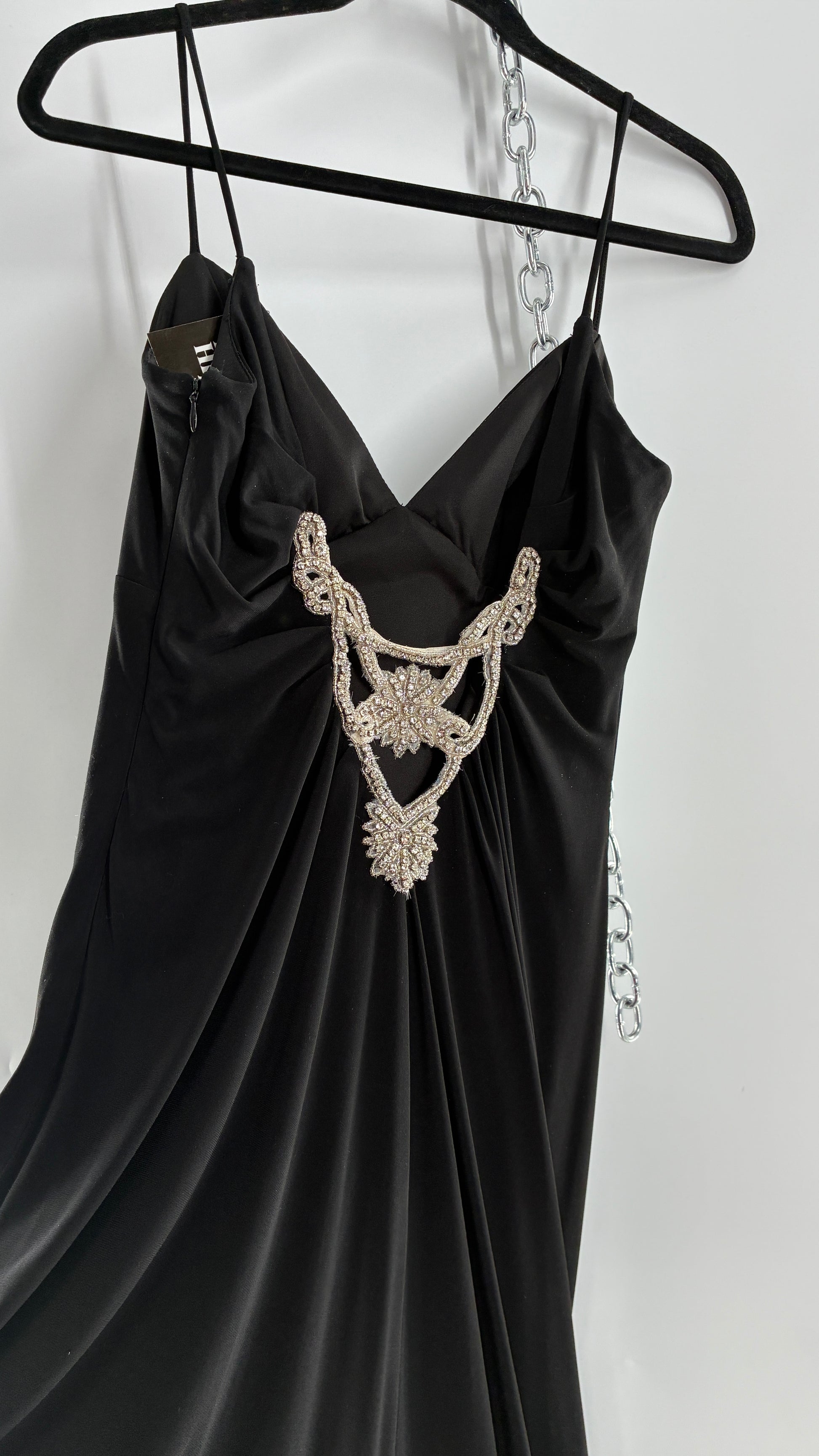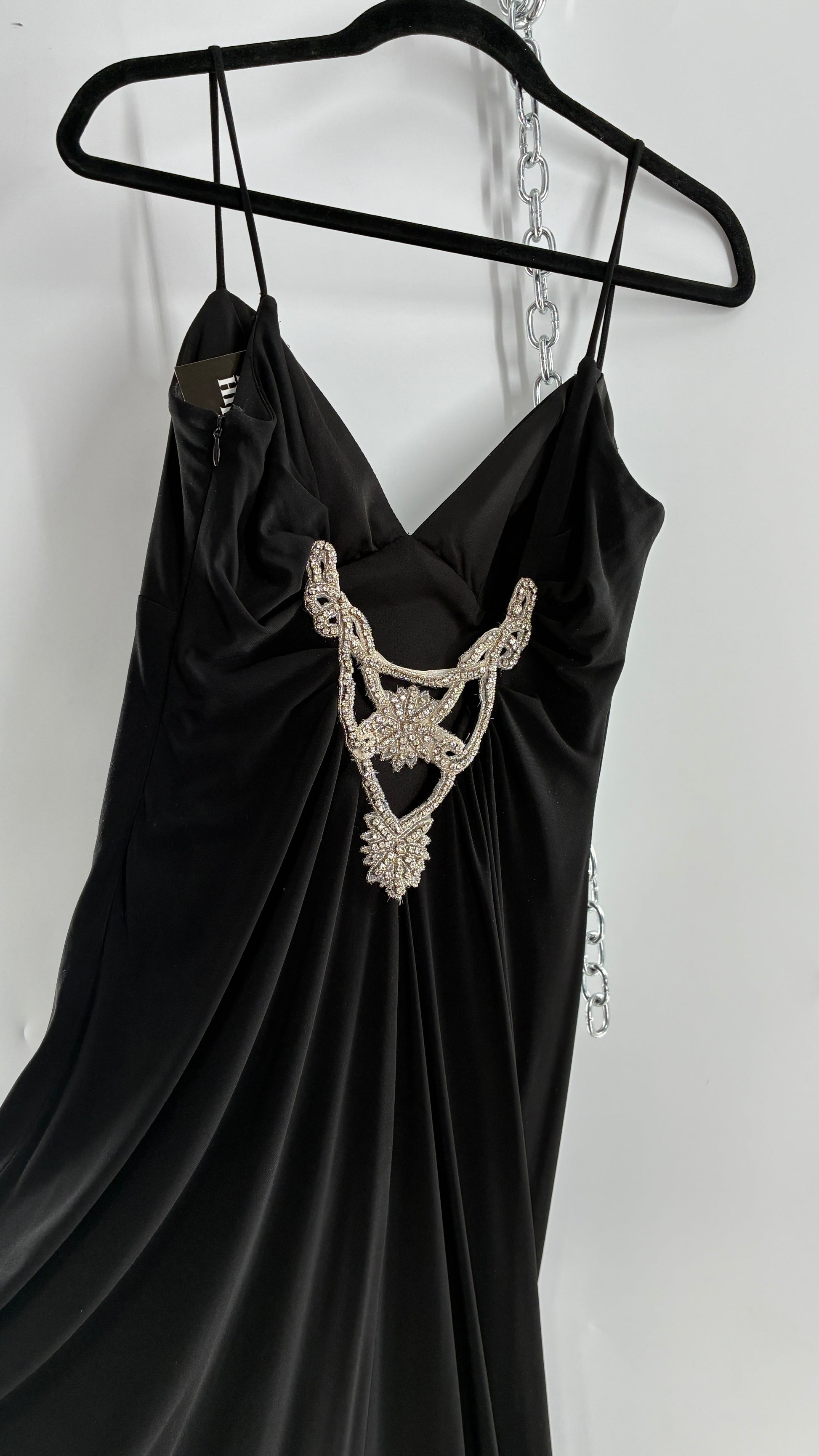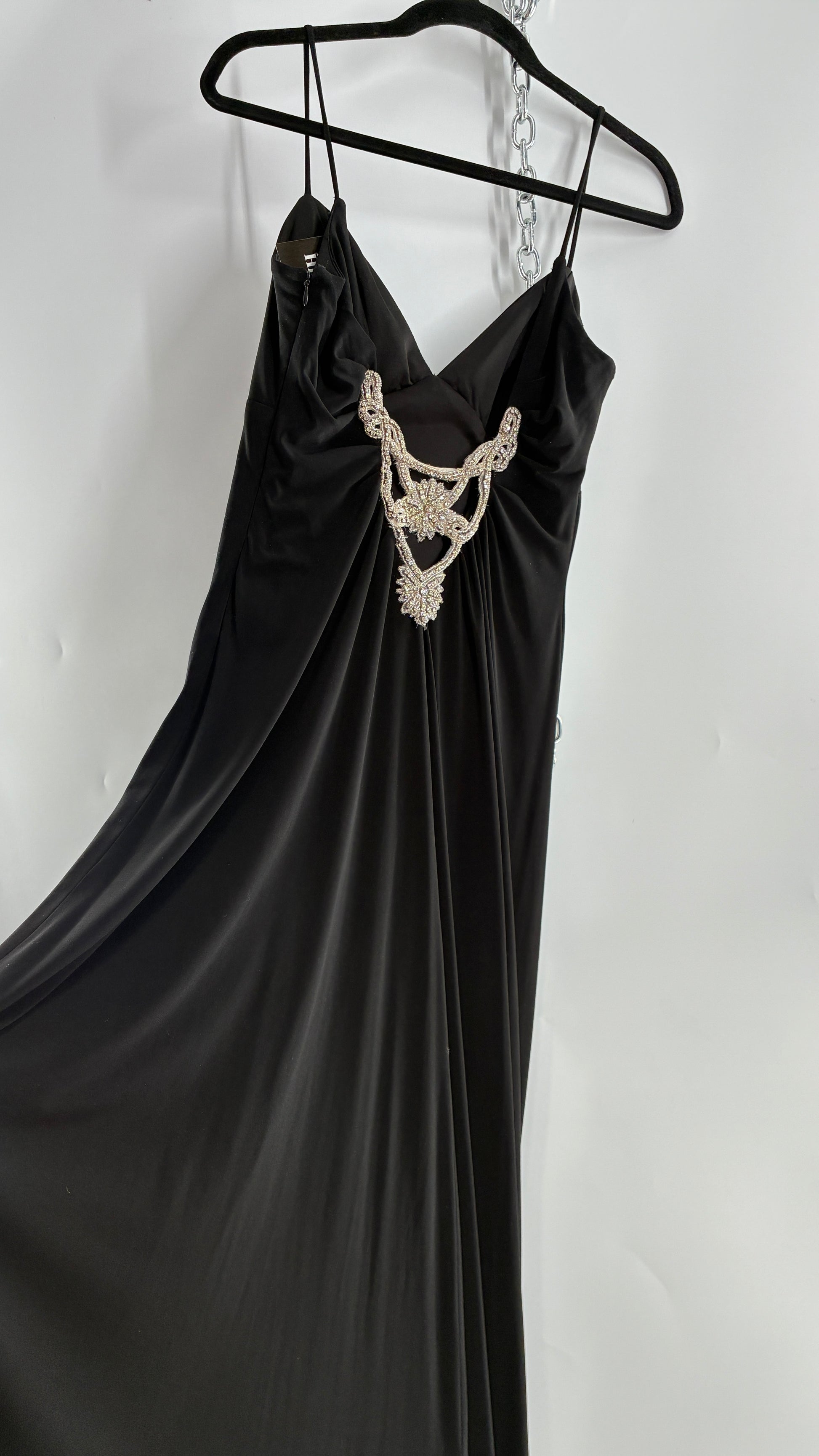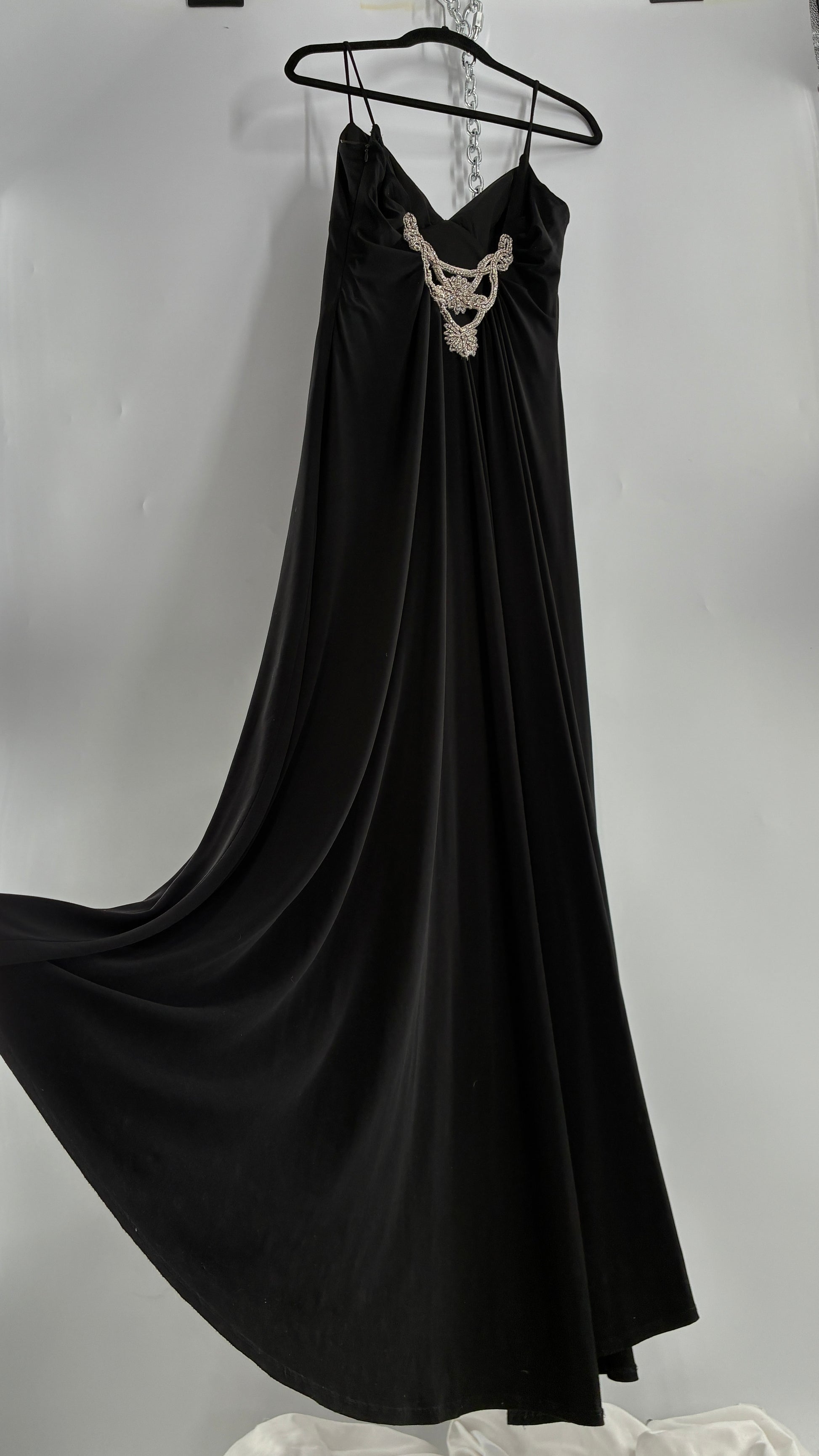 Vintage JS COLLECTION Black Full Length Gown with Jeweled Appliqué and Pleated Back (12)