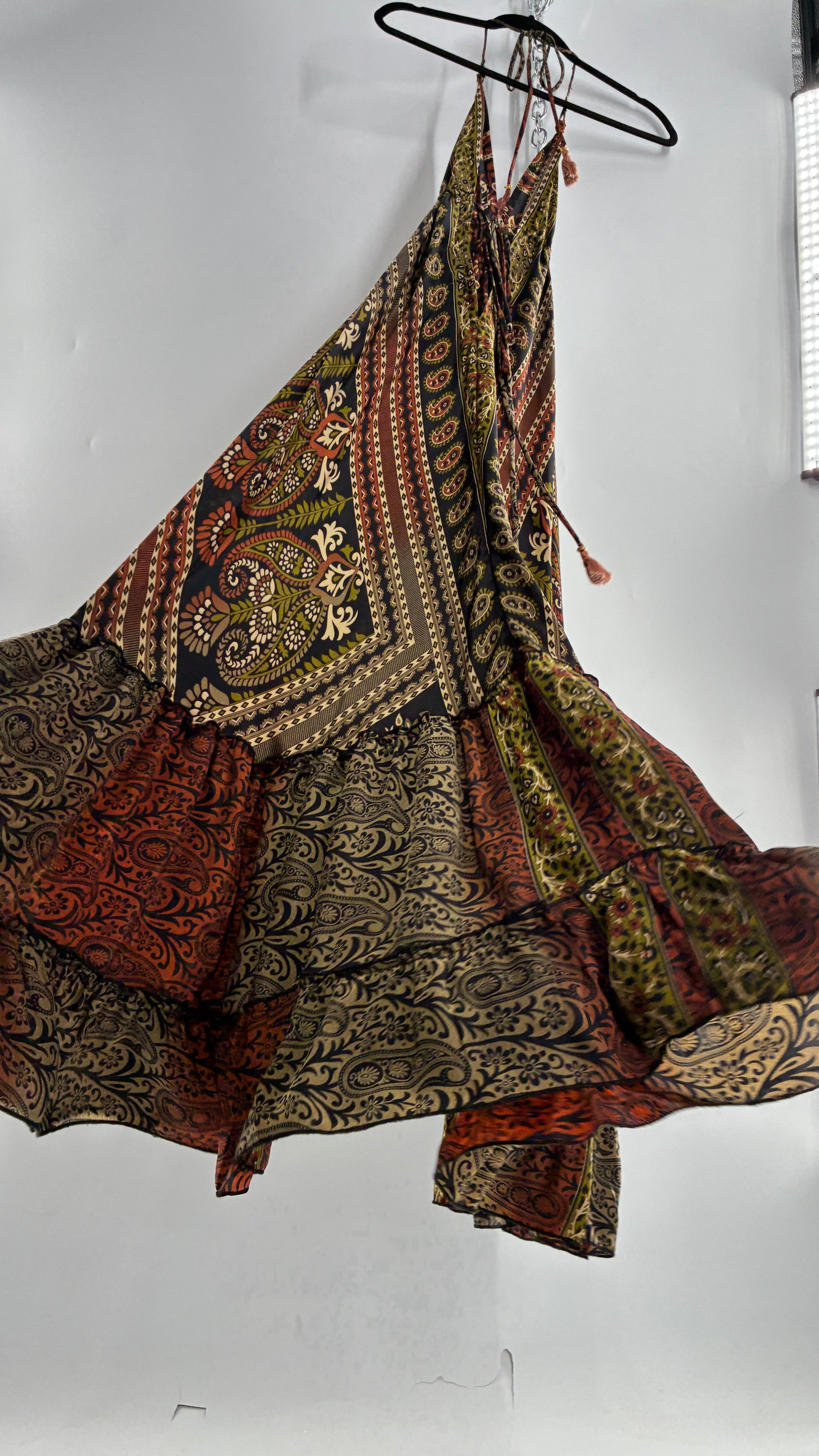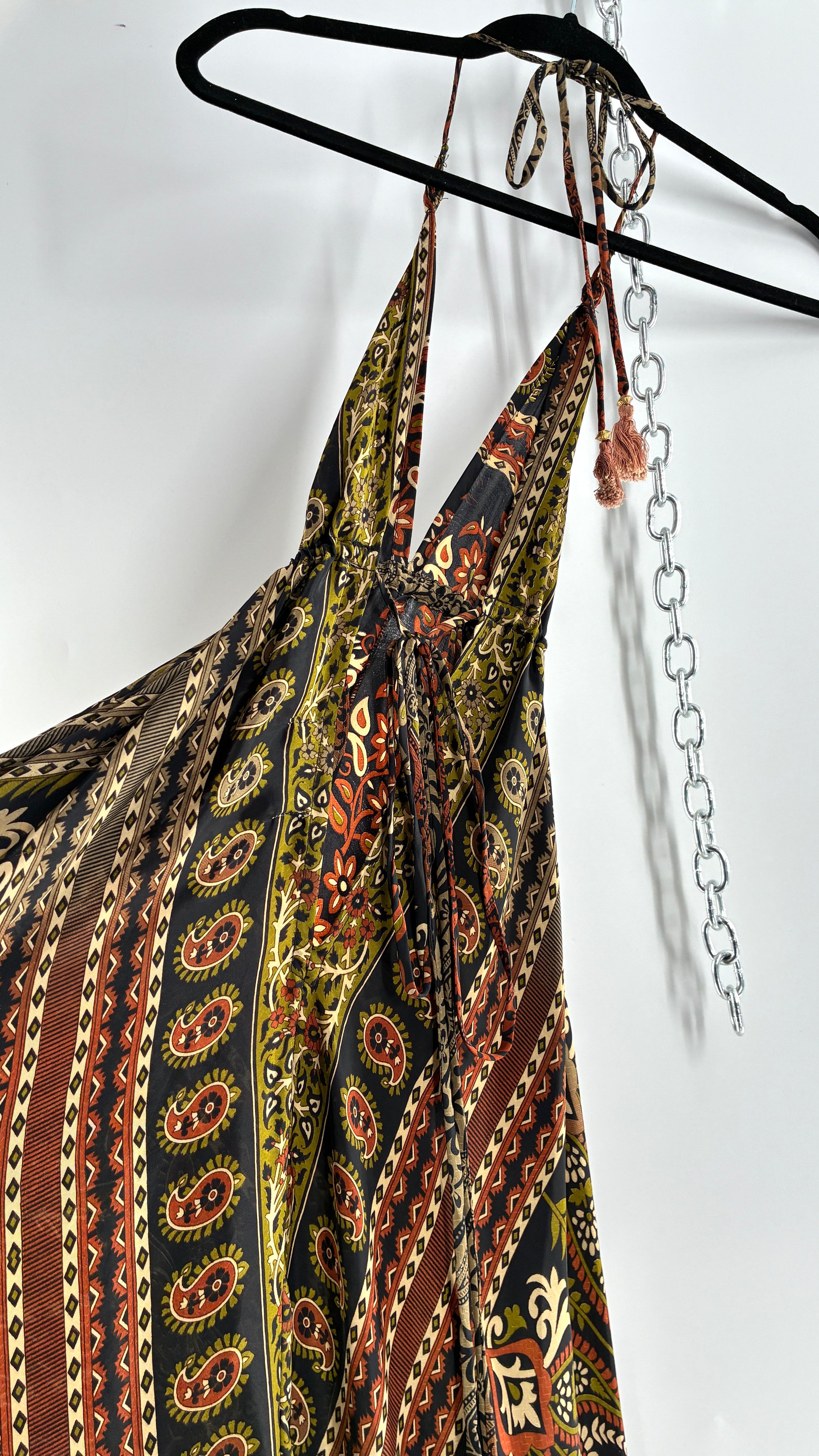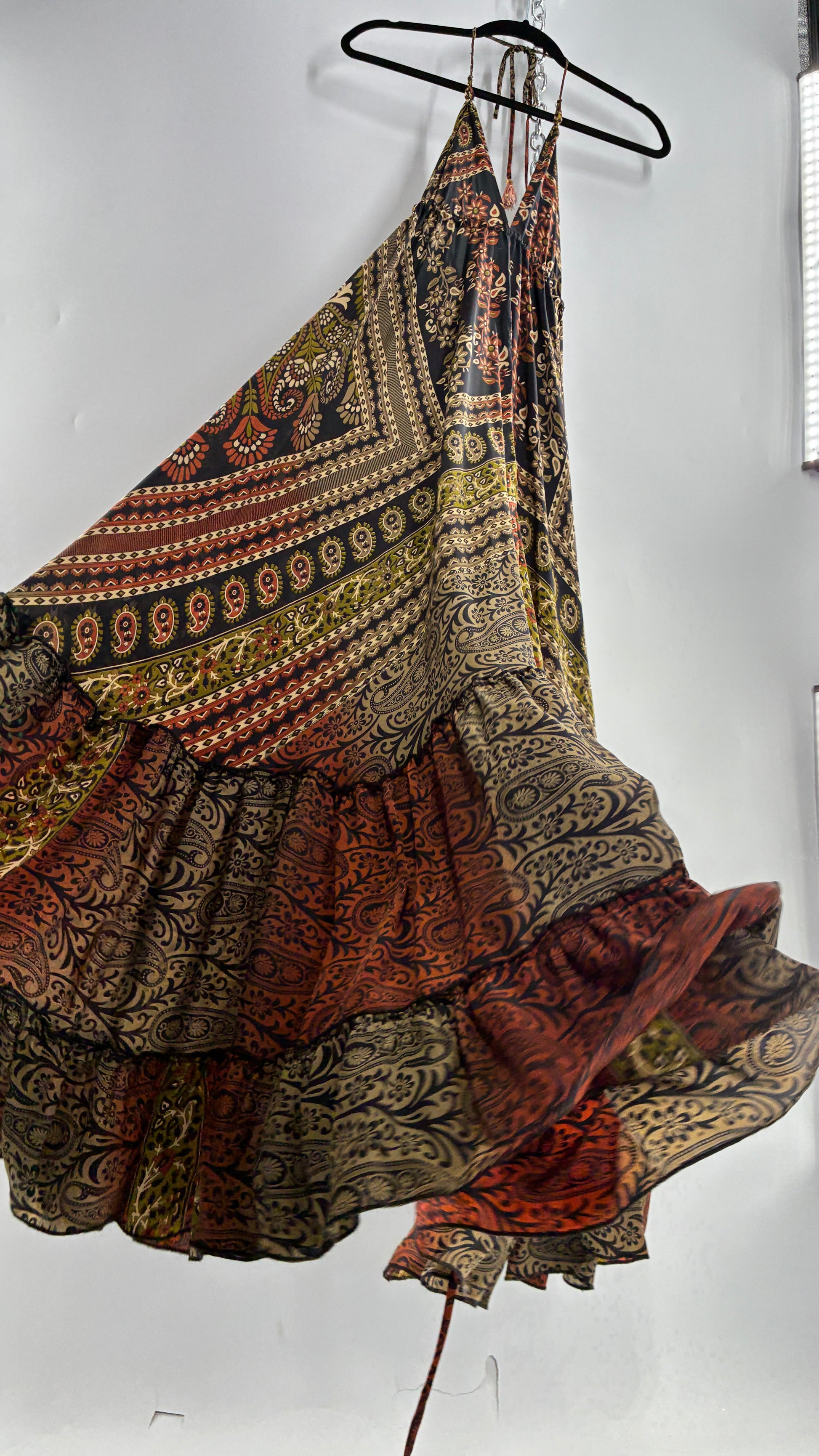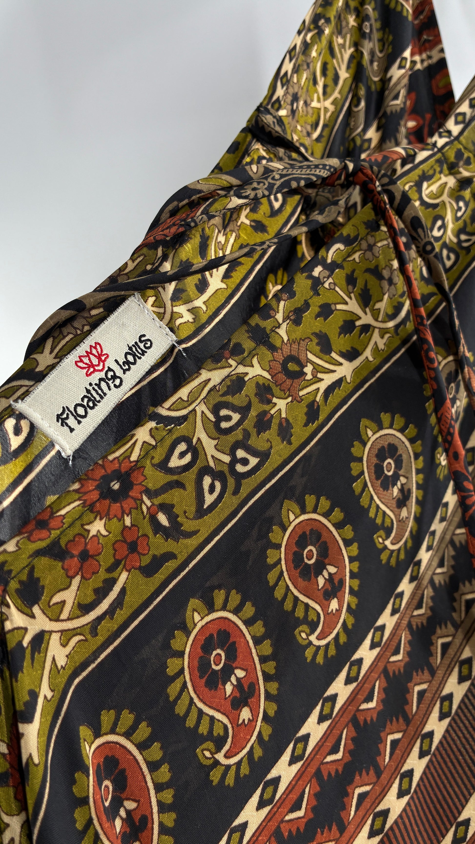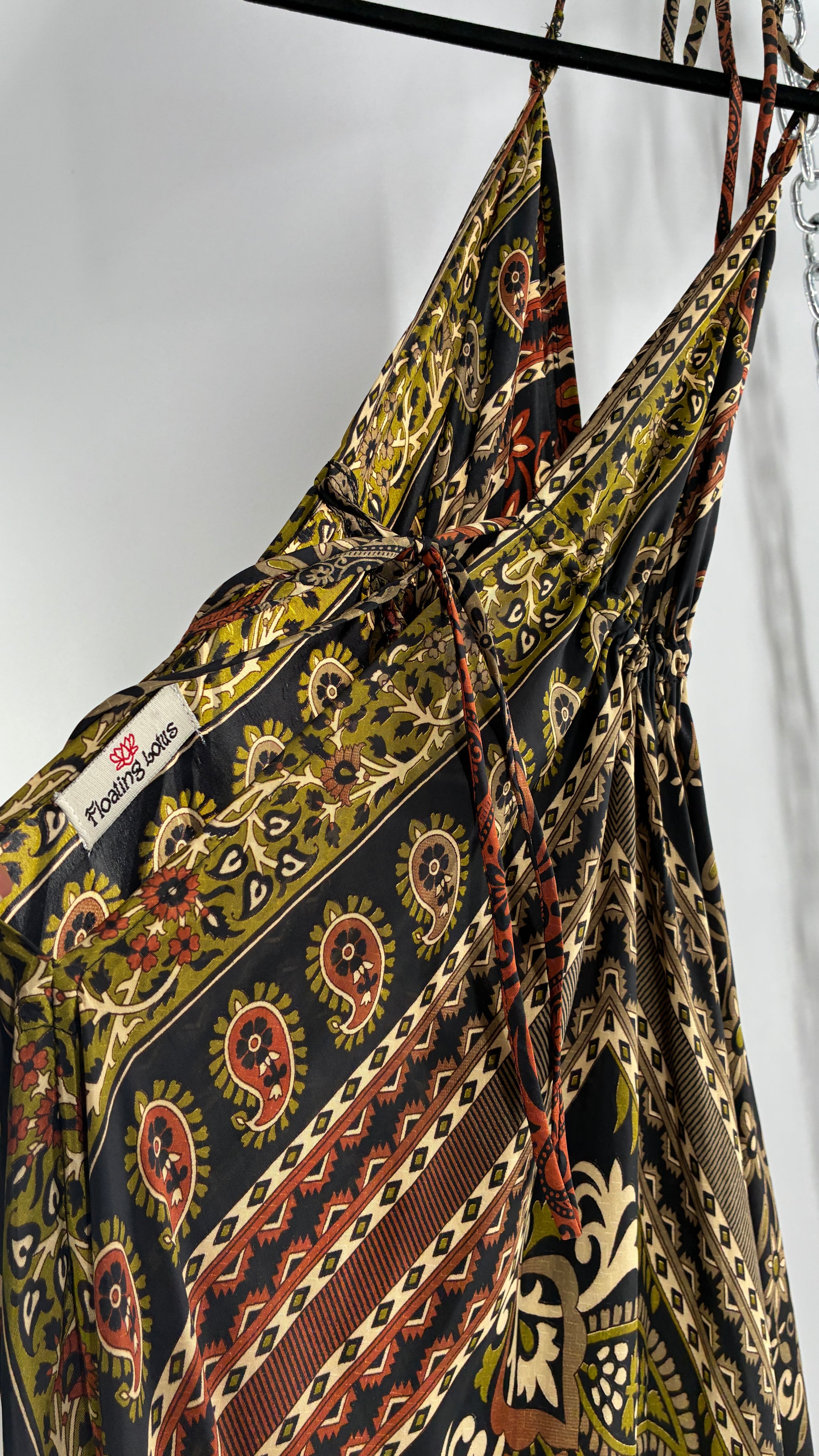 Vintage FLOATING LOTUS 30% Silk Adjustable Low Back Voluminous Dress (OS)