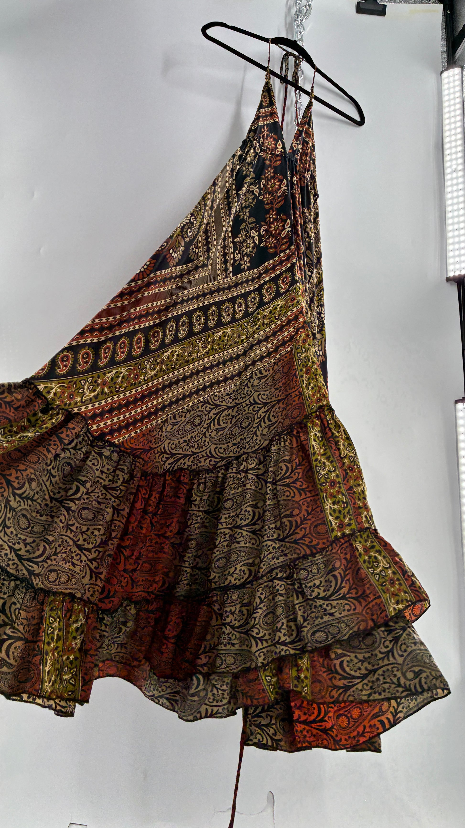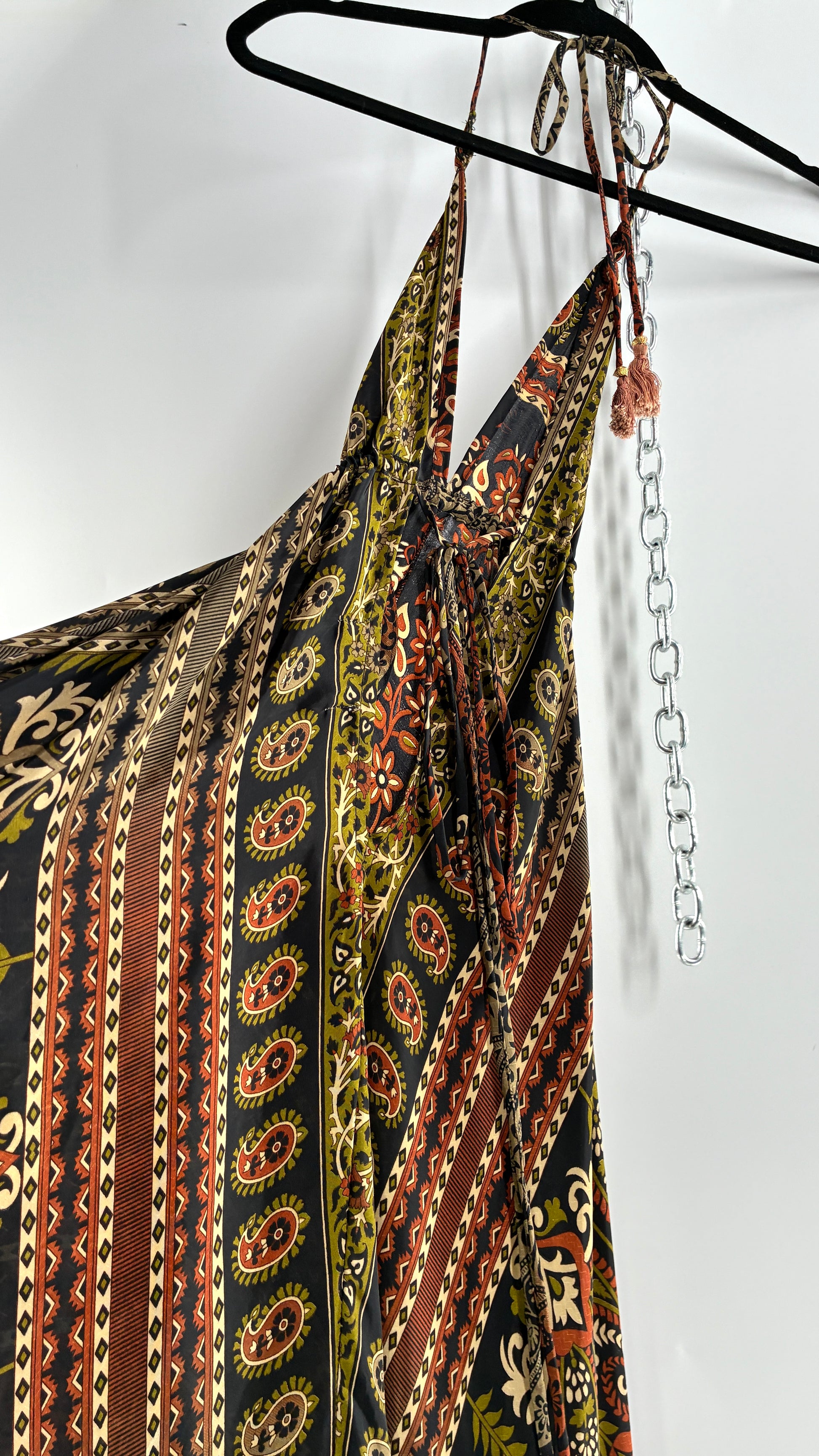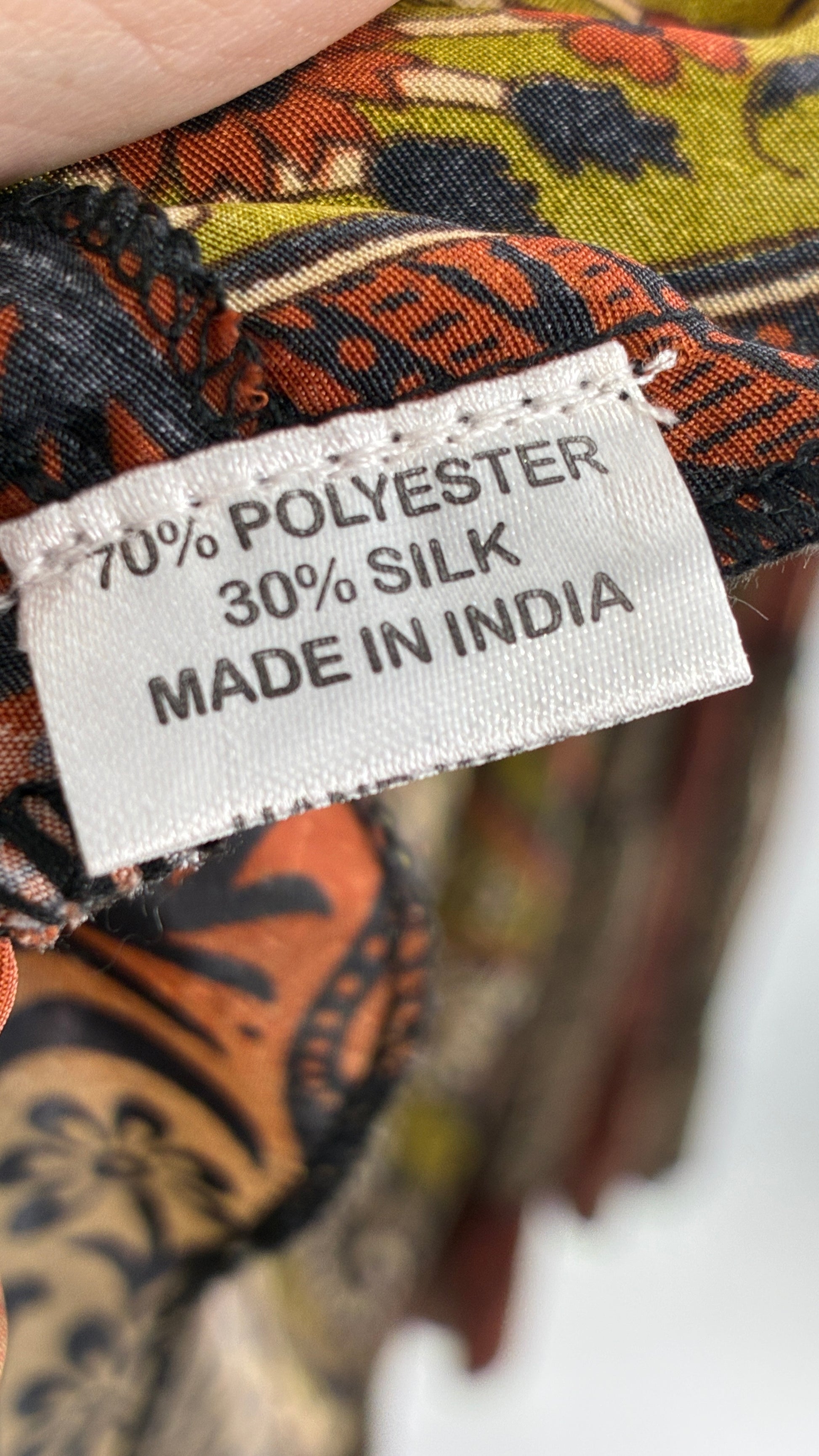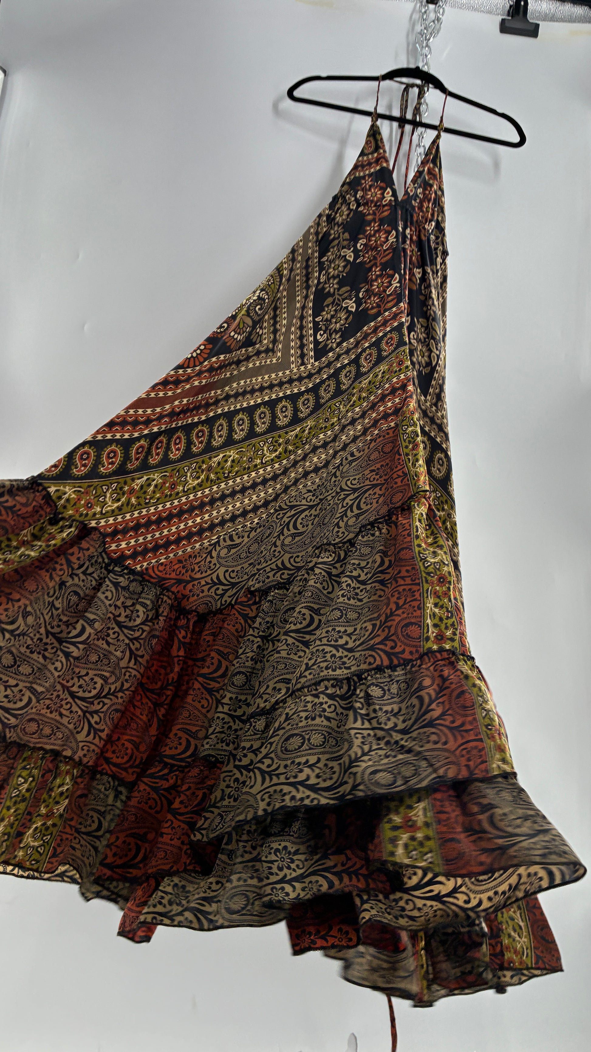 Vintage FLOATING LOTUS 30% Silk Adjustable Low Back Voluminous Dress (OS)
