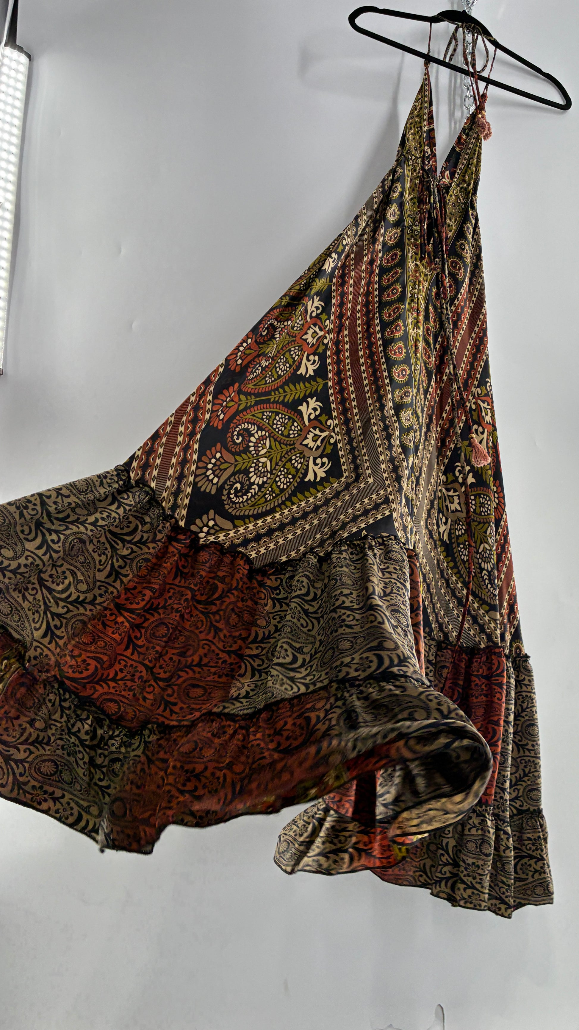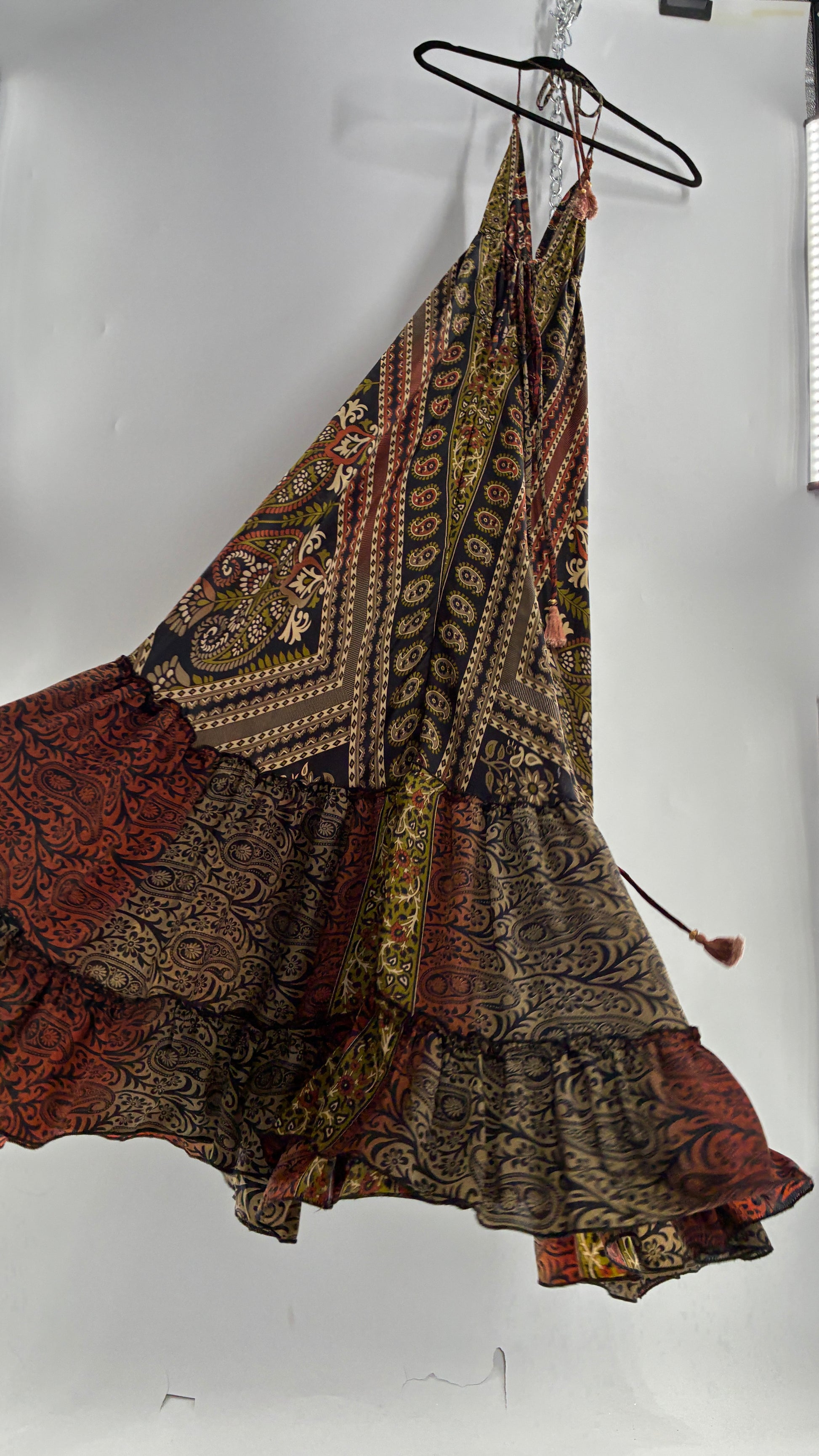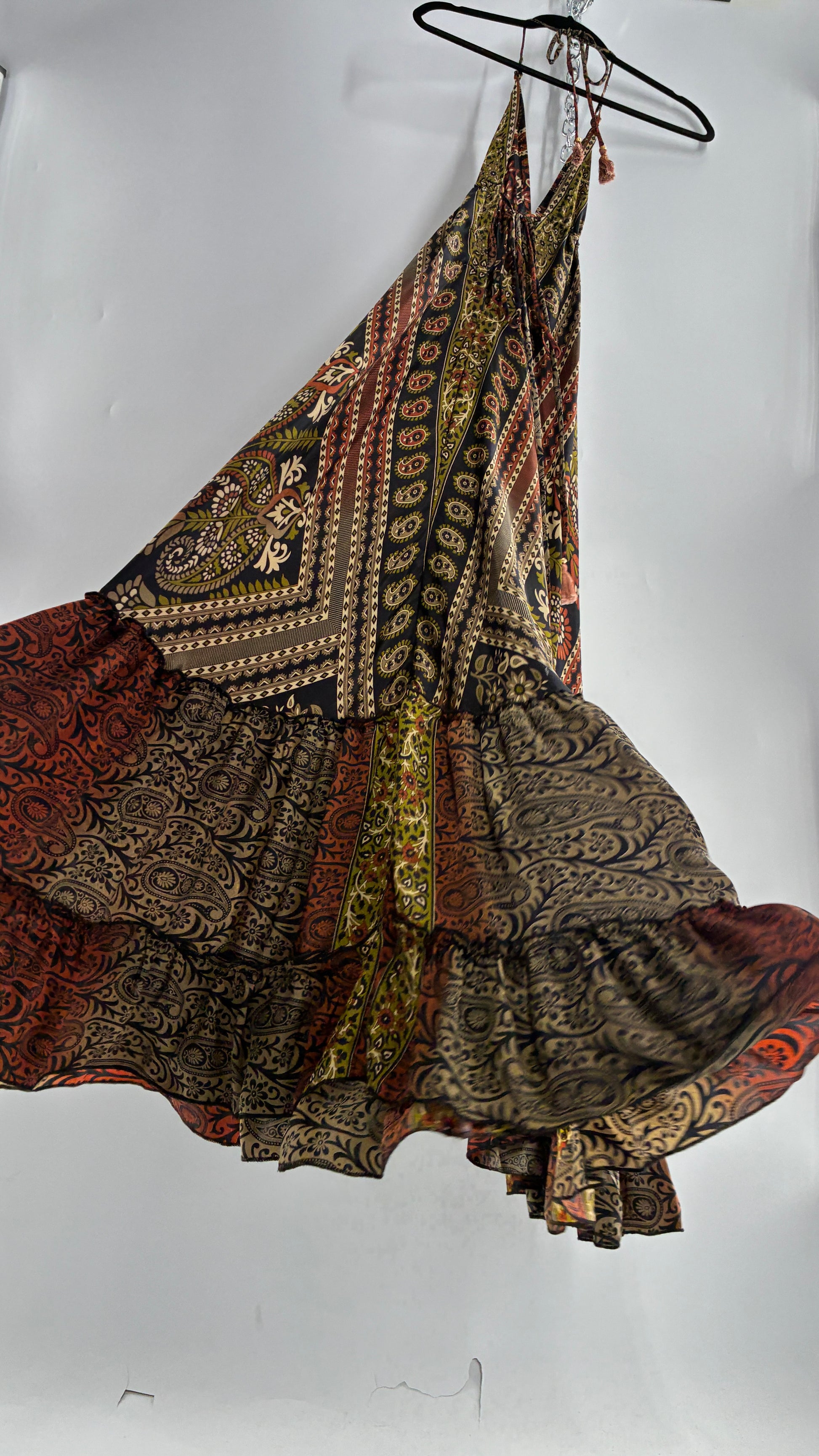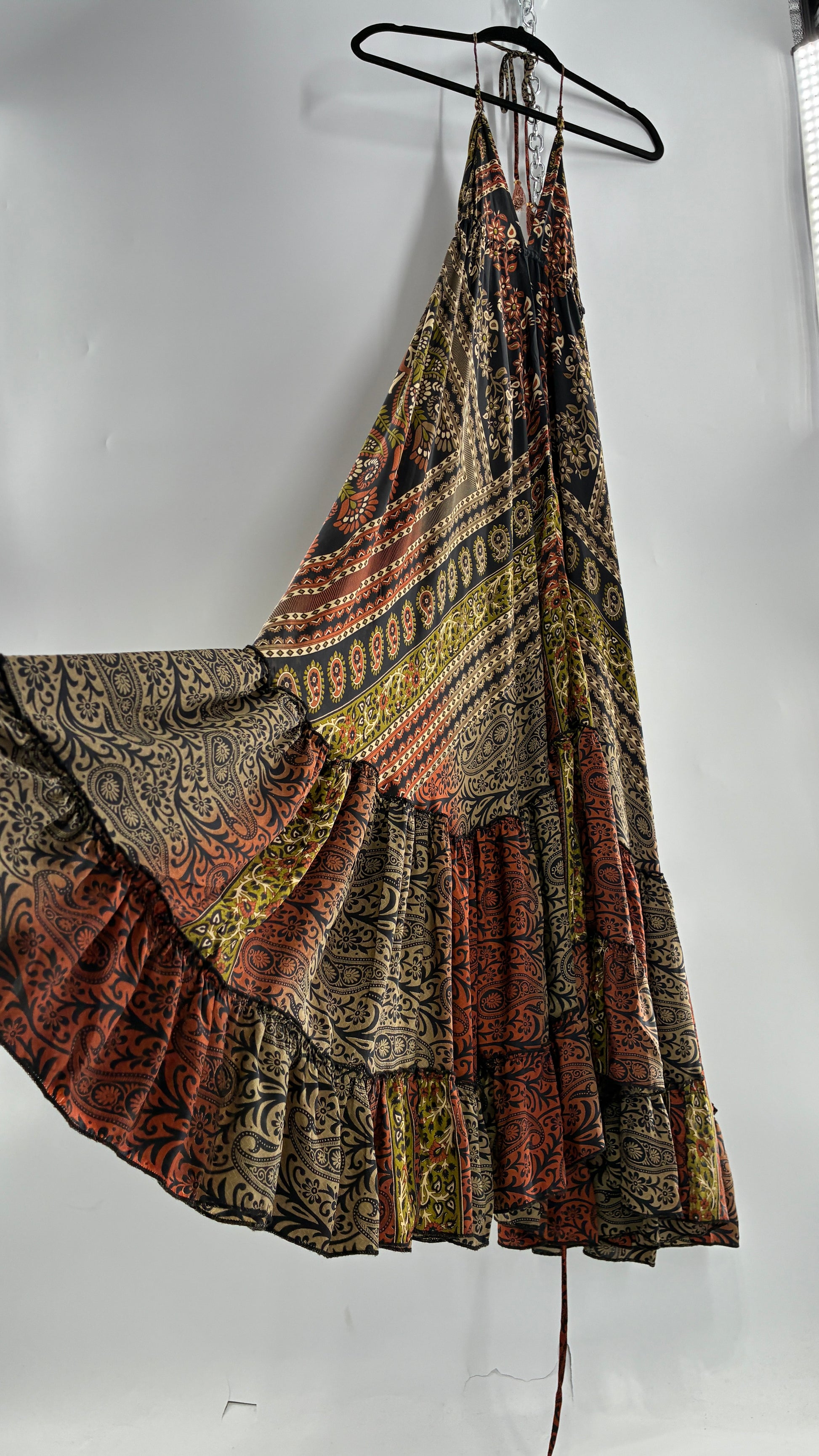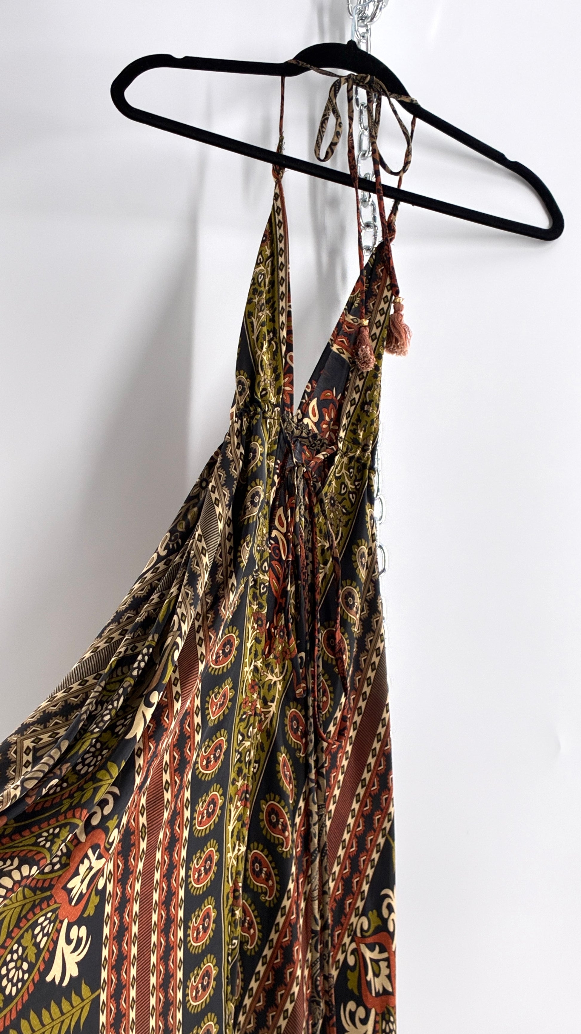 Vintage FLOATING LOTUS 30% Silk Adjustable Low Back Voluminous Dress (OS)