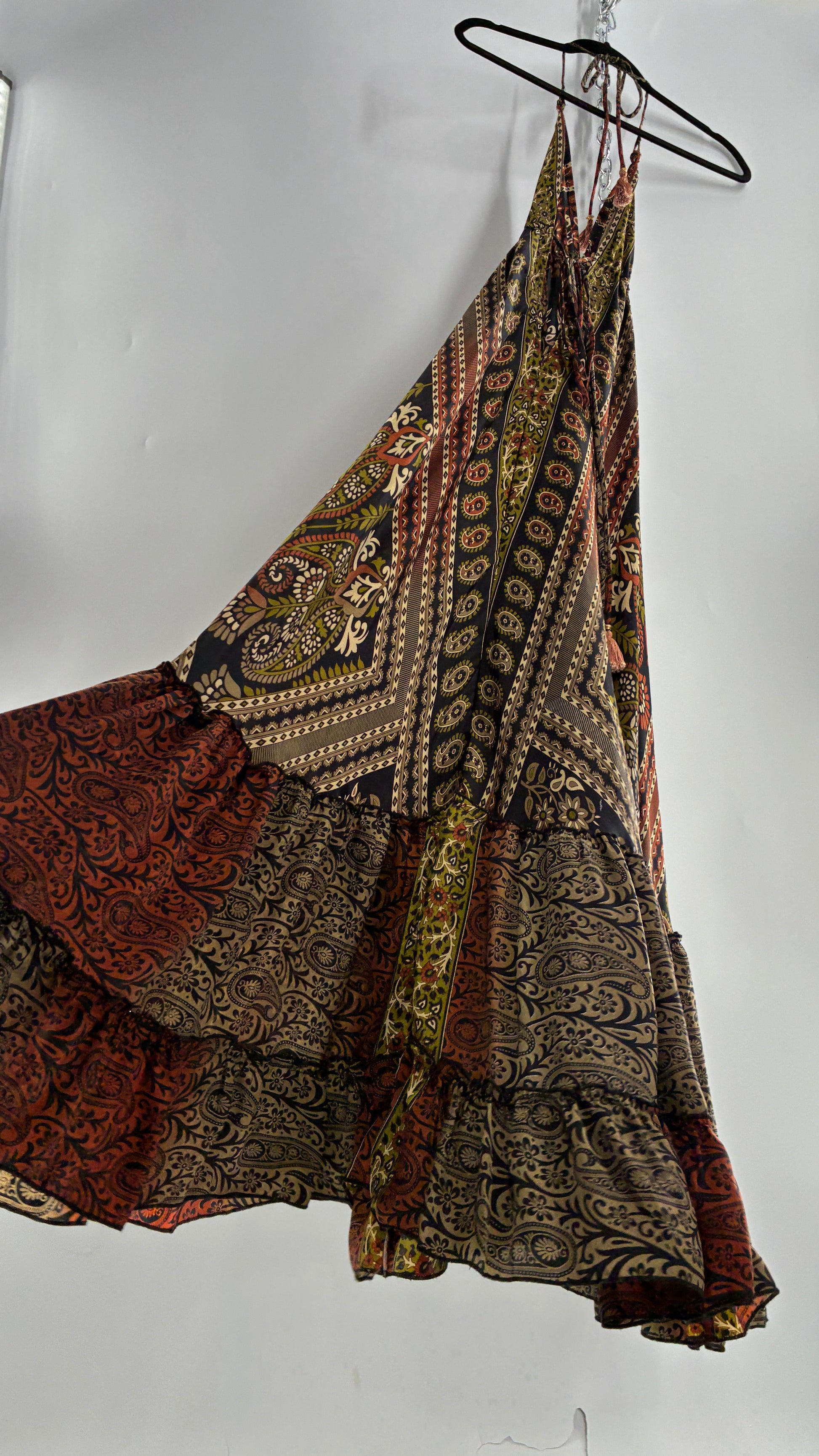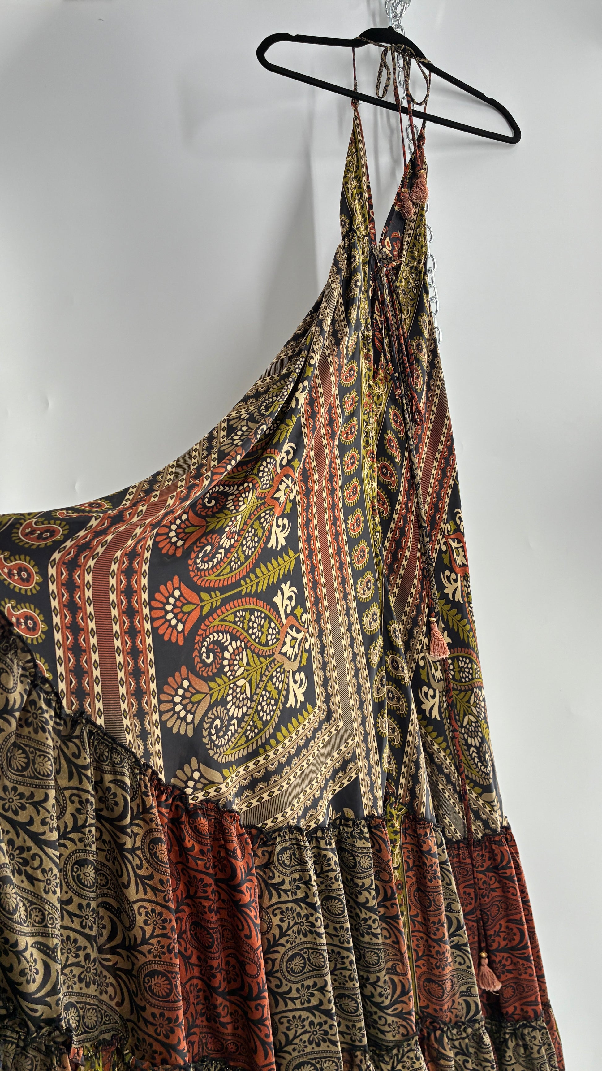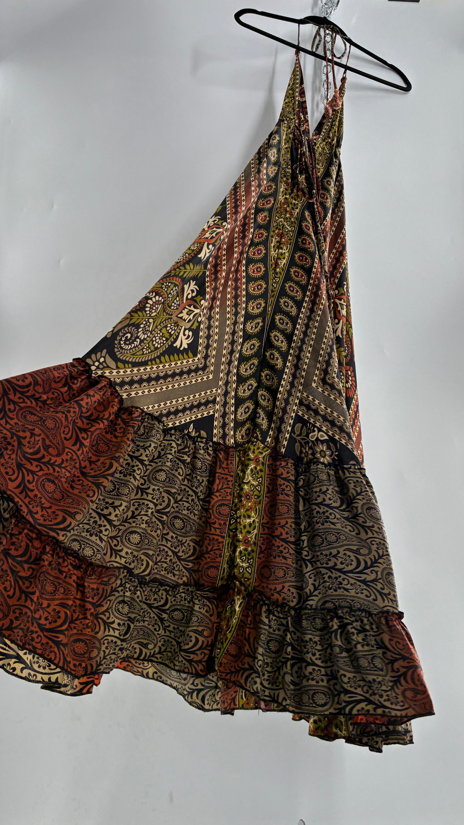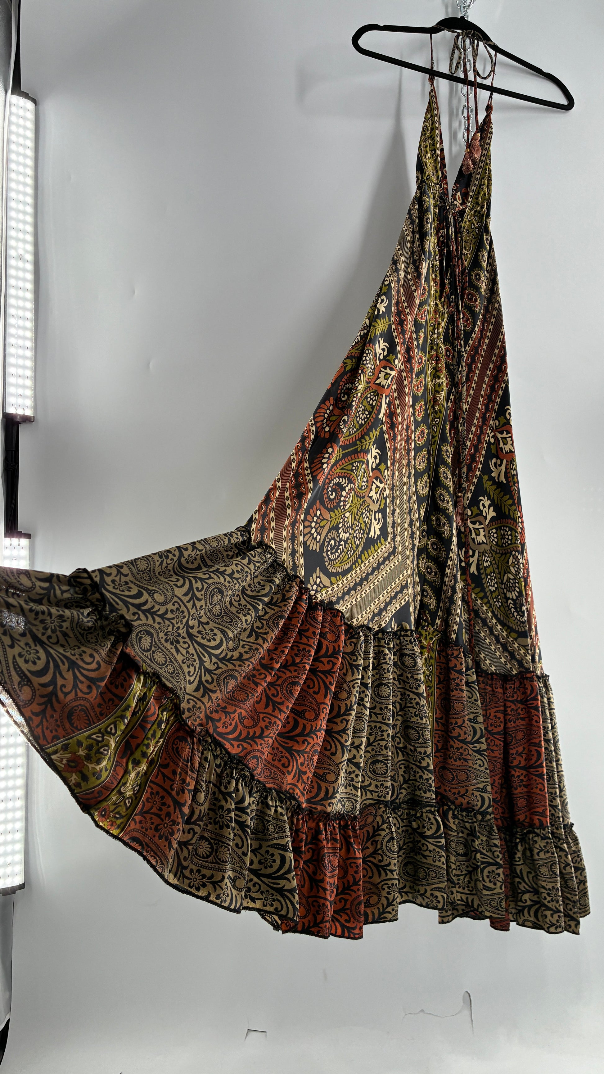 Vintage FLOATING LOTUS 30% Silk Adjustable Low Back Voluminous Dress (OS)