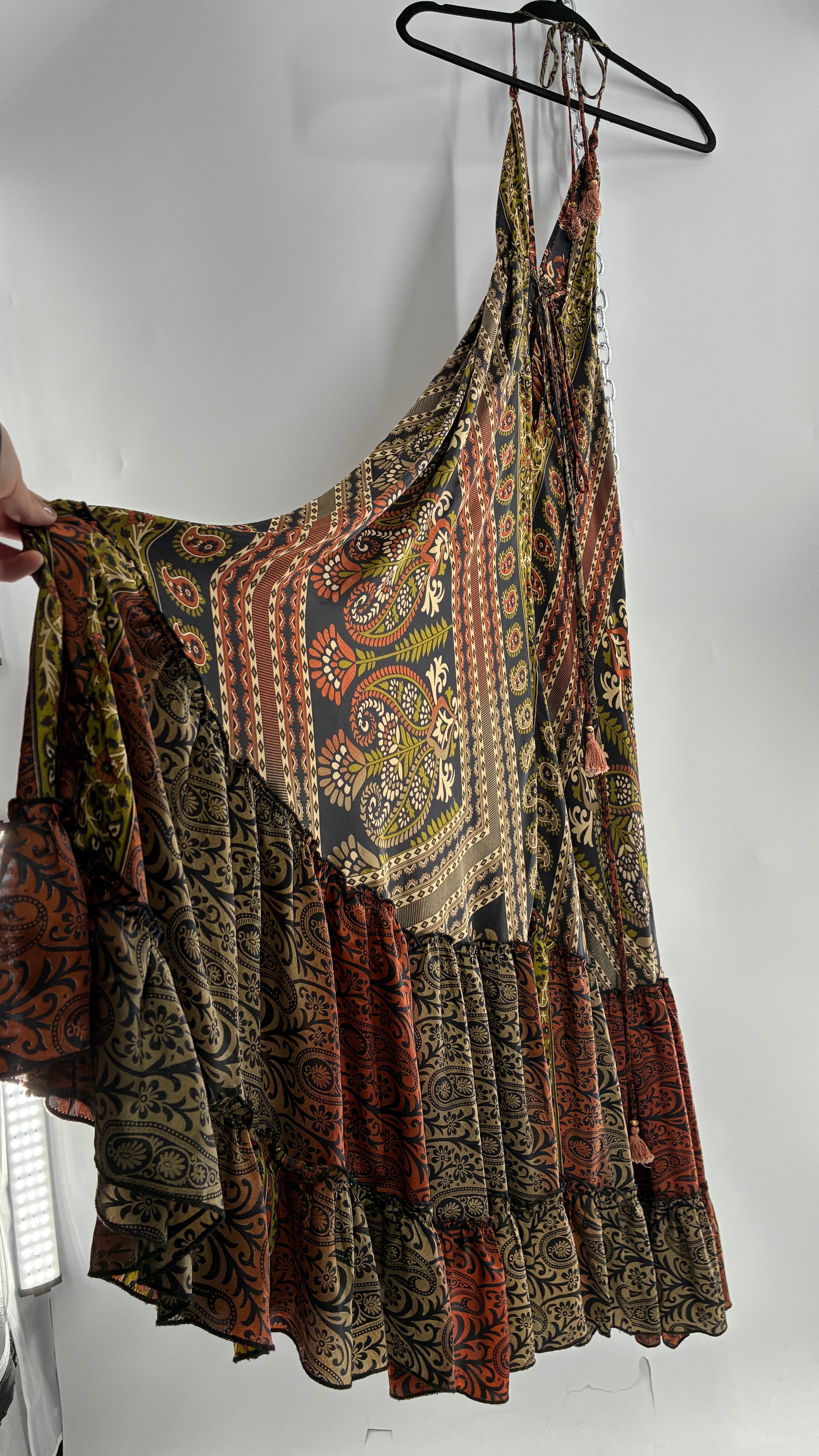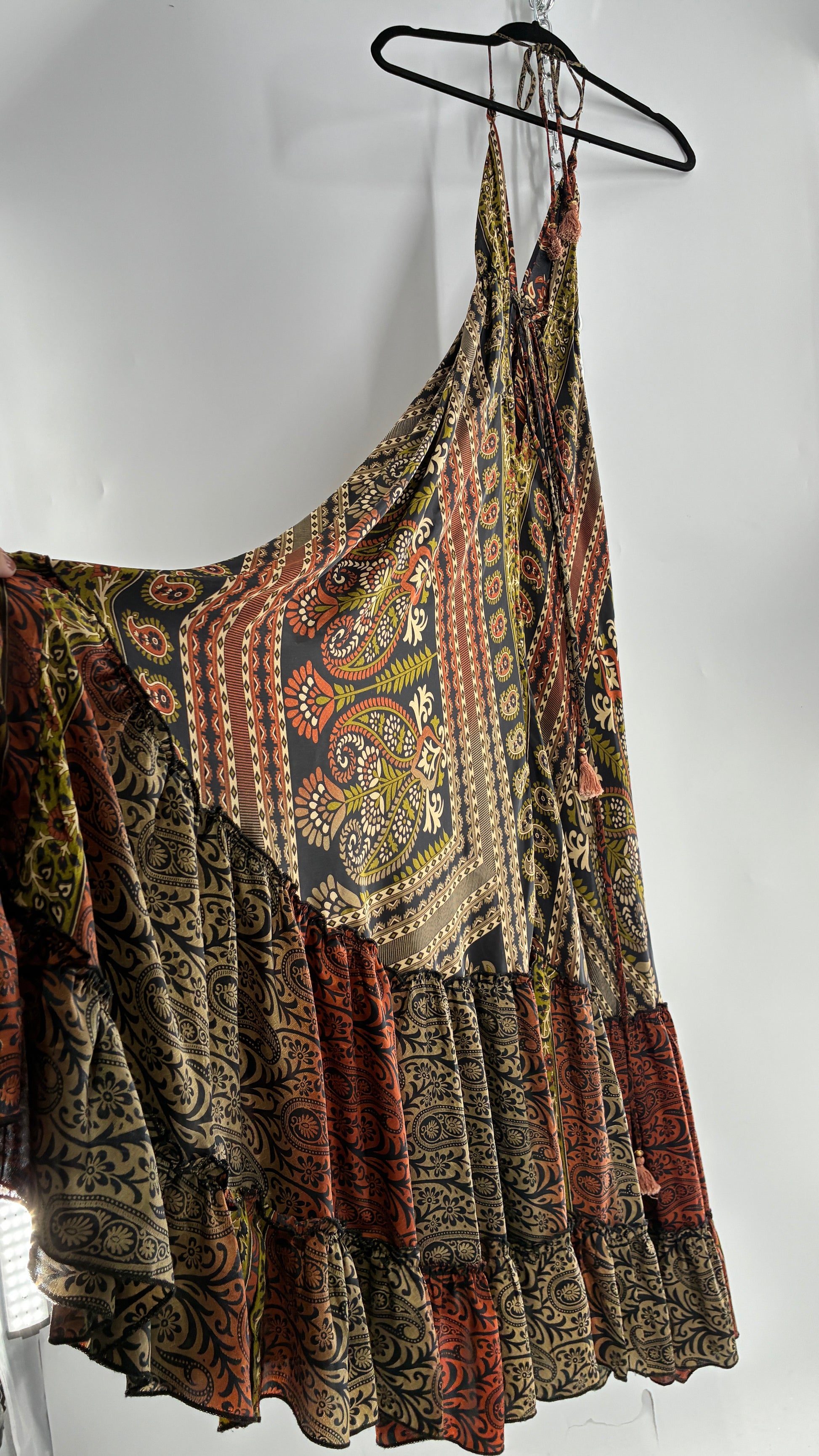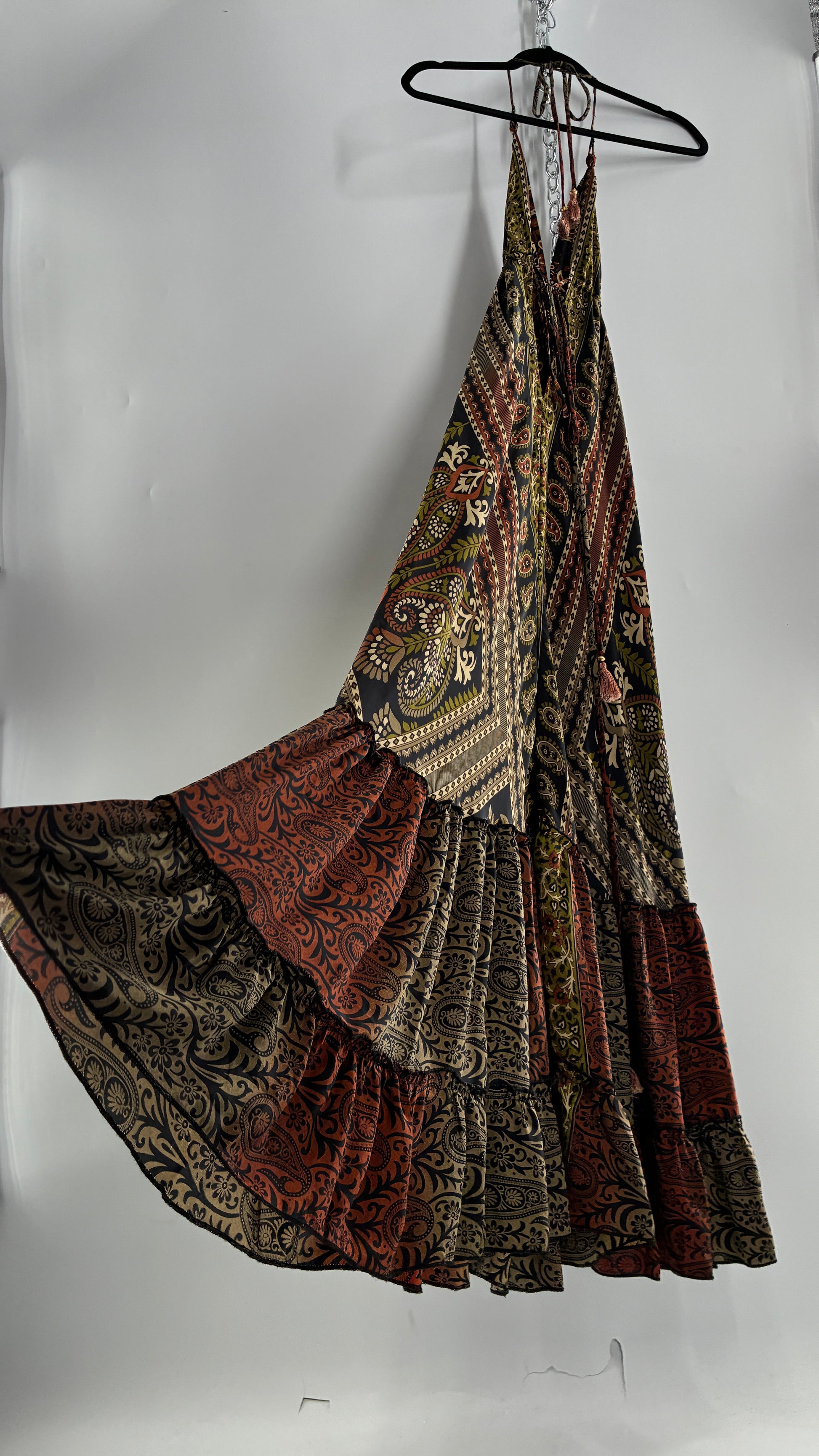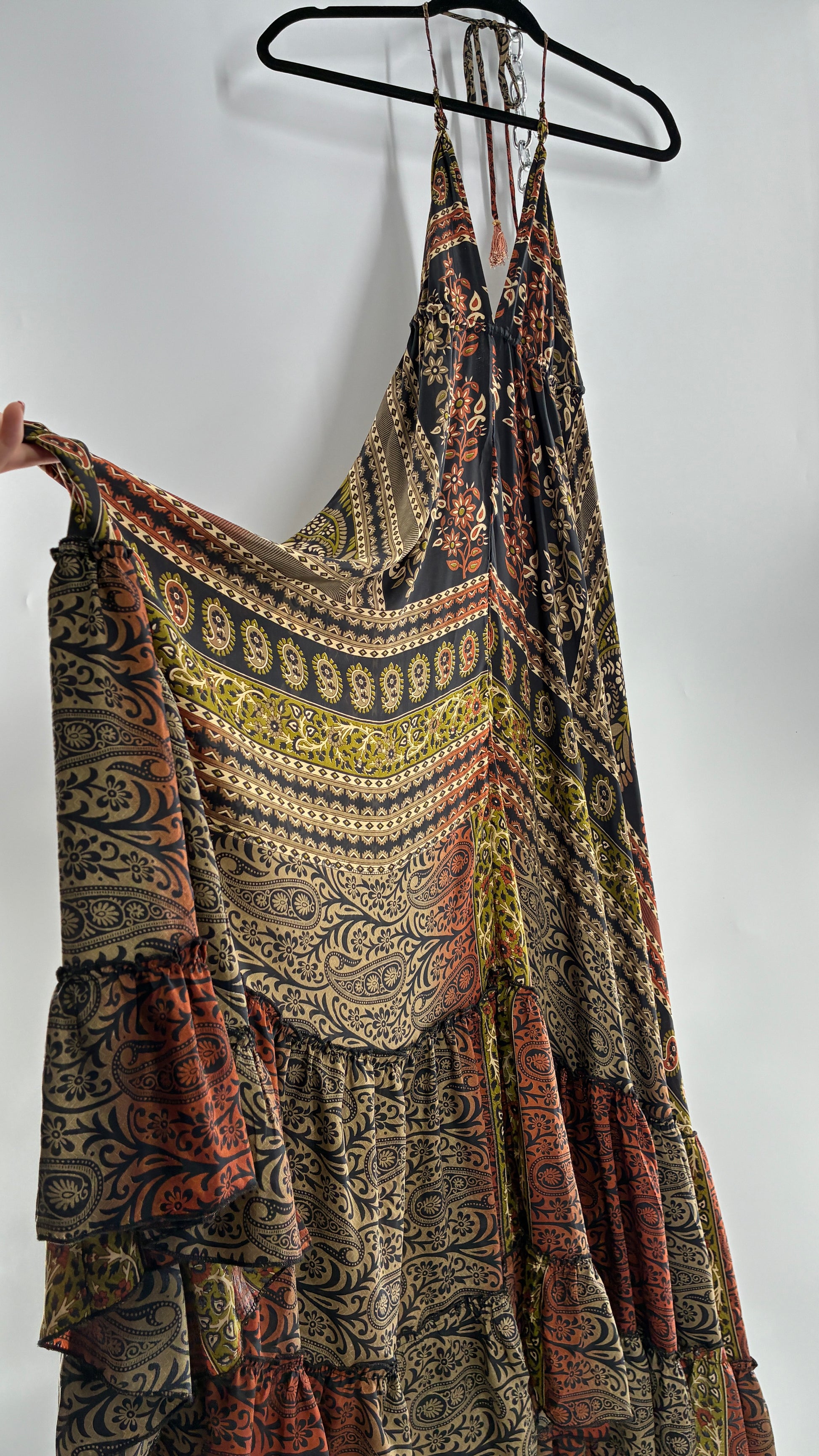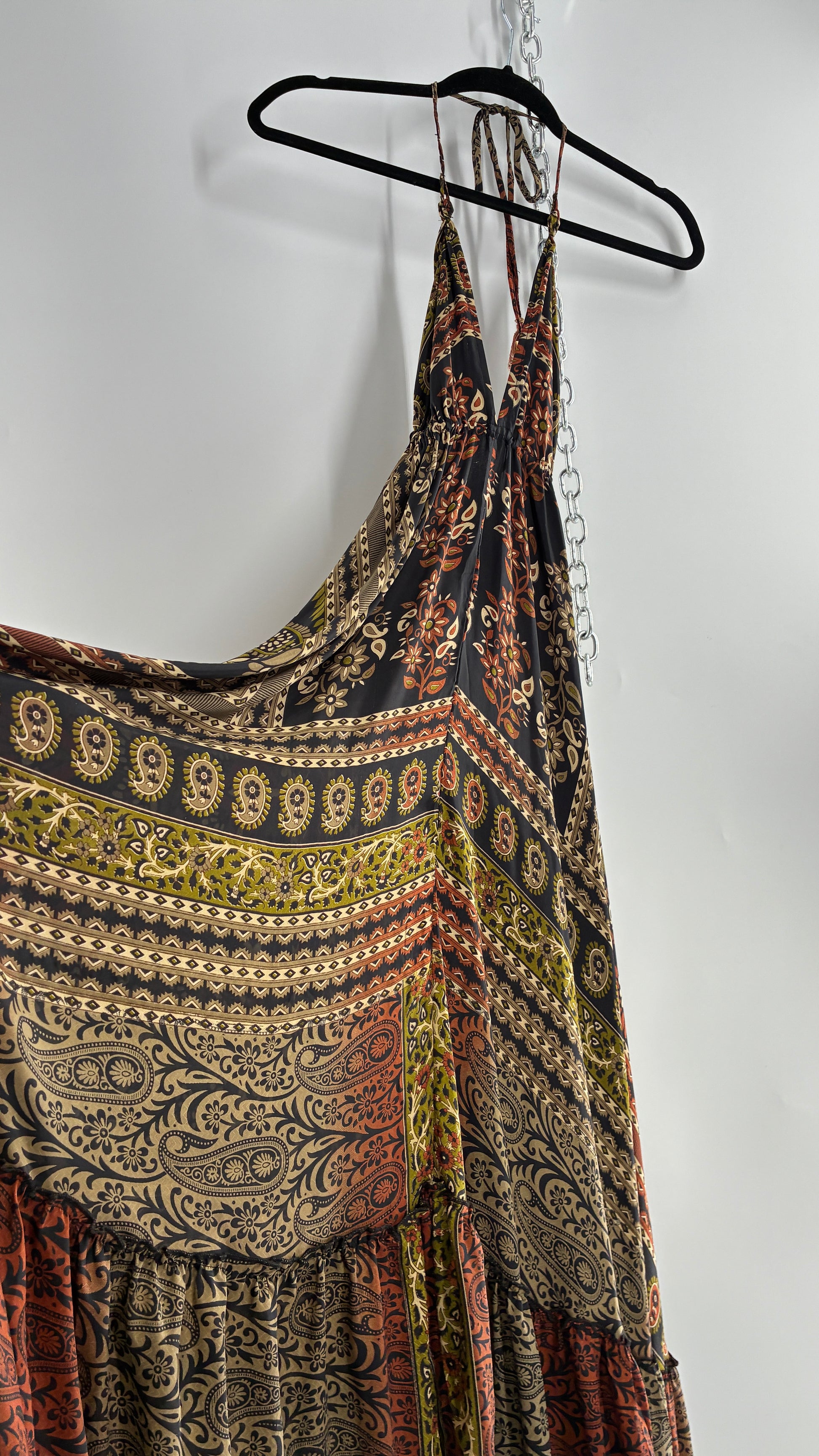 Vintage FLOATING LOTUS 30% Silk Adjustable Low Back Voluminous Dress (OS)