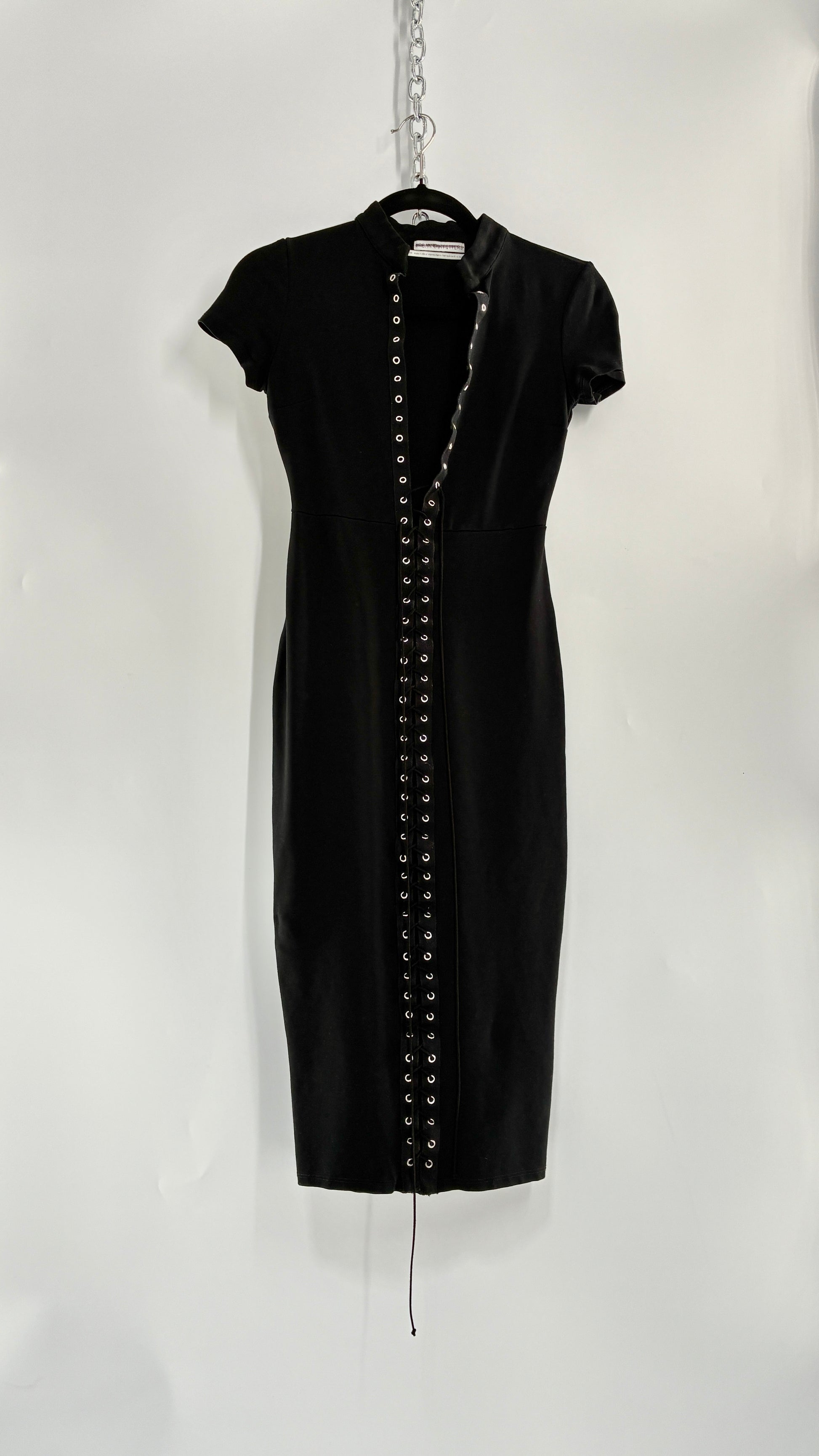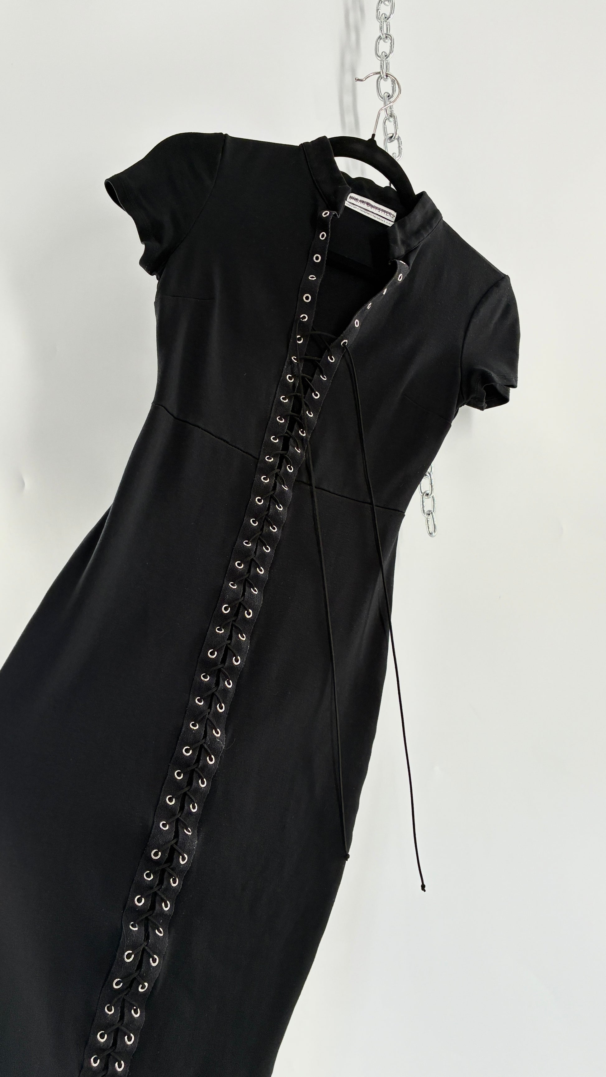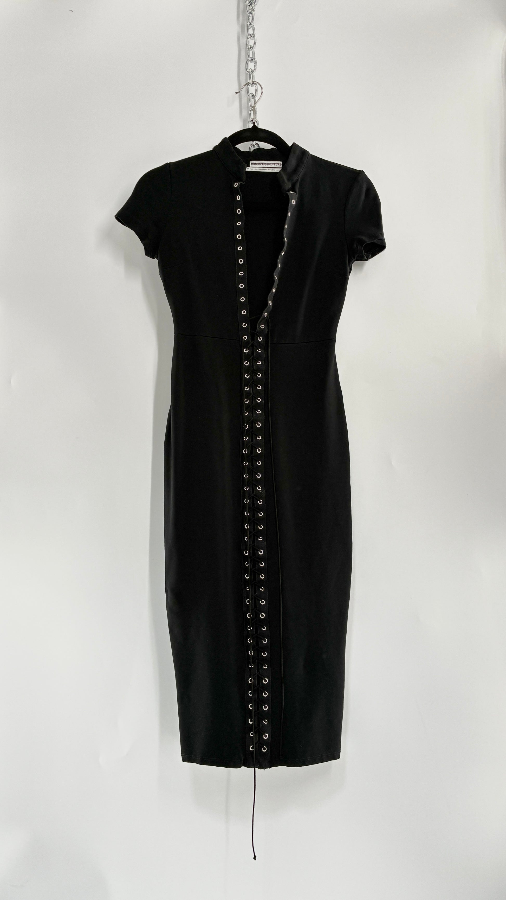 Urban Outfitters Black Midi Bodycon Dress with Tie Up Front and Vented Hem (XS)