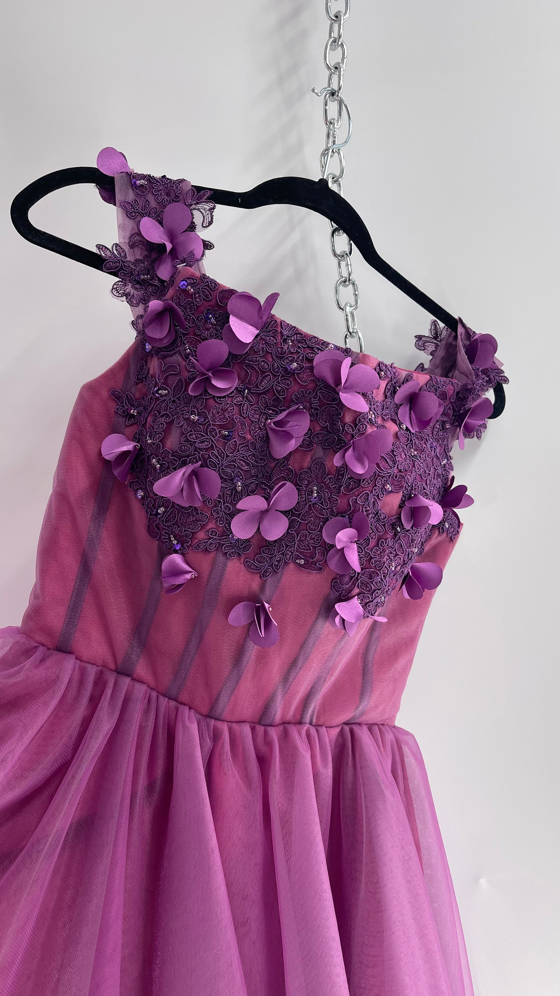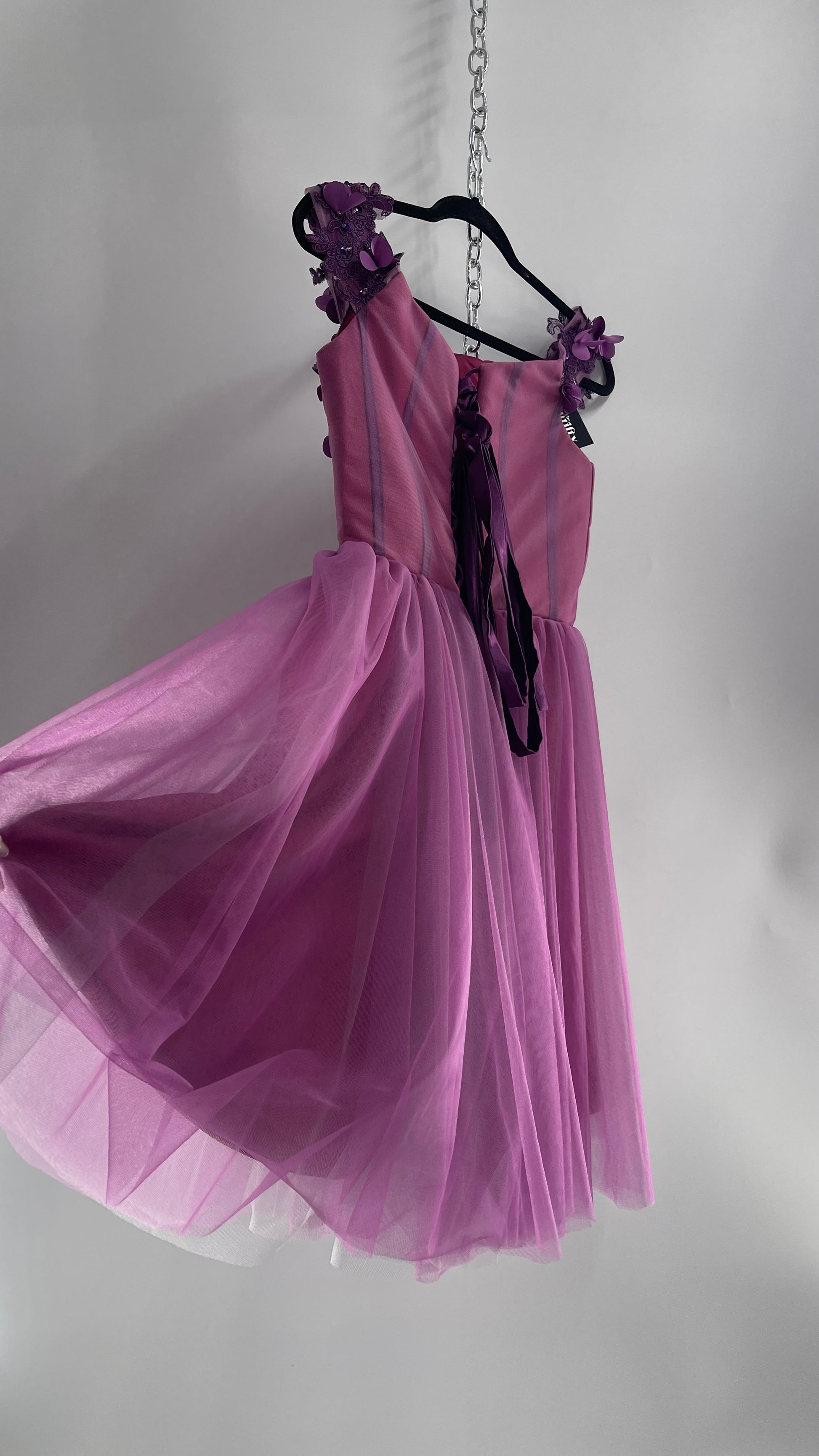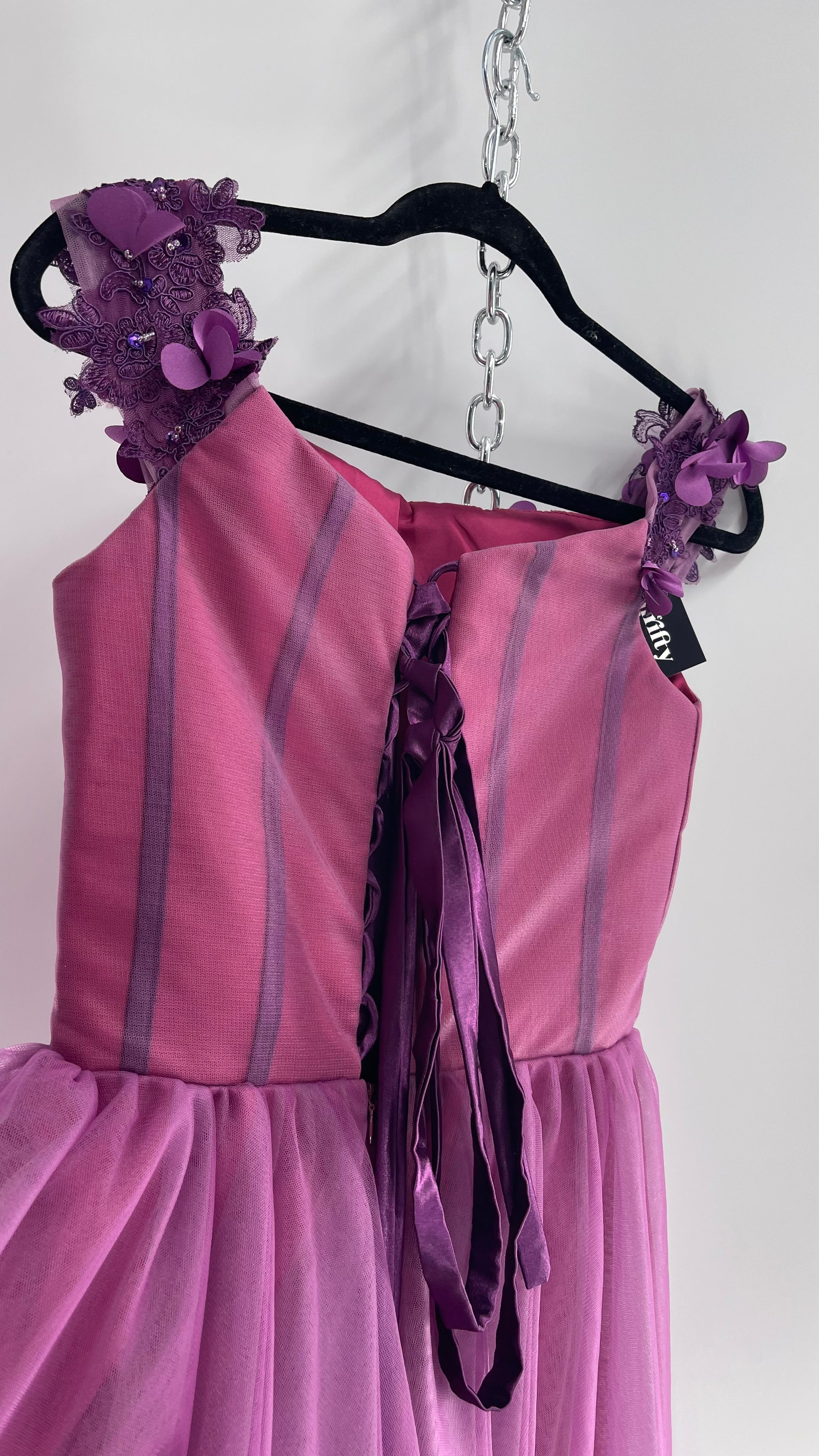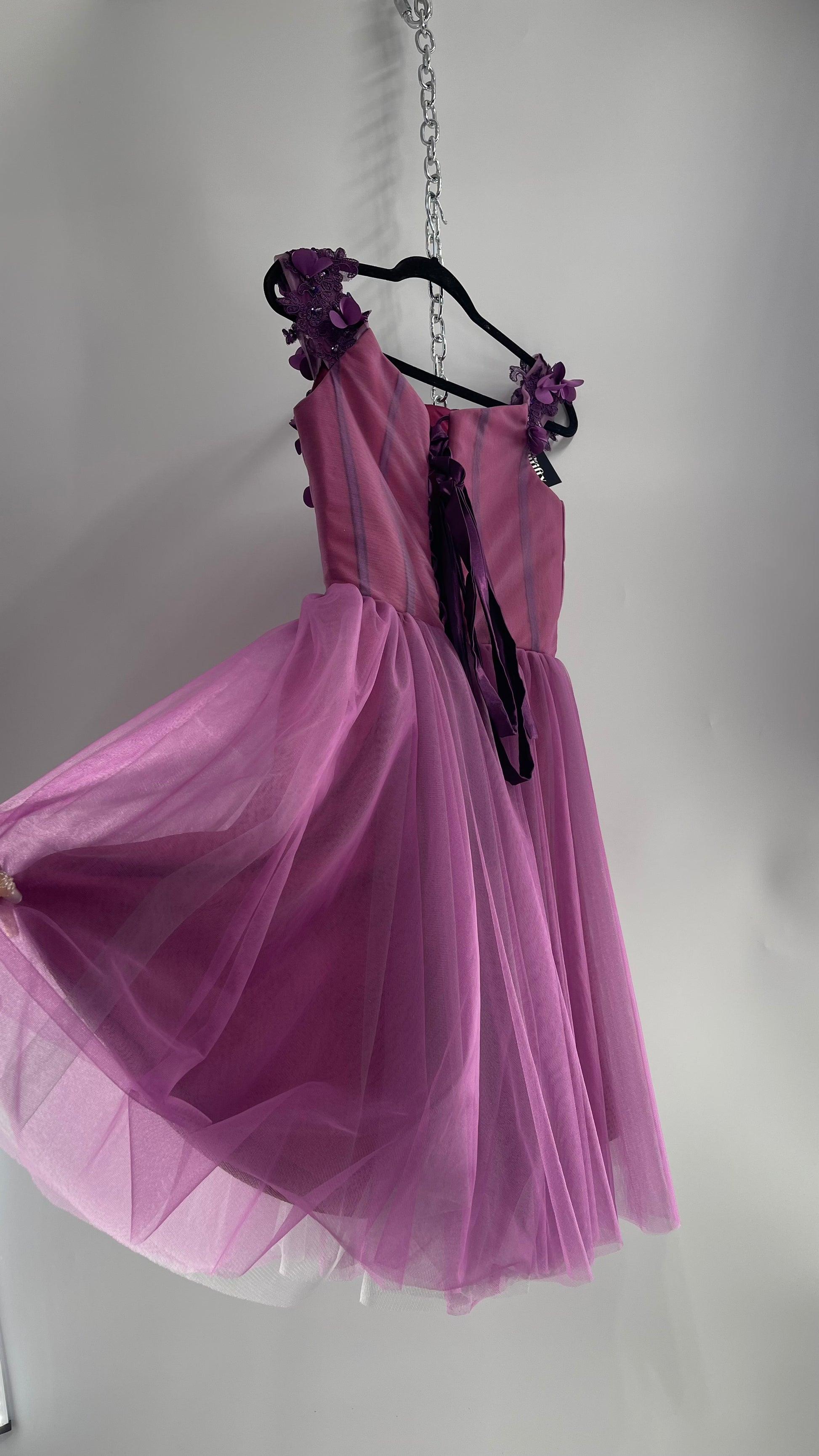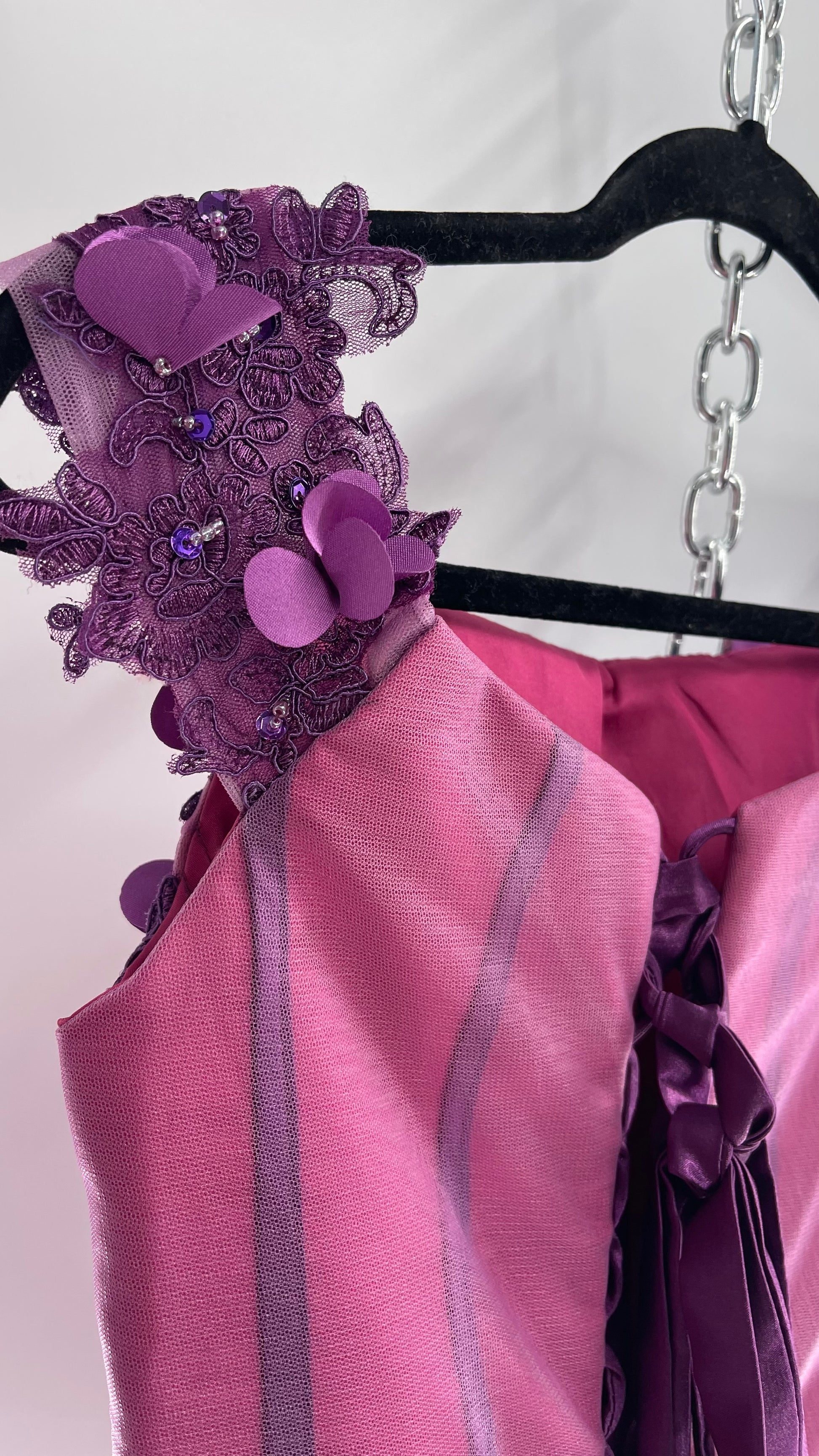 Vintage Handmade Corseted Fairy Dress with Flower Purple Pink Petals and Boning (Medium)