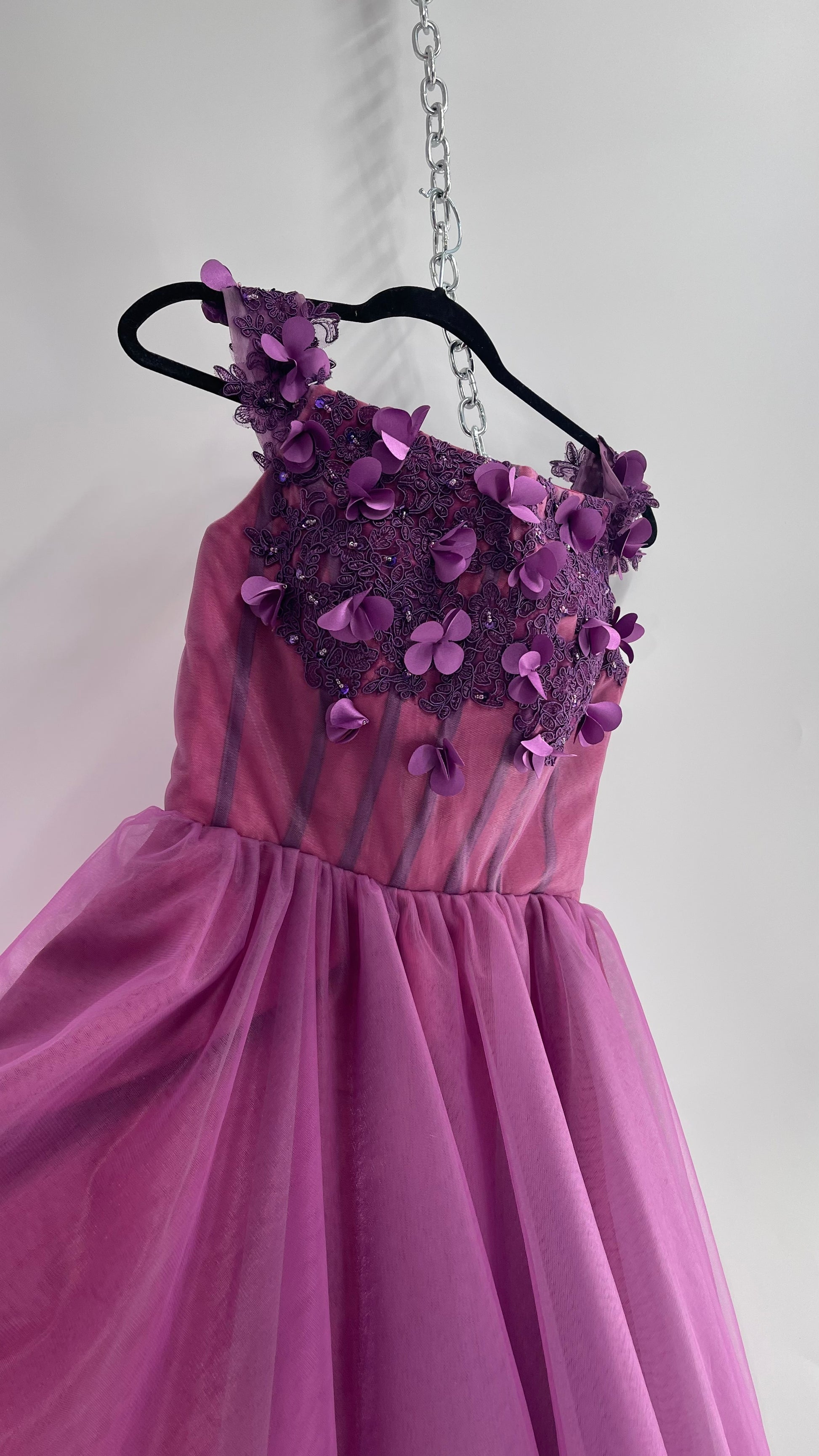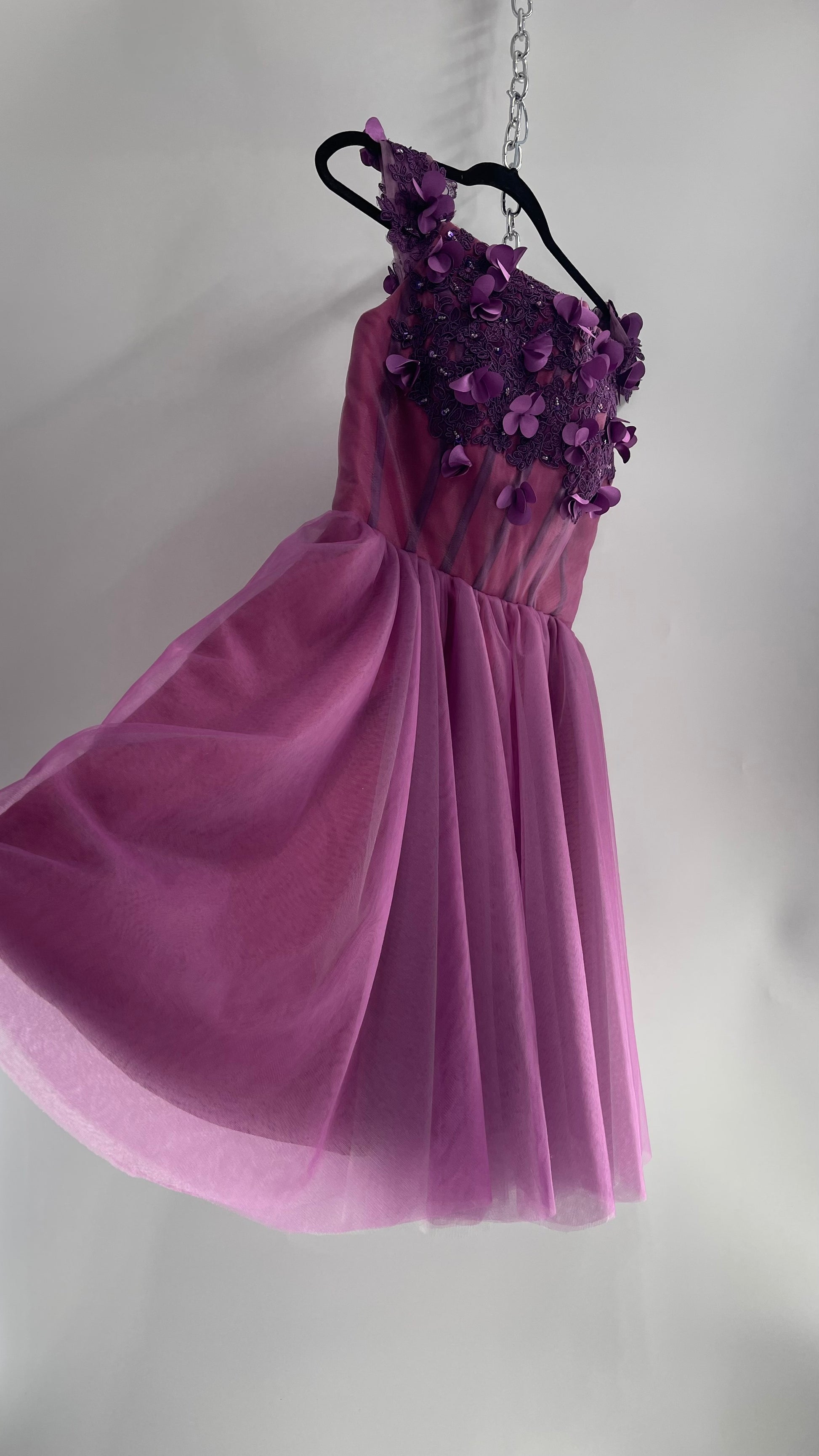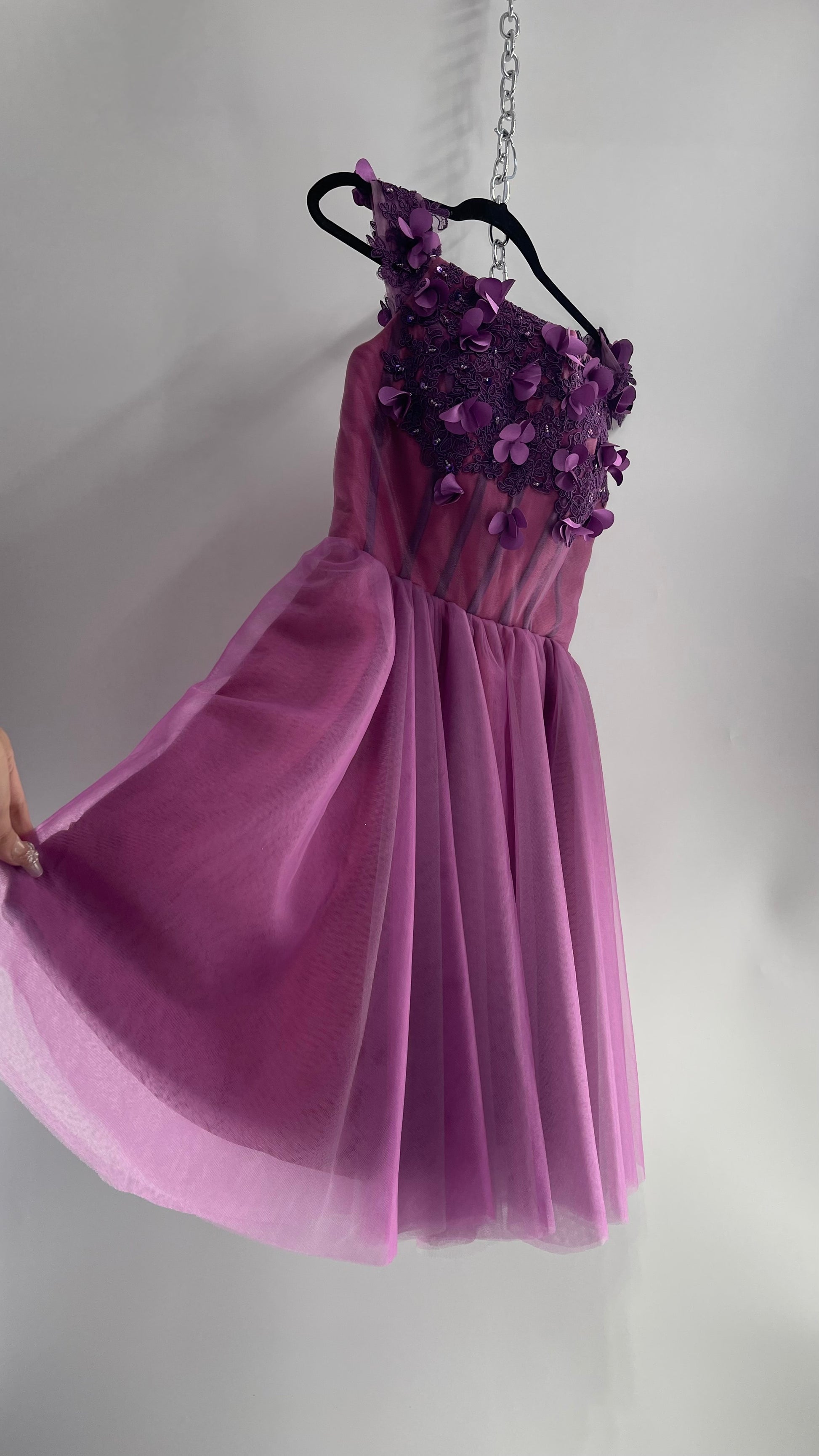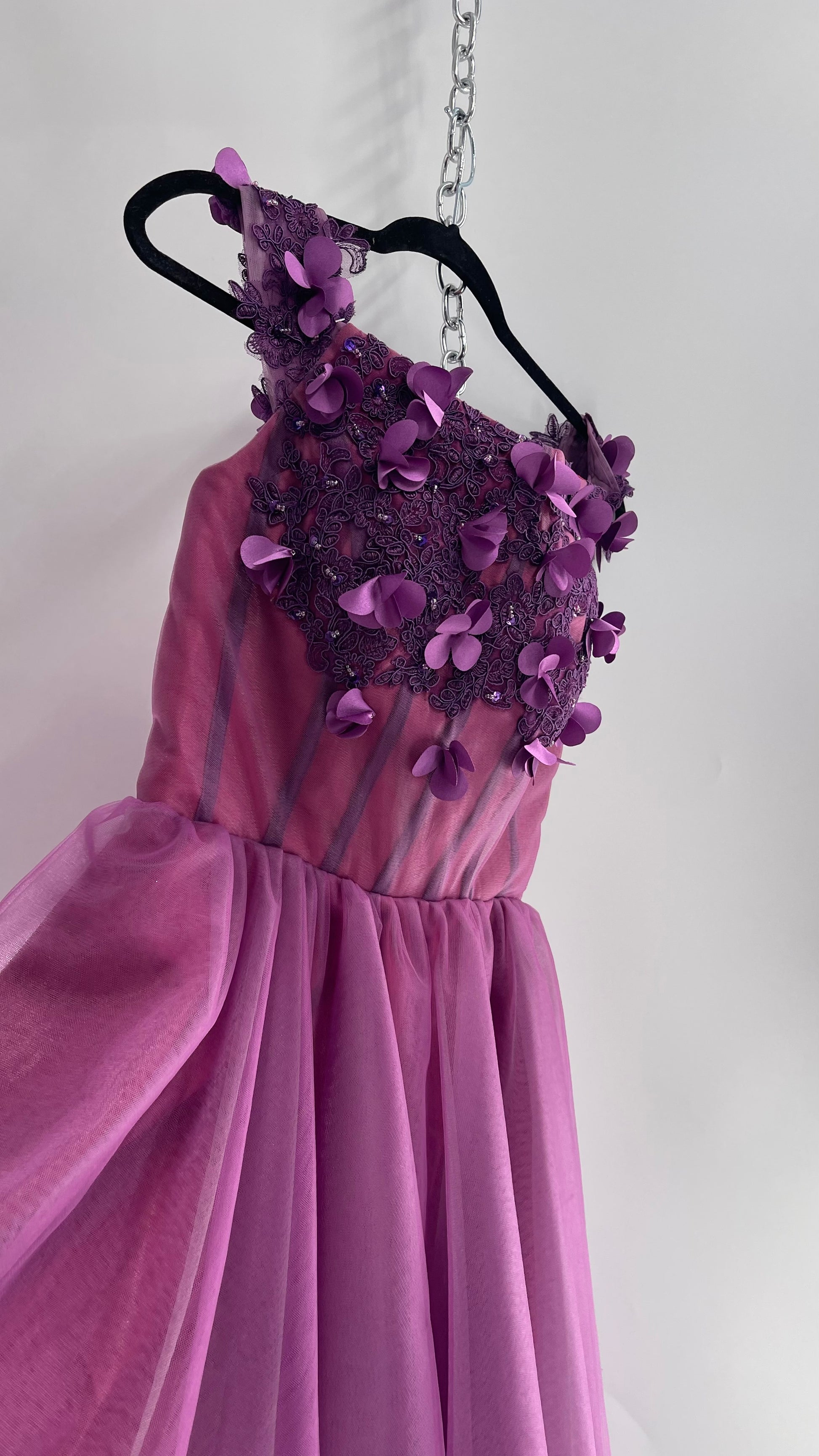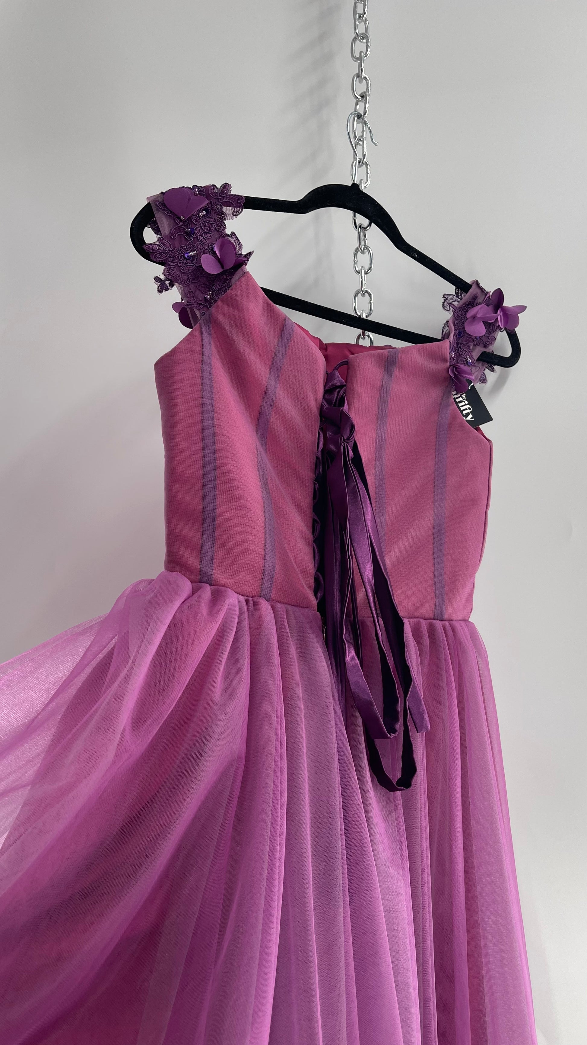 Vintage Handmade Corseted Fairy Dress with Flower Purple Pink Petals and Boning (Medium)