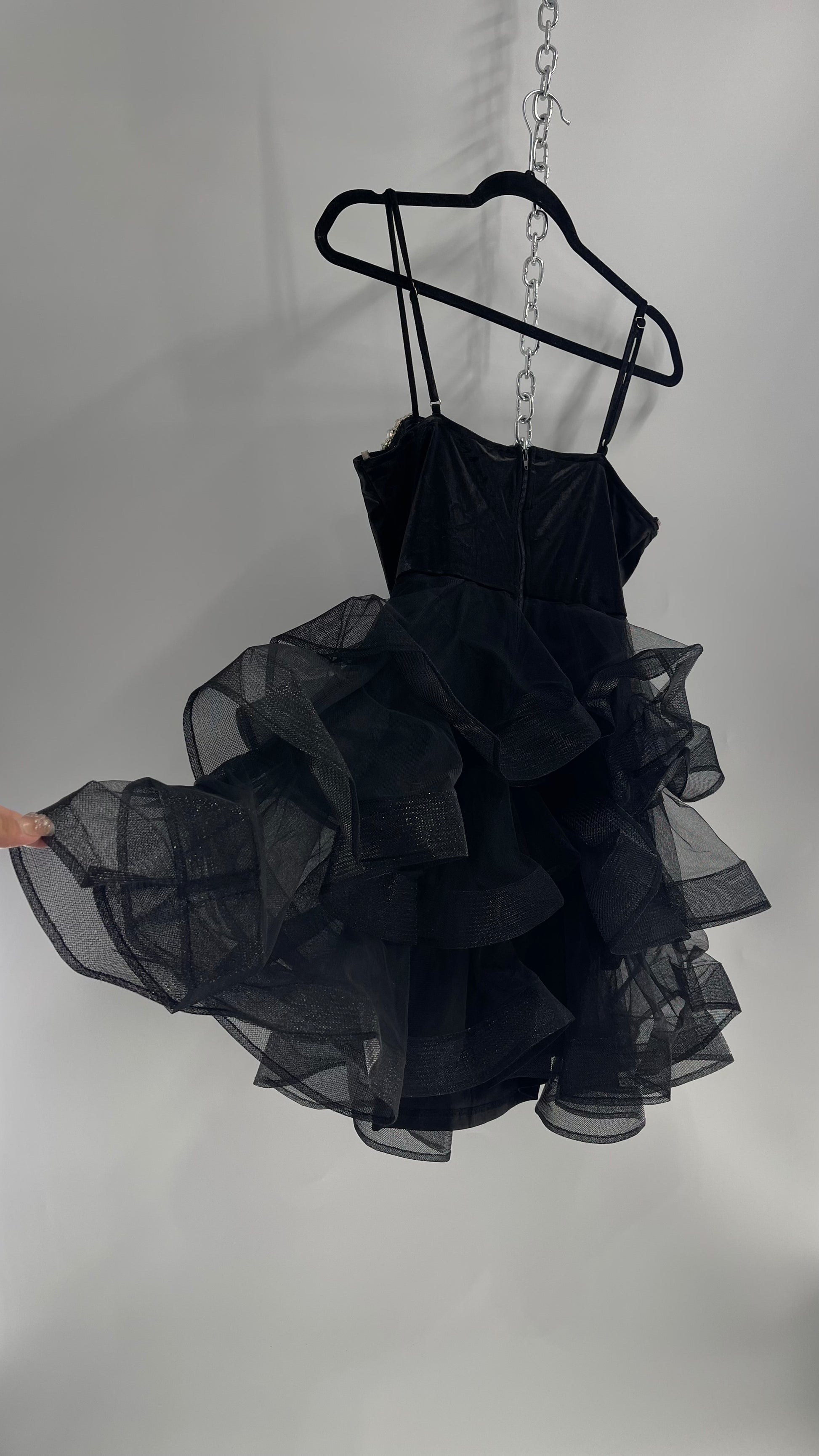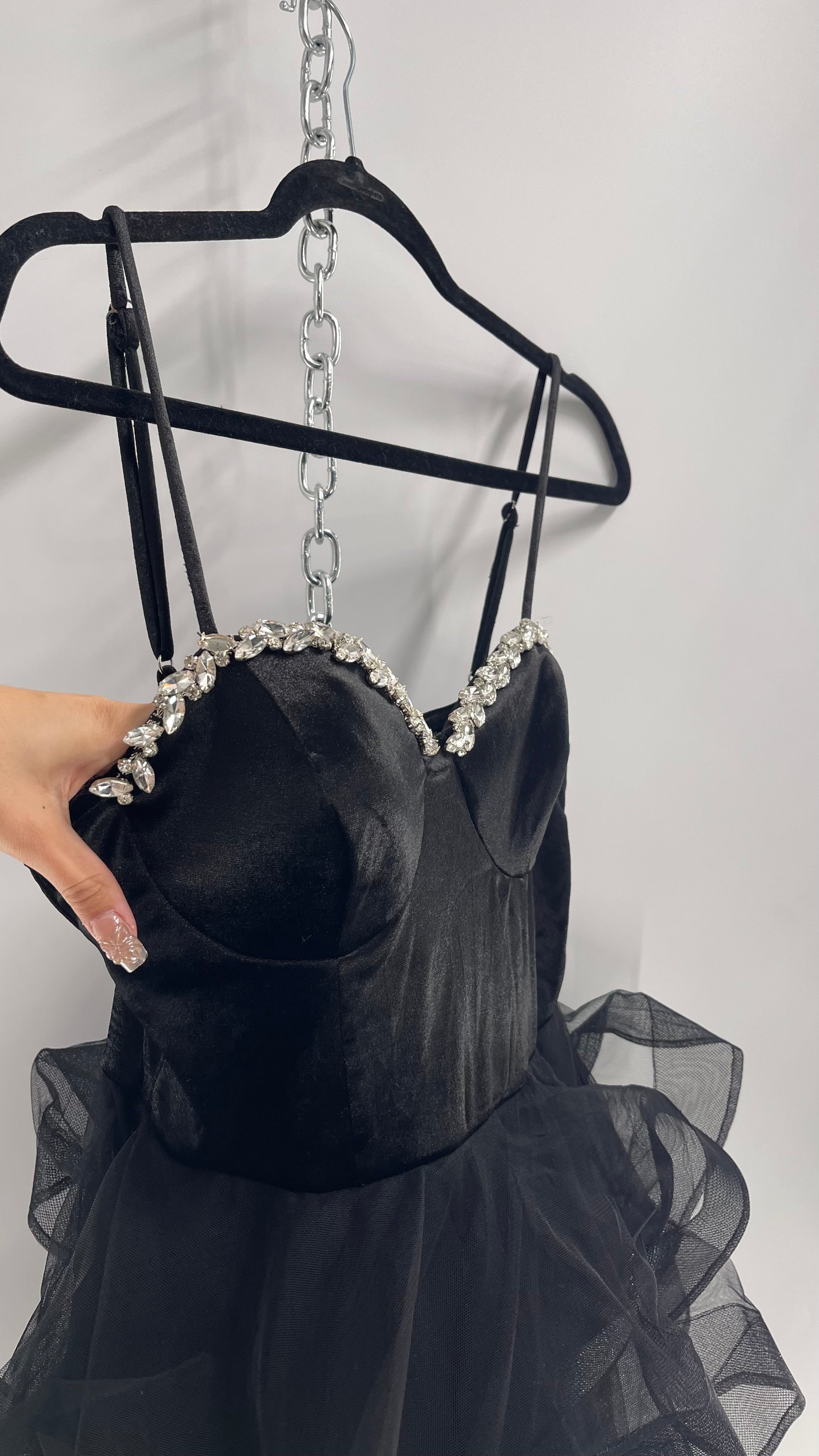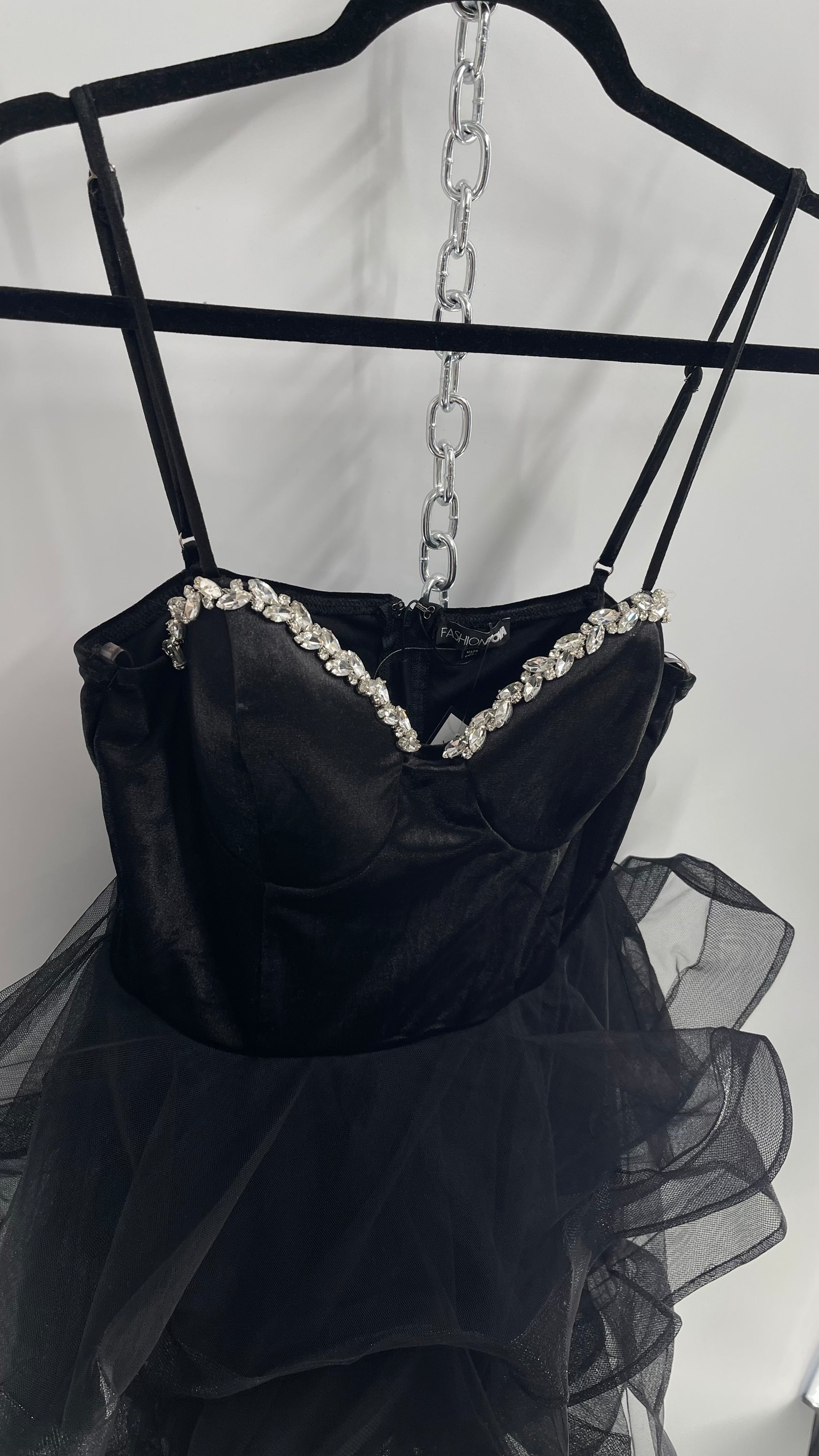 Fashion Nova Tule Ruffle Dress with Velvet Rhinestone Bodice (Medium)