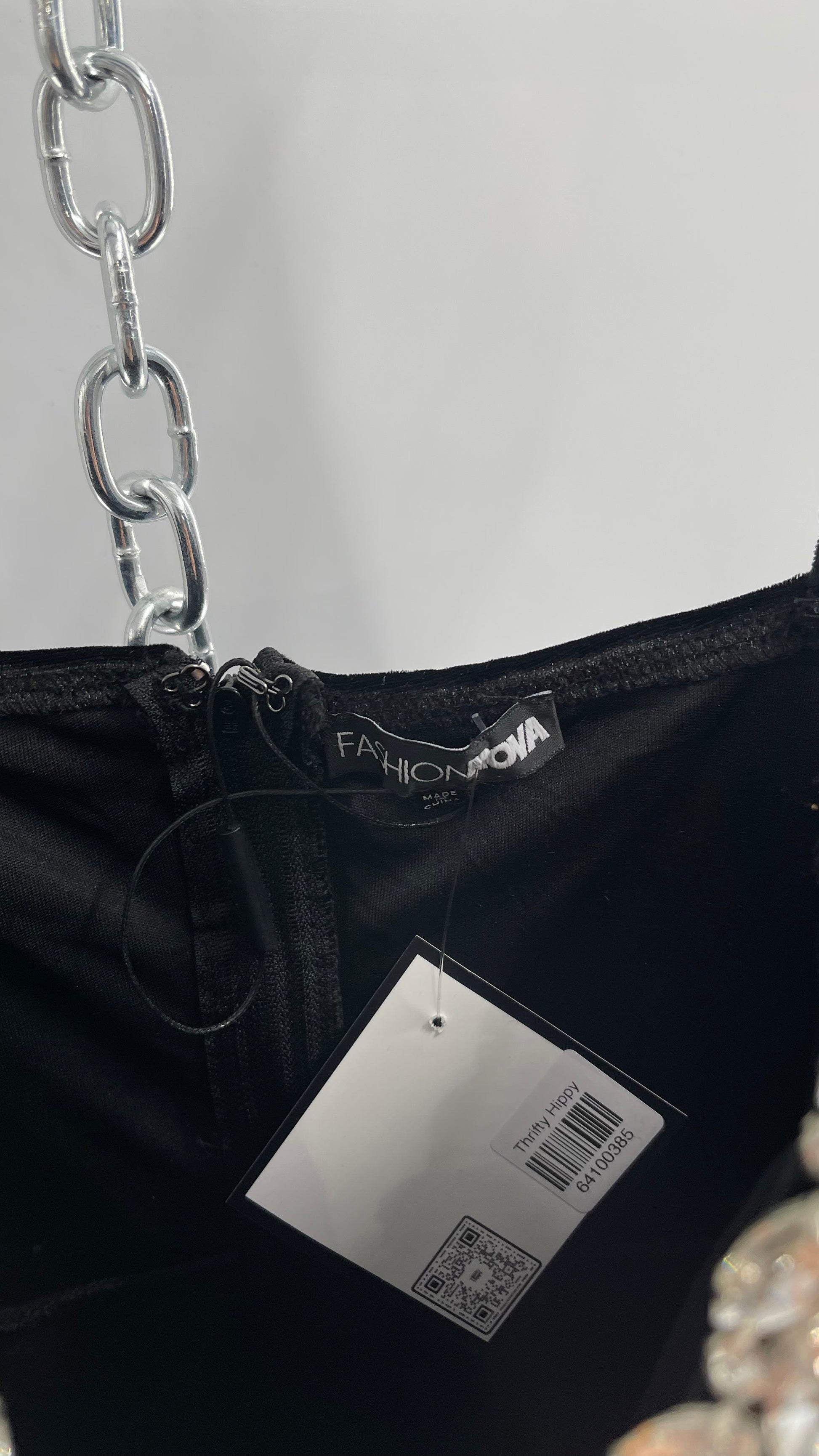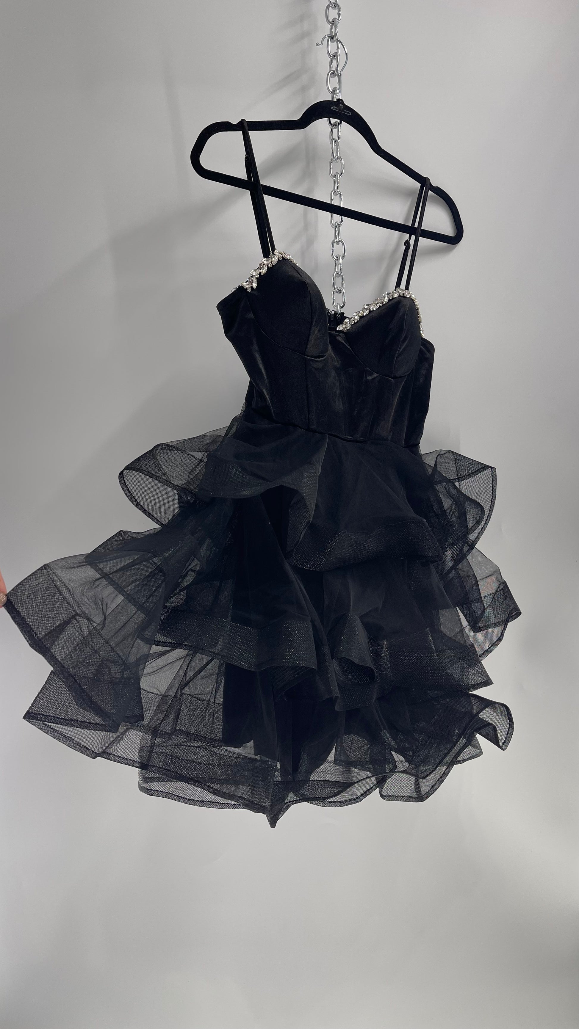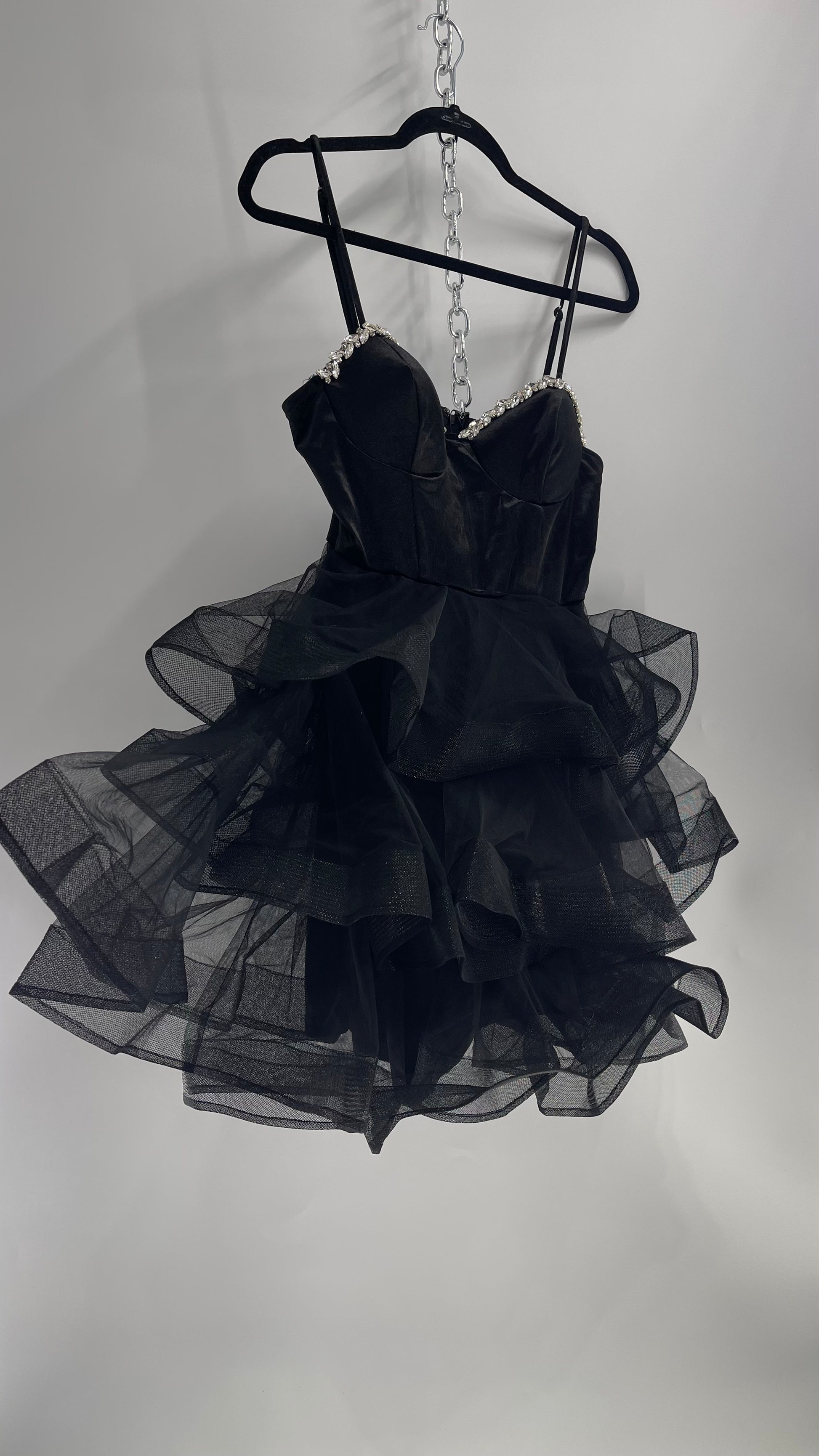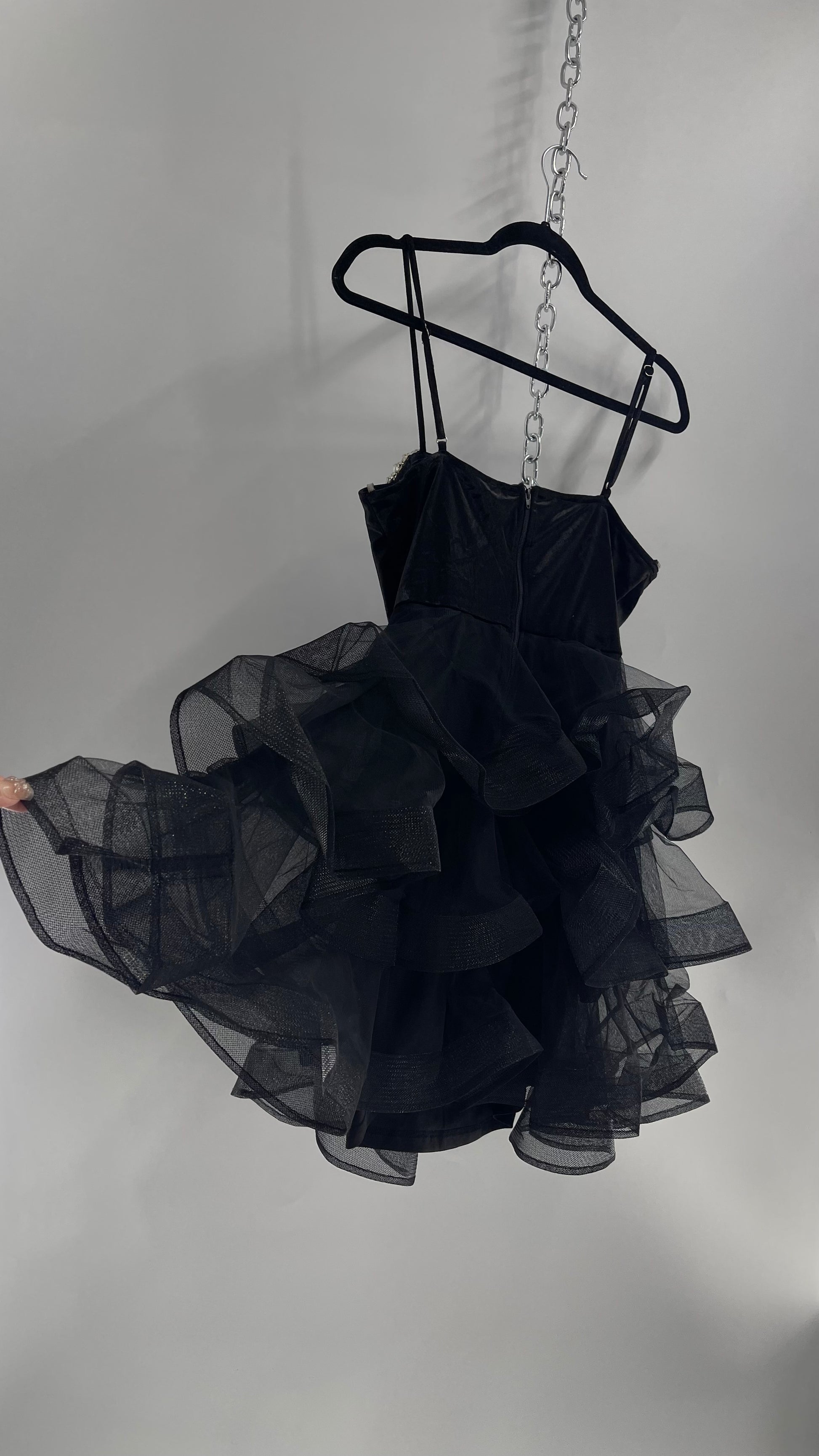 Fashion Nova Tule Ruffle Dress with Velvet Rhinestone Bodice (Medium)