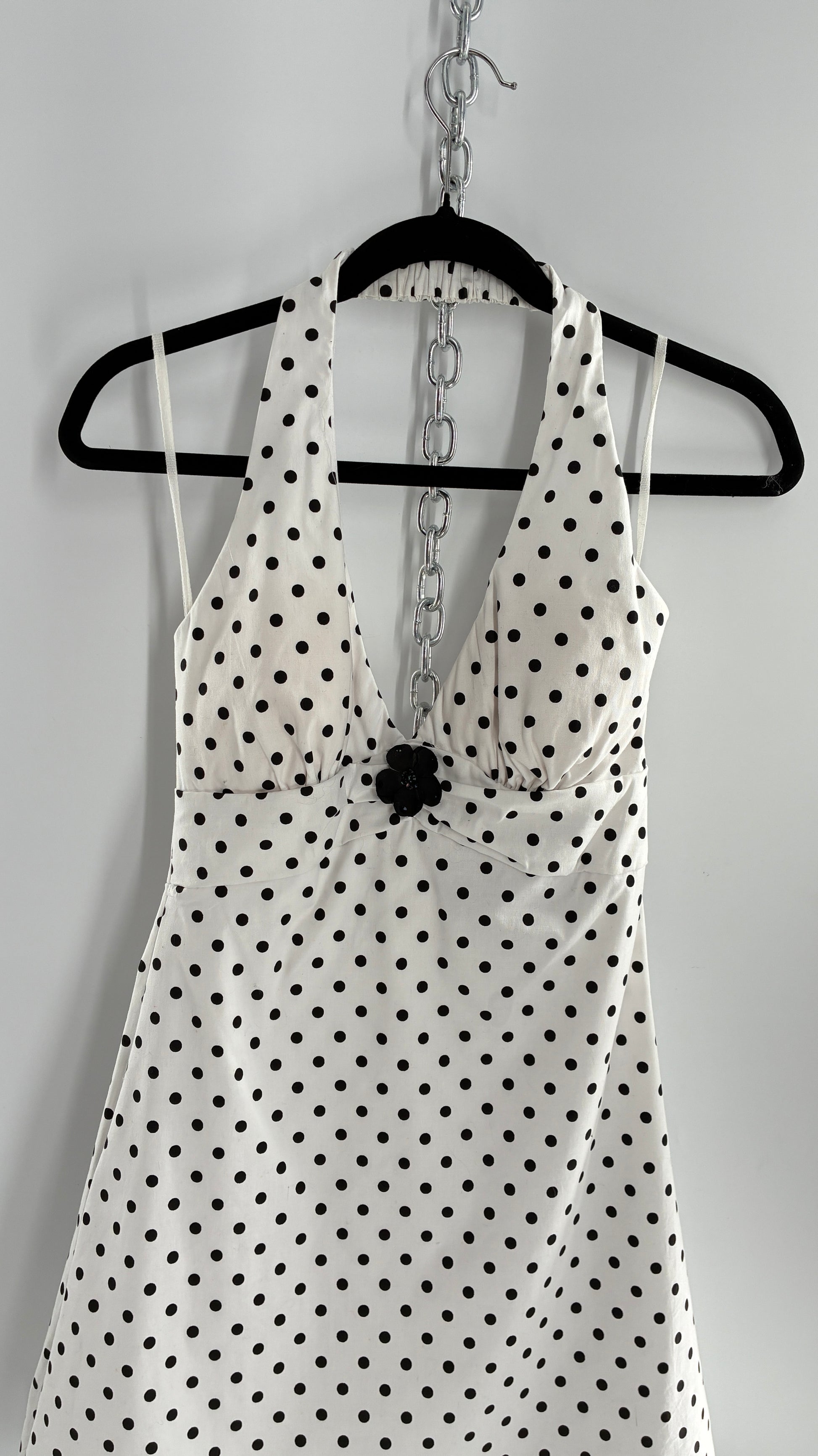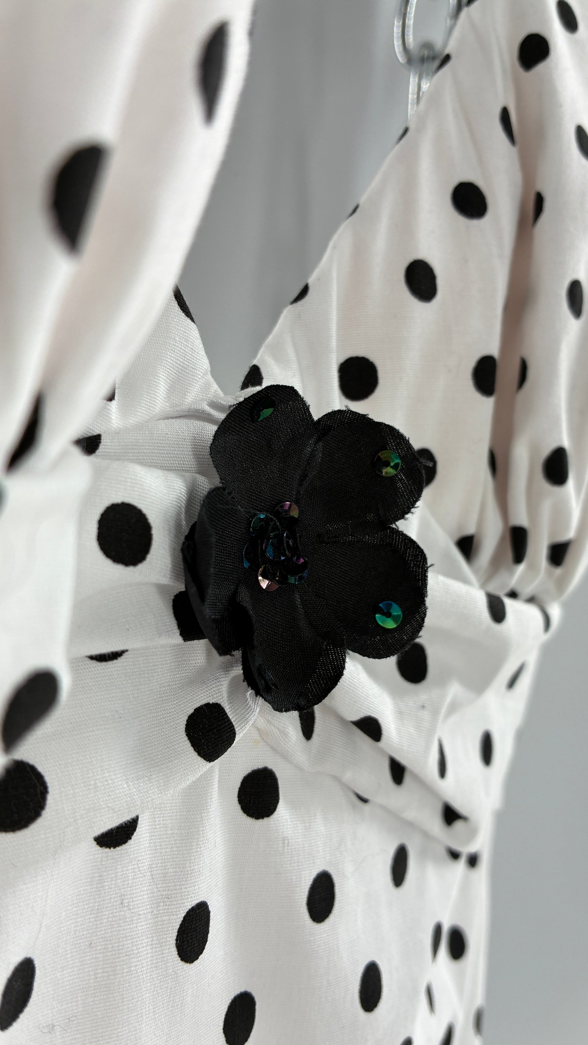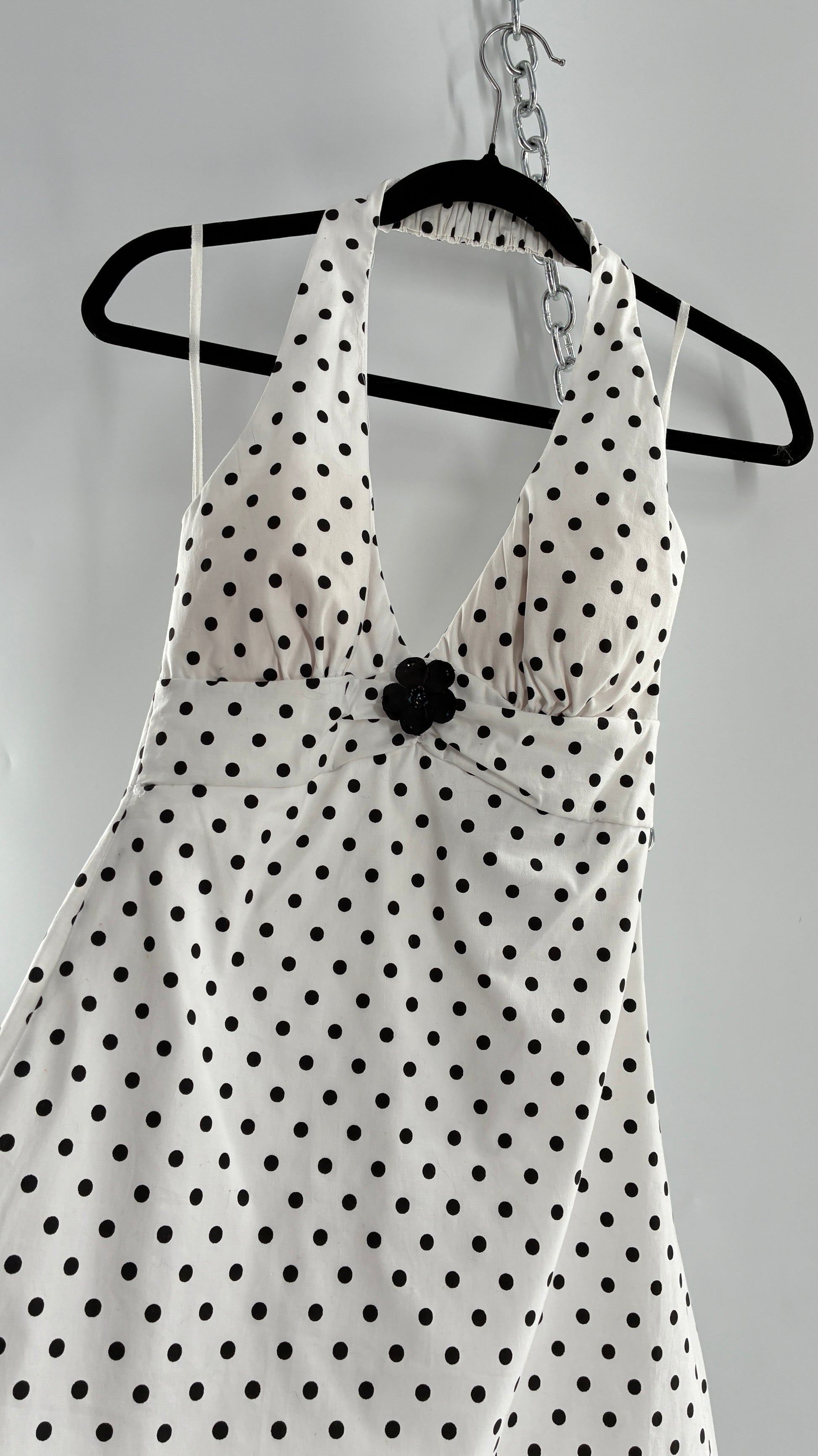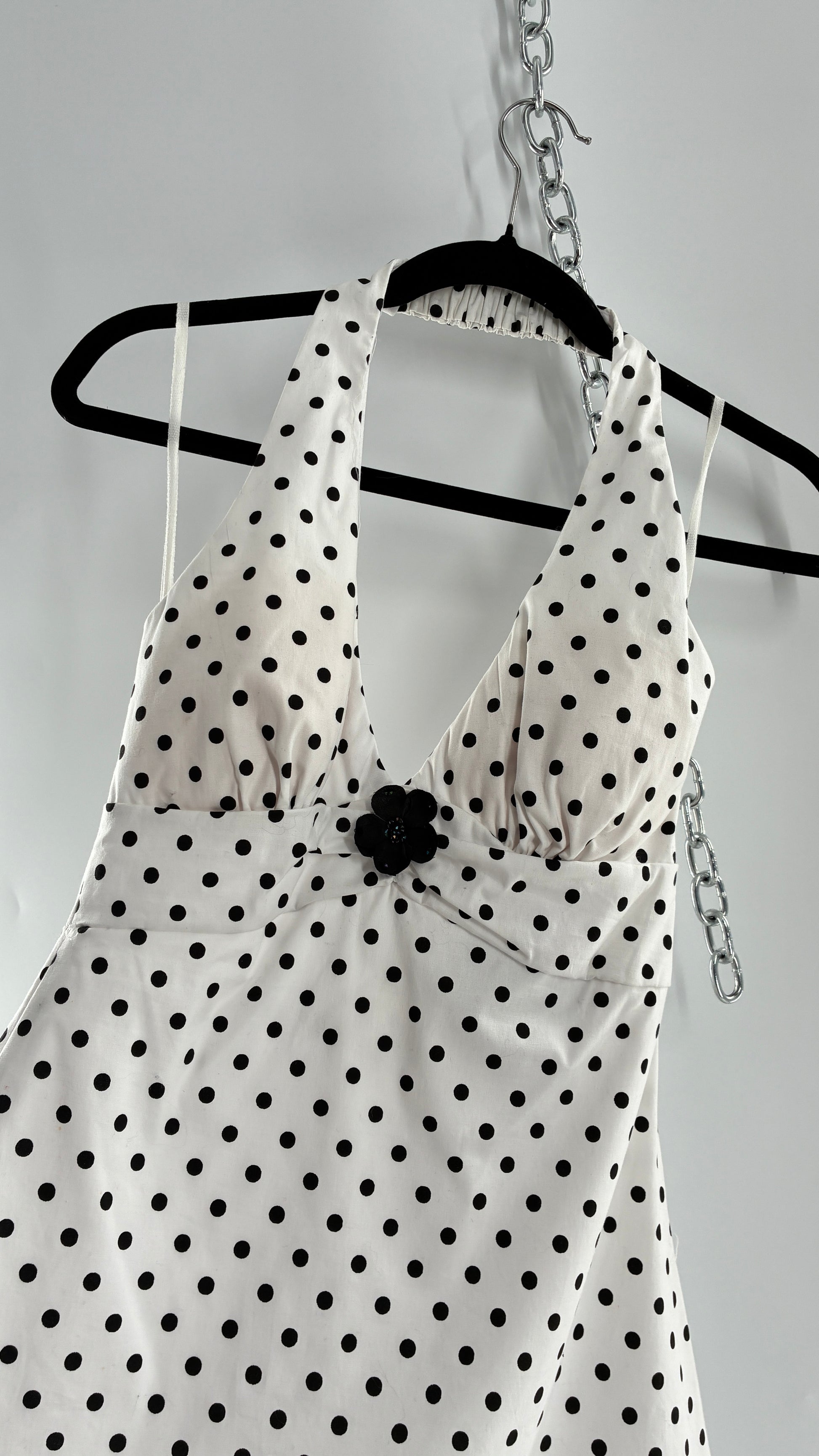 Deadstock Vintage Ruby Rox Retro Style White and Black Polka Dotted Mini Dress with Tulle Trim (7)