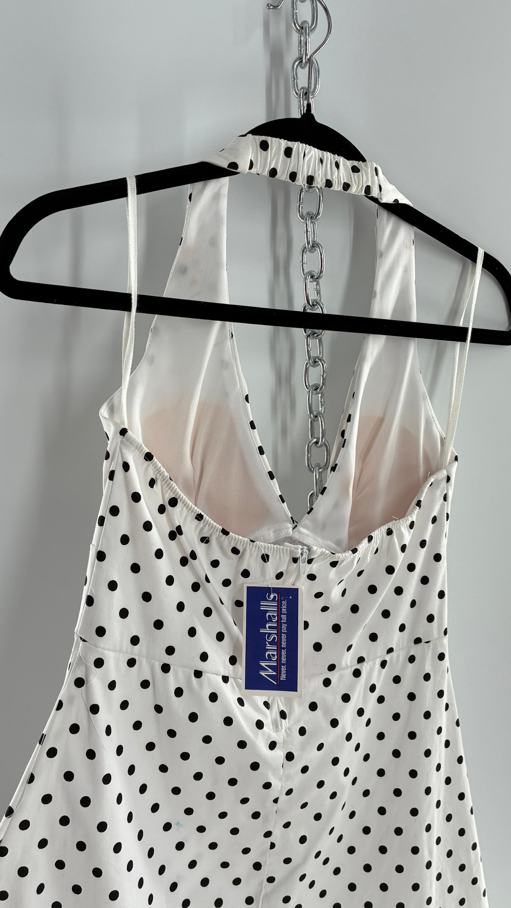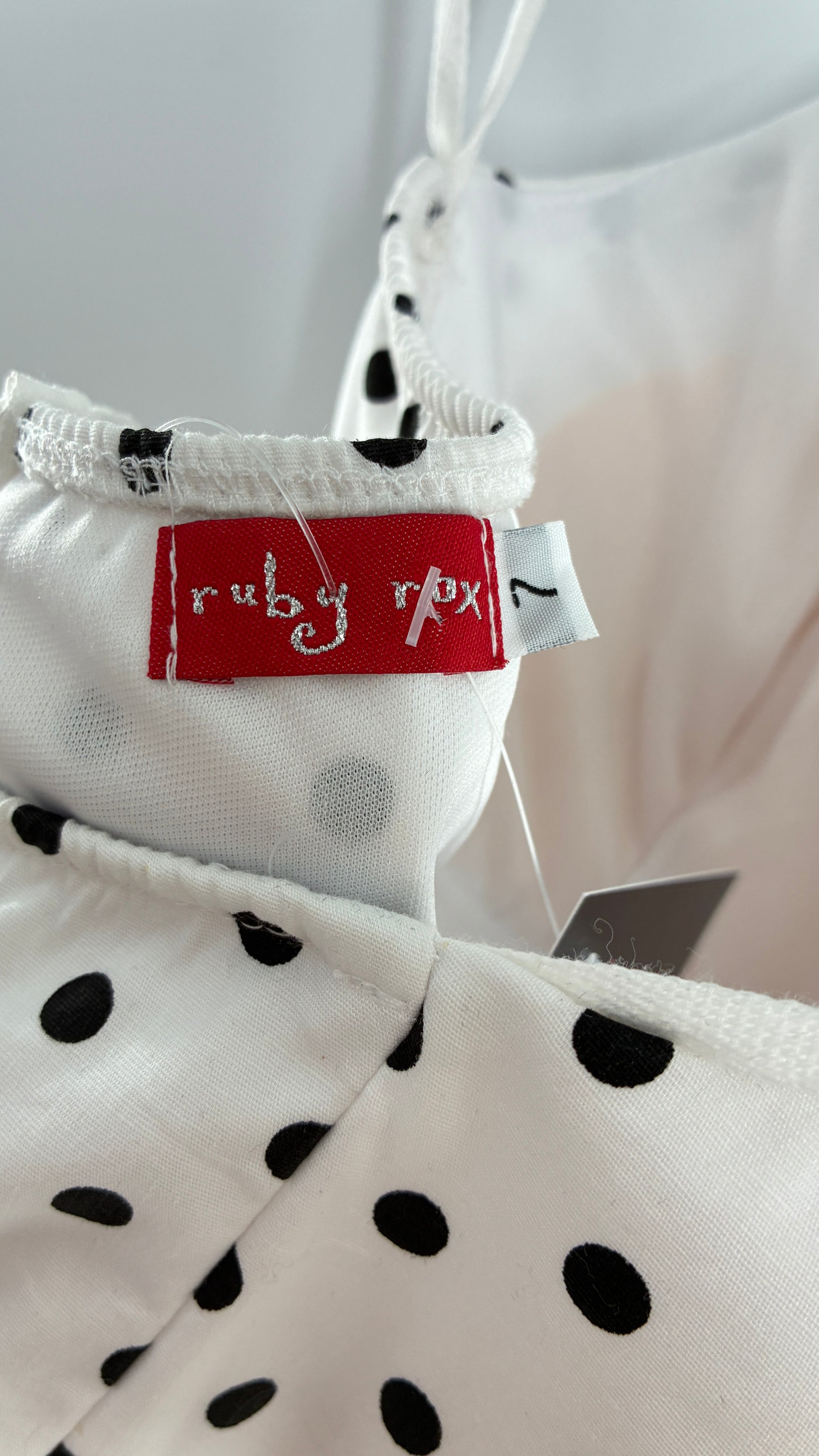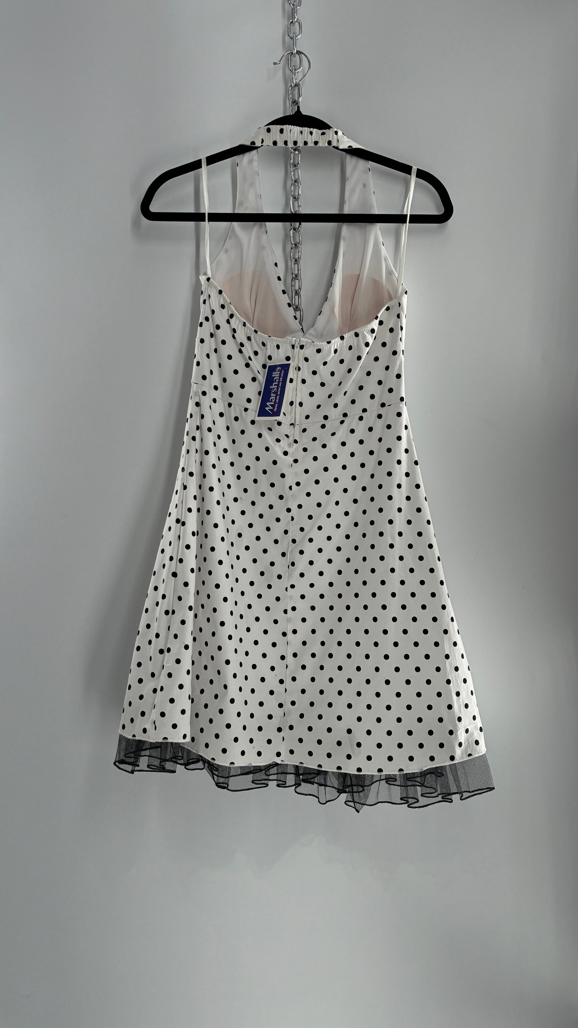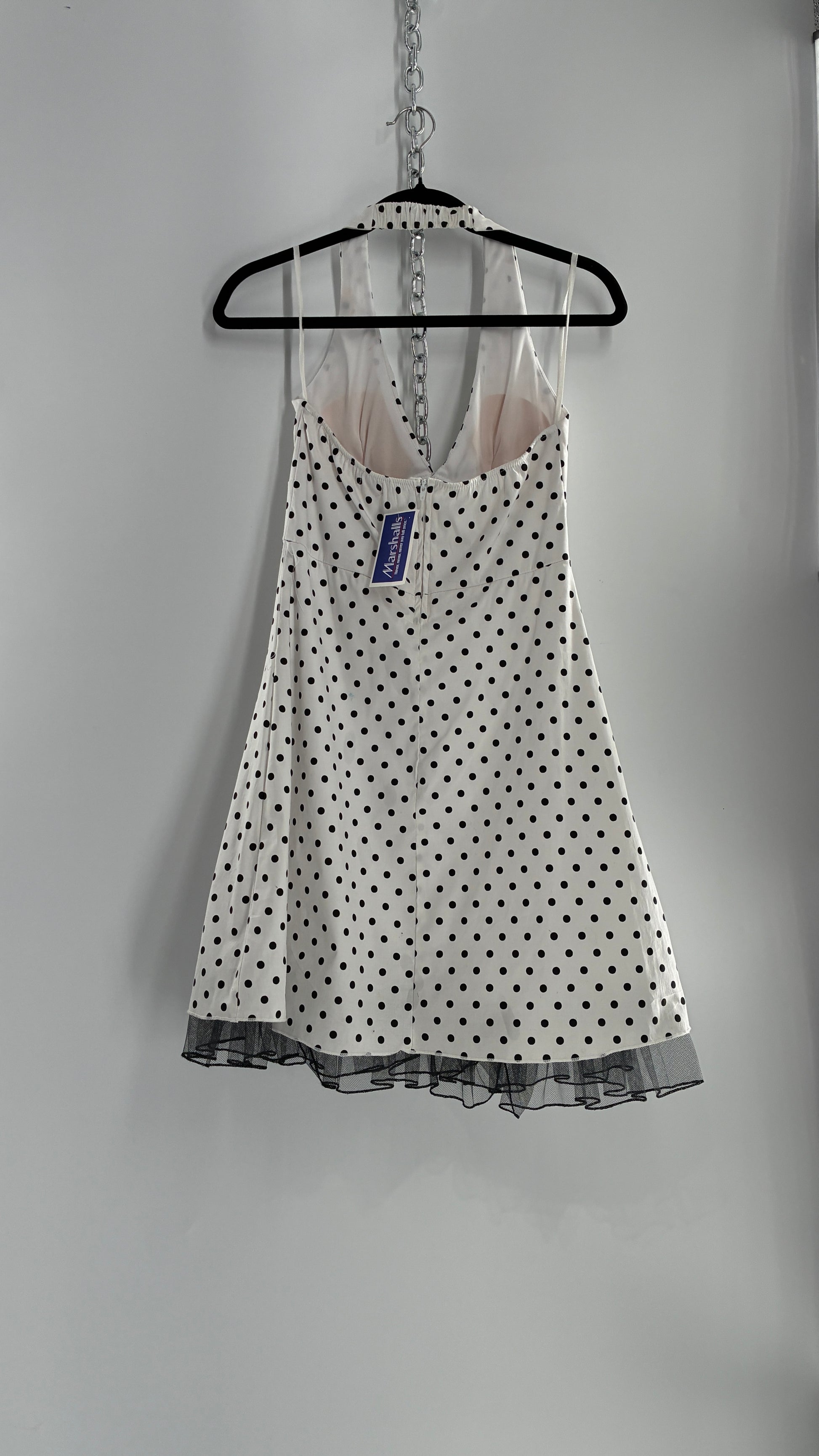 Deadstock Vintage Ruby Rox Retro Style White and Black Polka Dotted Mini Dress with Tulle Trim
