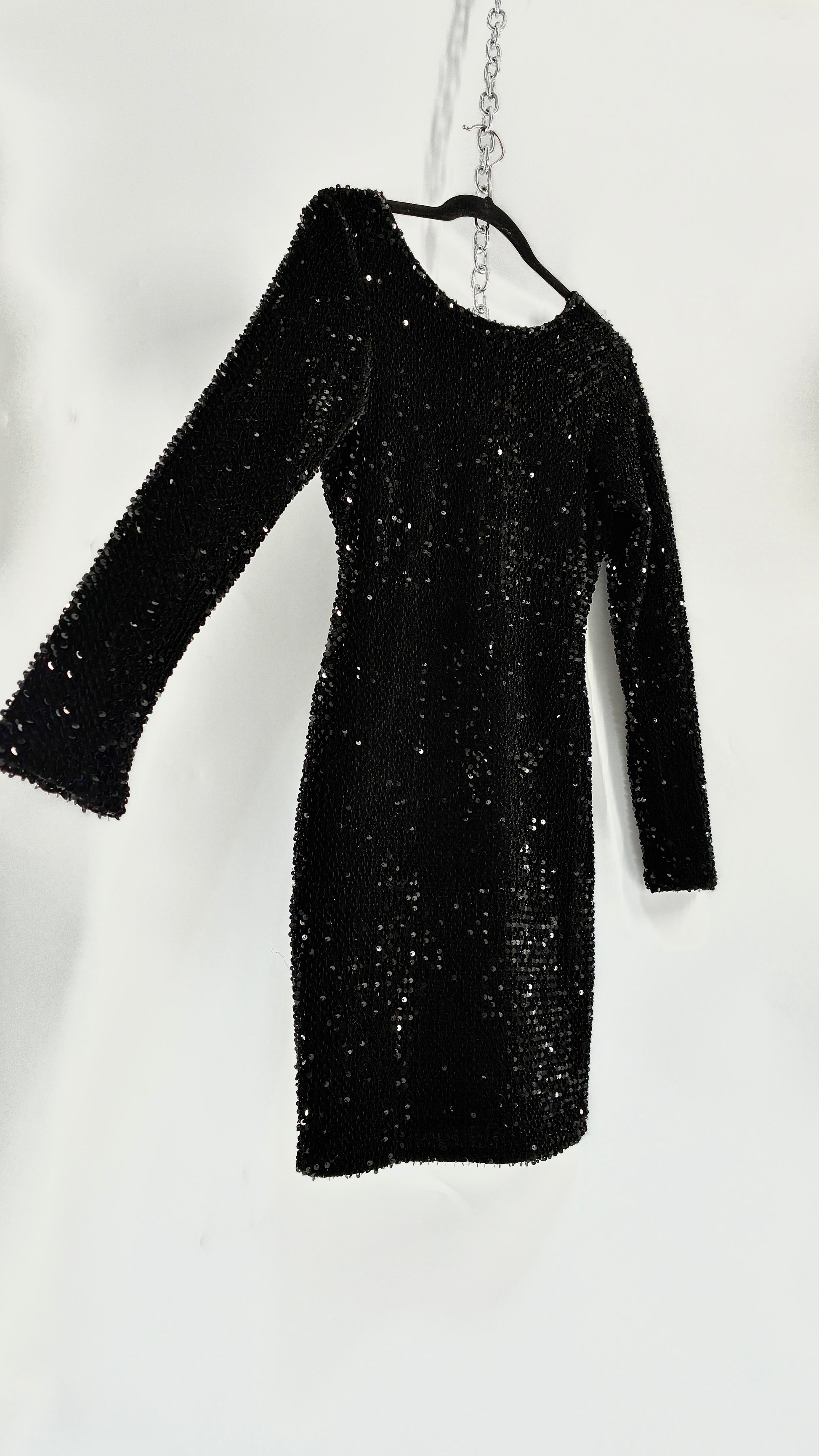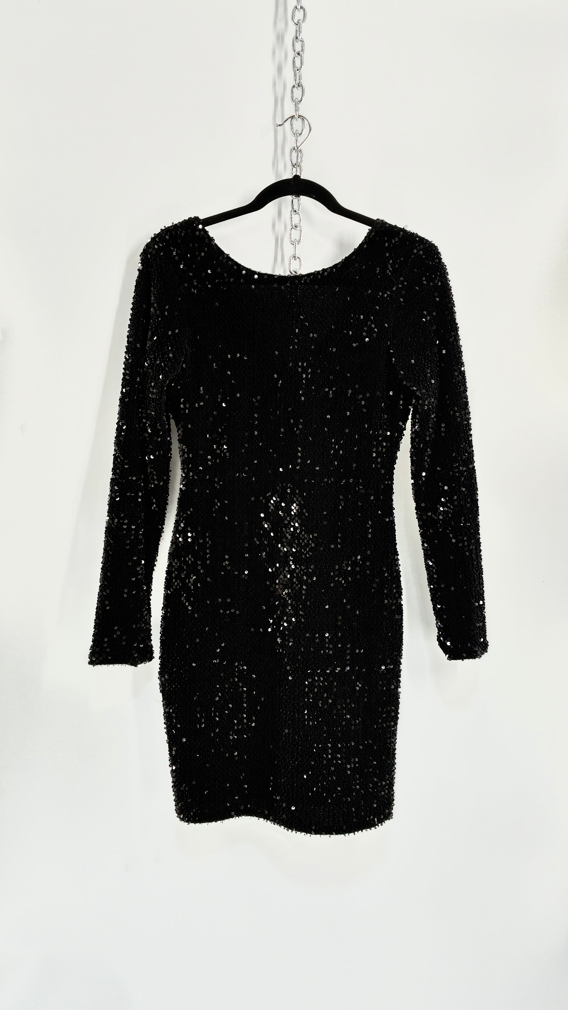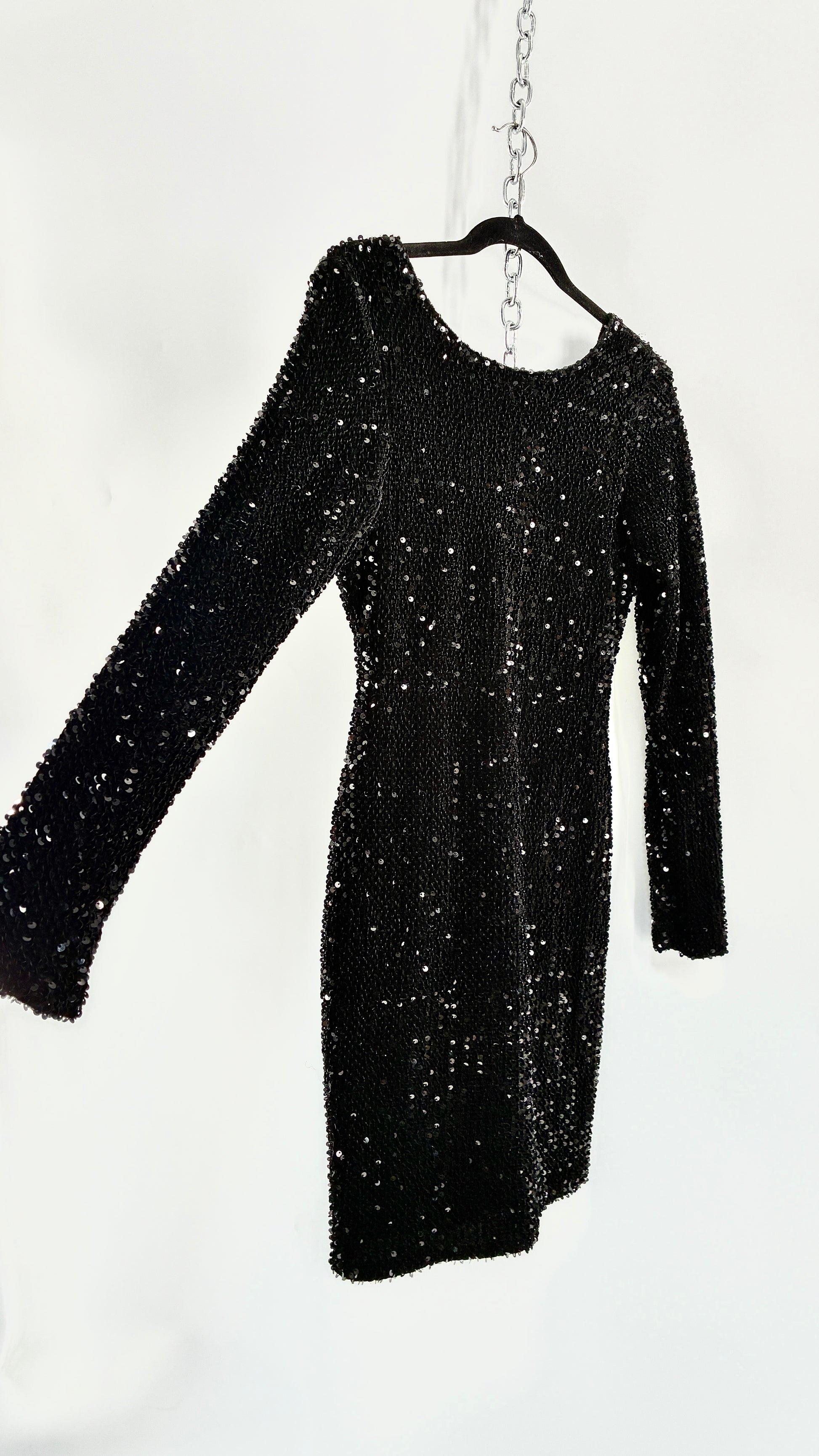 MOTEL Black Thick Velour and Sequin Long Sleeve Bodycon Mini Dress (Medium)