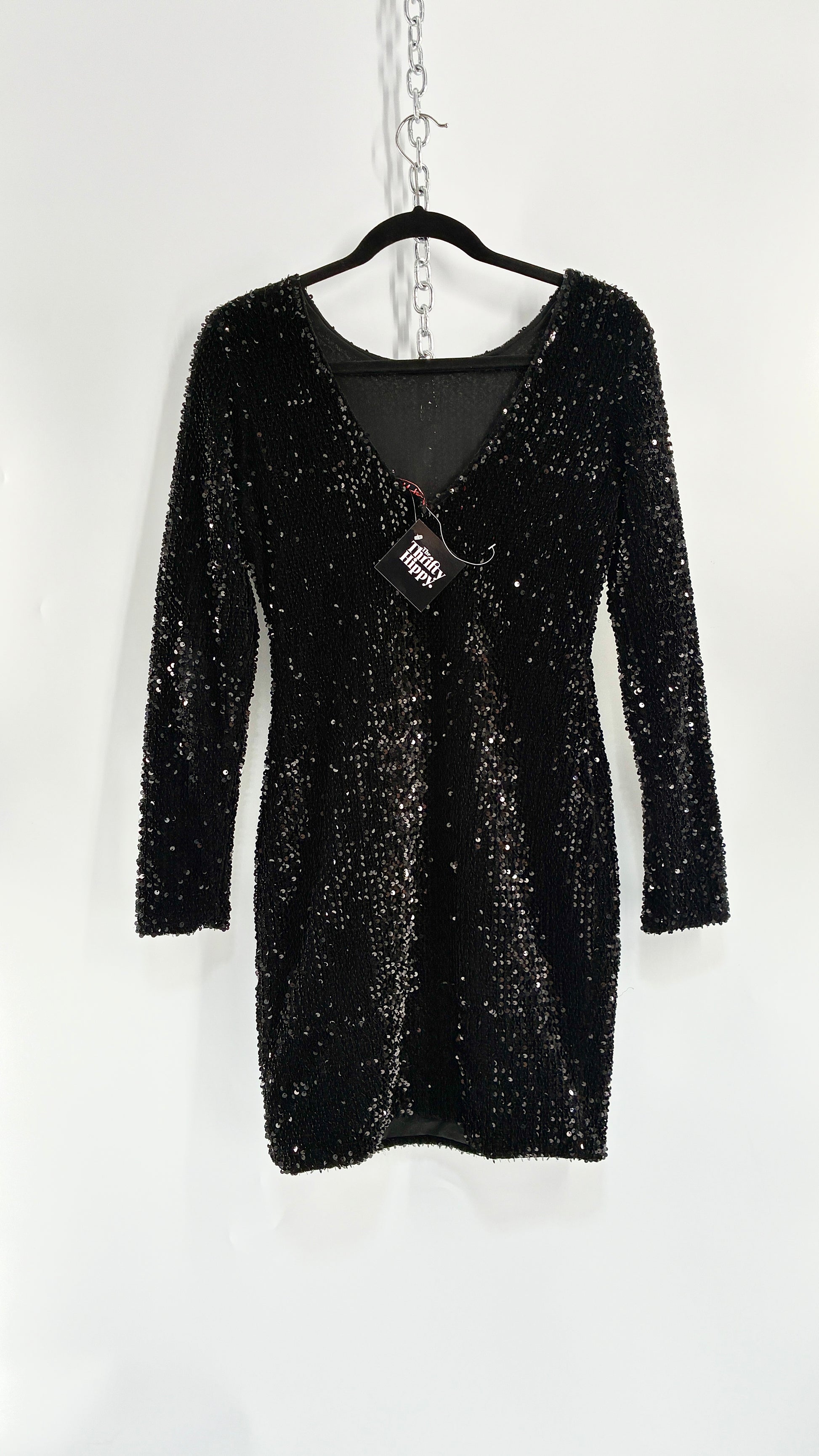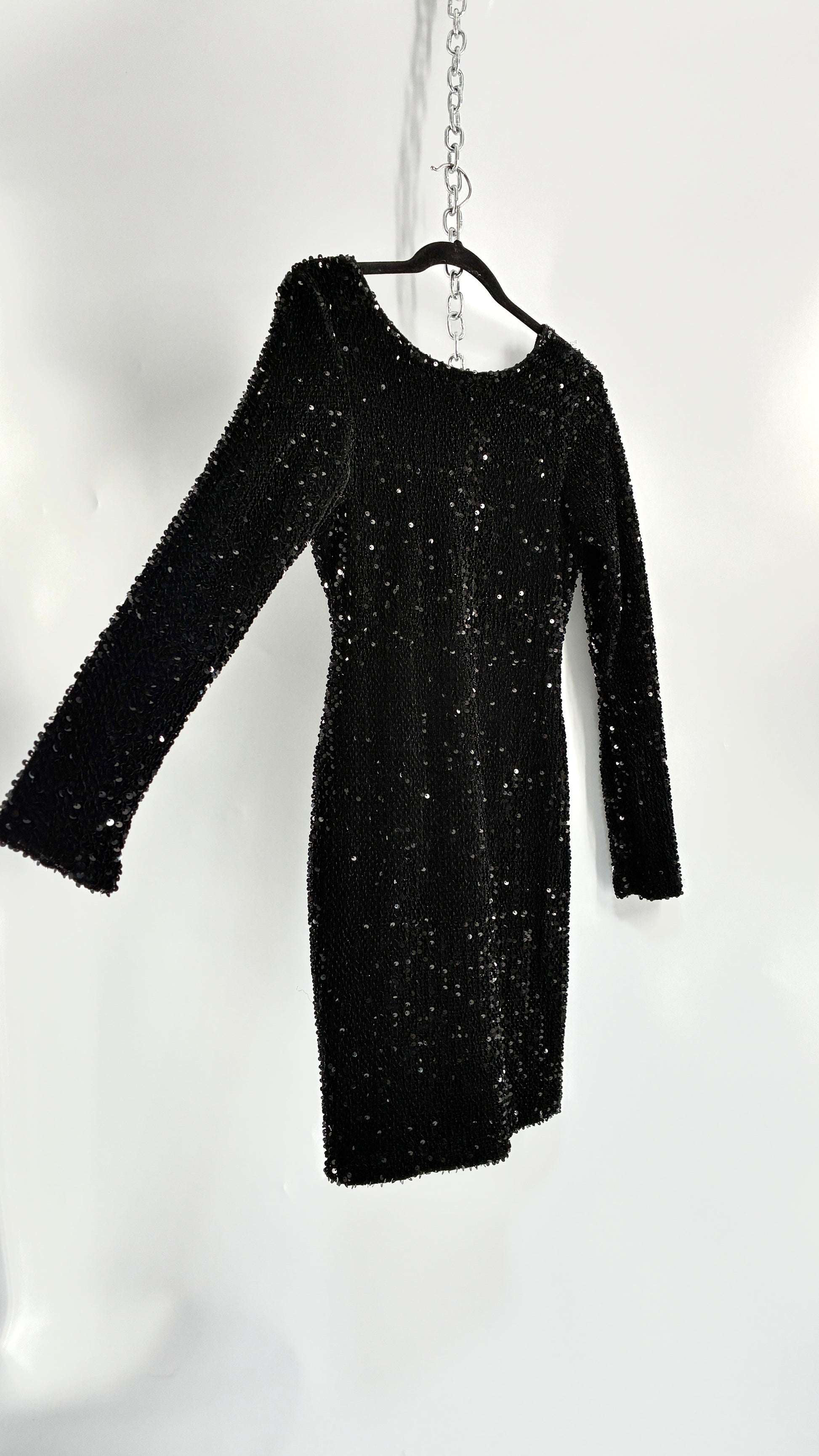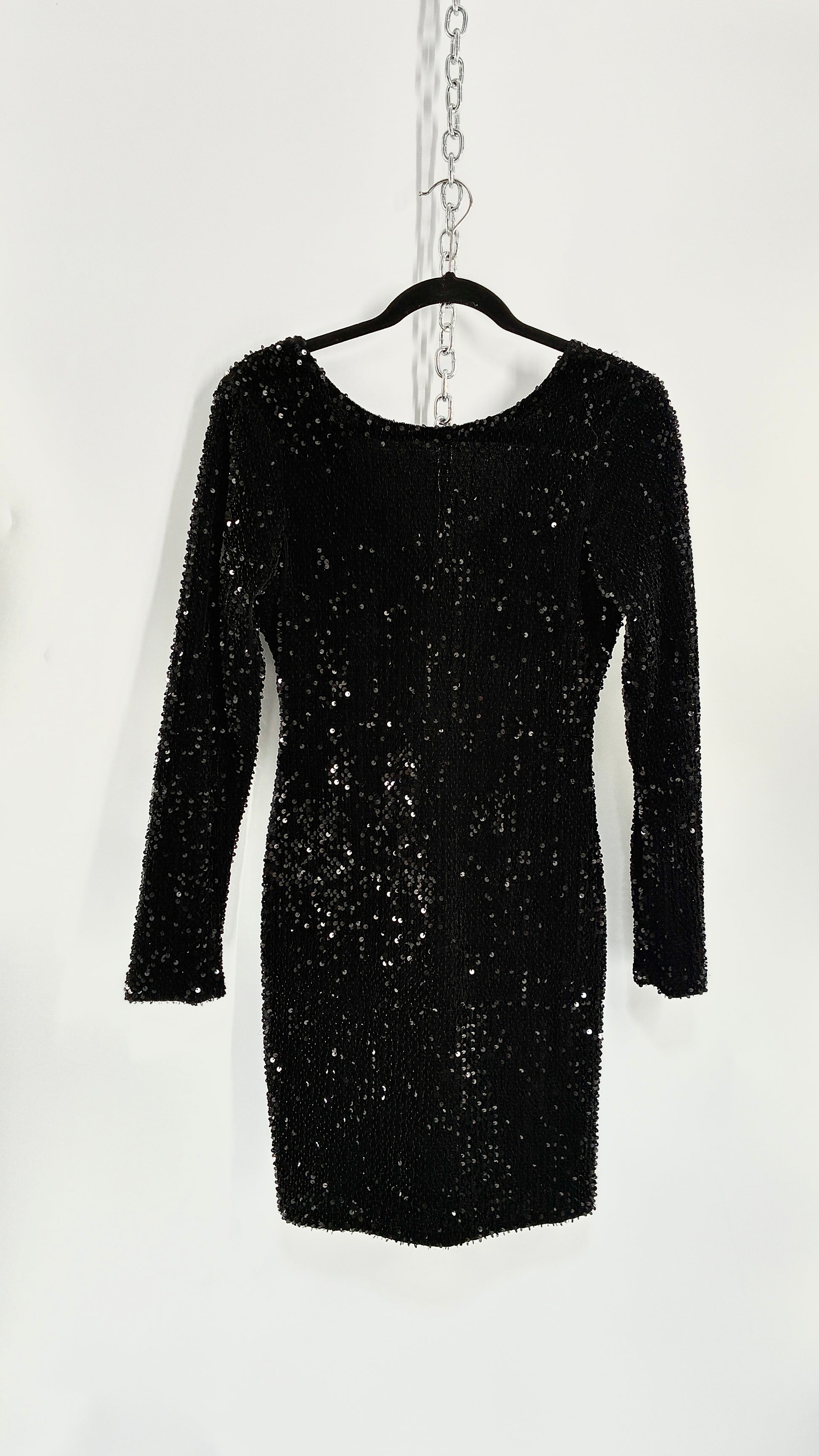 MOTEL Black Thick Velour and Sequin Long Sleeve Bodycon Mini Dress (Medium)